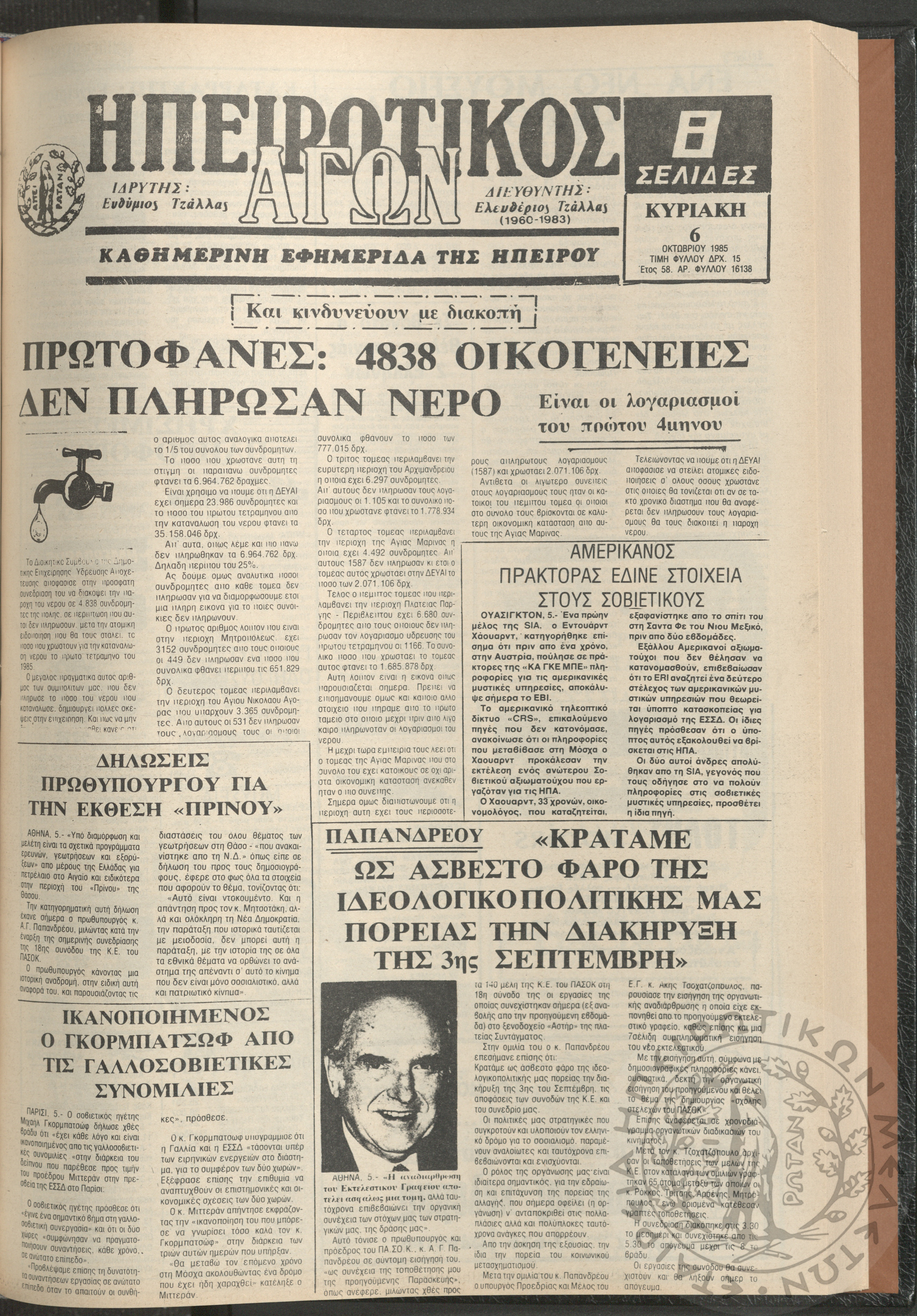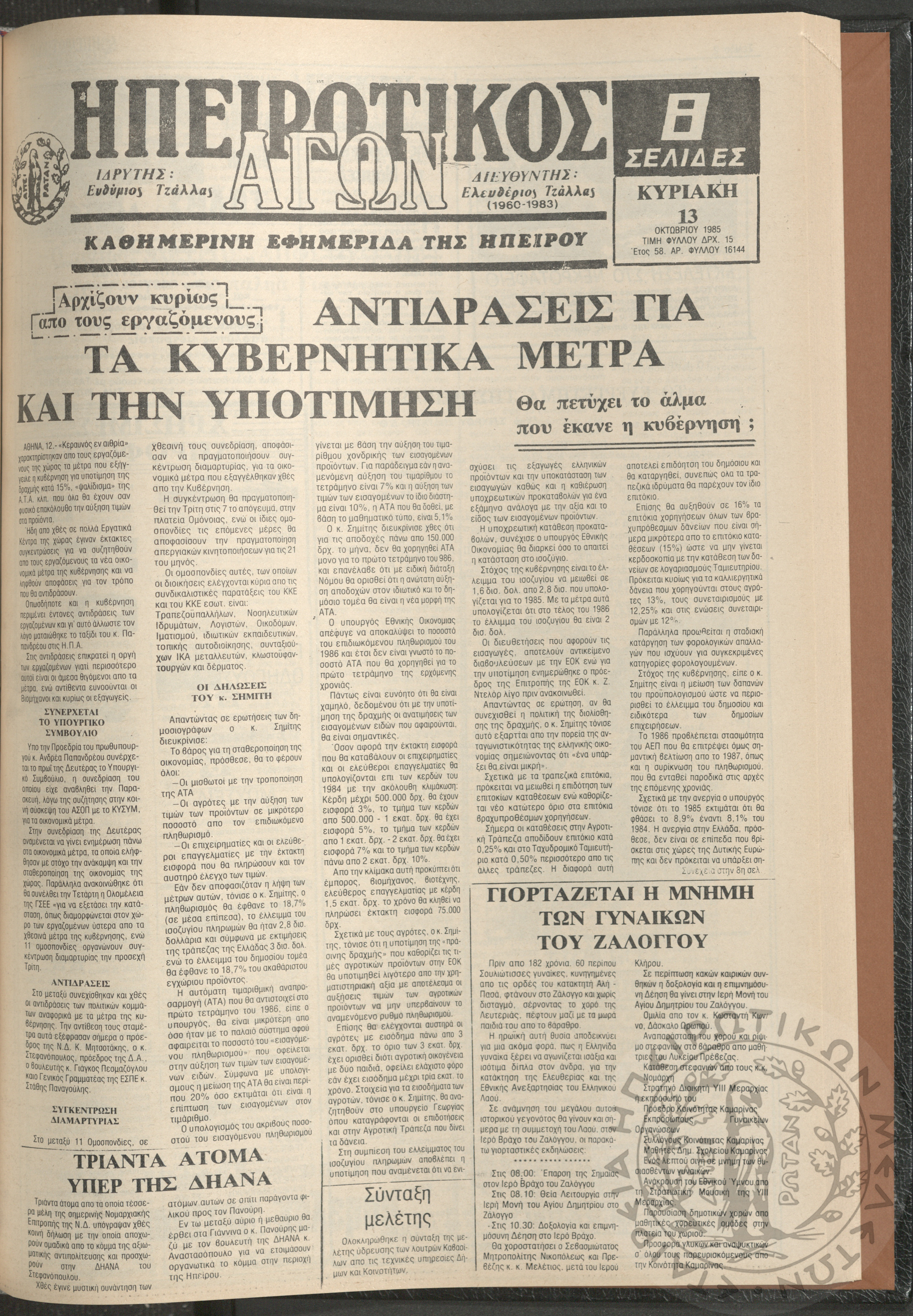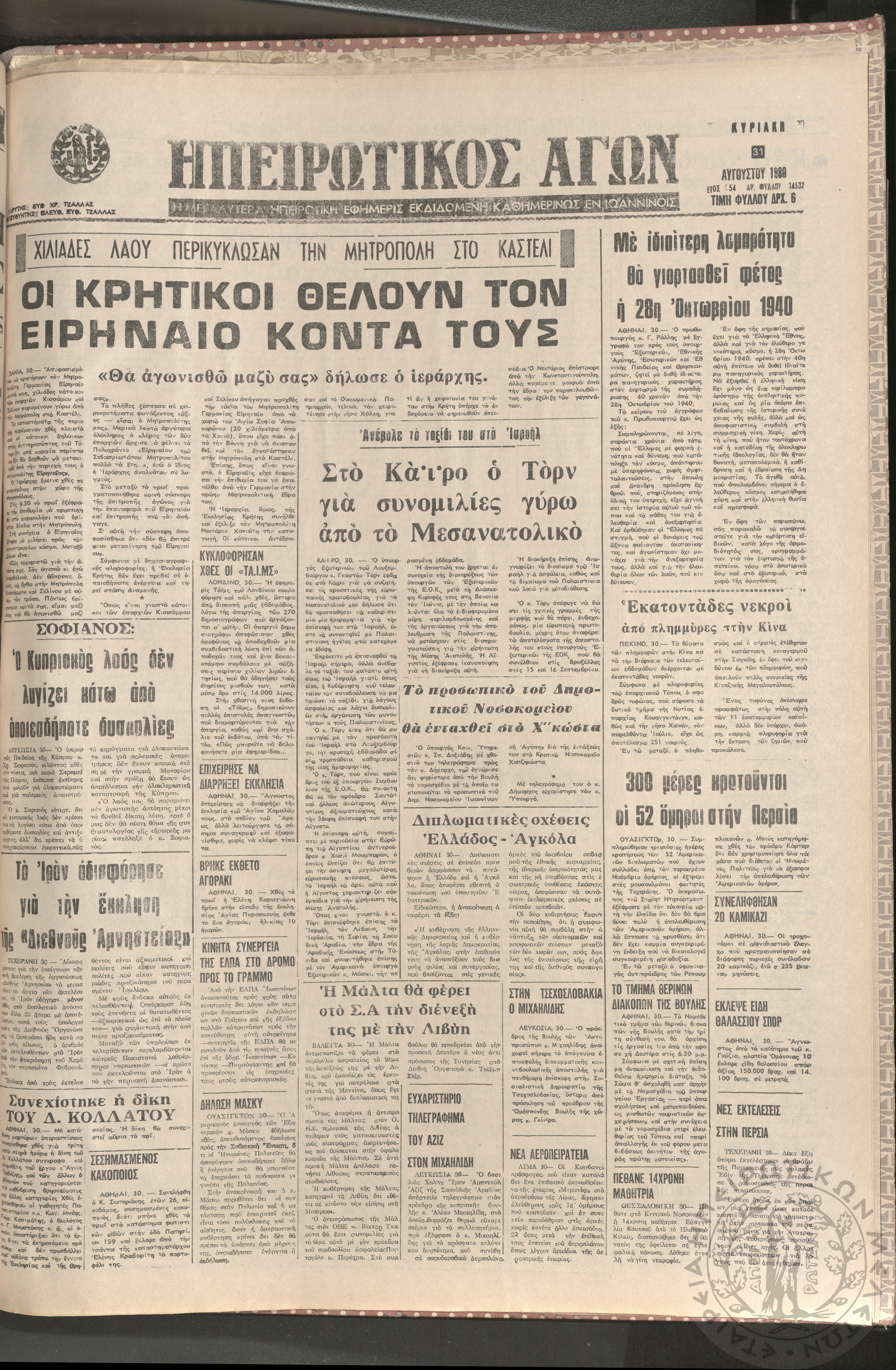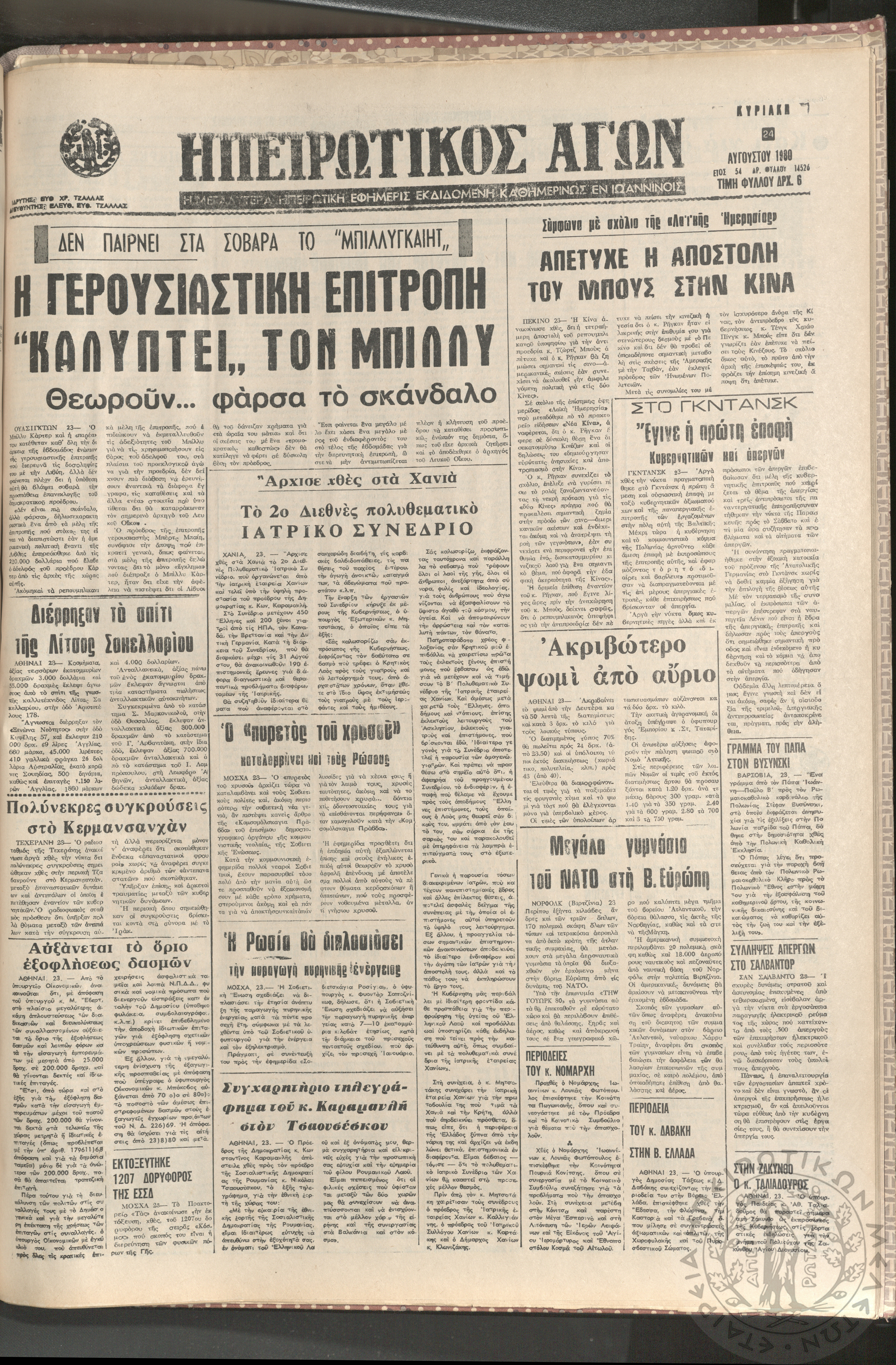 Ηπειρωτικός Αγών: η μεγαλυτέρα Ηπειρωτική εφημερίς εκδιδόμενη καθημερινώς εν Ιωαννίνοις, 1980, φ. 14530Έτος 54, φ. 14530...