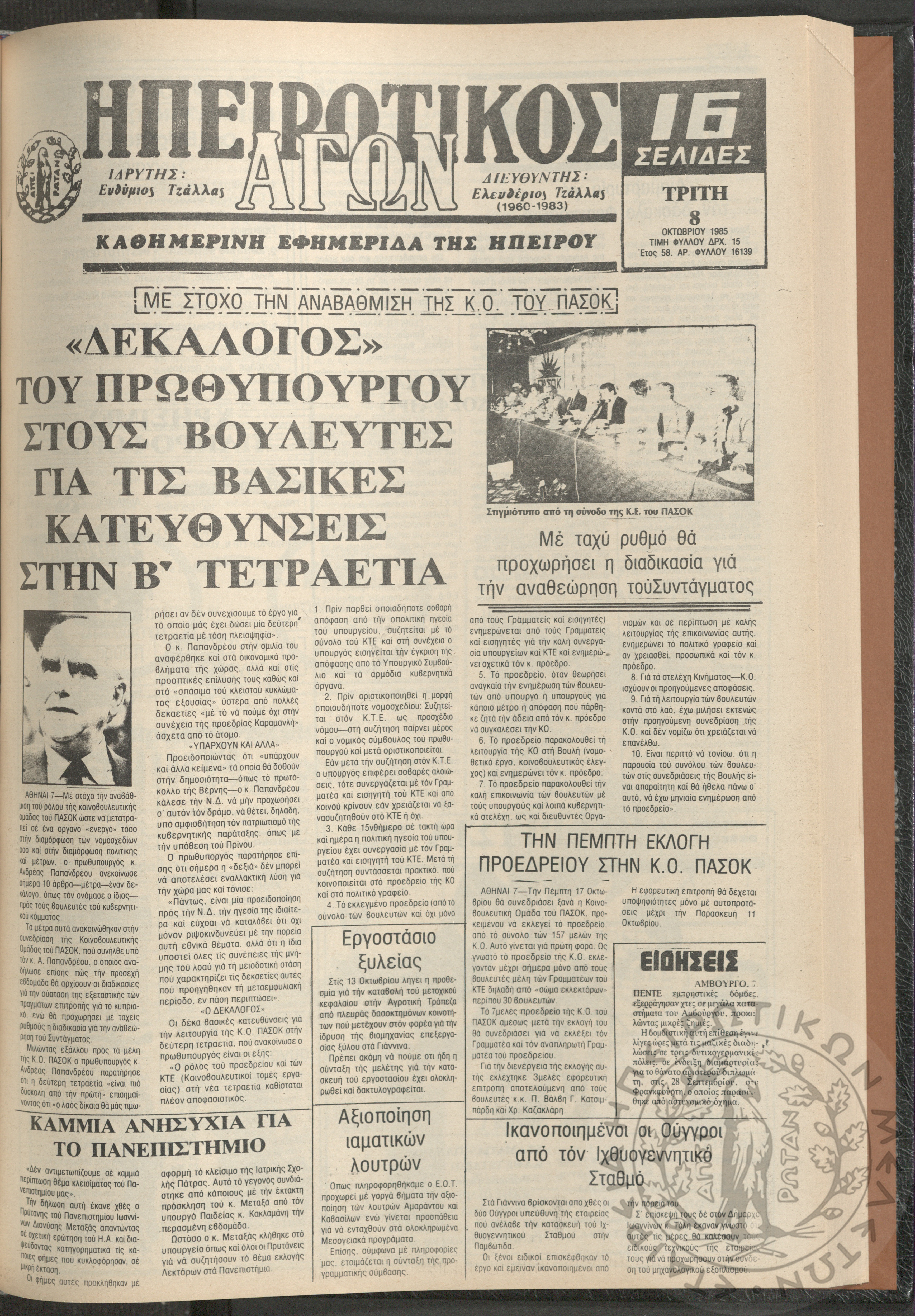 Ηπειρωτικός Αγών: η μεγαλυτέρα Ηπειρωτική εφημερίς εκδιδόμενη καθημερινώς εν Ιωαννίνοις, 1980, φ. 14528Έτος 54, φ. 14528...