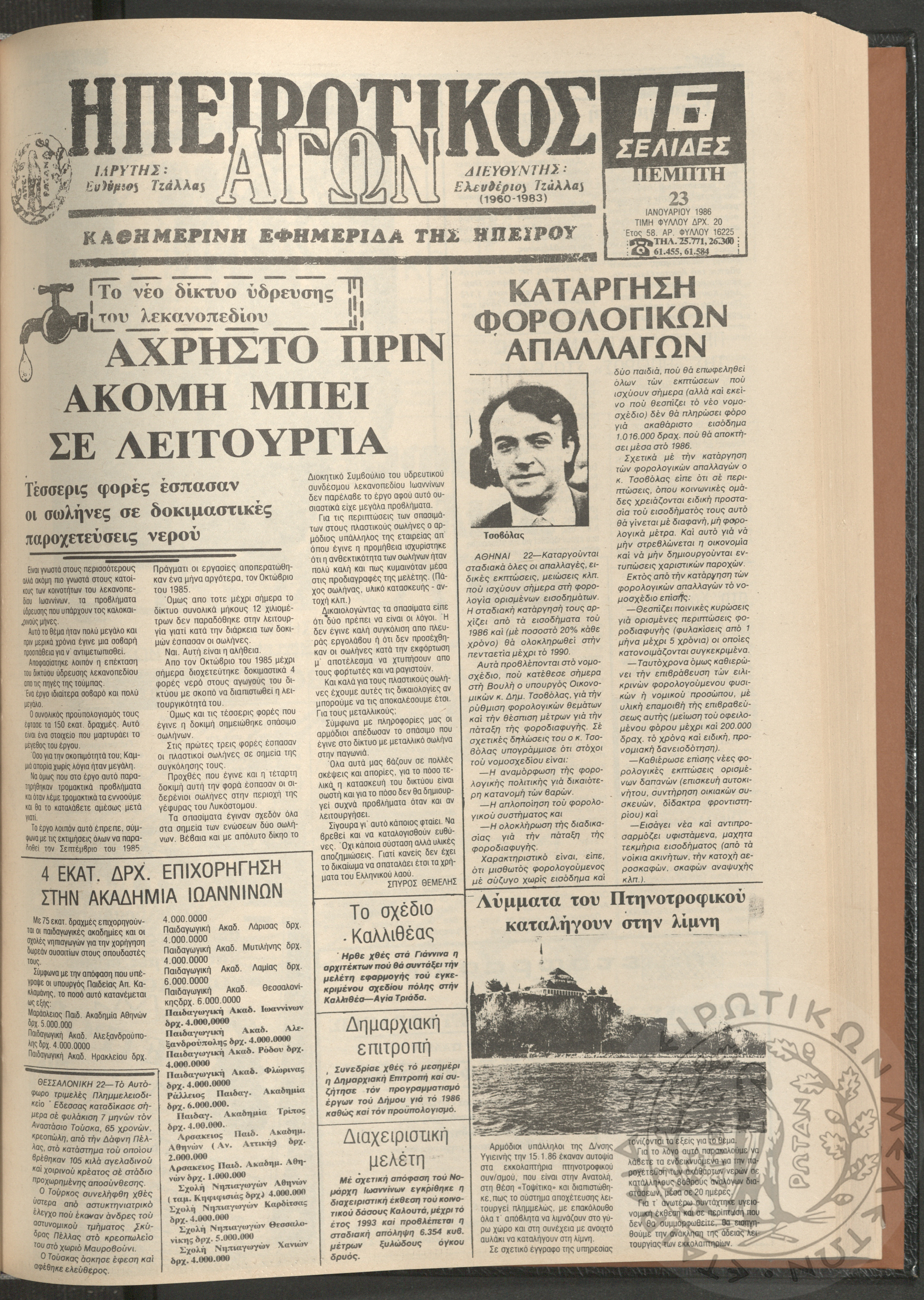 Ηπειρωτικός Αγών: καθημερινή εφημερίδα της Ηπείρου, 1986, φ. 16223