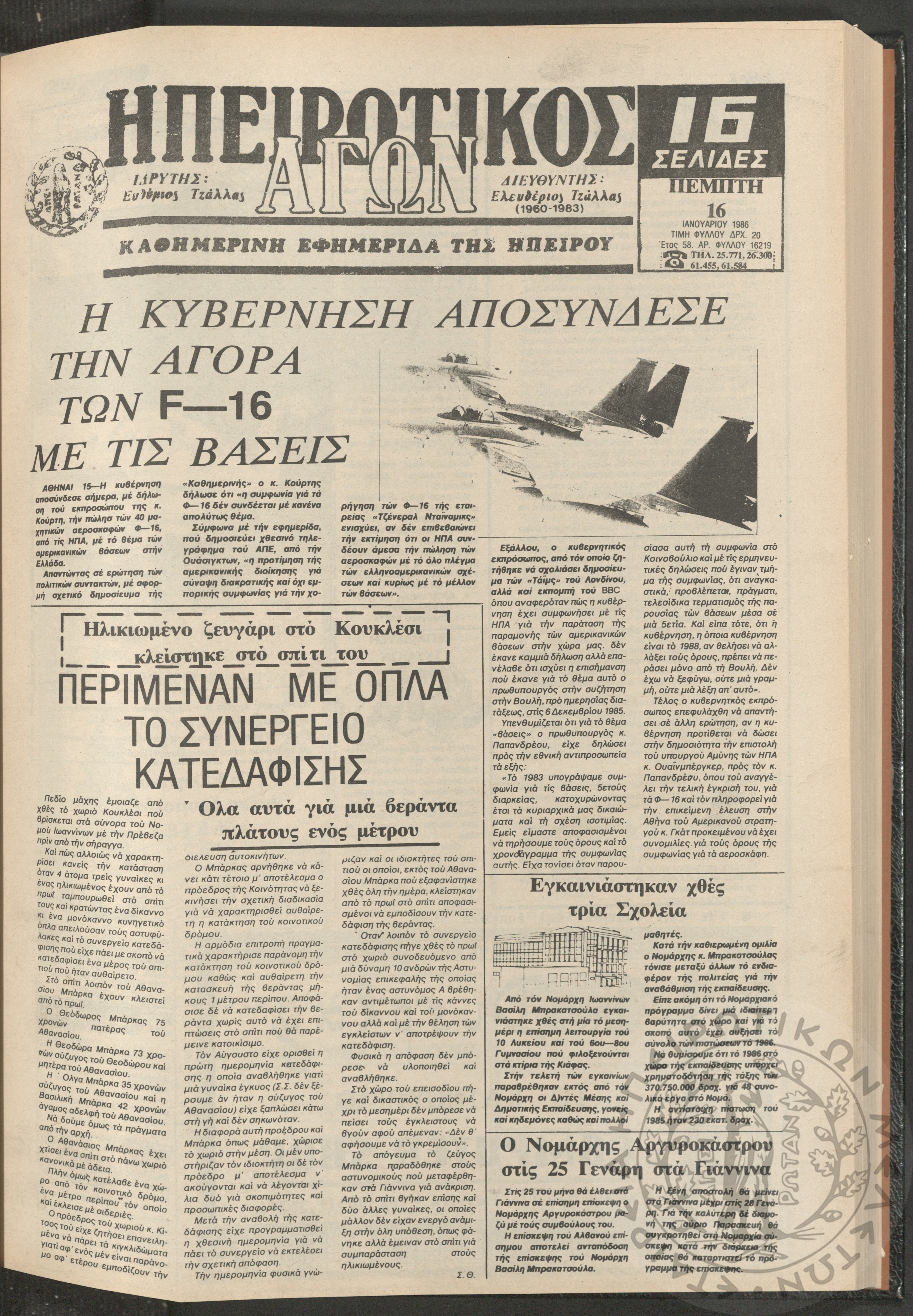 Ηπειρωτικός Αγών: καθημερινή εφημερίδα της Ηπείρου, 1986, φ. 16226