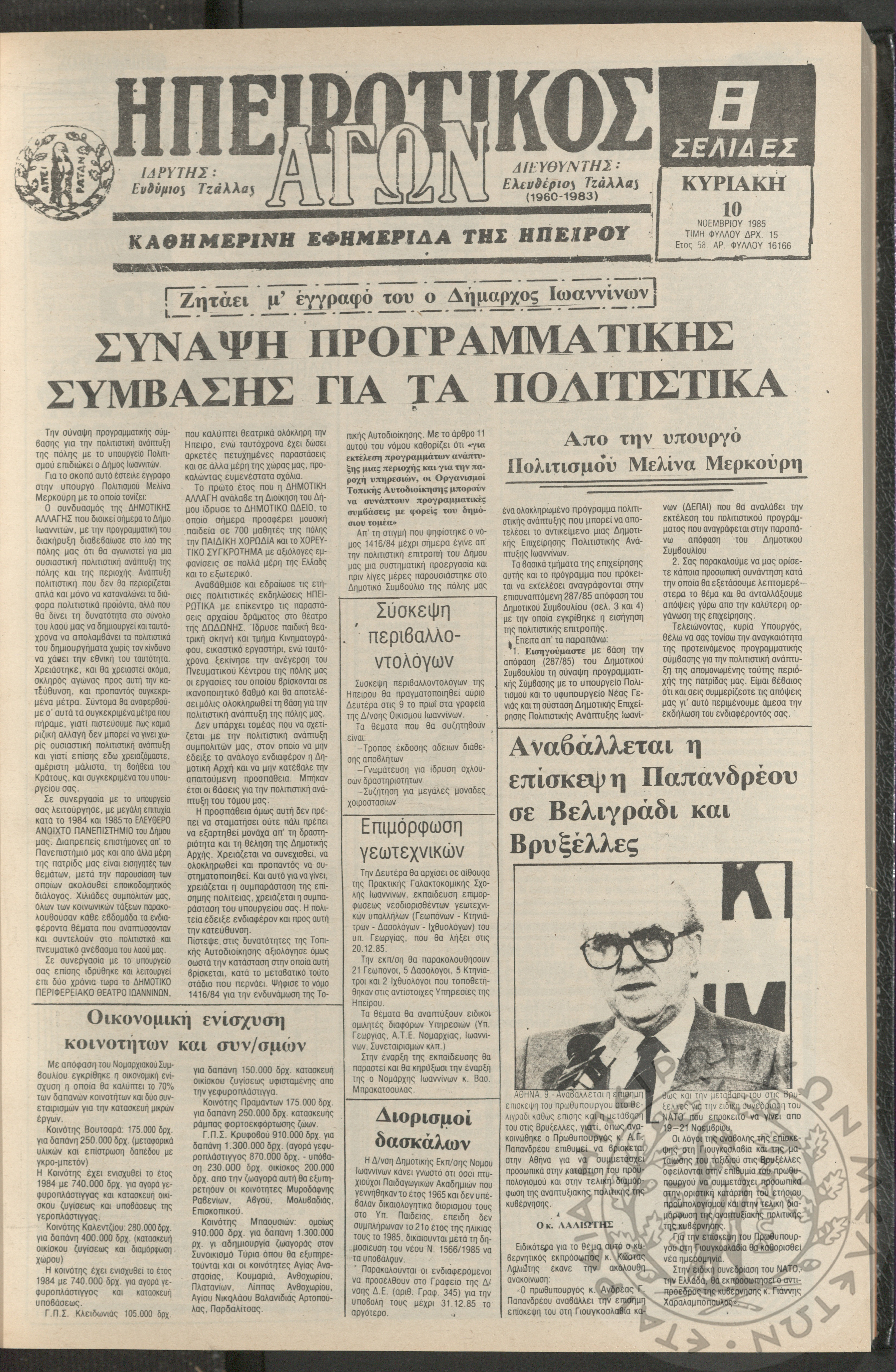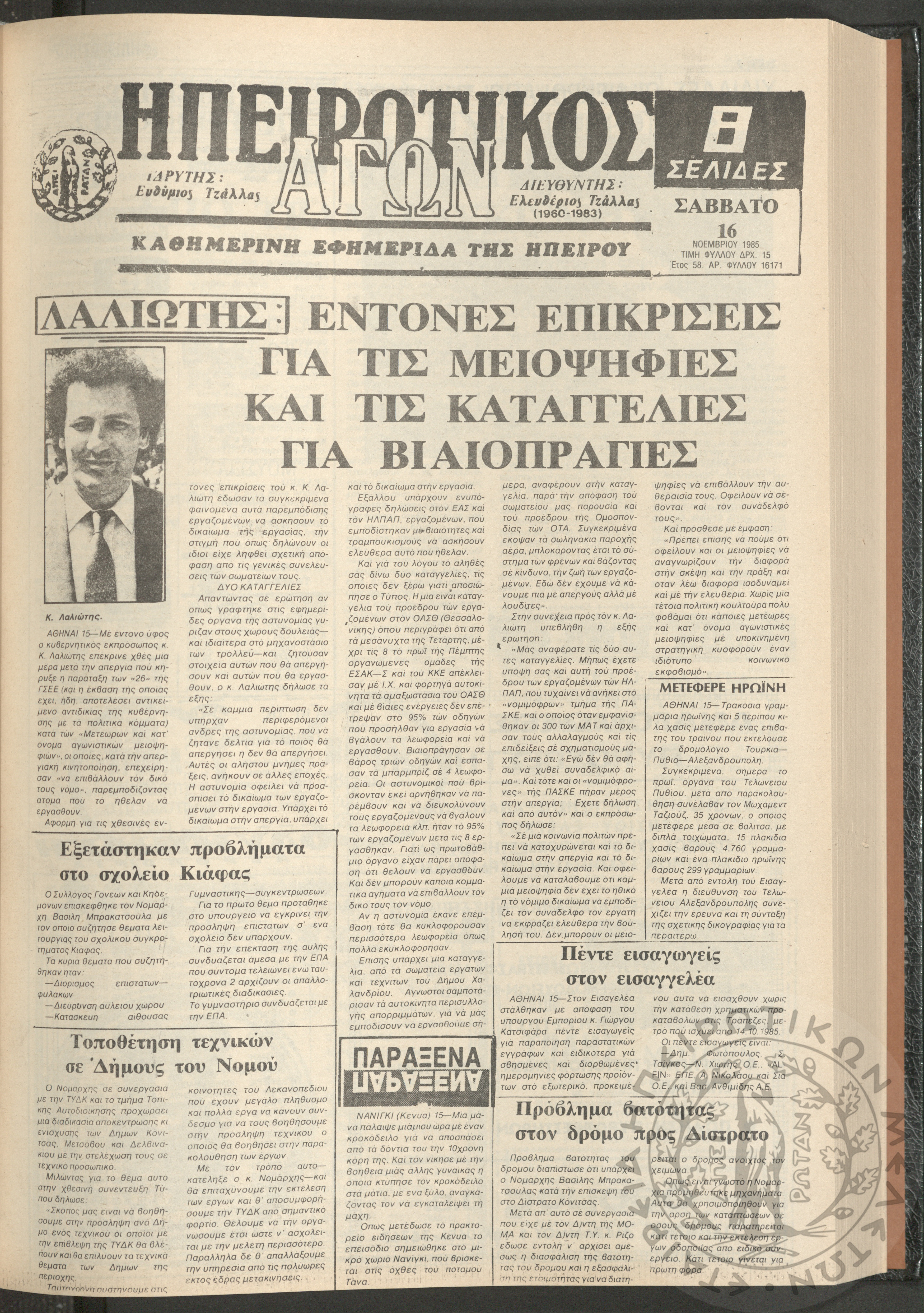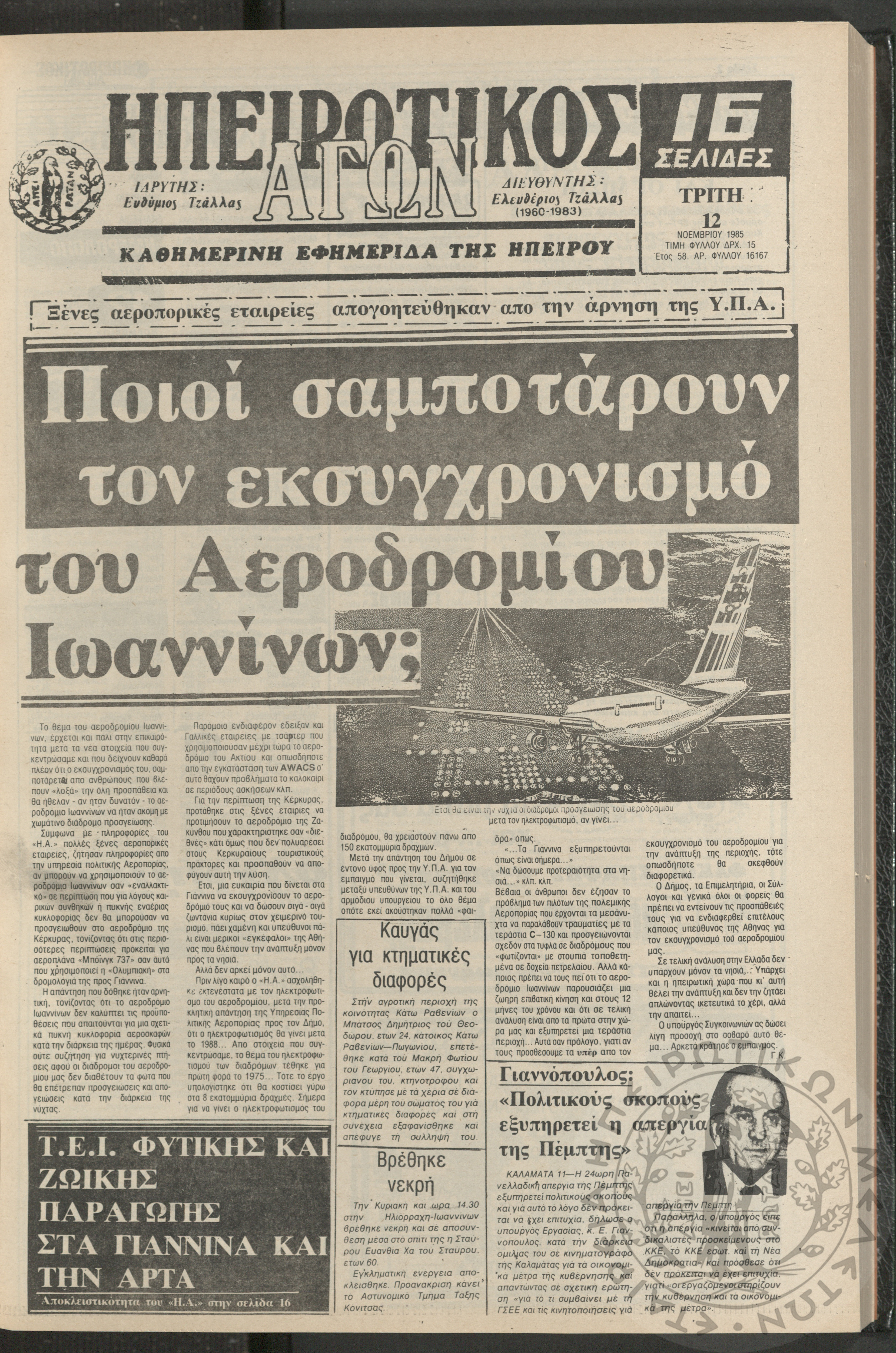 Ηπειρωτικός Αγών: καθημερινή εφημερίδα της Ηπείρου, 1985, φ. 16171