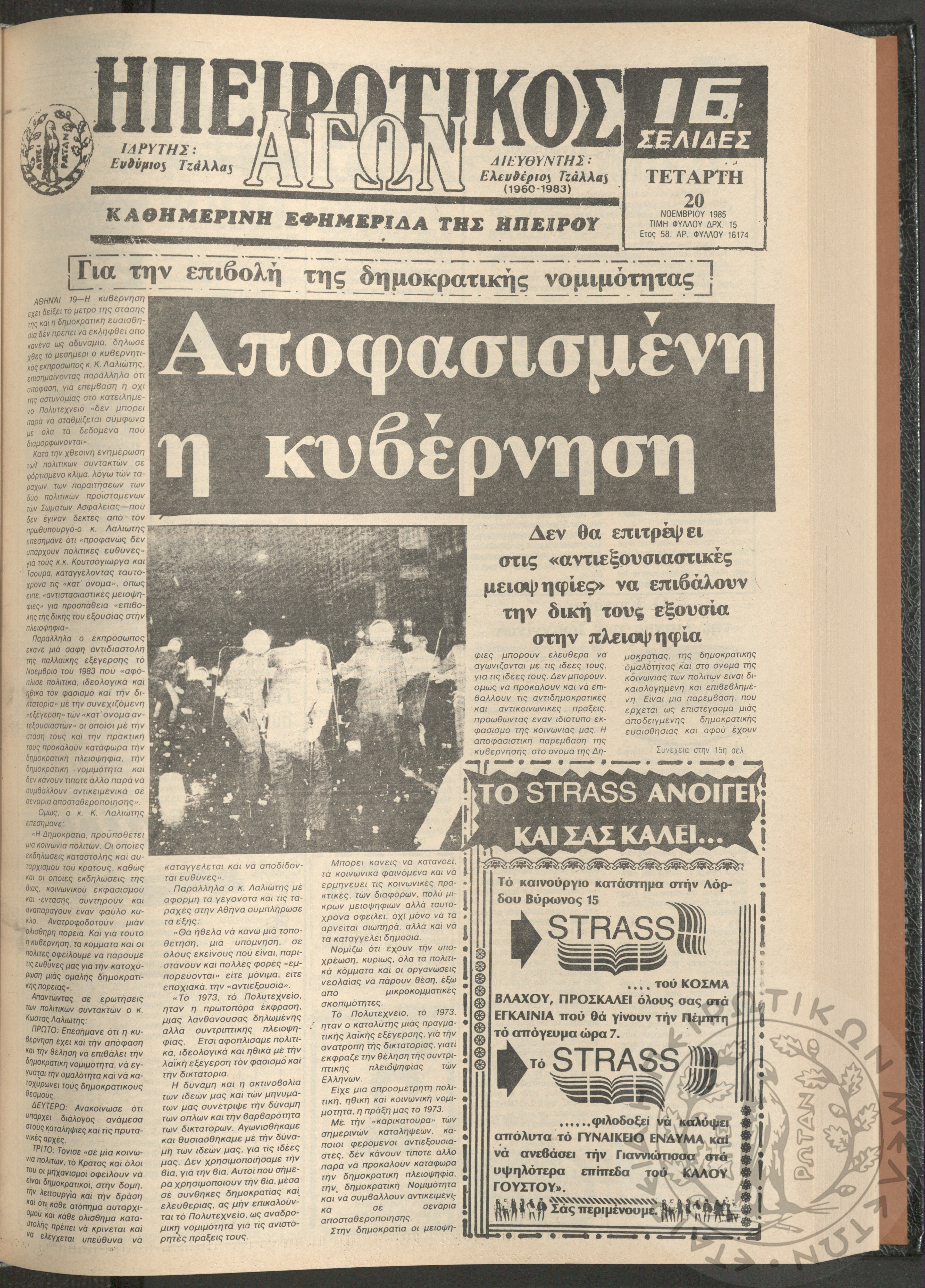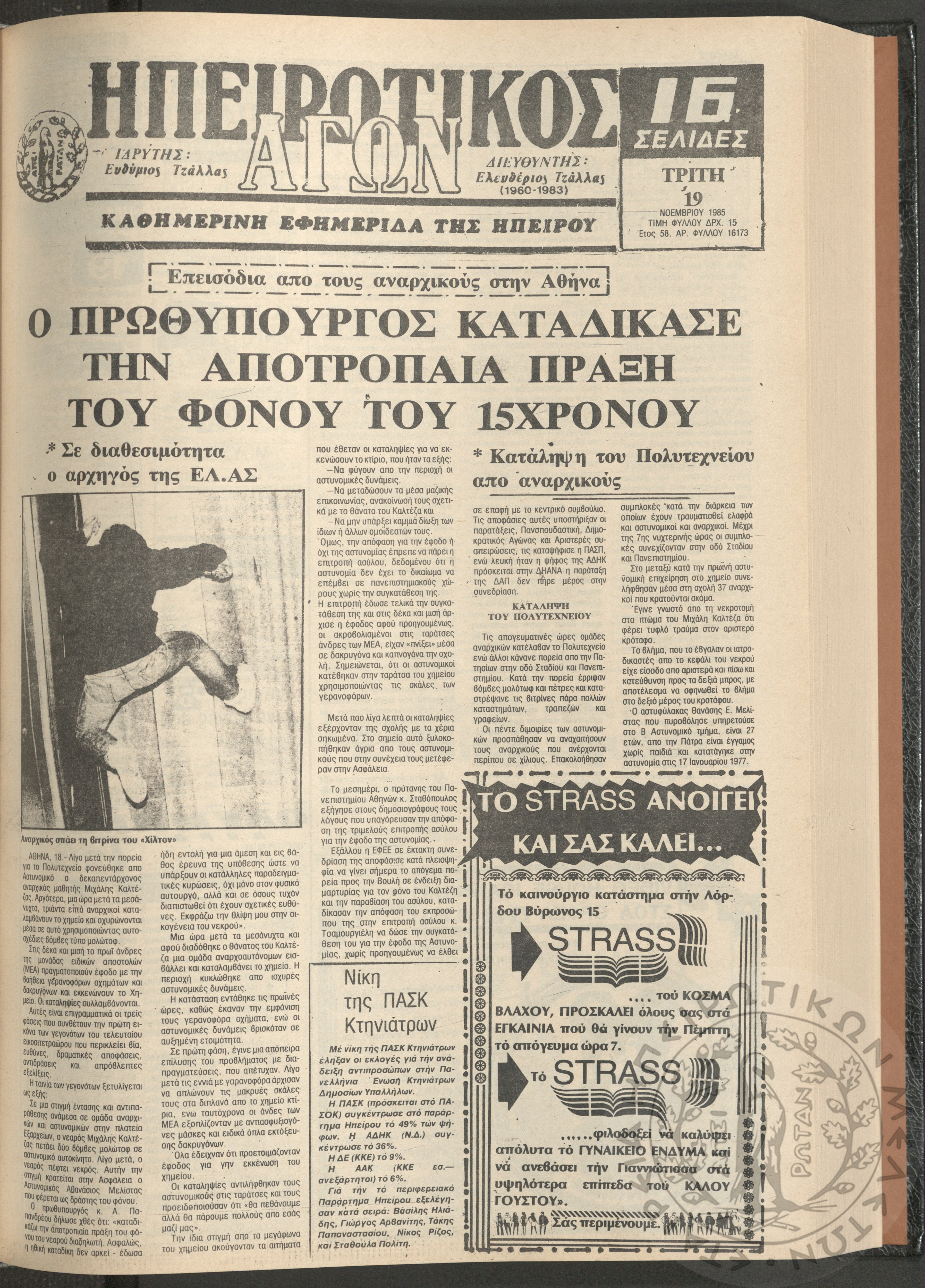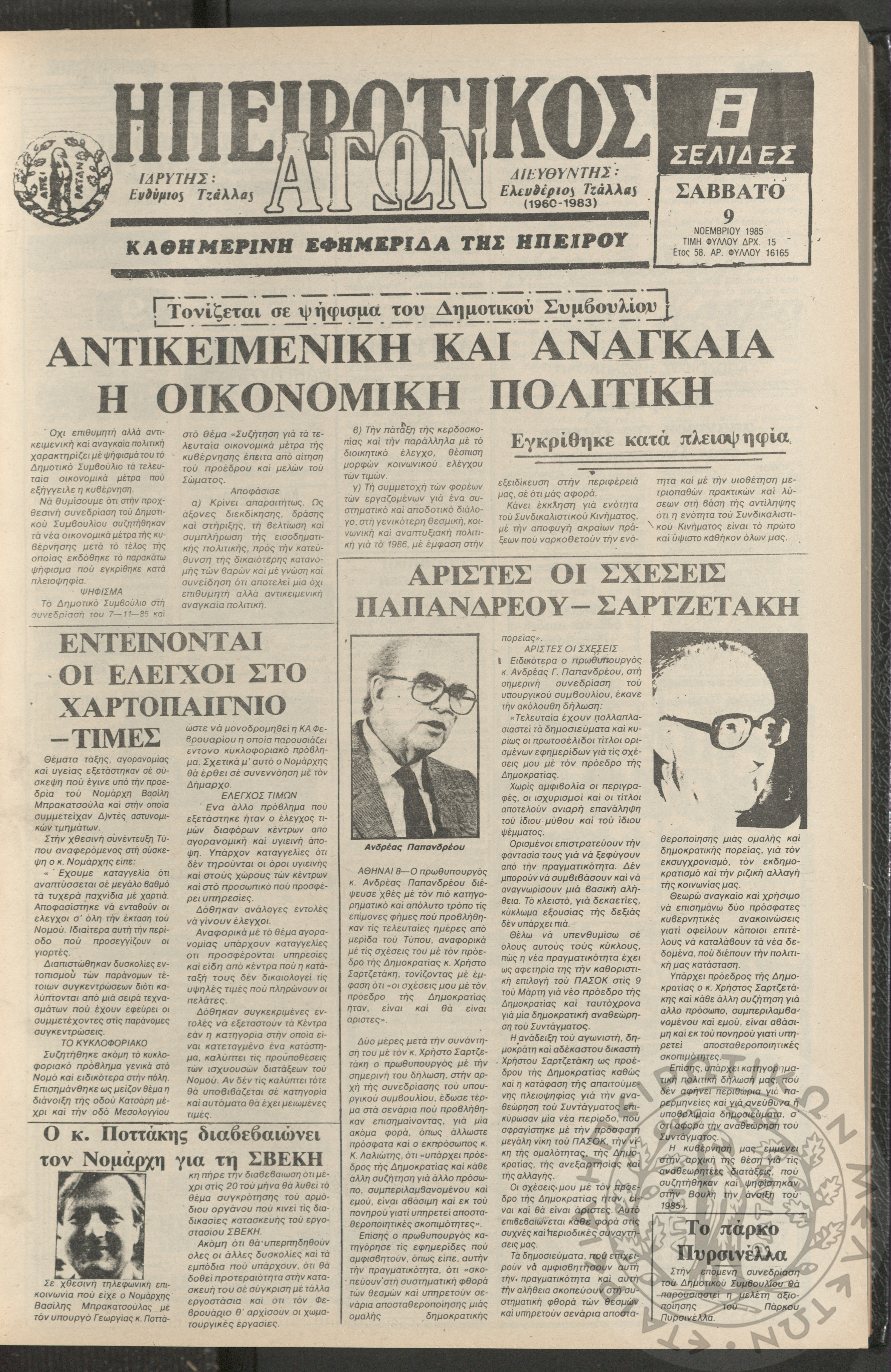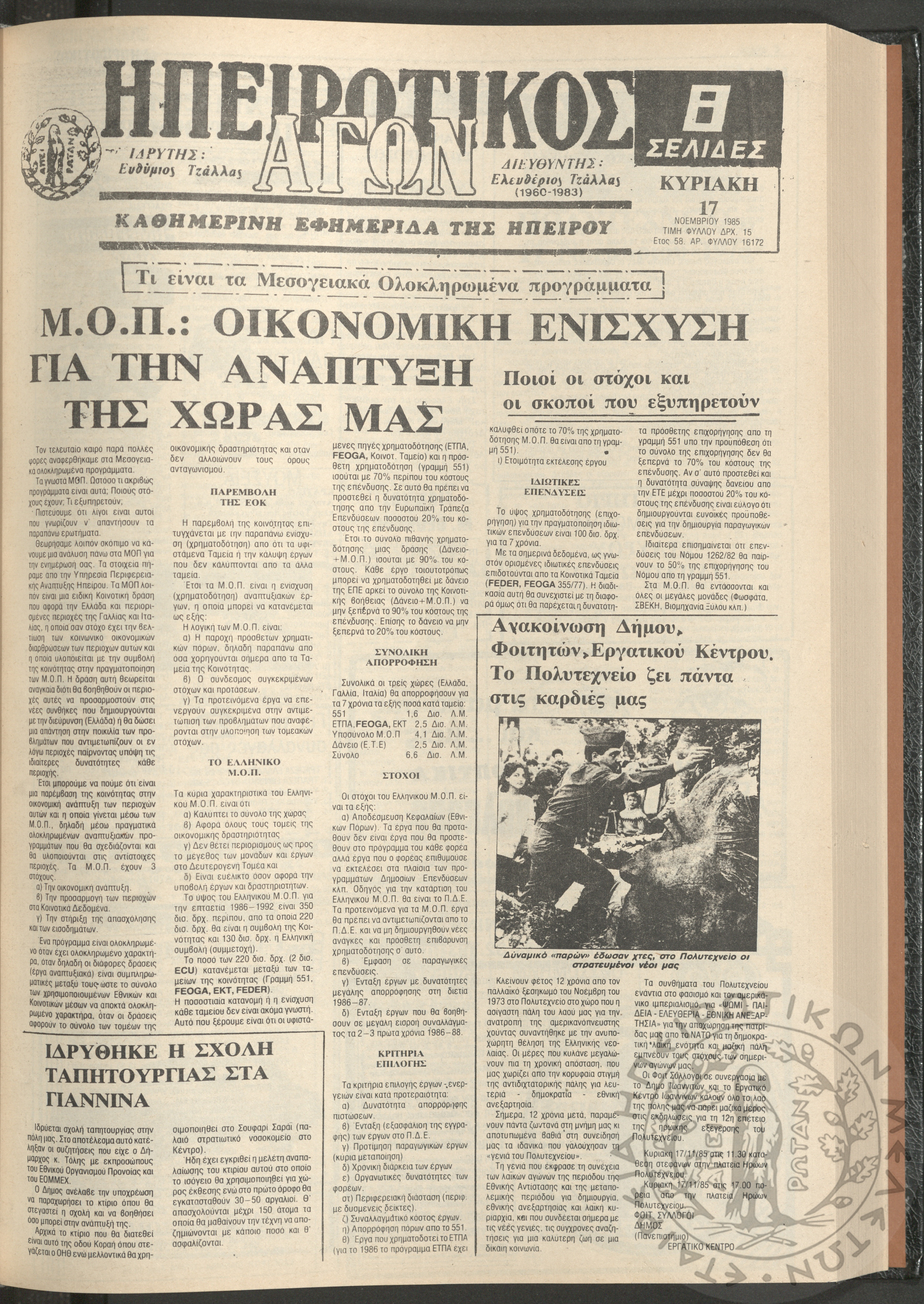 Ηπειρωτικός Αγών: καθημερινή εφημερίδα της Ηπείρου, 1985, φ. 16171