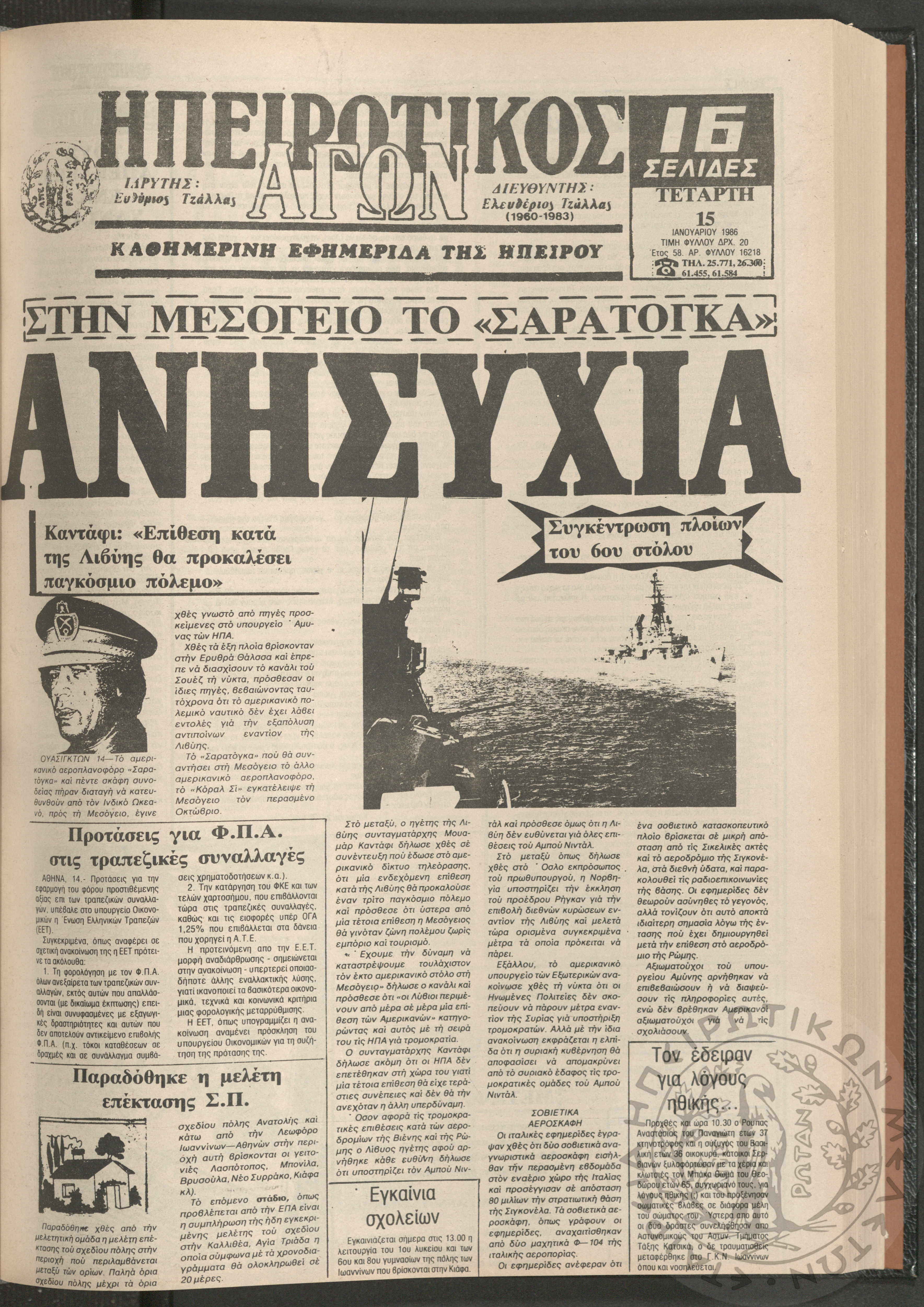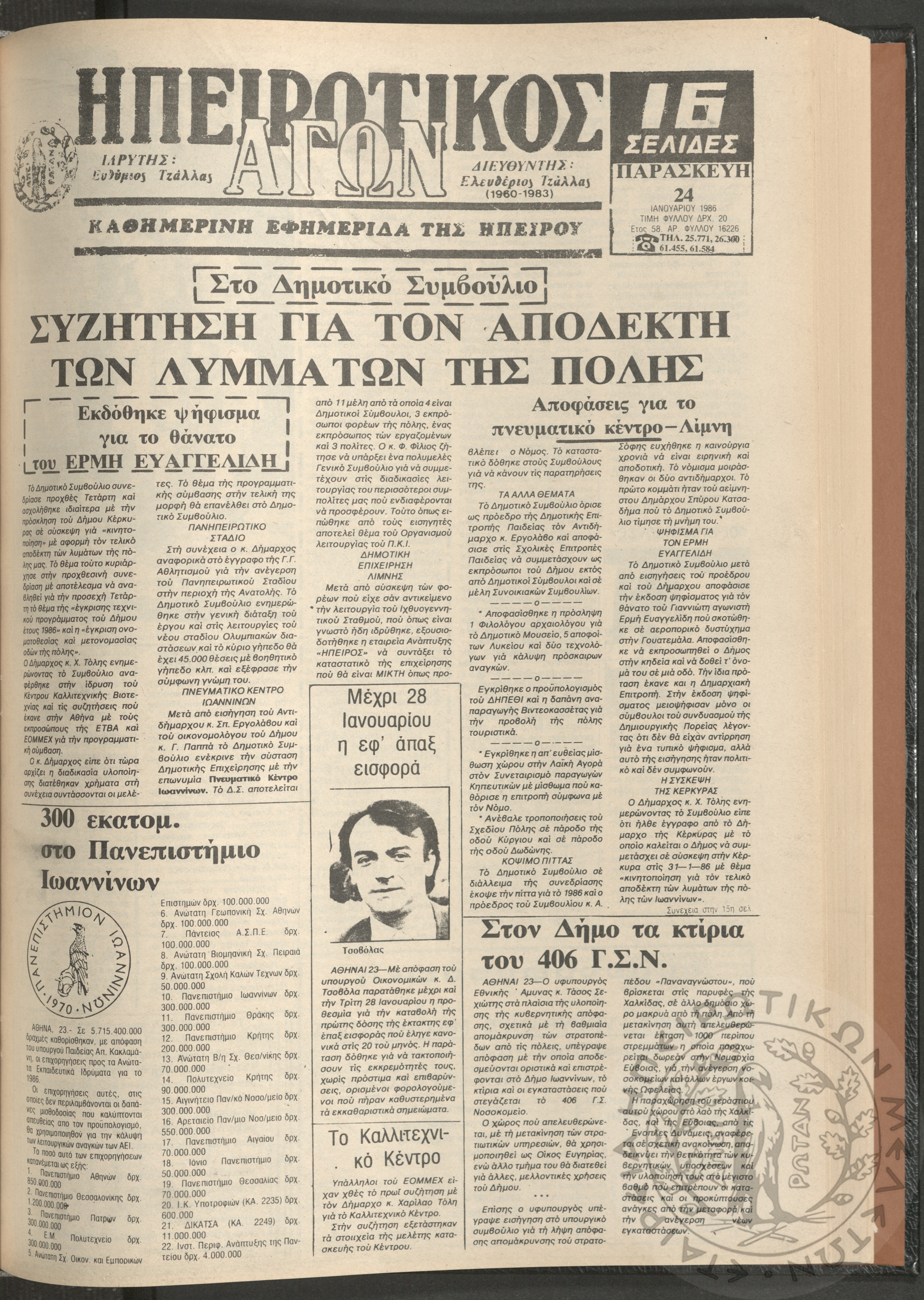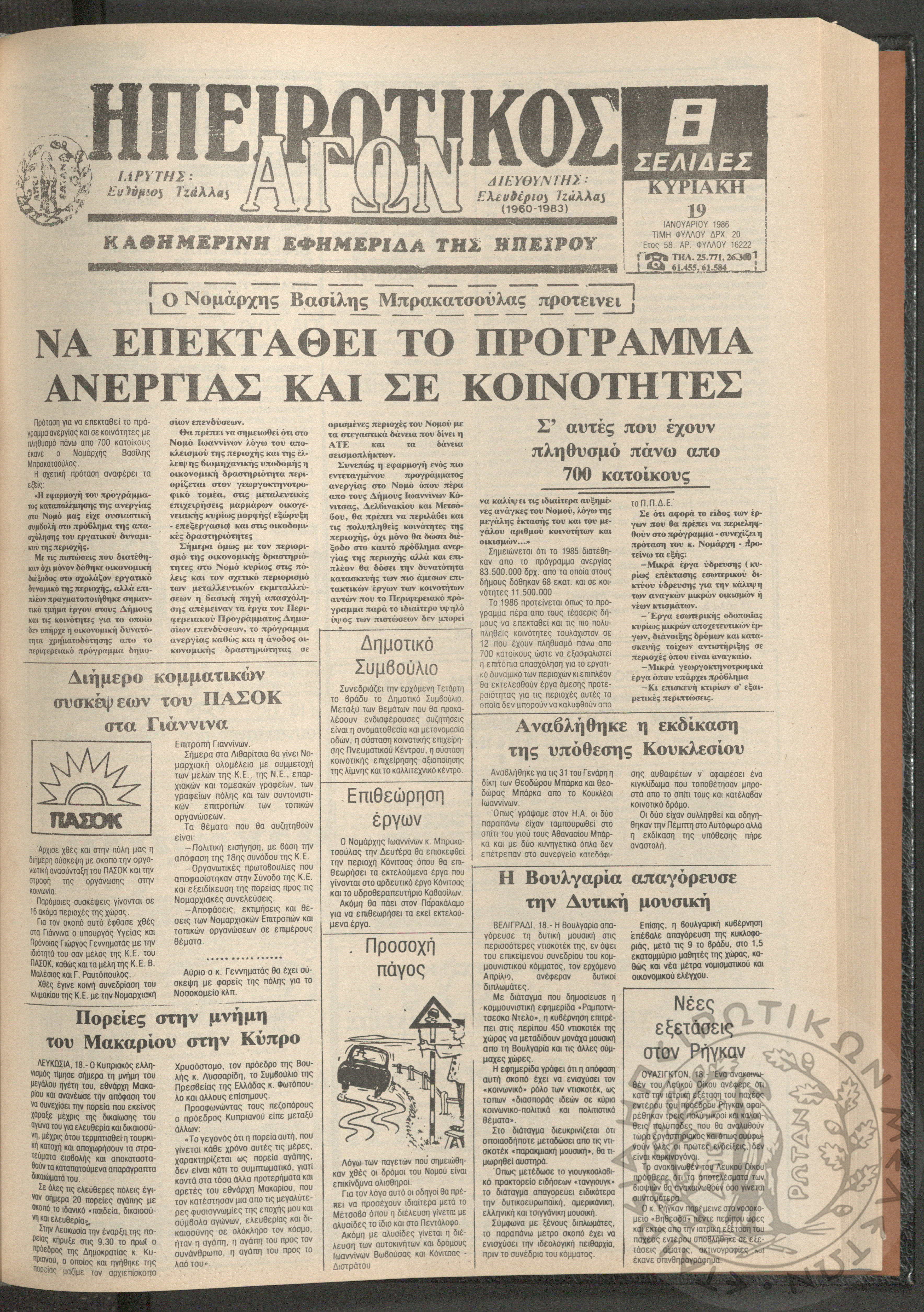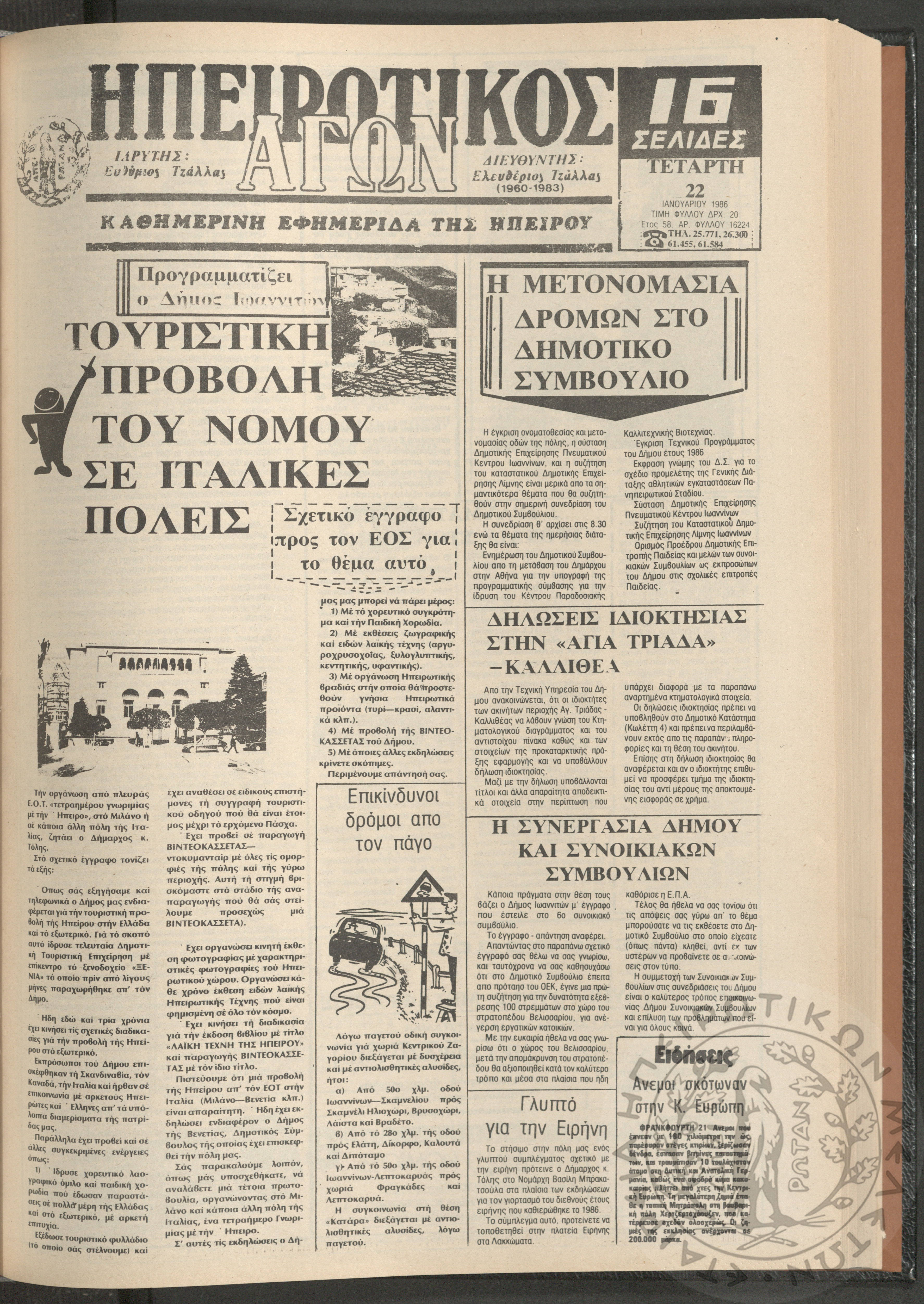 Ηπειρωτικός Αγών: καθημερινή εφημερίδα της Ηπείρου, 1986, φ. 16220