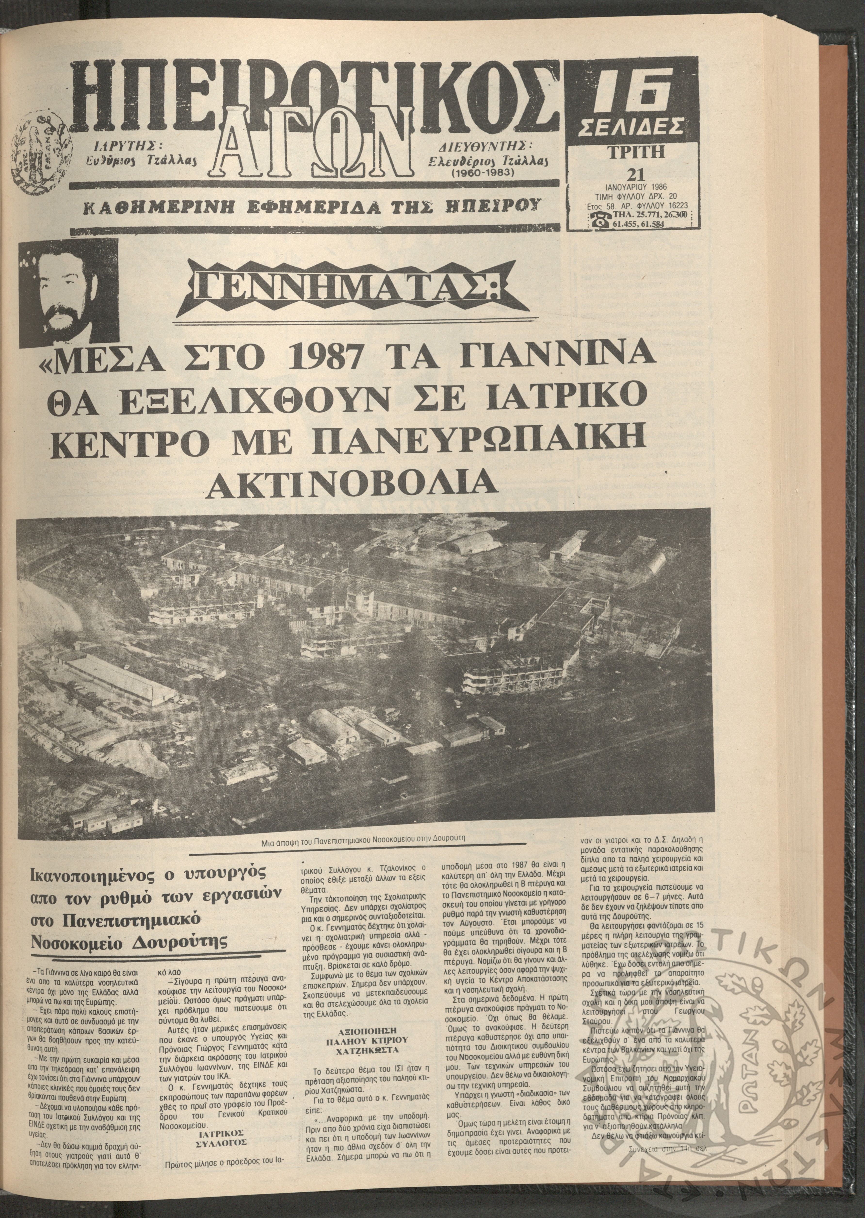 Ηπειρωτικός Αγών: καθημερινή εφημερίδα της Ηπείρου, 1986, φ. 16221