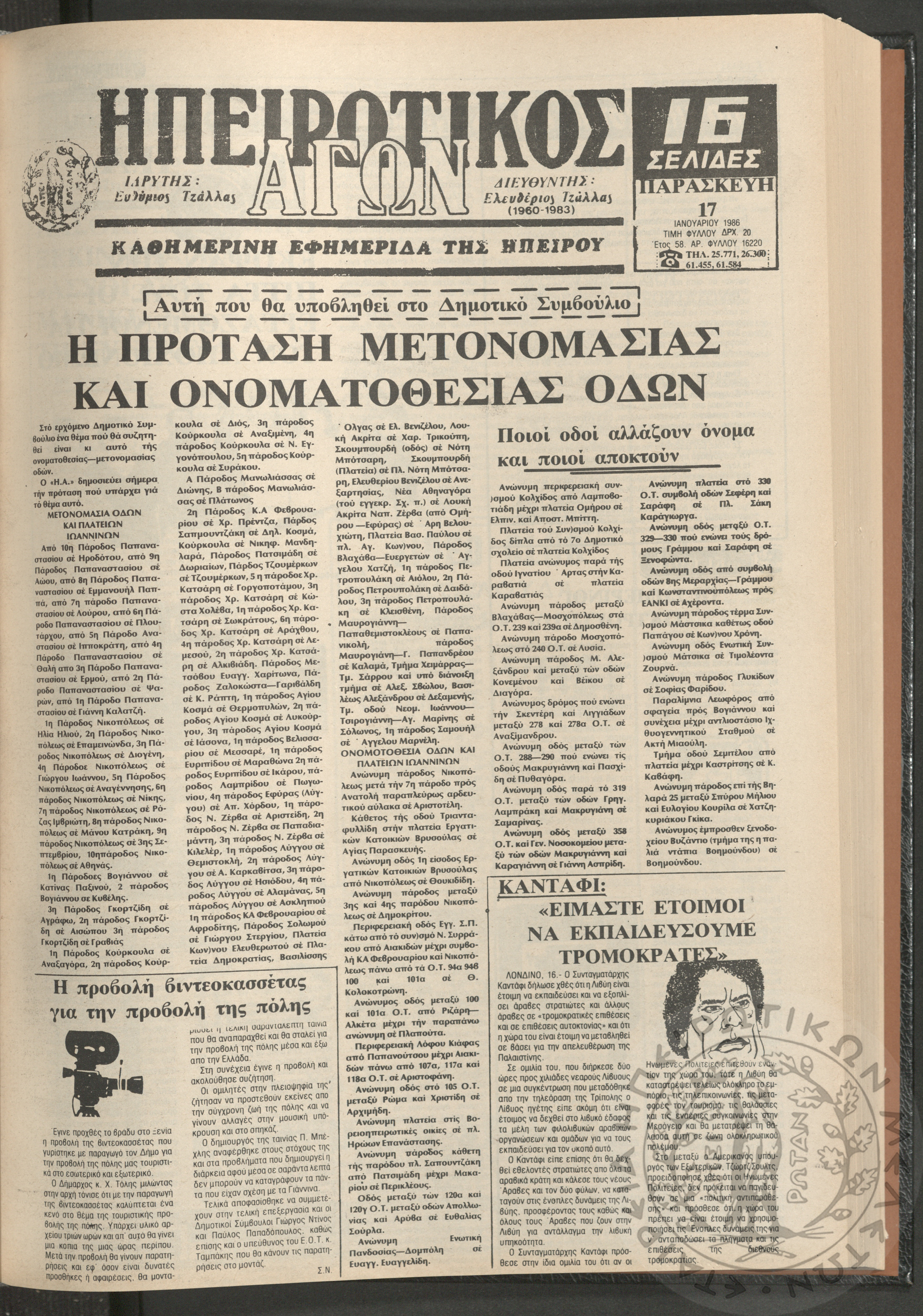Ηπειρωτικός Αγών: καθημερινή εφημερίδα της Ηπείρου, 1985, φ. 16170