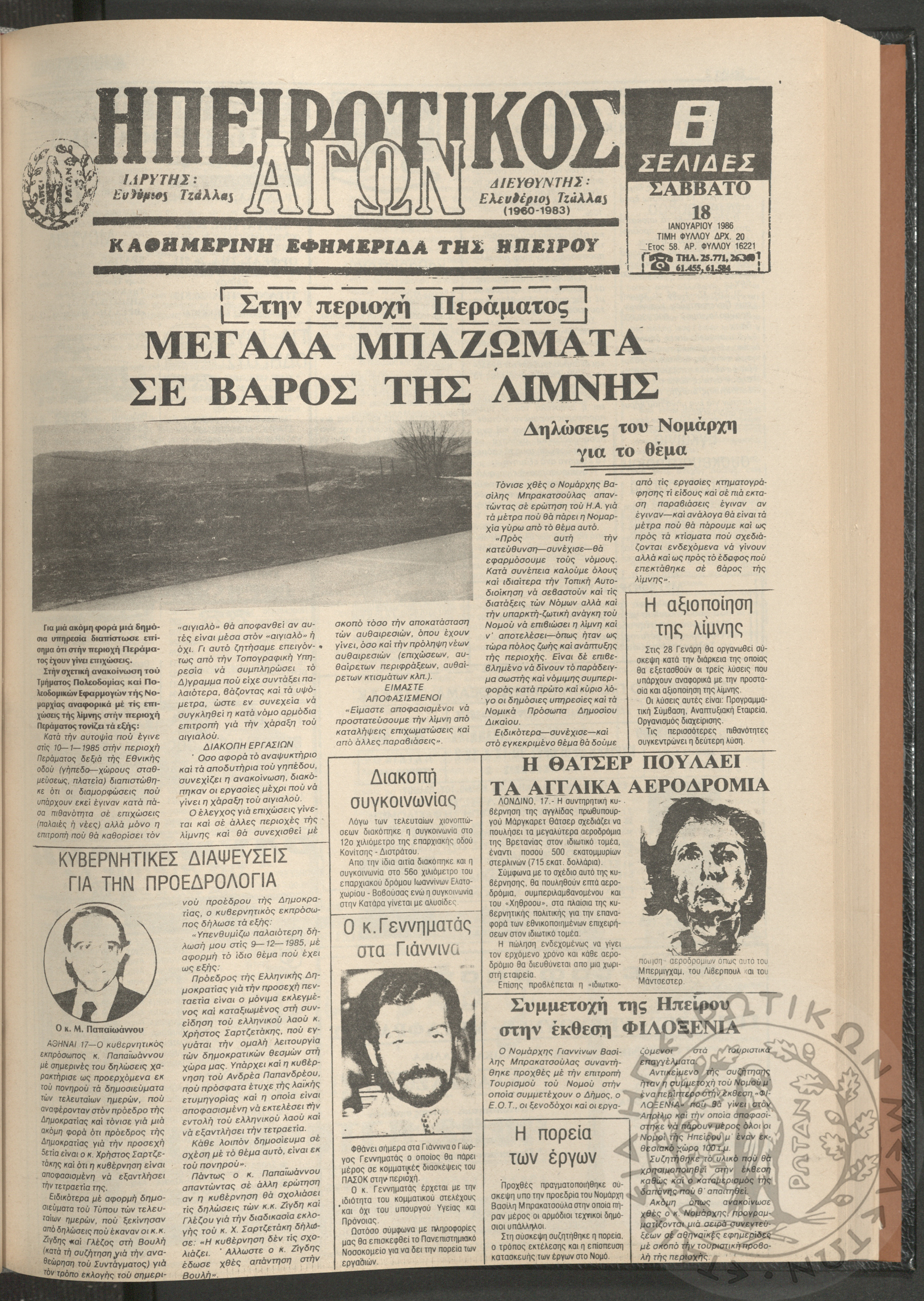 Ηπειρωτικός Αγών: καθημερινή εφημερίδα της Ηπείρου, 1986, φ. 16218