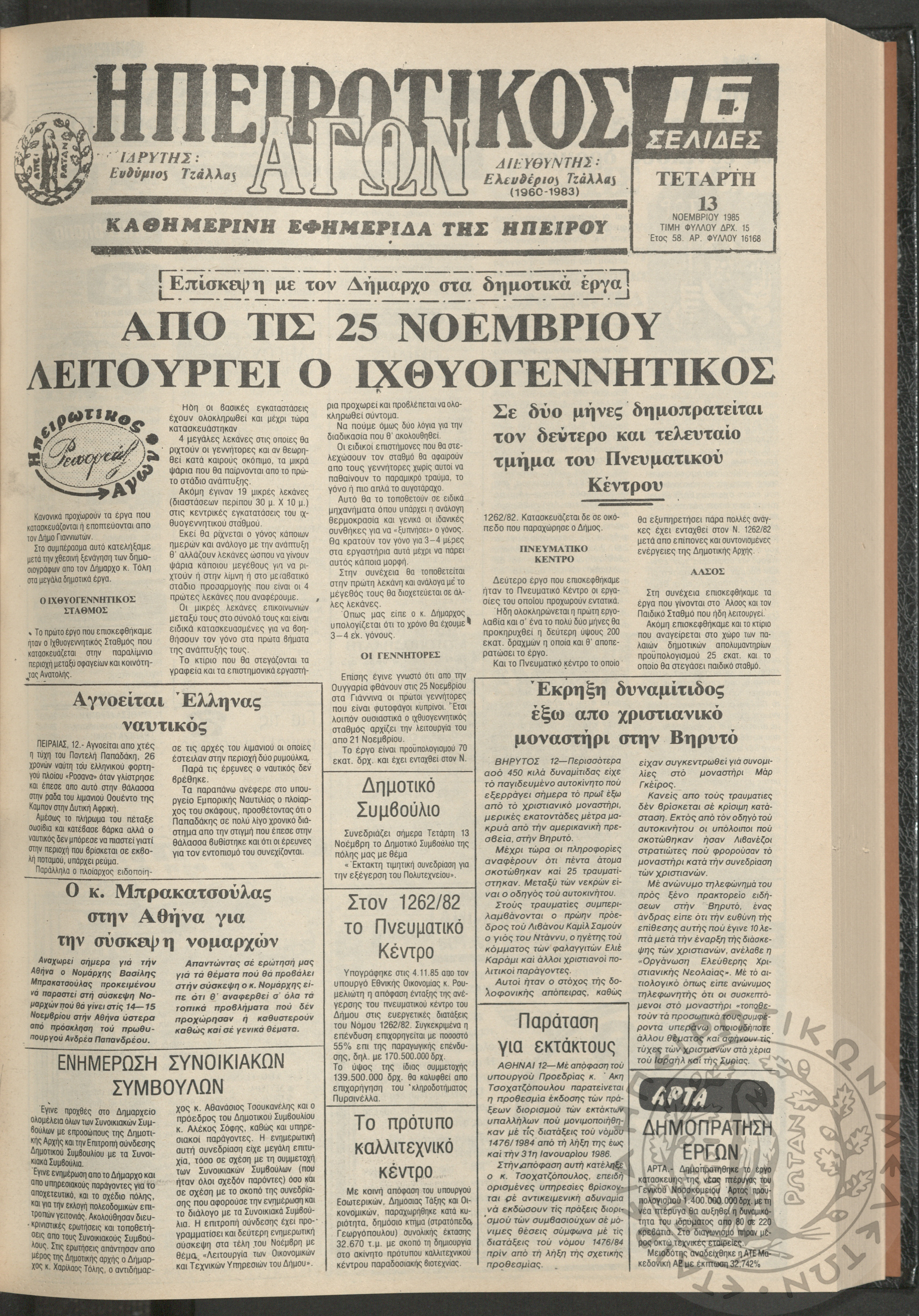 Ηπειρωτικός Αγών: καθημερινή εφημερίδα της Ηπείρου, 1985, φ. 16167
