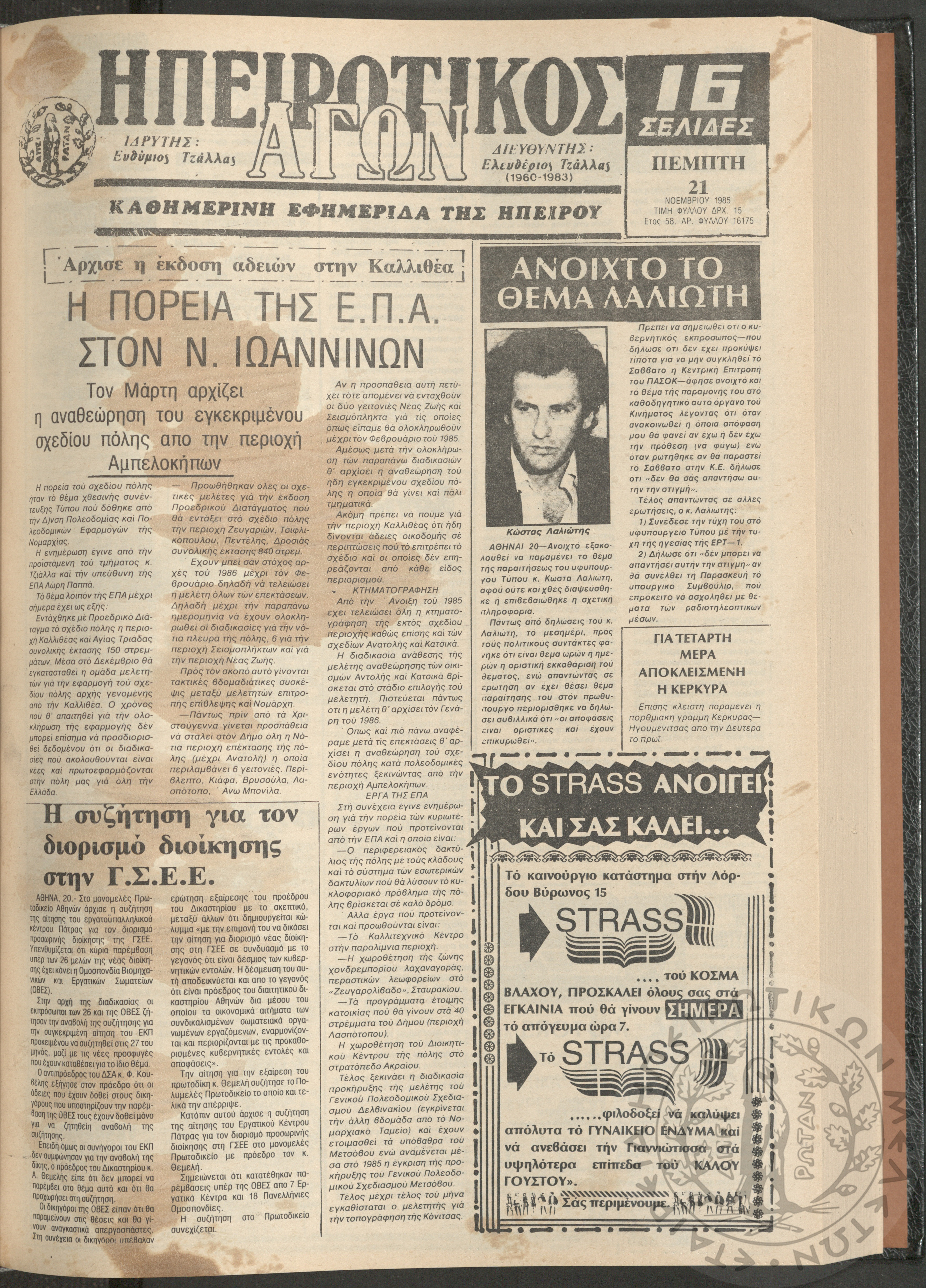 Ηπειρωτικός Αγών: καθημερινή εφημερίδα της Ηπείρου, 1985, φ. 16175