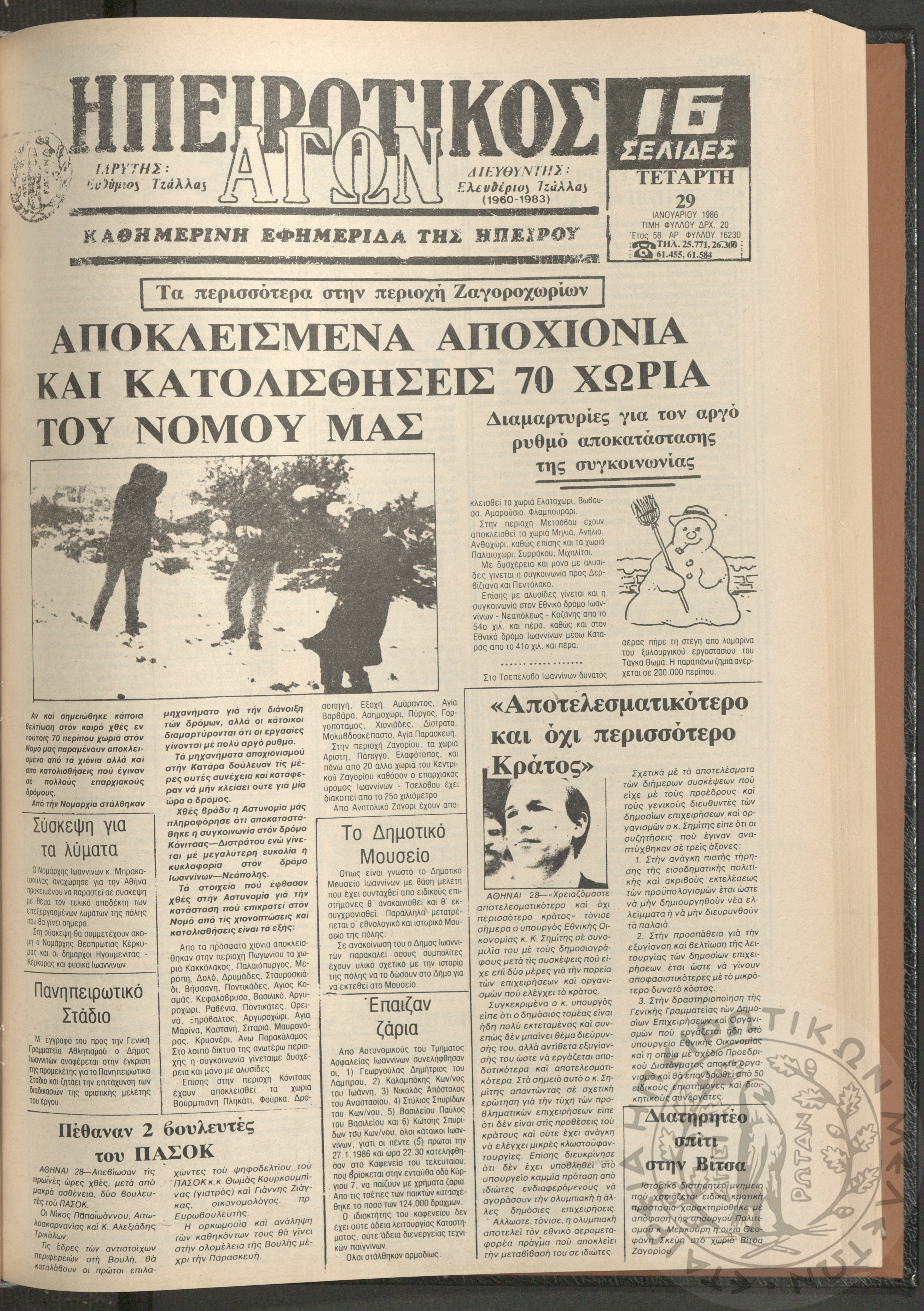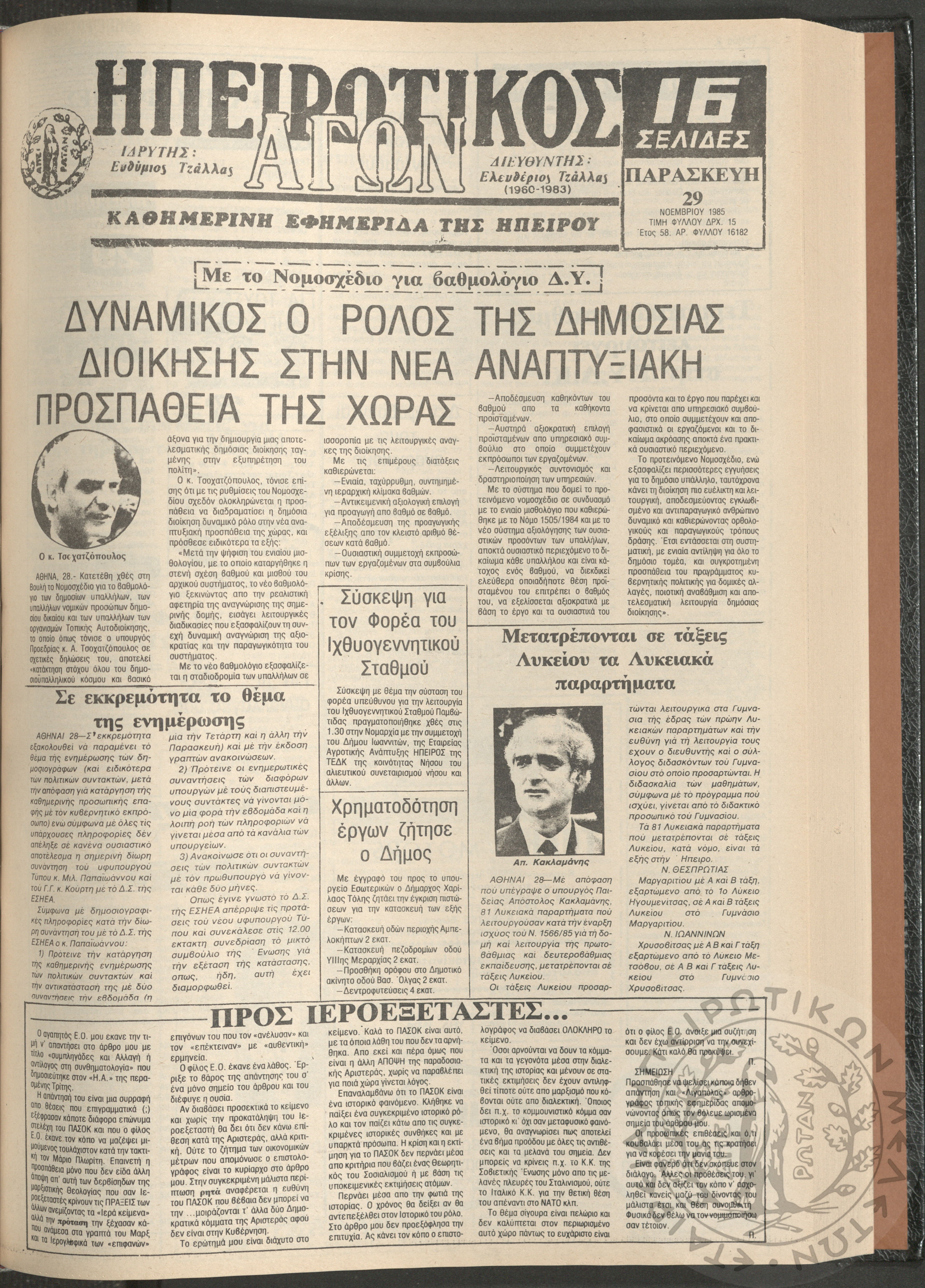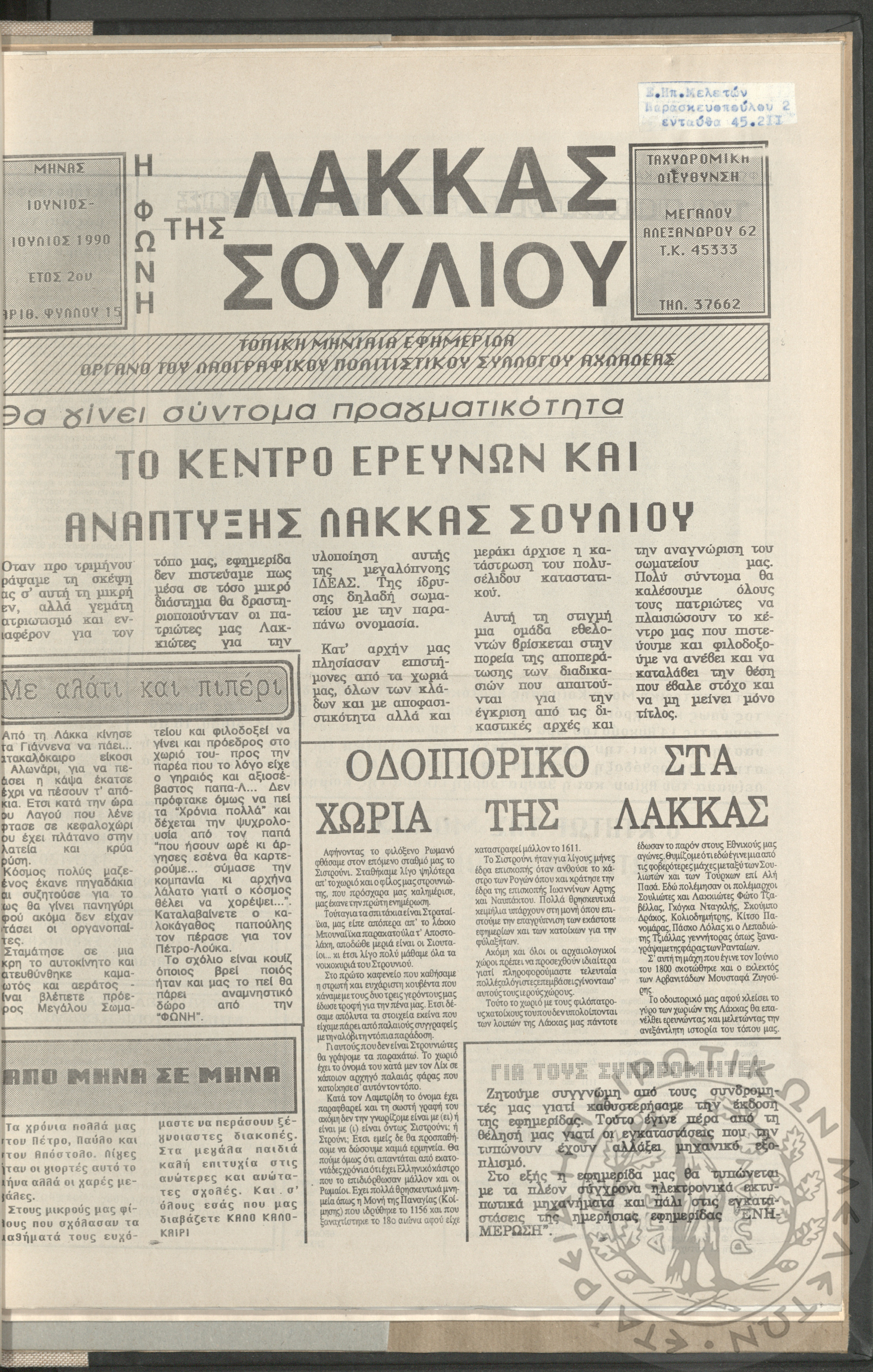 Η φωνή της Λάκκας Σουλίου: τοπική μηνιαία εφημερίδα-Όργανο του Λαογραφικού Πολιτιστικού Συλλόγου Αχλαδέας, 1990, φ. 15Έτος 2ο, αρ. φ. 15...