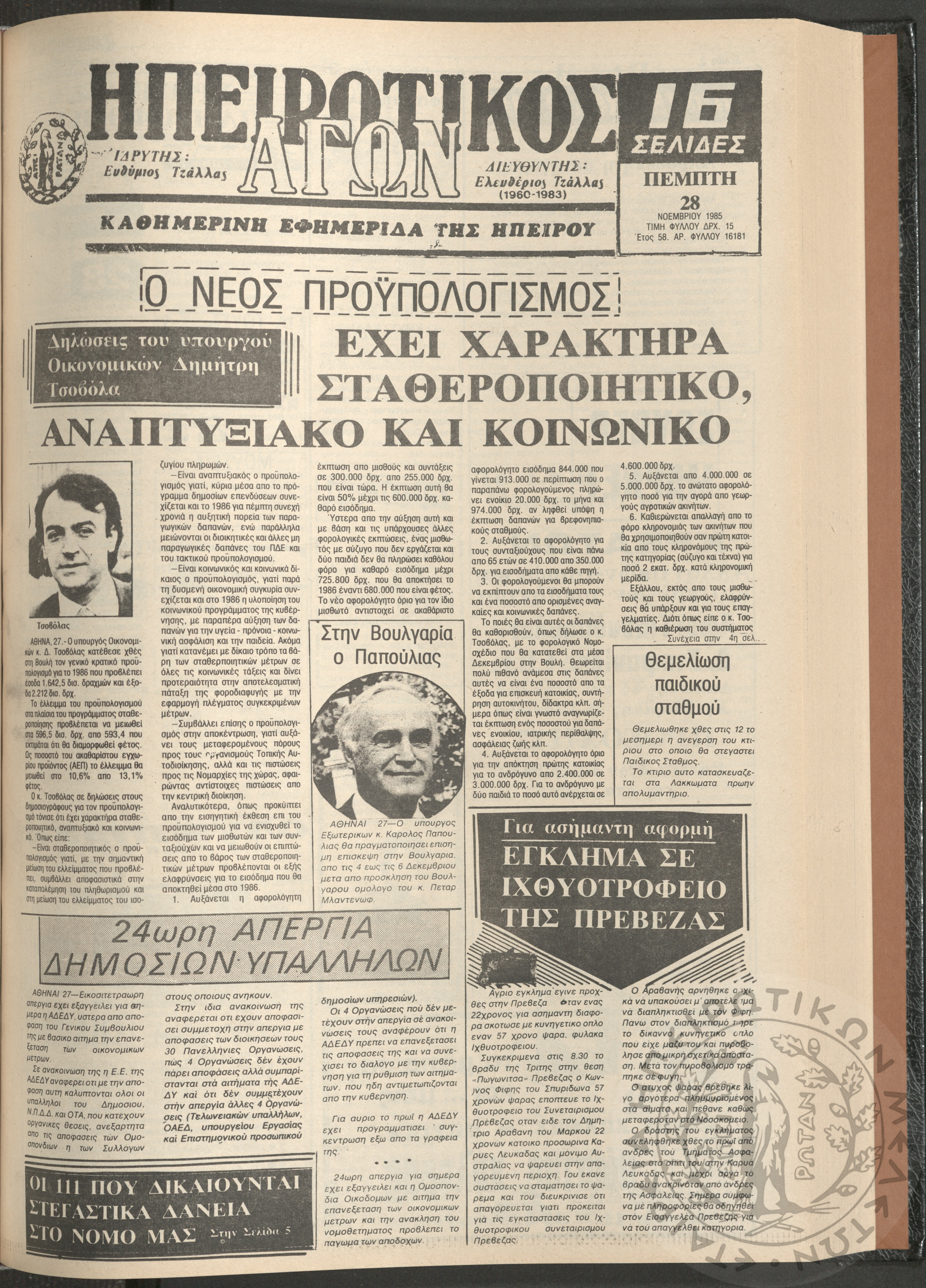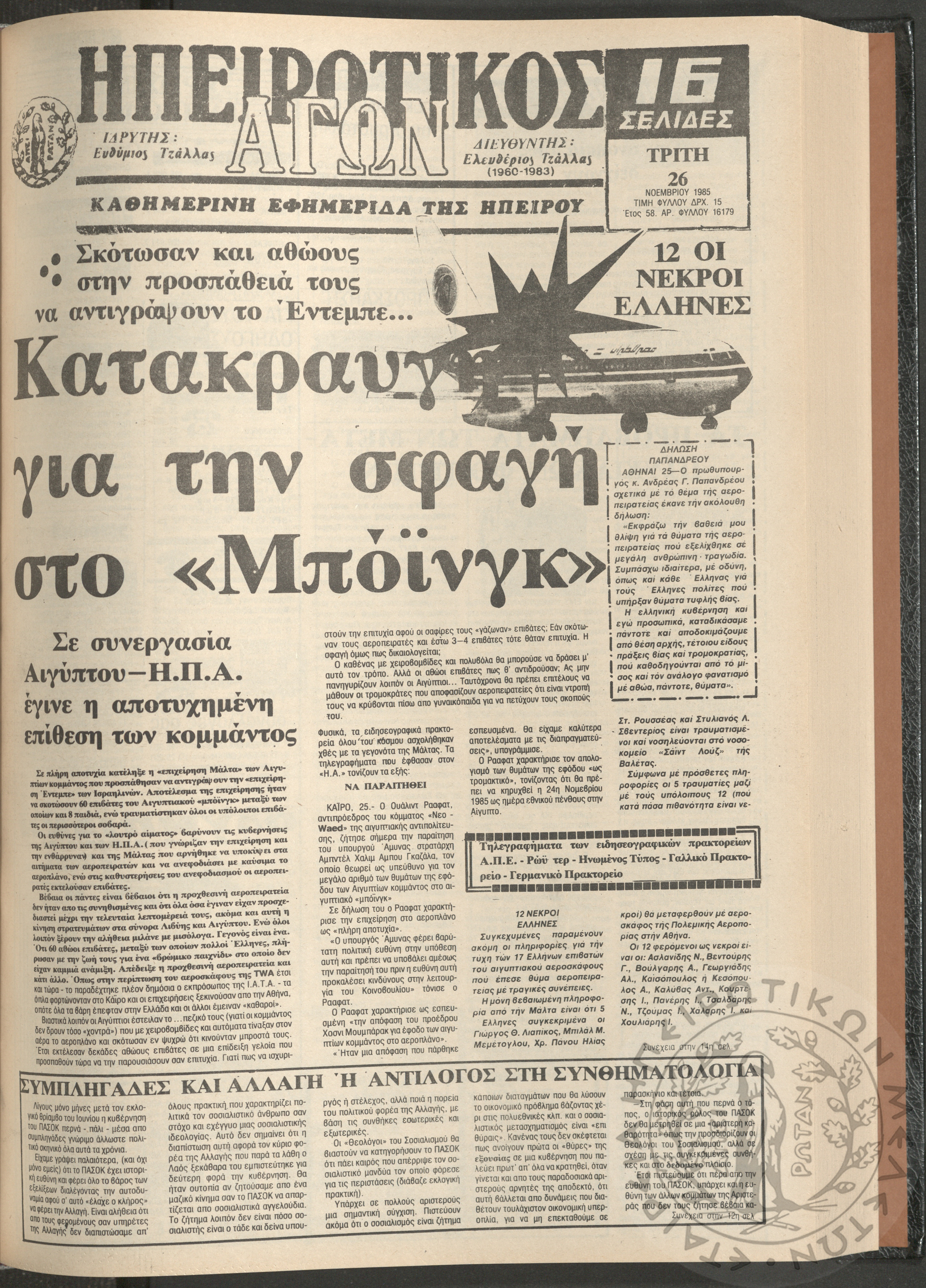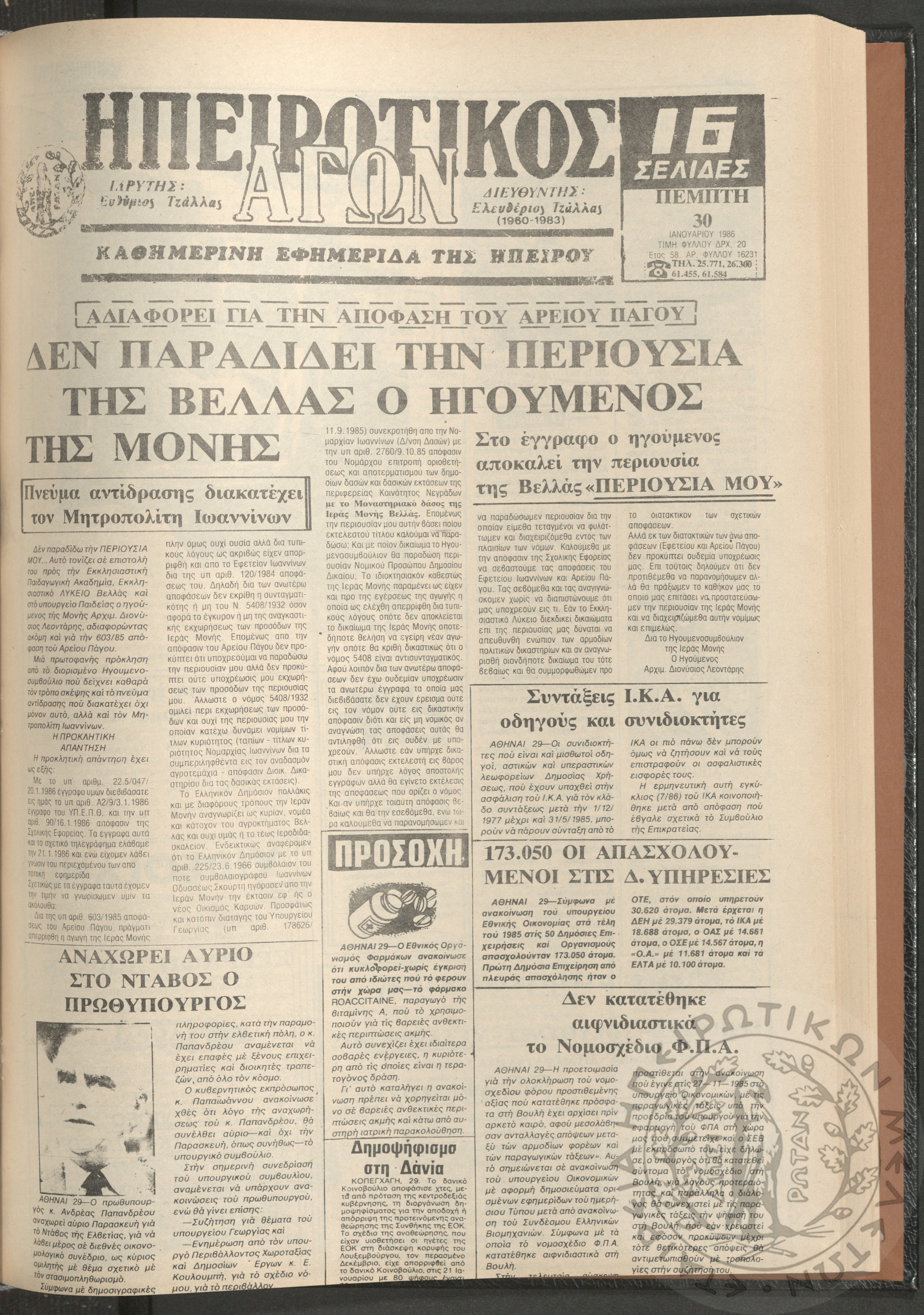 Η φωνή της Λάκκας Σουλίου: τοπική μηνιαία εφημερίδα-Όργανο του Λαογραφικού Πολιτιστικού Συλλόγου Αχλαδέας, 1990, φ. 15Έτος 2ο, αρ. φ. 15...