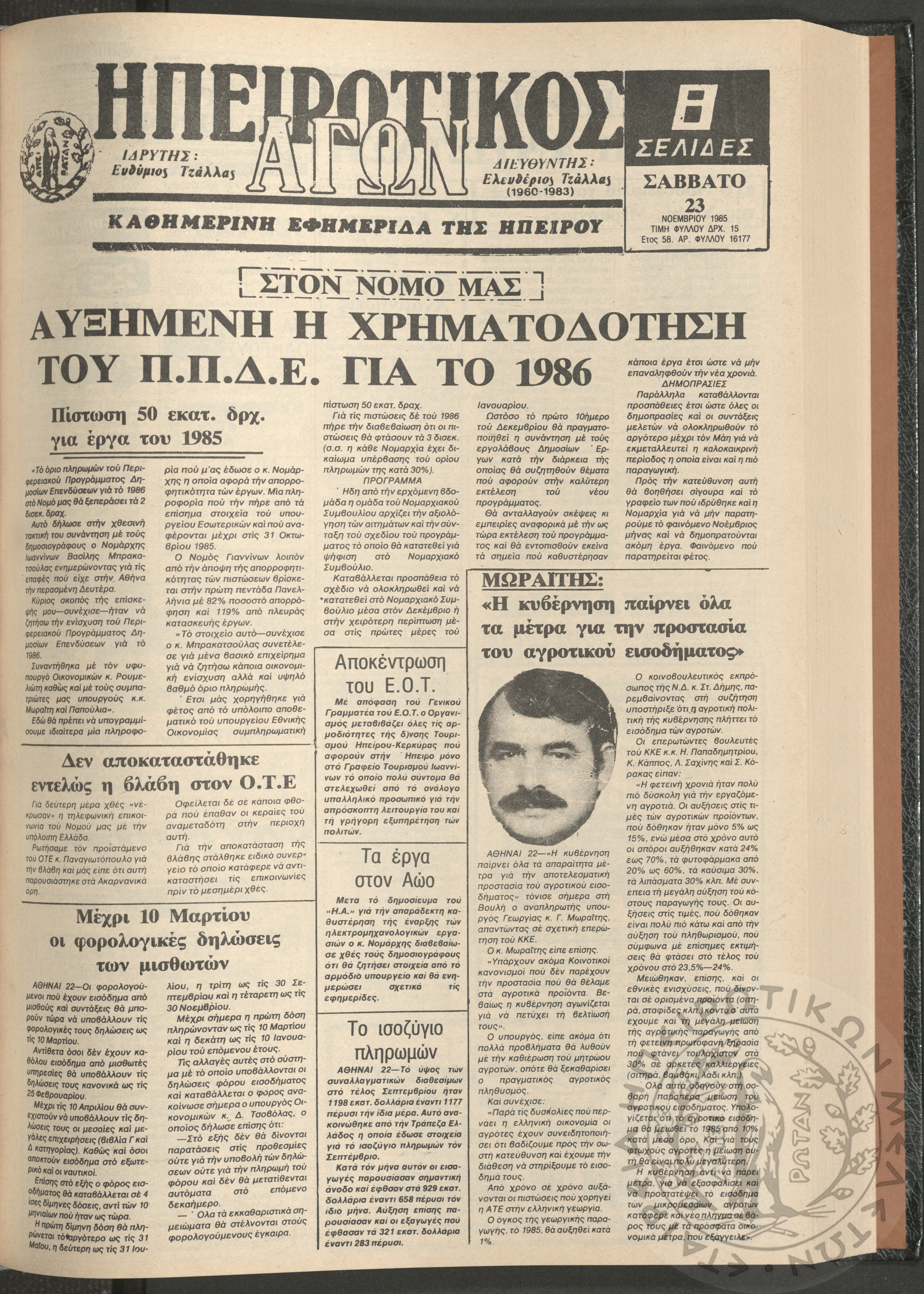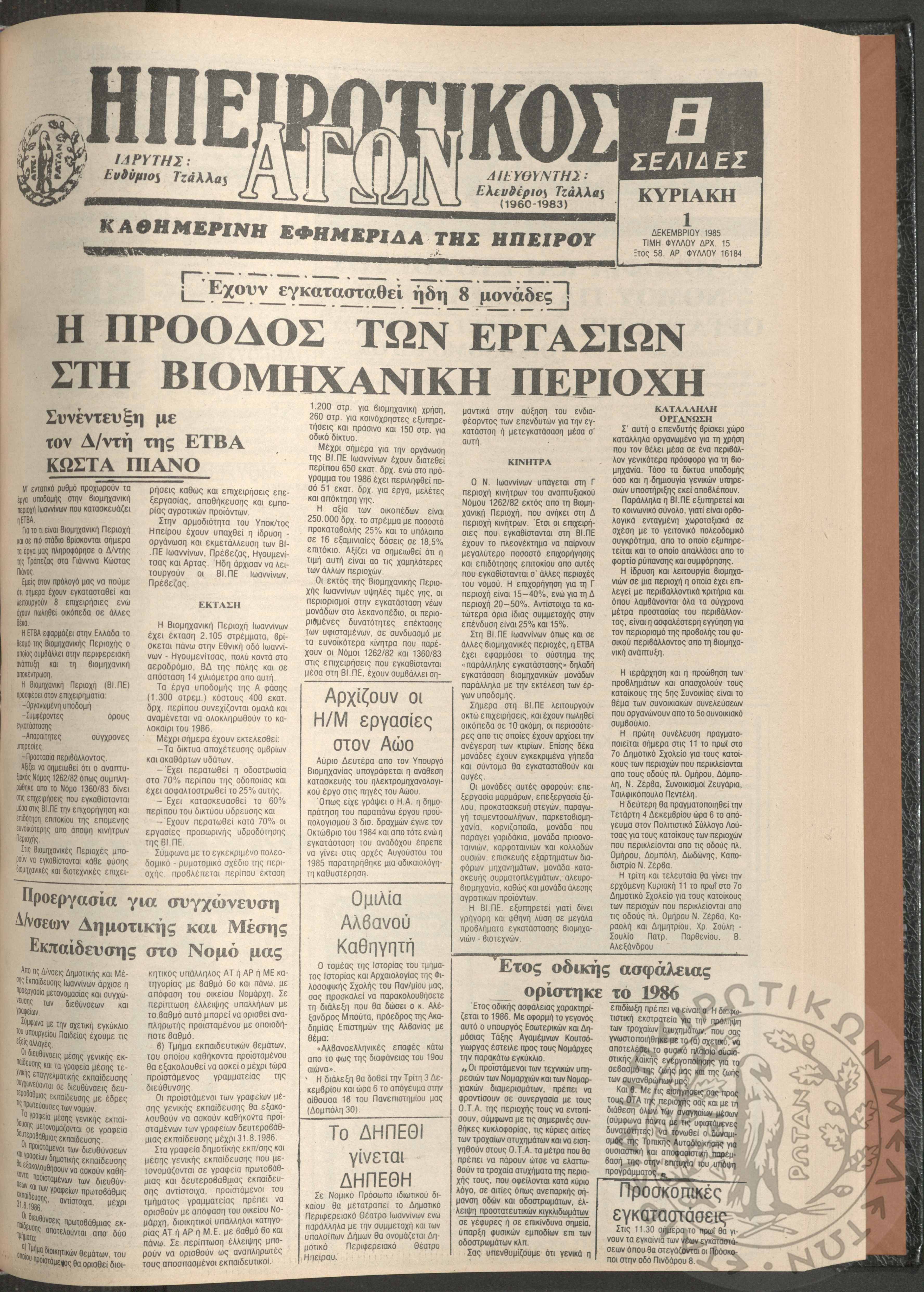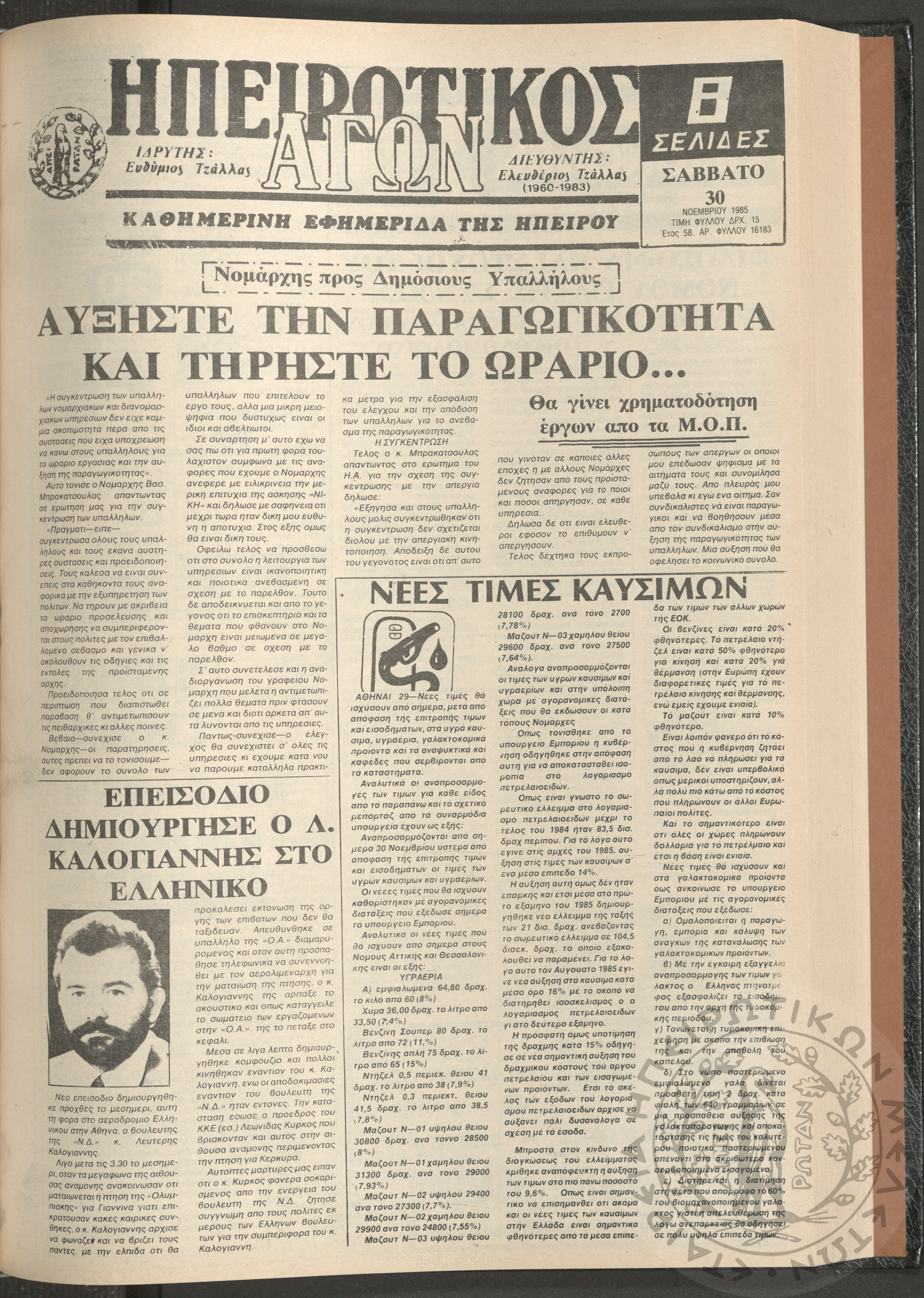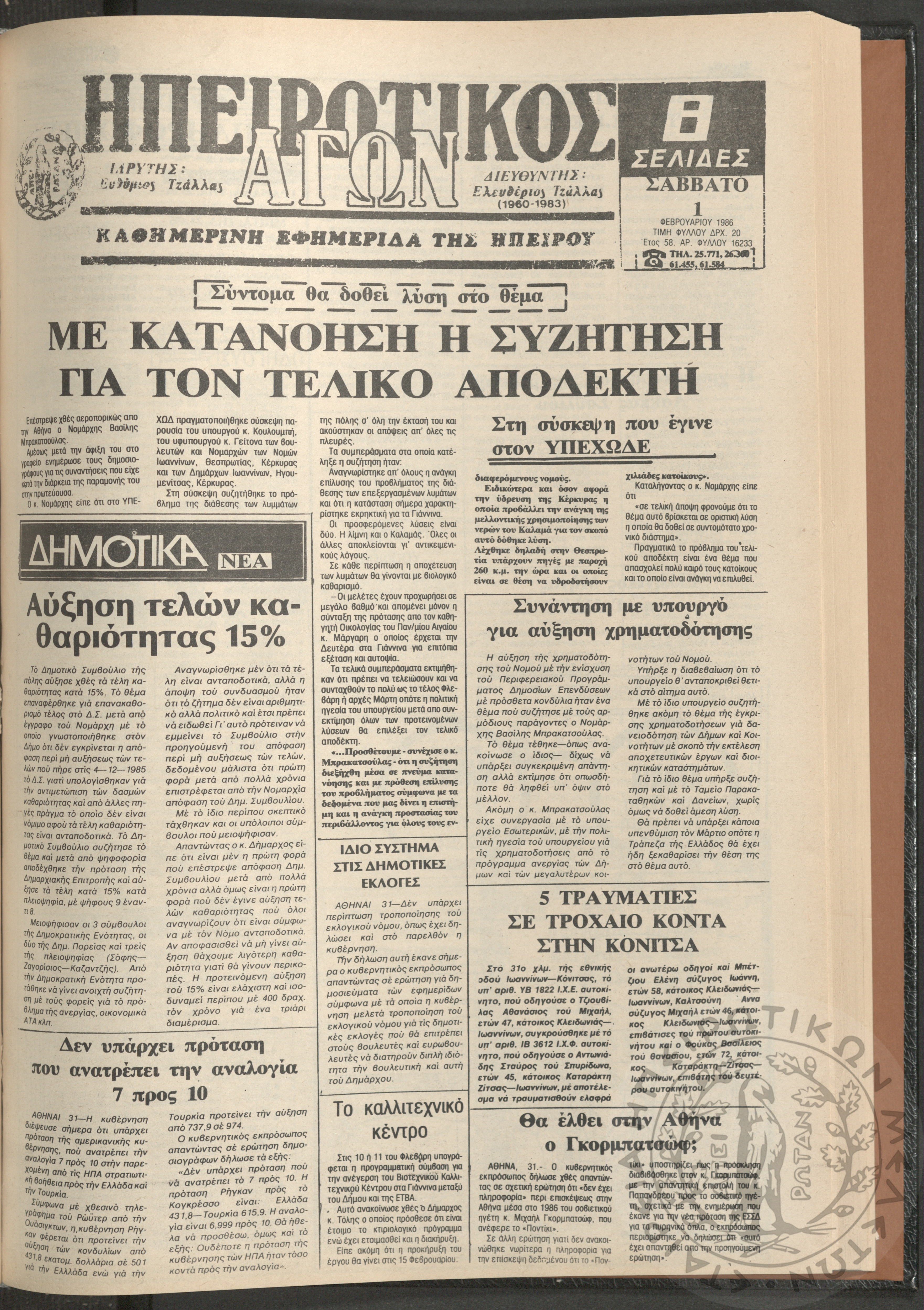 Η φωνή της Λάκκας Σούλι: τοπική μηνιαία εφημερίδα-Όργανο του Λαογραφικού Πολιτιστικού Συλλόγου Αχλαδέας, 1989, φ. 8Έτος Α΄, αρ. φ. 8...