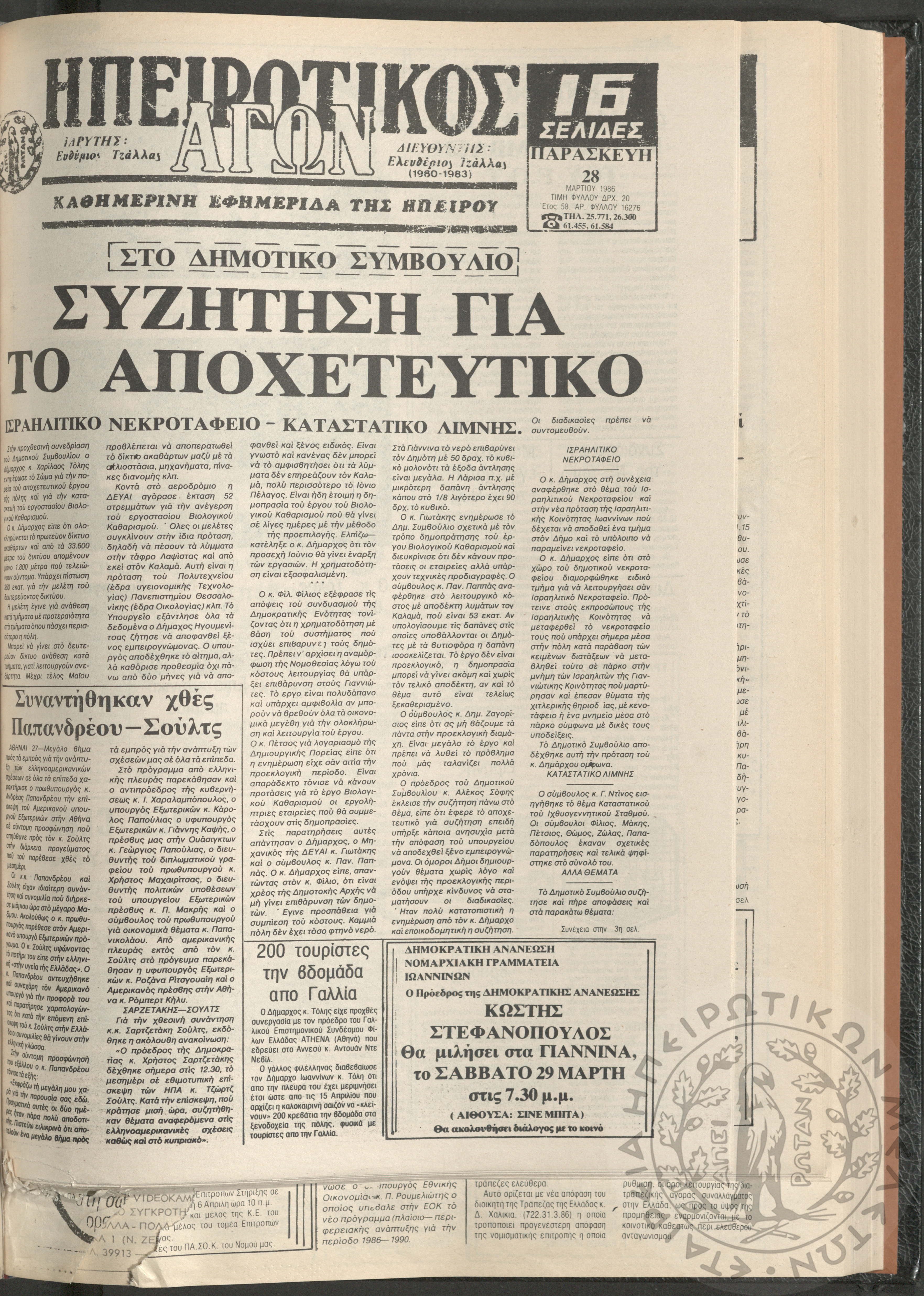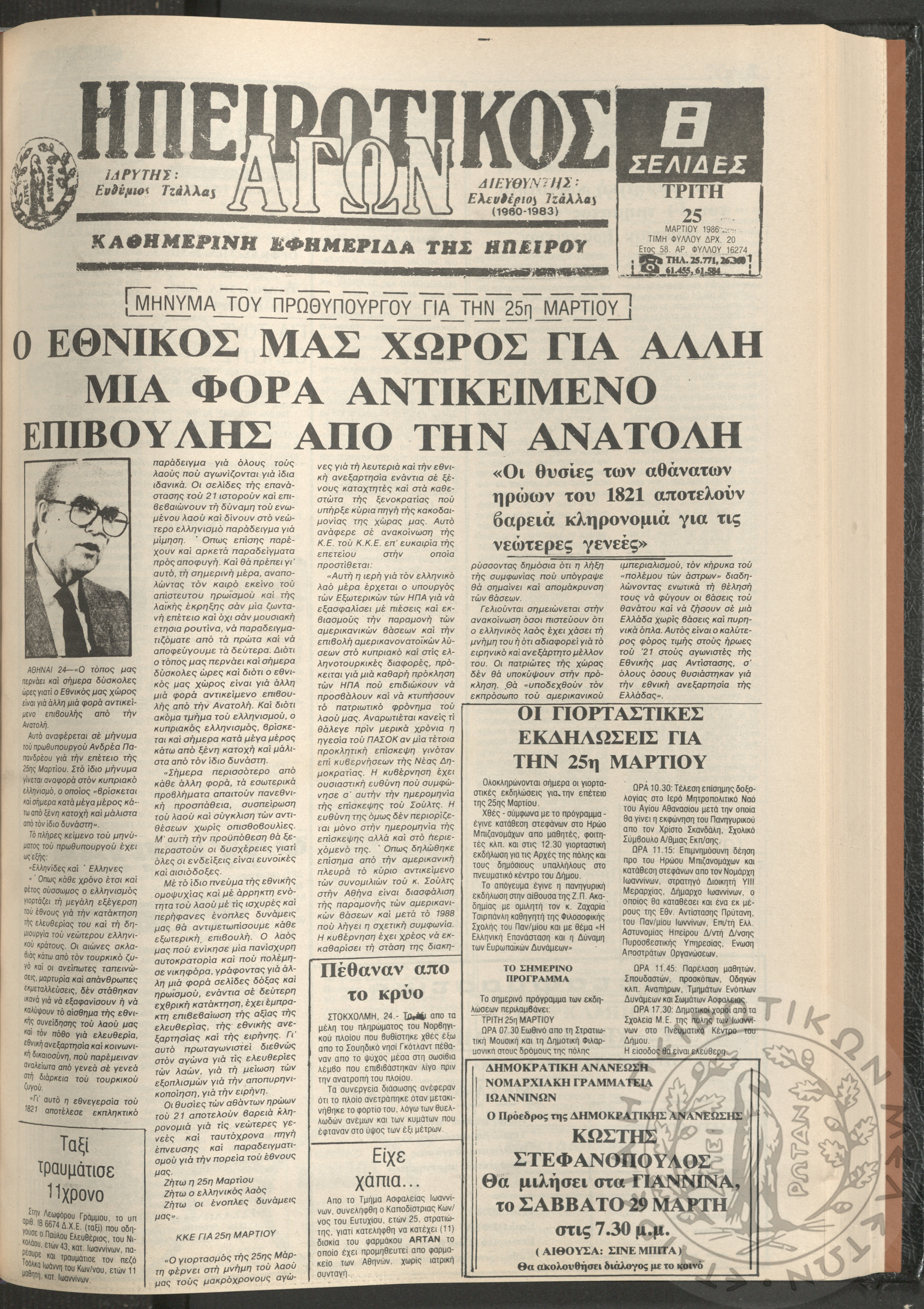 Ηπειρωτικός Αγών: η μεγαλυτέρα Ηπειρωτική εφημερίς εκδιδόμενη καθημερινώς εν Ιωαννίνοις, 1980, φ. 14540Έτος 54, φ. 14540...