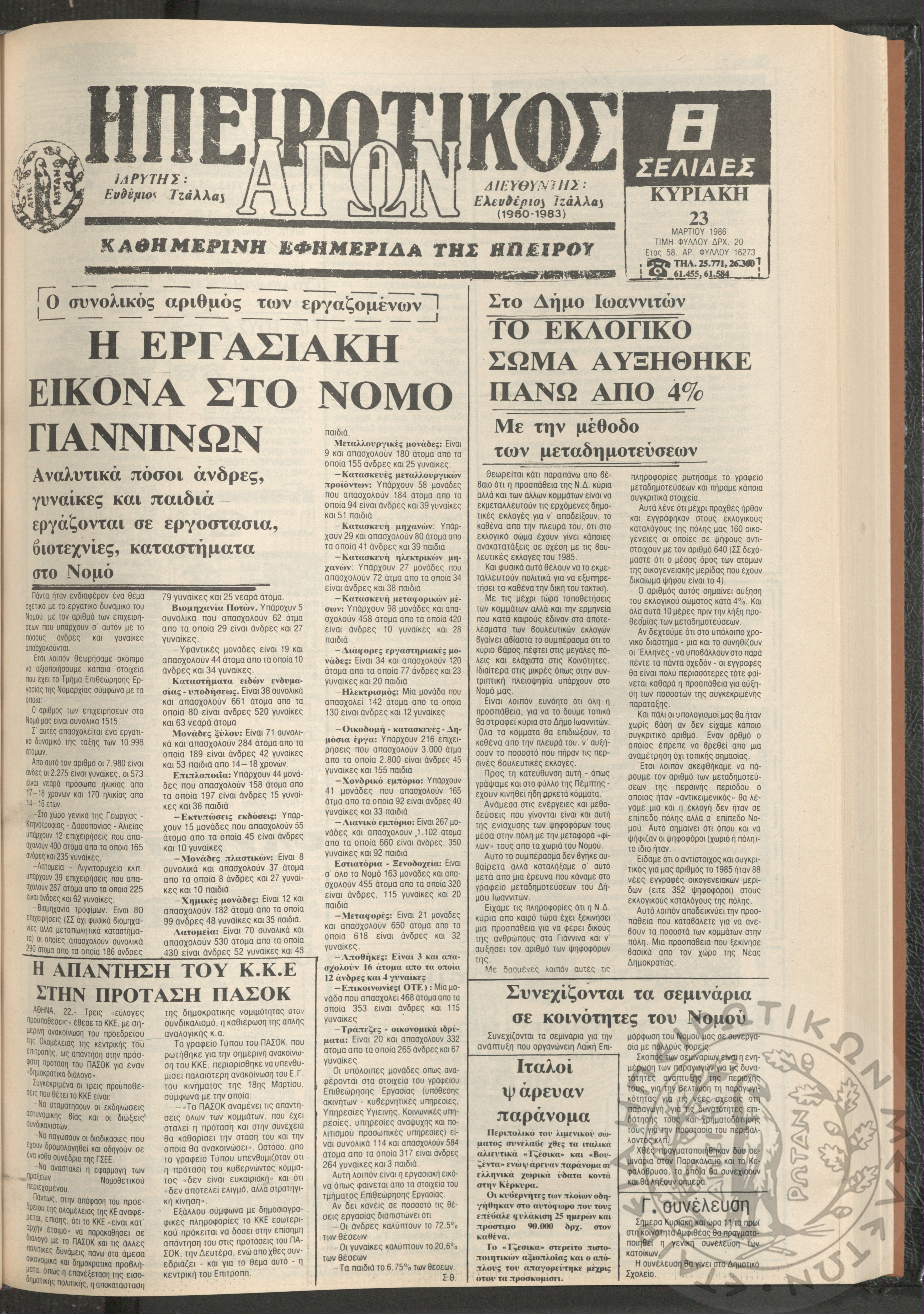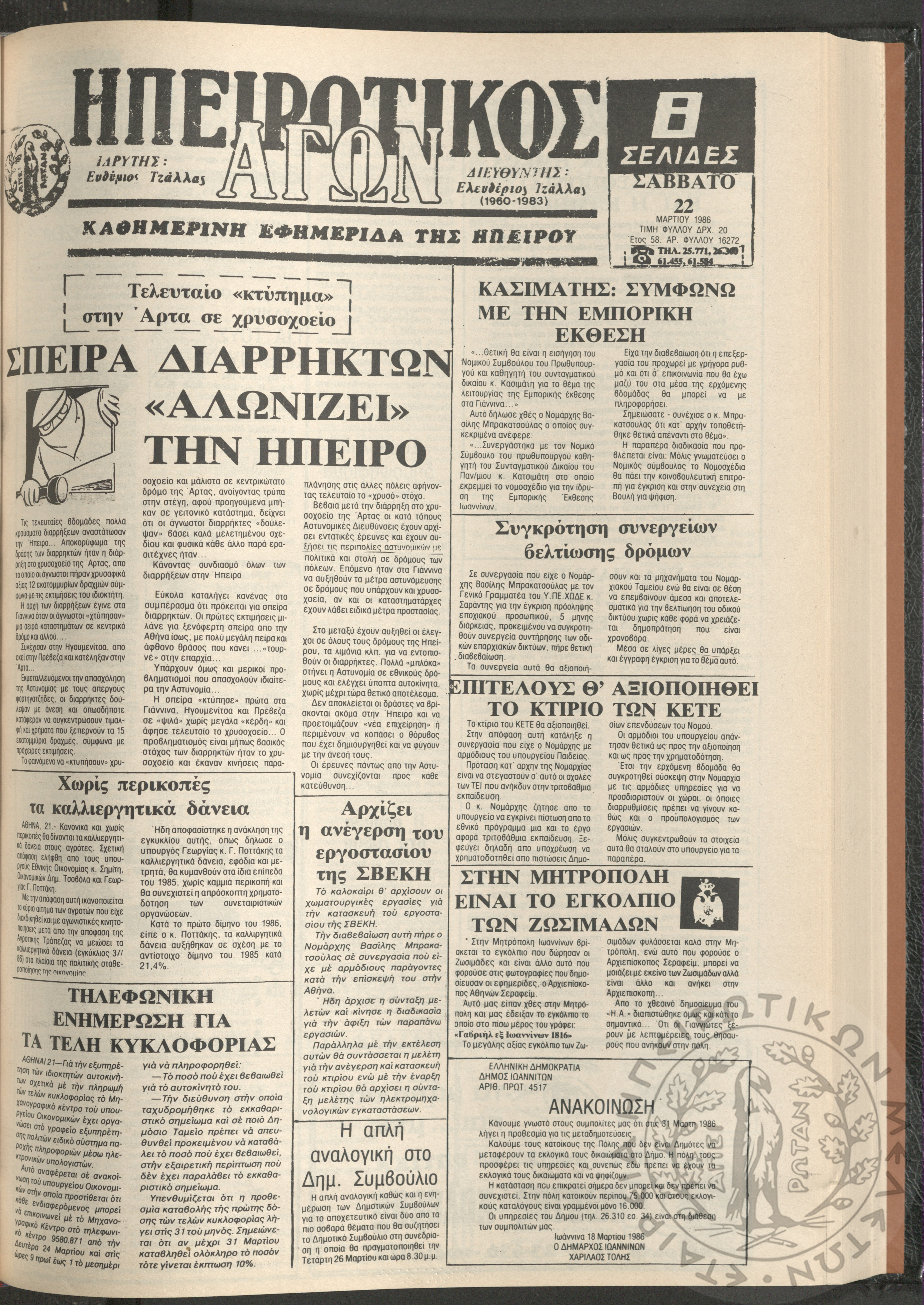 Ηπειρωτικός Αγών: η μεγαλυτέρα Ηπειρωτική εφημερίς εκδιδόμενη καθημερινώς εν Ιωαννίνοις, 1980, φ. 14543Έτος 54, φ. 14543...