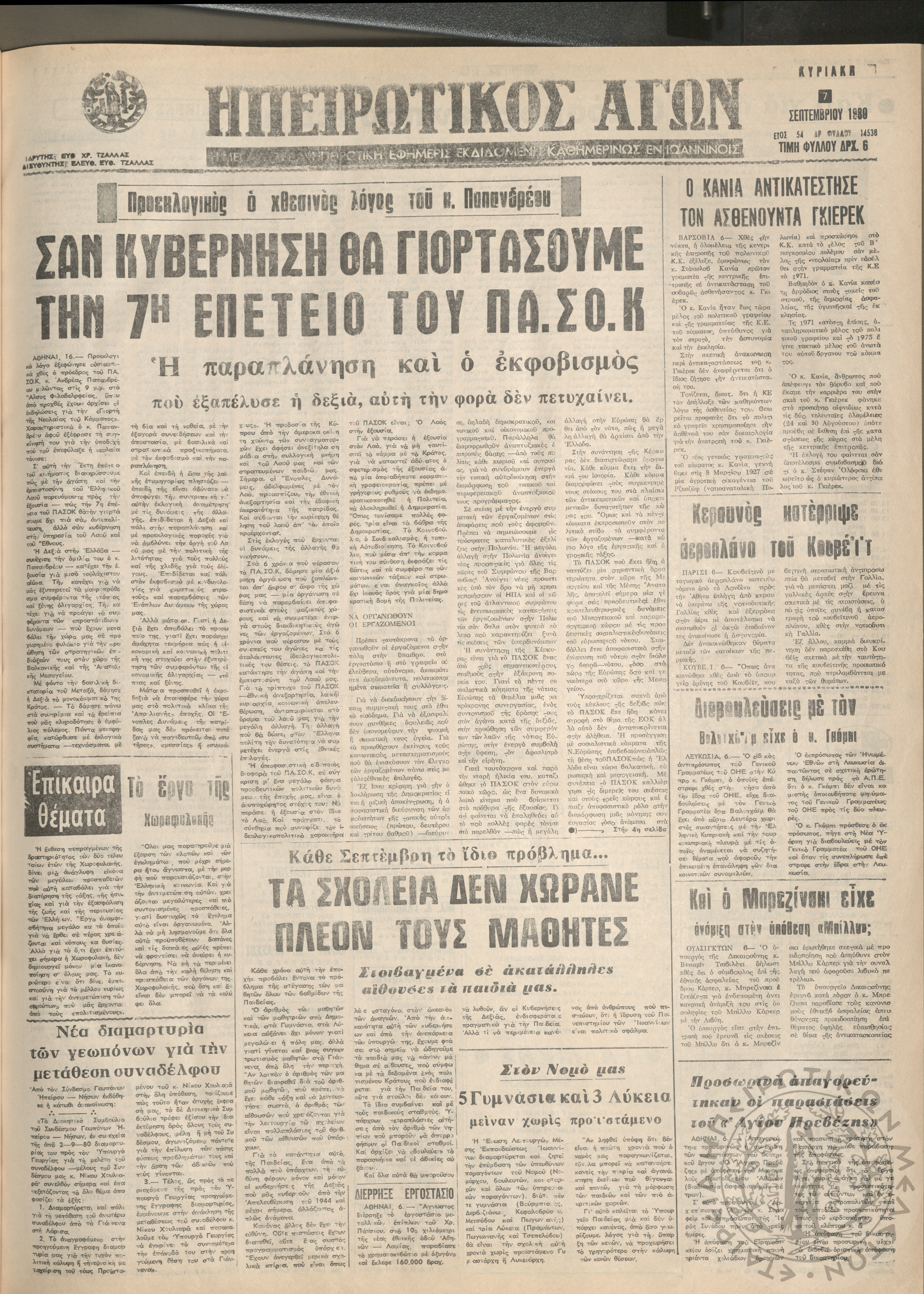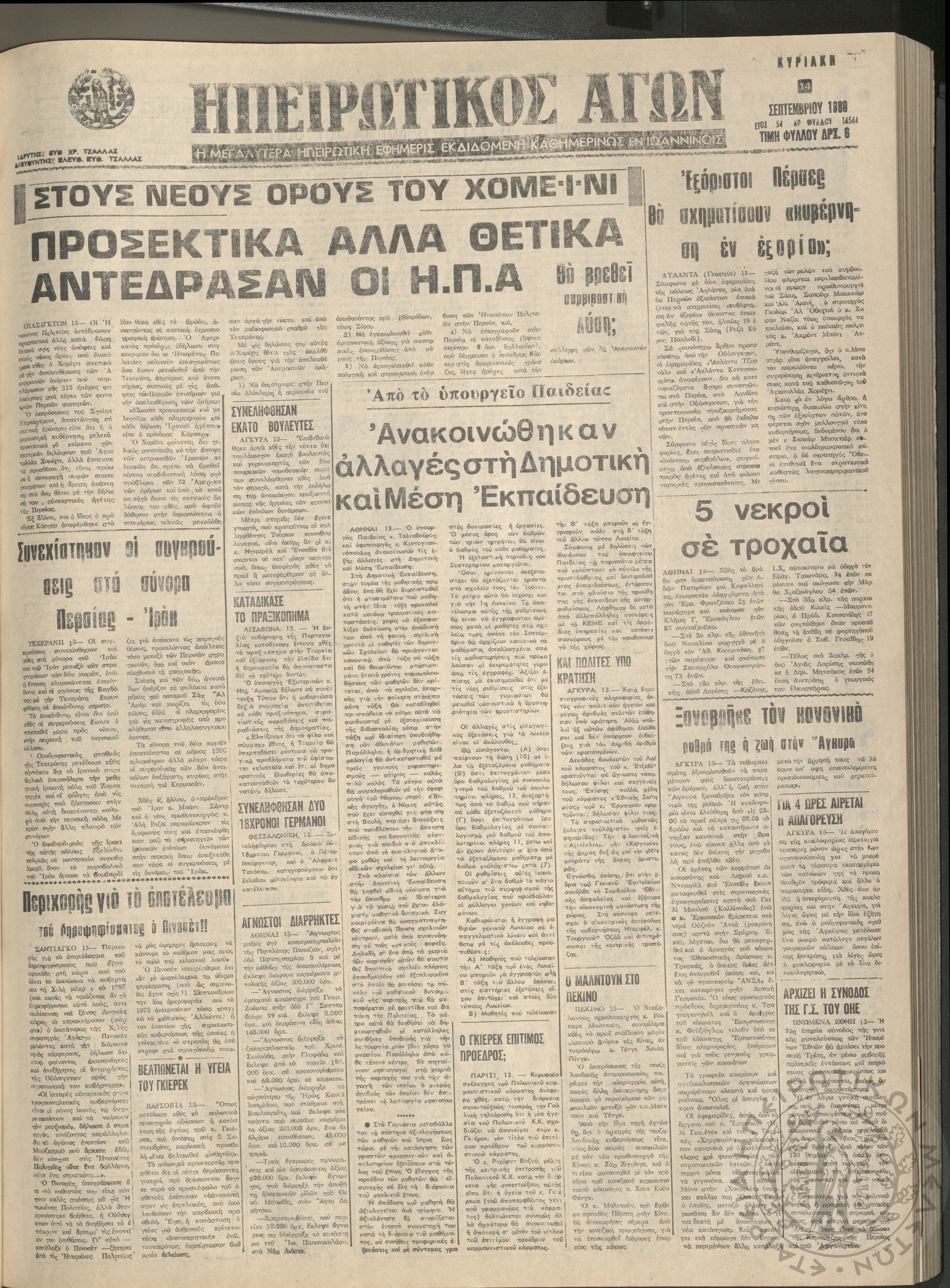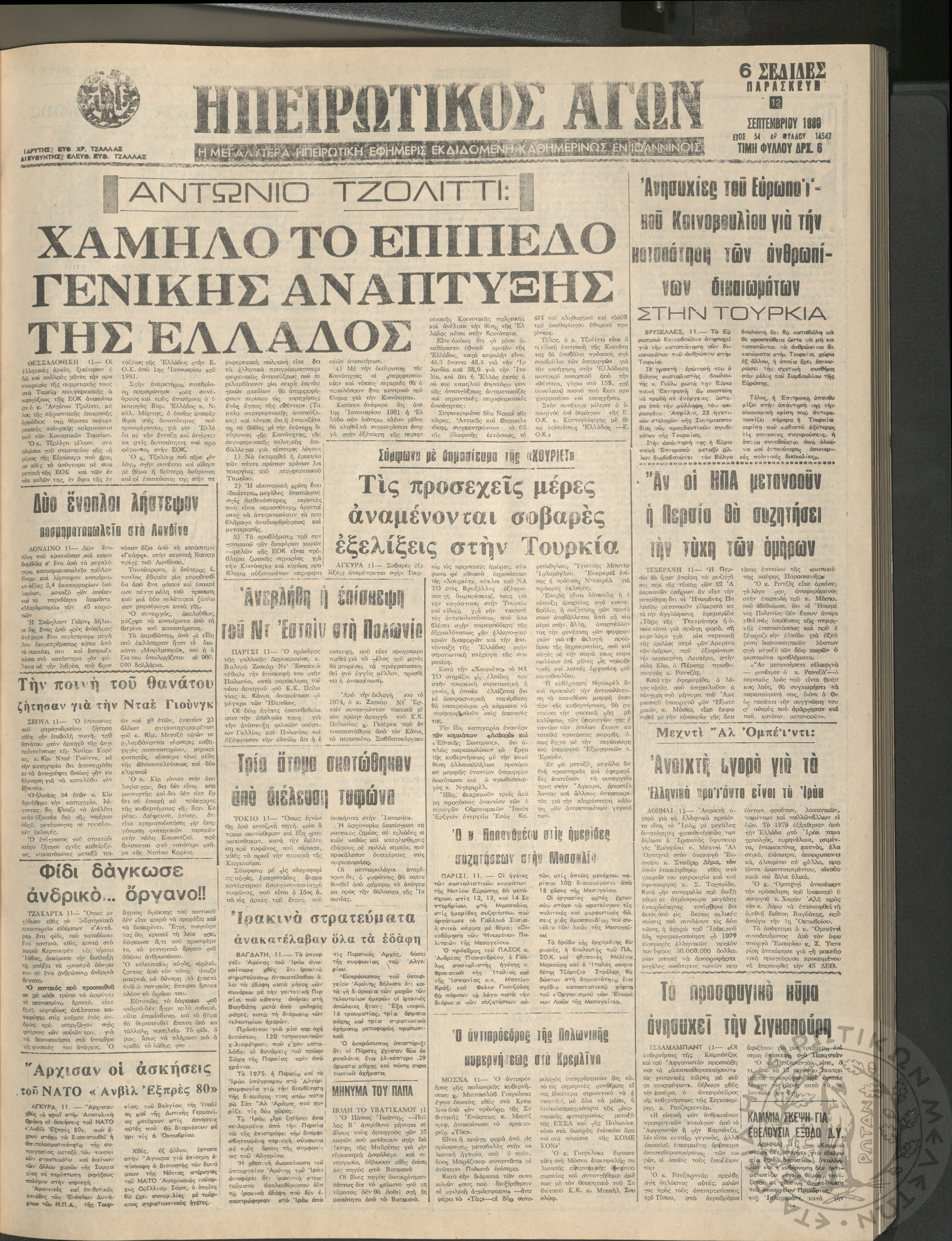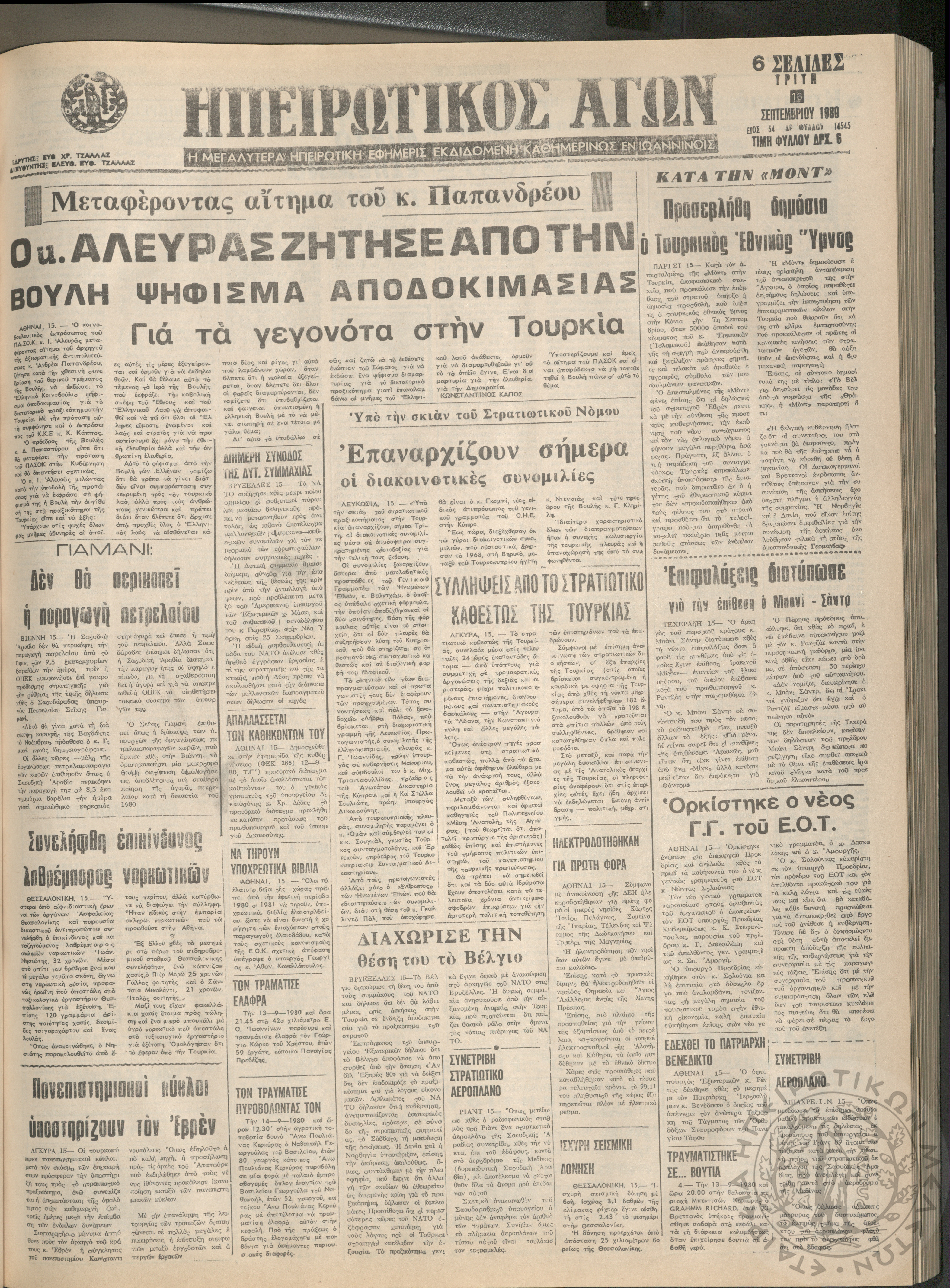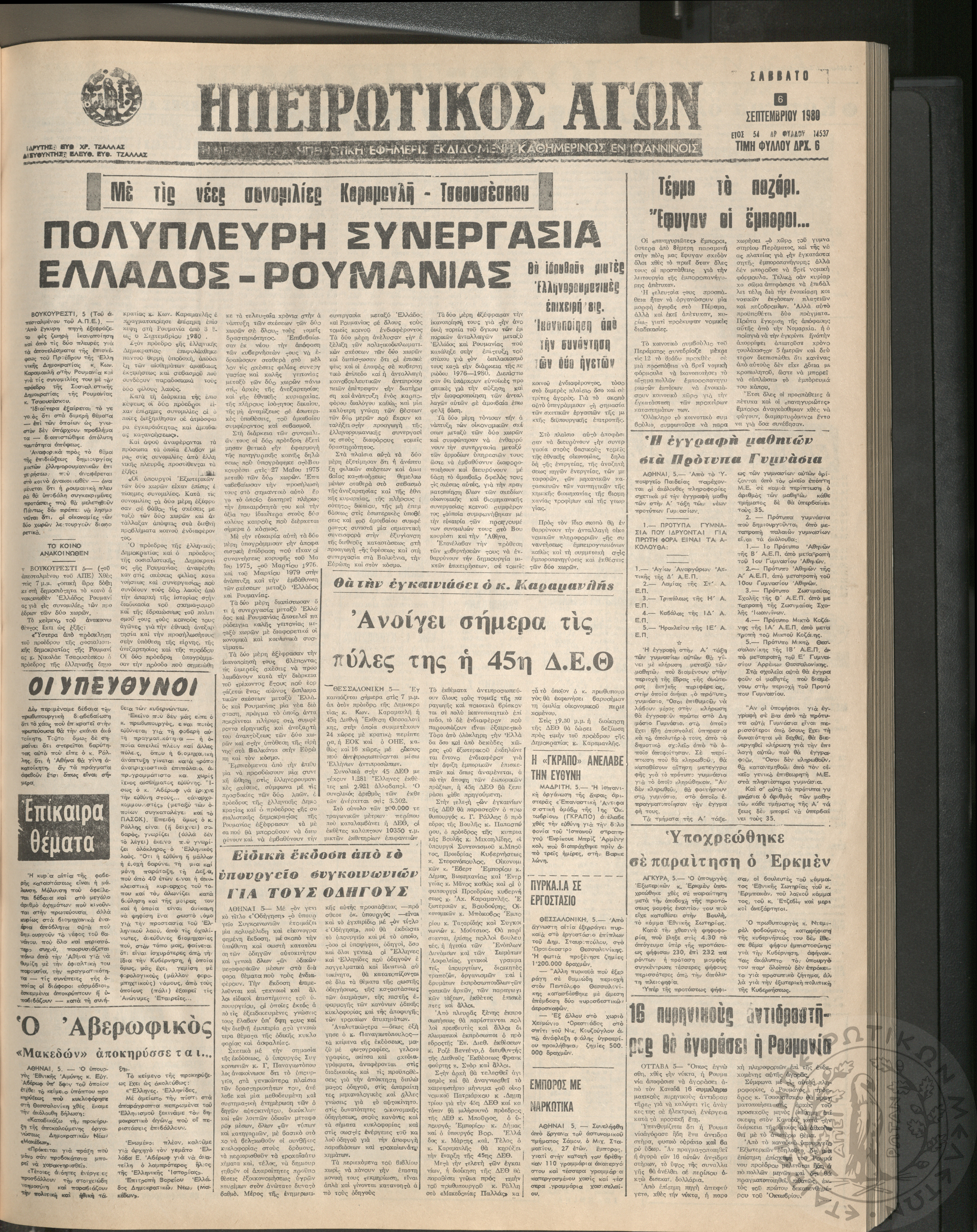 Ηπειρωτικός Αγών: η μεγαλυτέρα Ηπειρωτική εφημερίς εκδιδόμενη καθημερινώς εν Ιωαννίνοις, 1980, φ. 14547Έτος 54, φ. 14547...