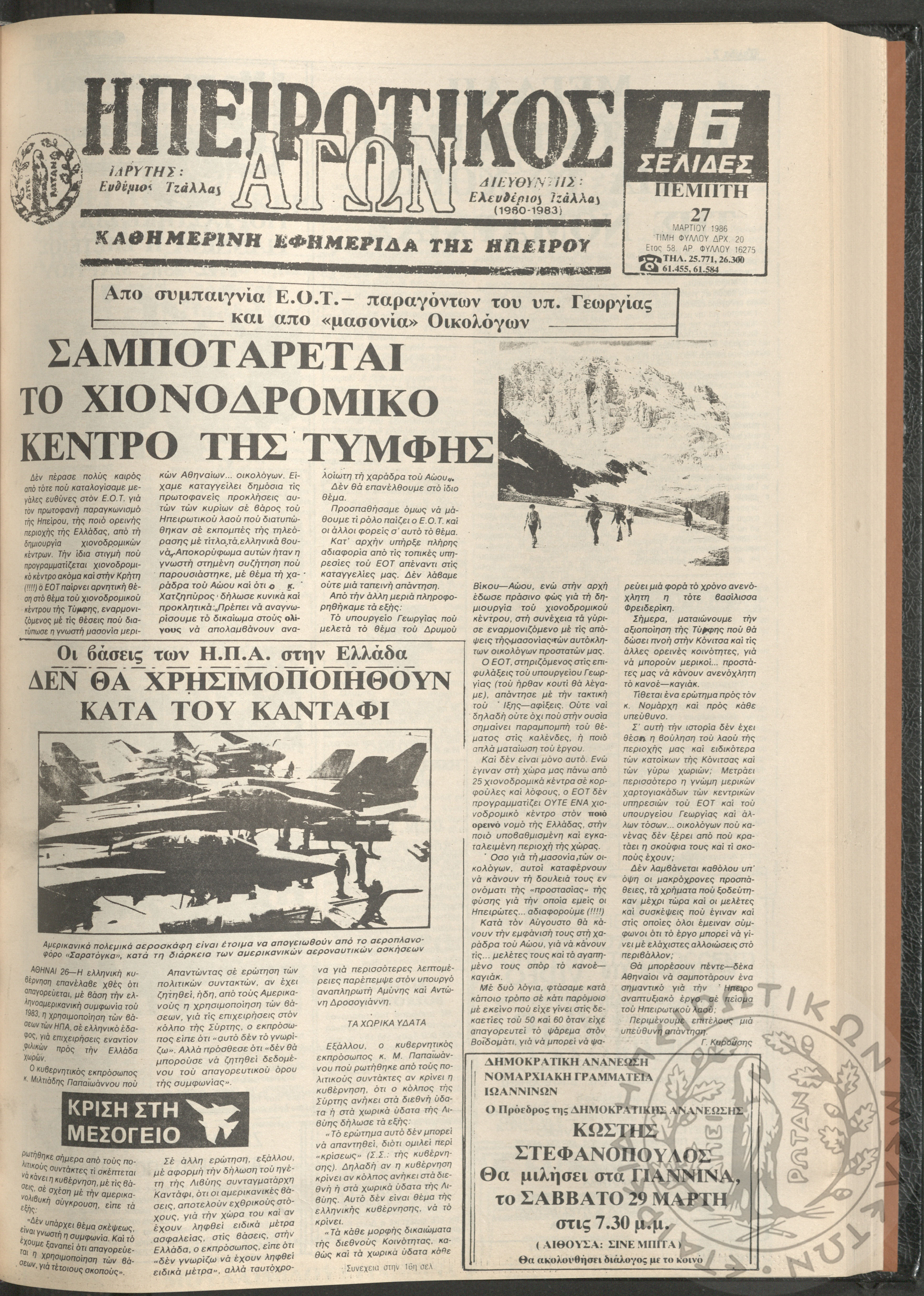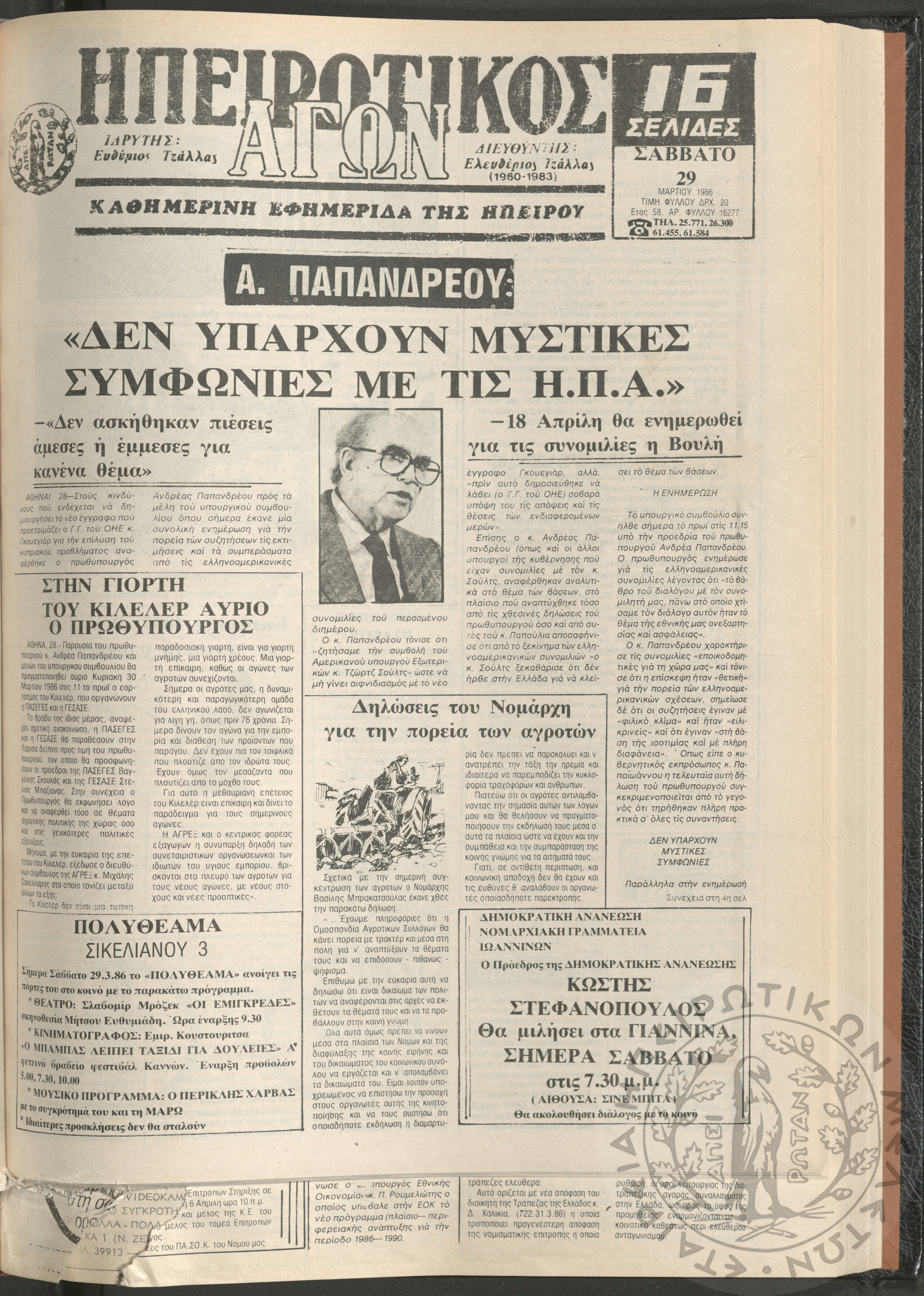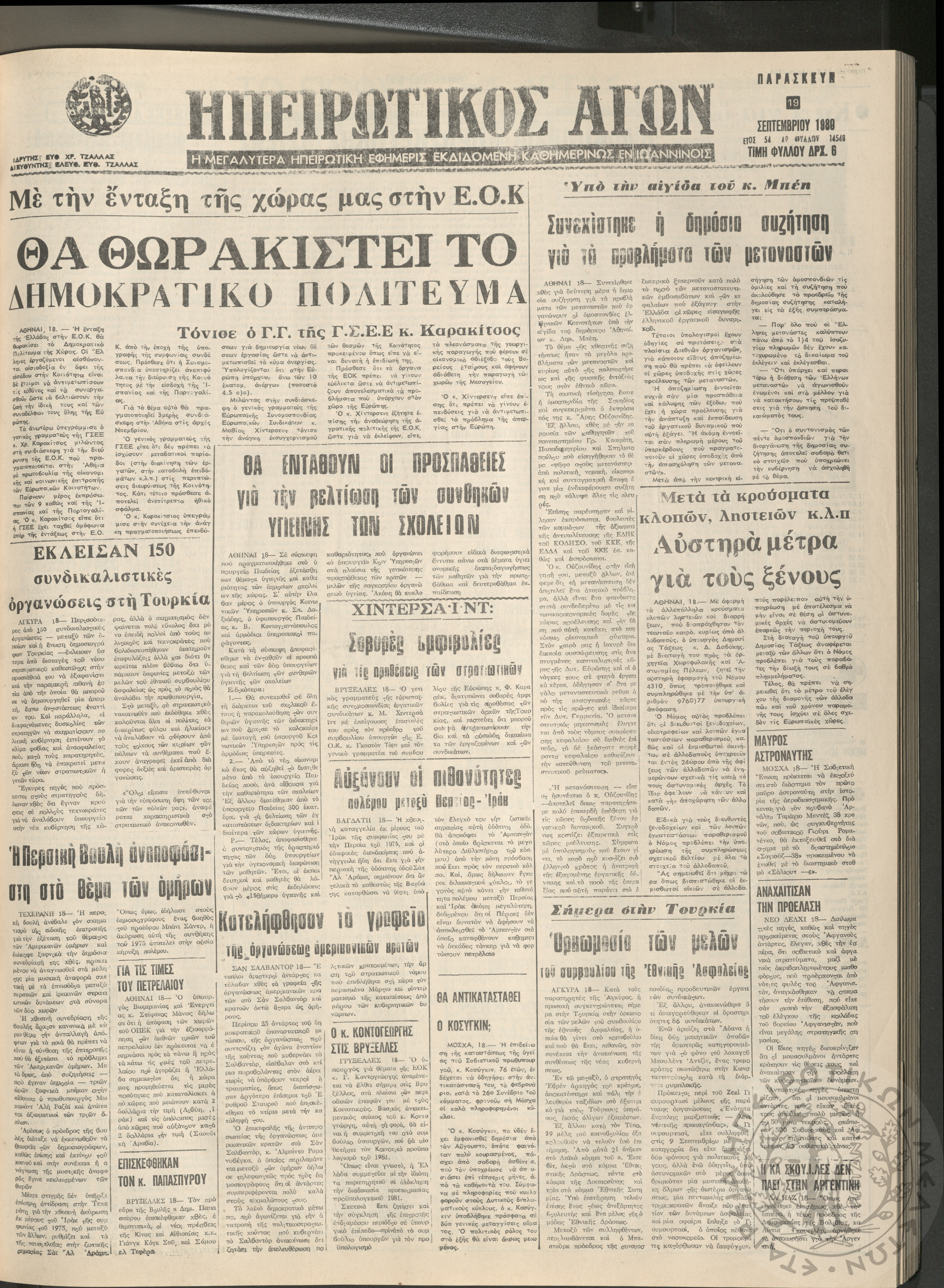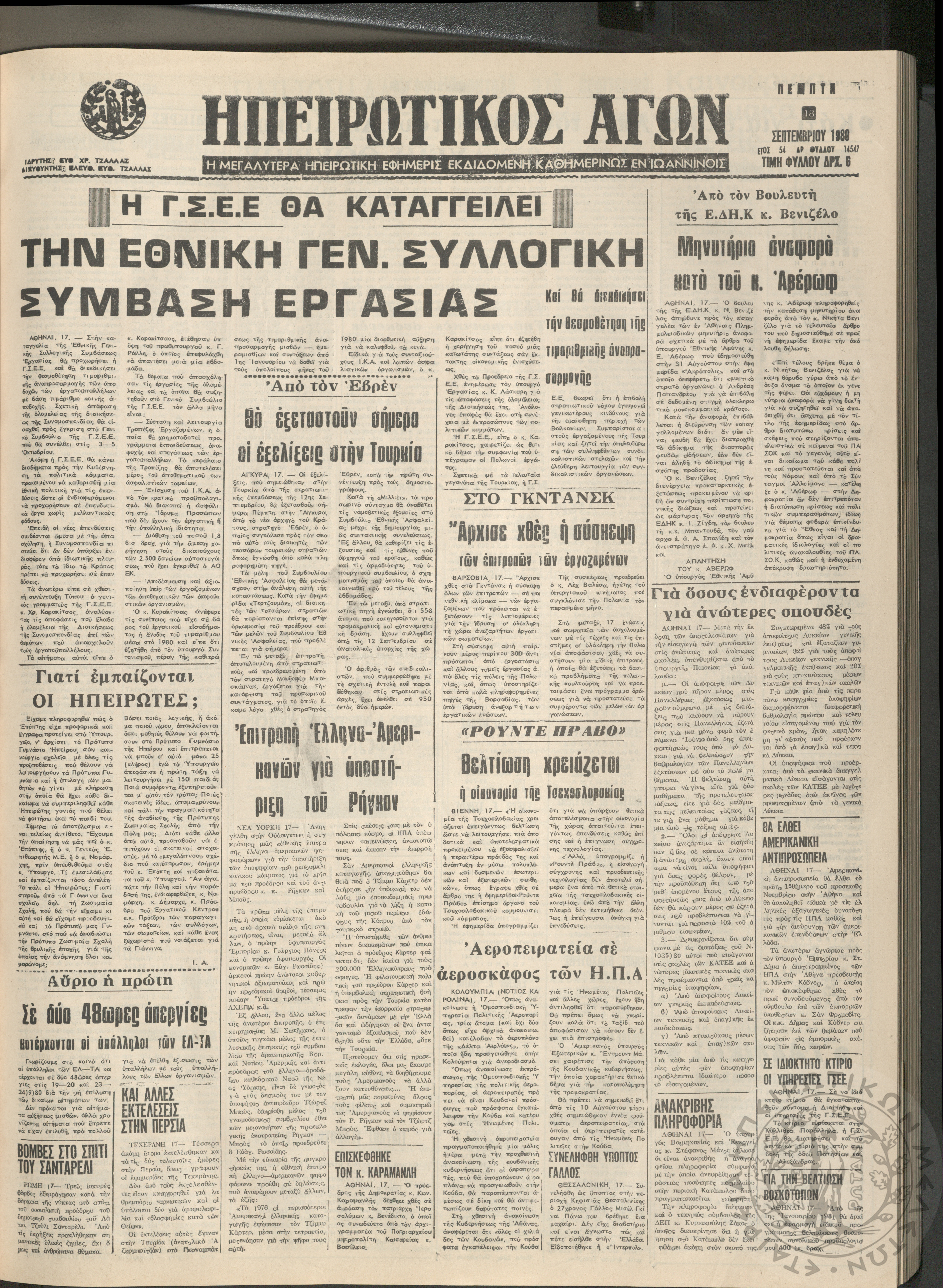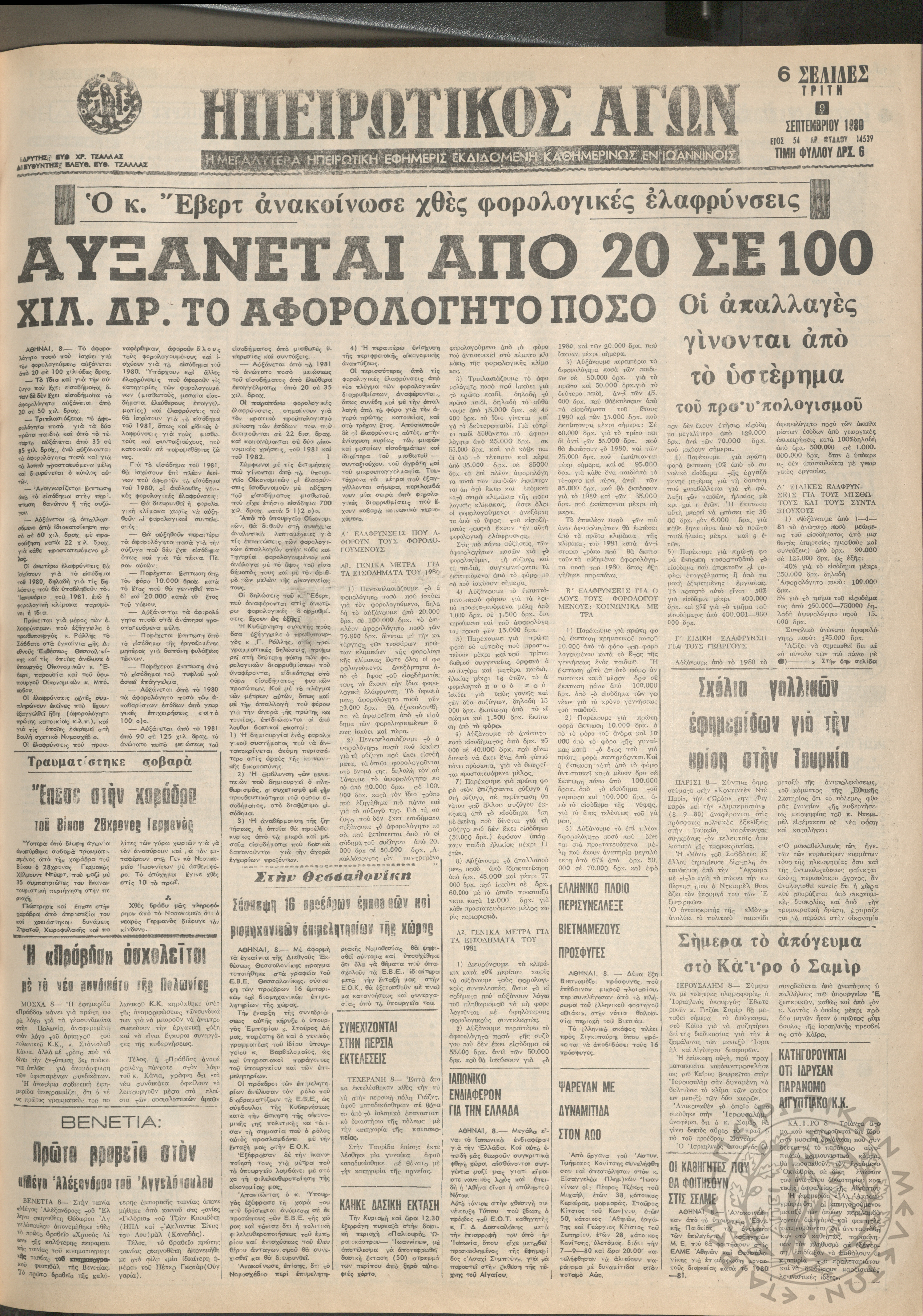Ηπειρωτικός Αγών: η μεγαλυτέρα Ηπειρωτική εφημερίς εκδιδόμενη καθημερινώς εν Ιωαννίνοις, 1980, φ. 14547Έτος 54, φ. 14547...