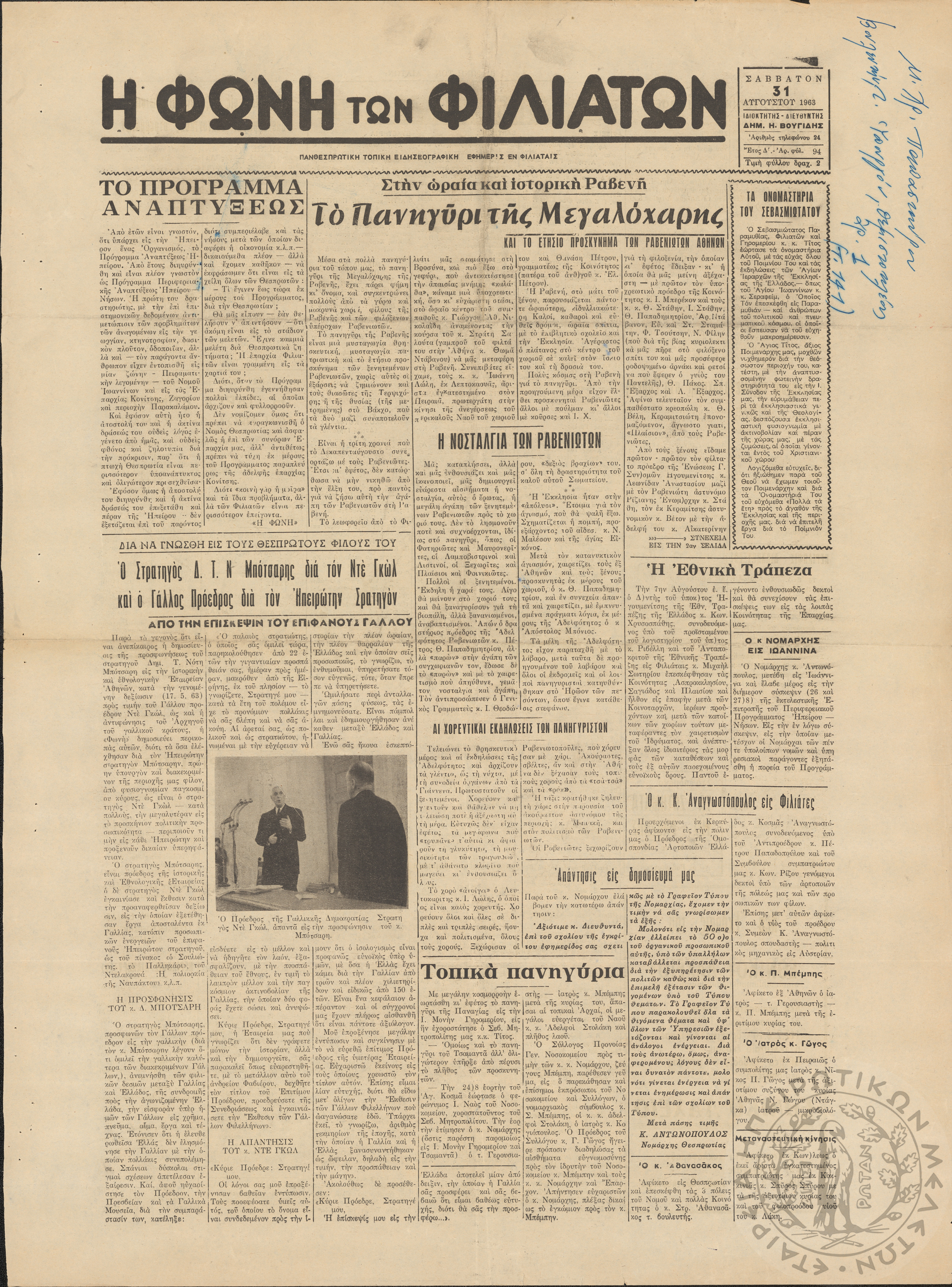 Η φωνή των Φιλιατών: πανθεσπρωτική τοπική ειδησεογραφική εφημερίς εν Φιλιάταις, 1963, φ. 94Έτος Δ΄, αρ. φ. 94...