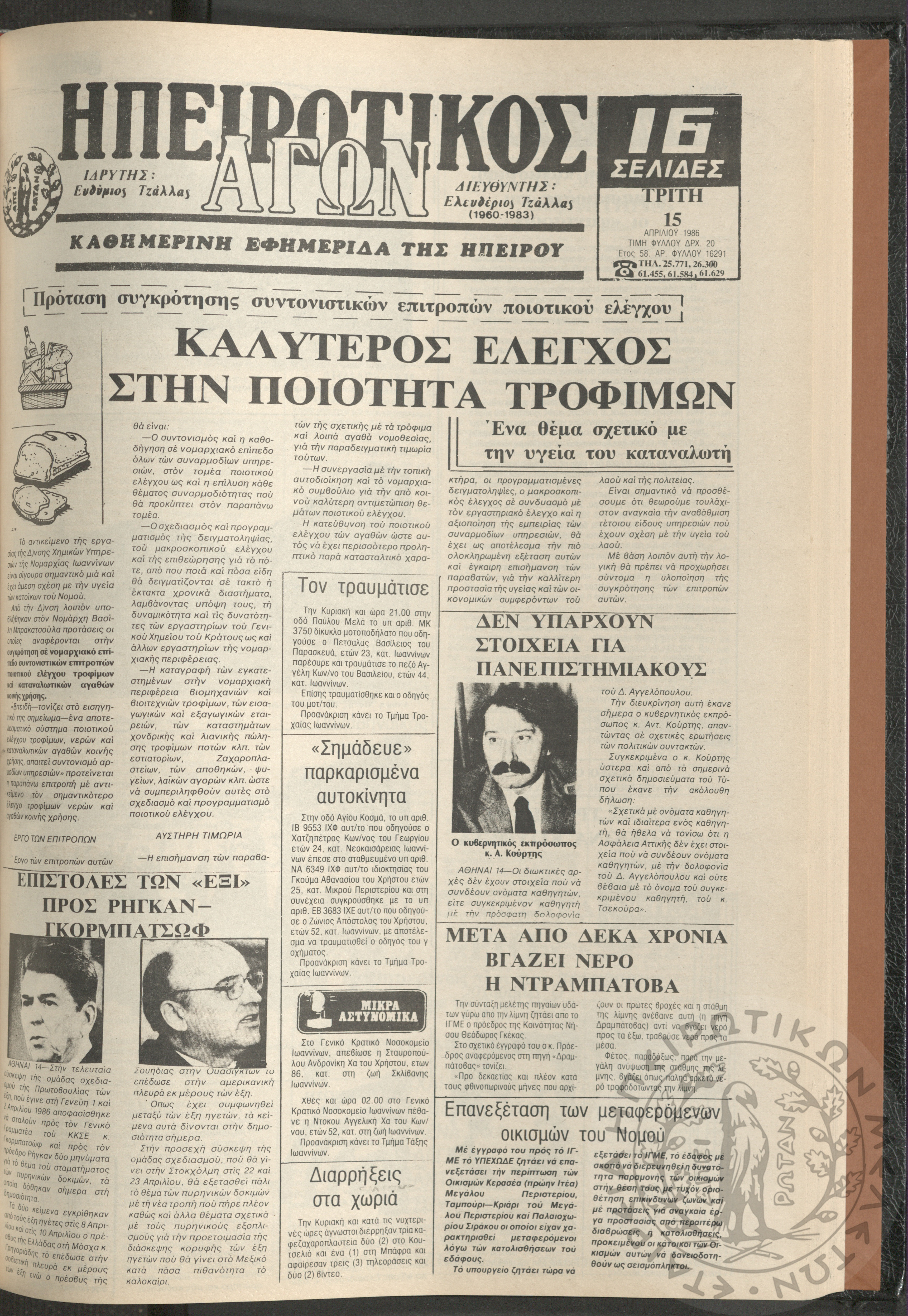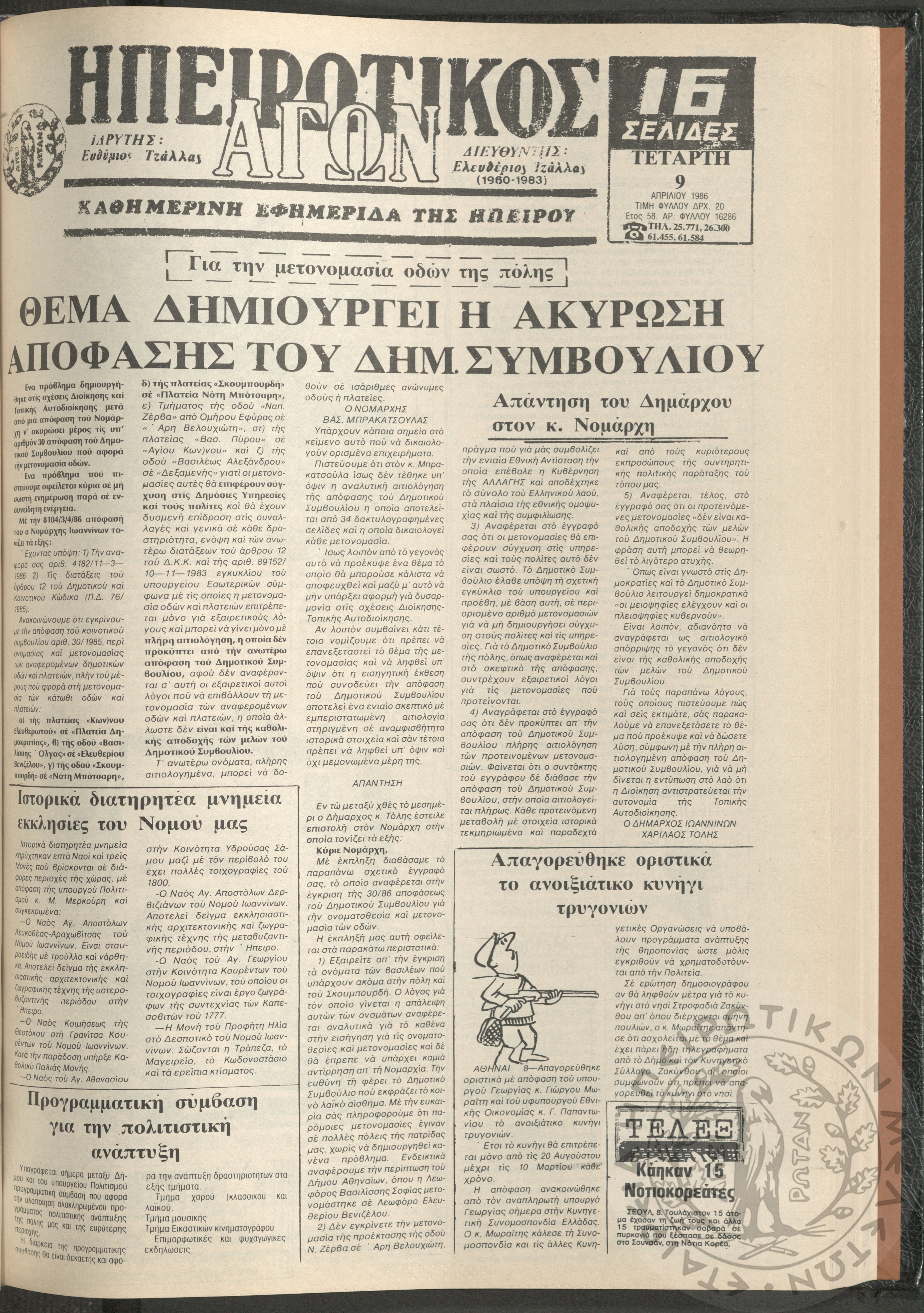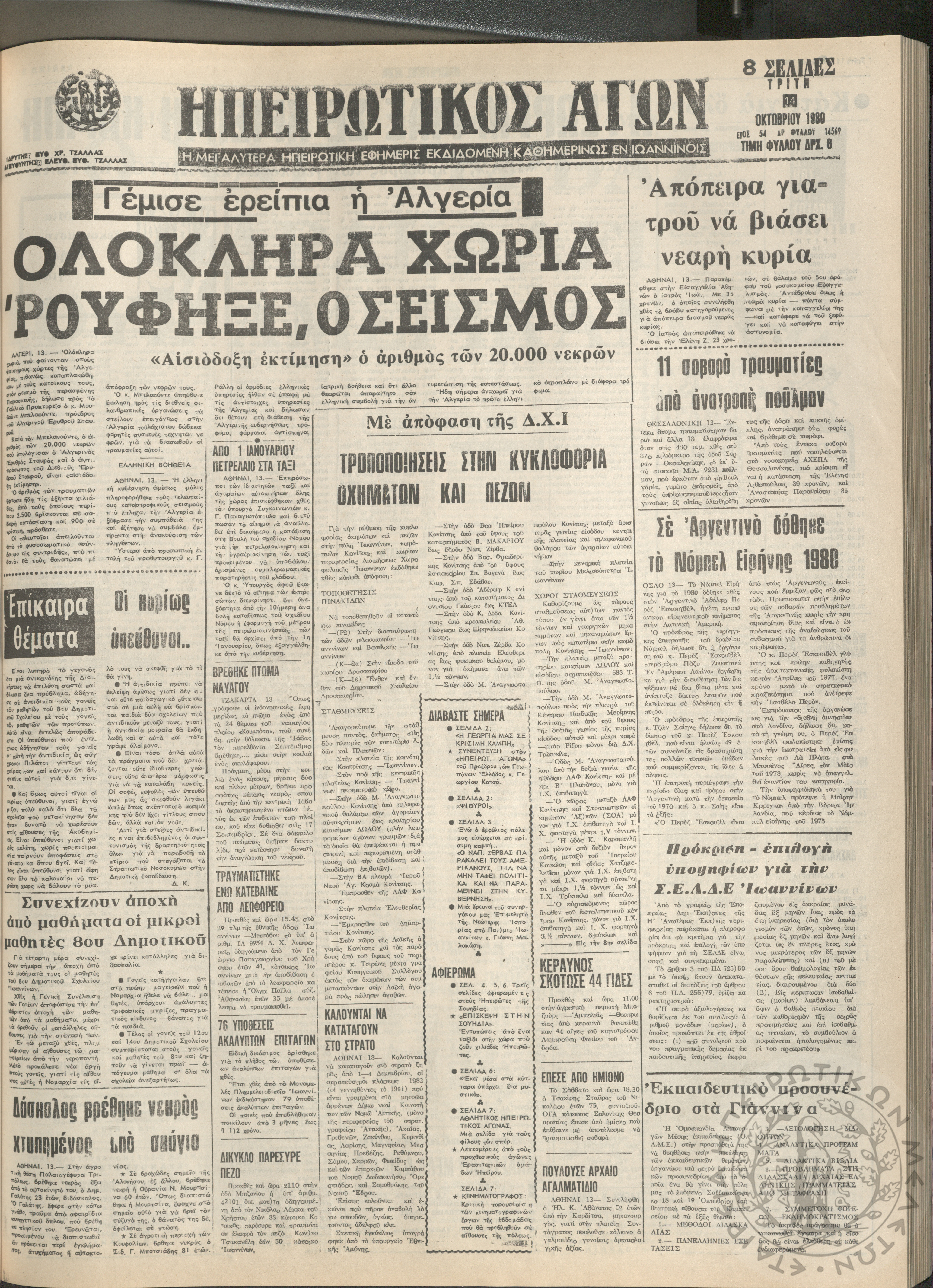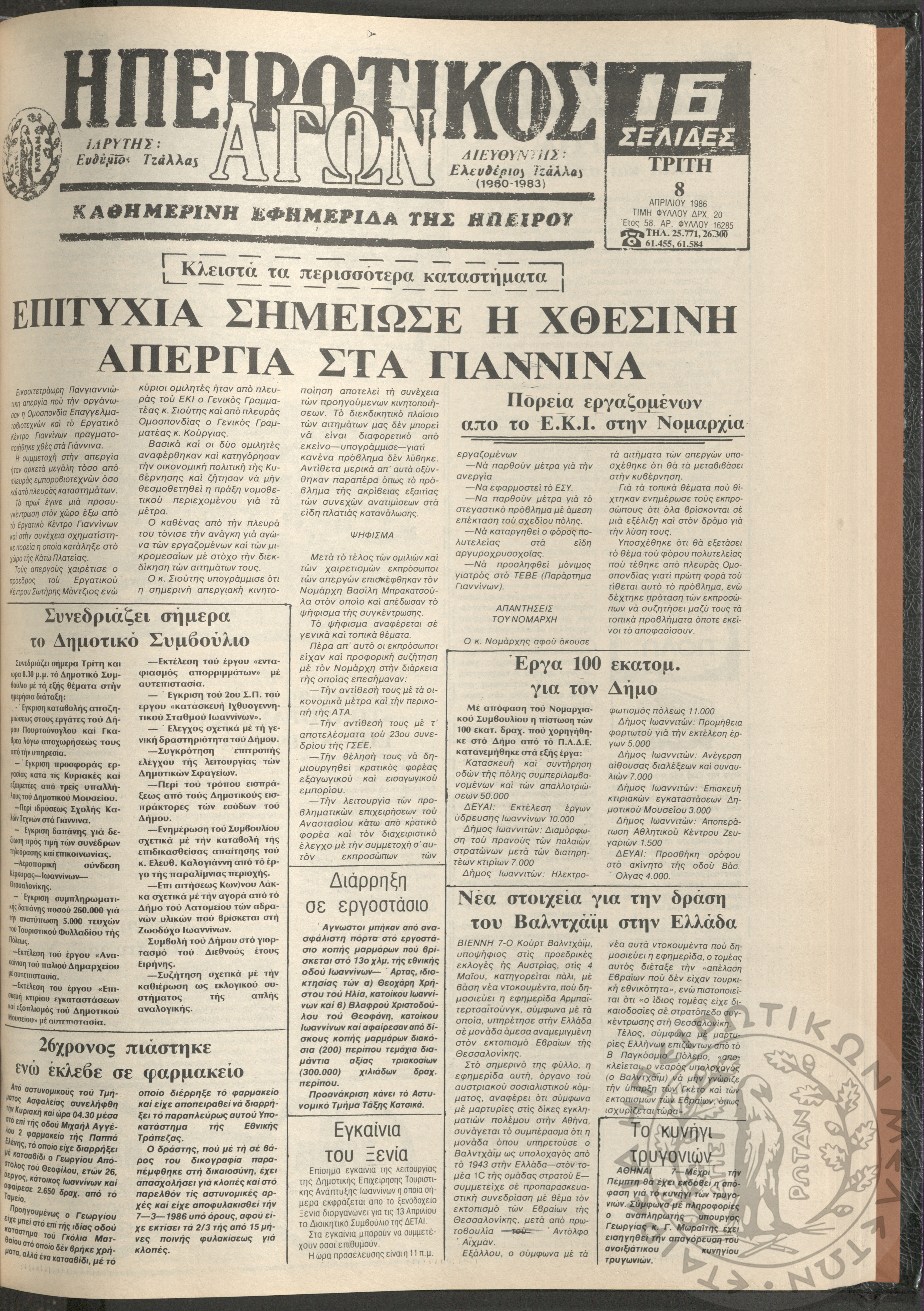 Ηπειρωτικός Αγών: η μεγαλυτέρα Ηπειρωτική εφημερίς εκδιδόμενη καθημερινώς εν Ιωαννίνοις, 1980, φ. 14586Έτος 54, φ. 14586...