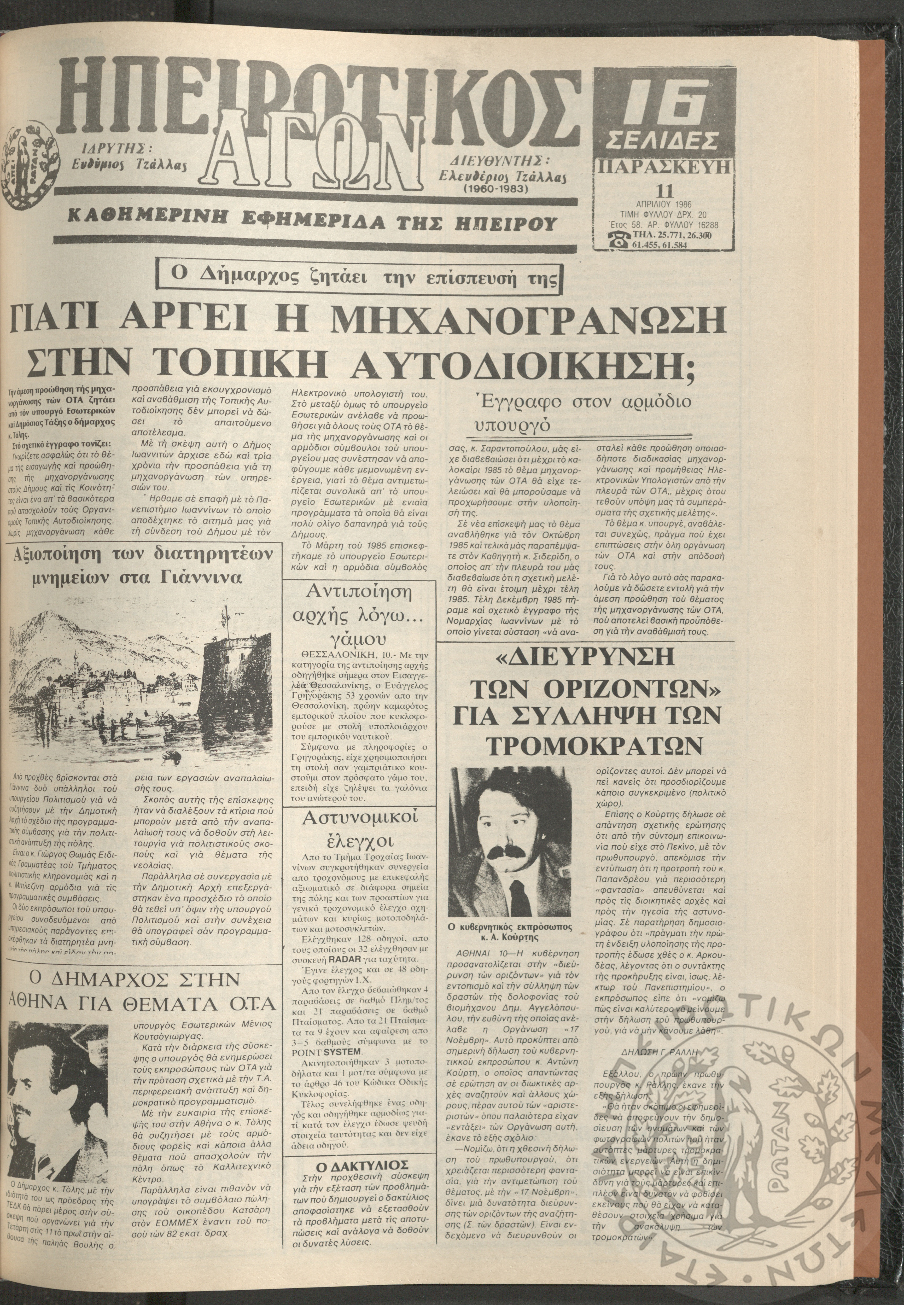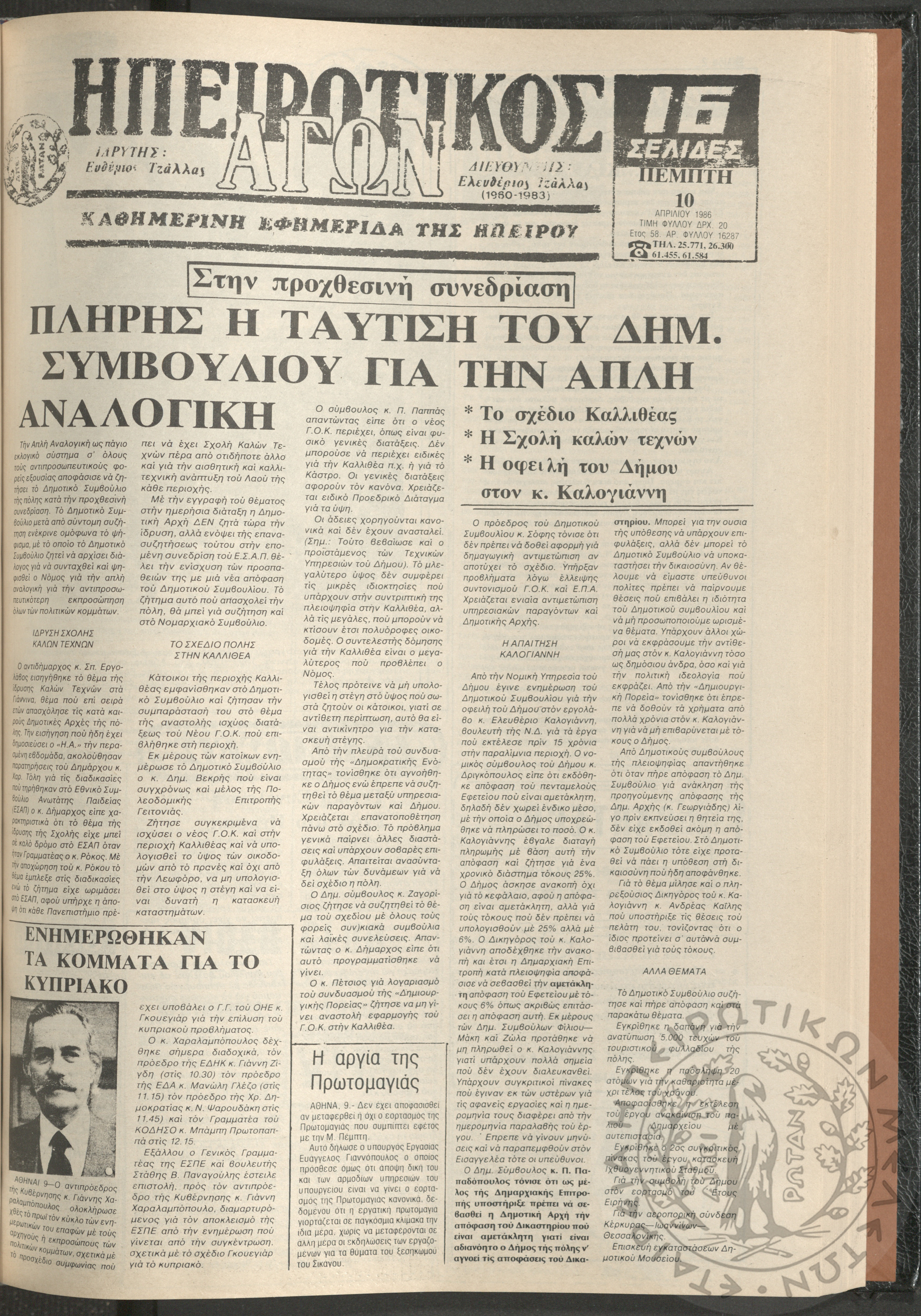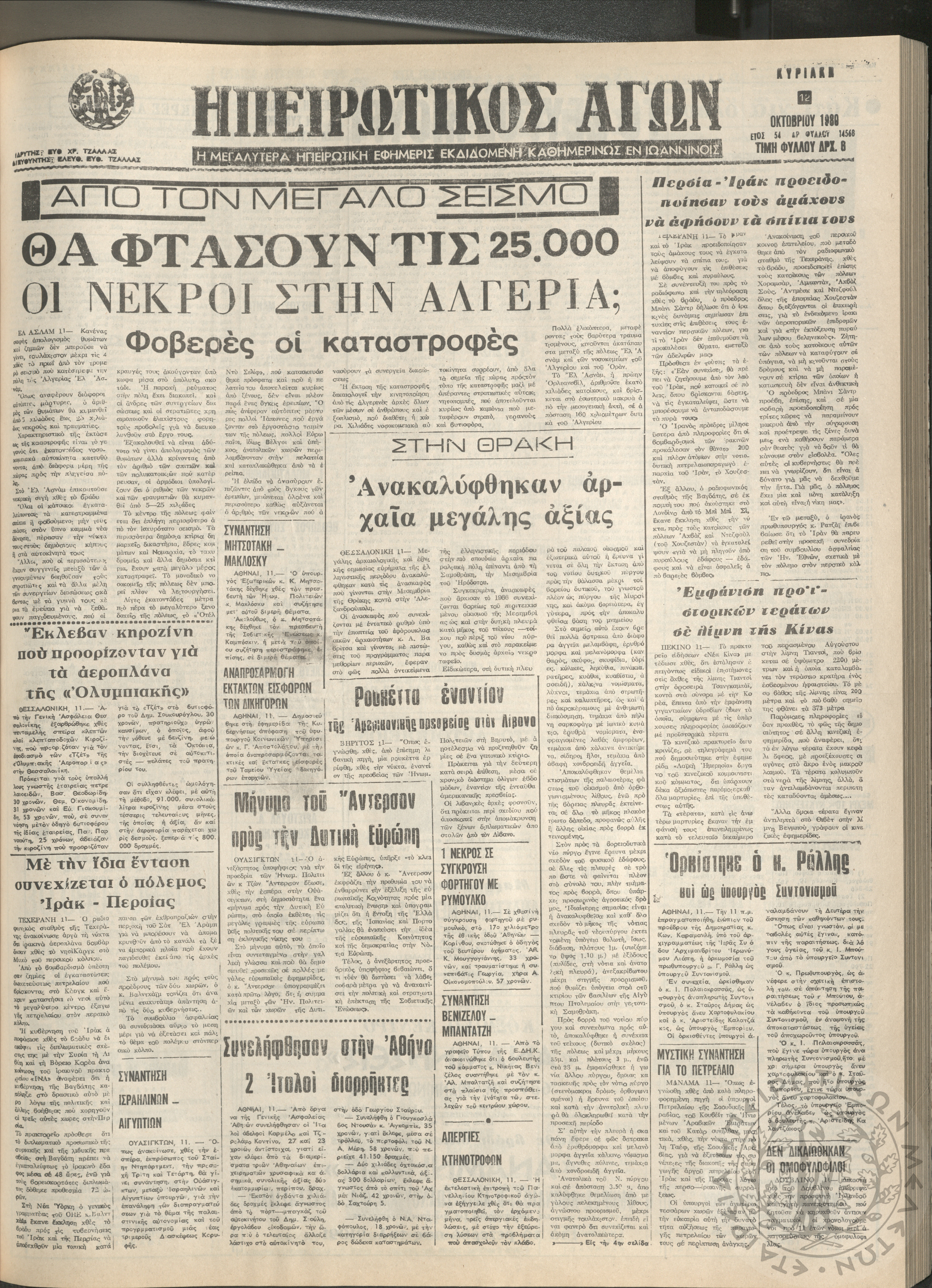 Ηπειρωτικός Αγών: η μεγαλυτέρα Ηπειρωτική εφημερίς εκδιδόμενη καθημερινώς εν Ιωαννίνοις, 1980, φ. 14586Έτος 54, φ. 14586...