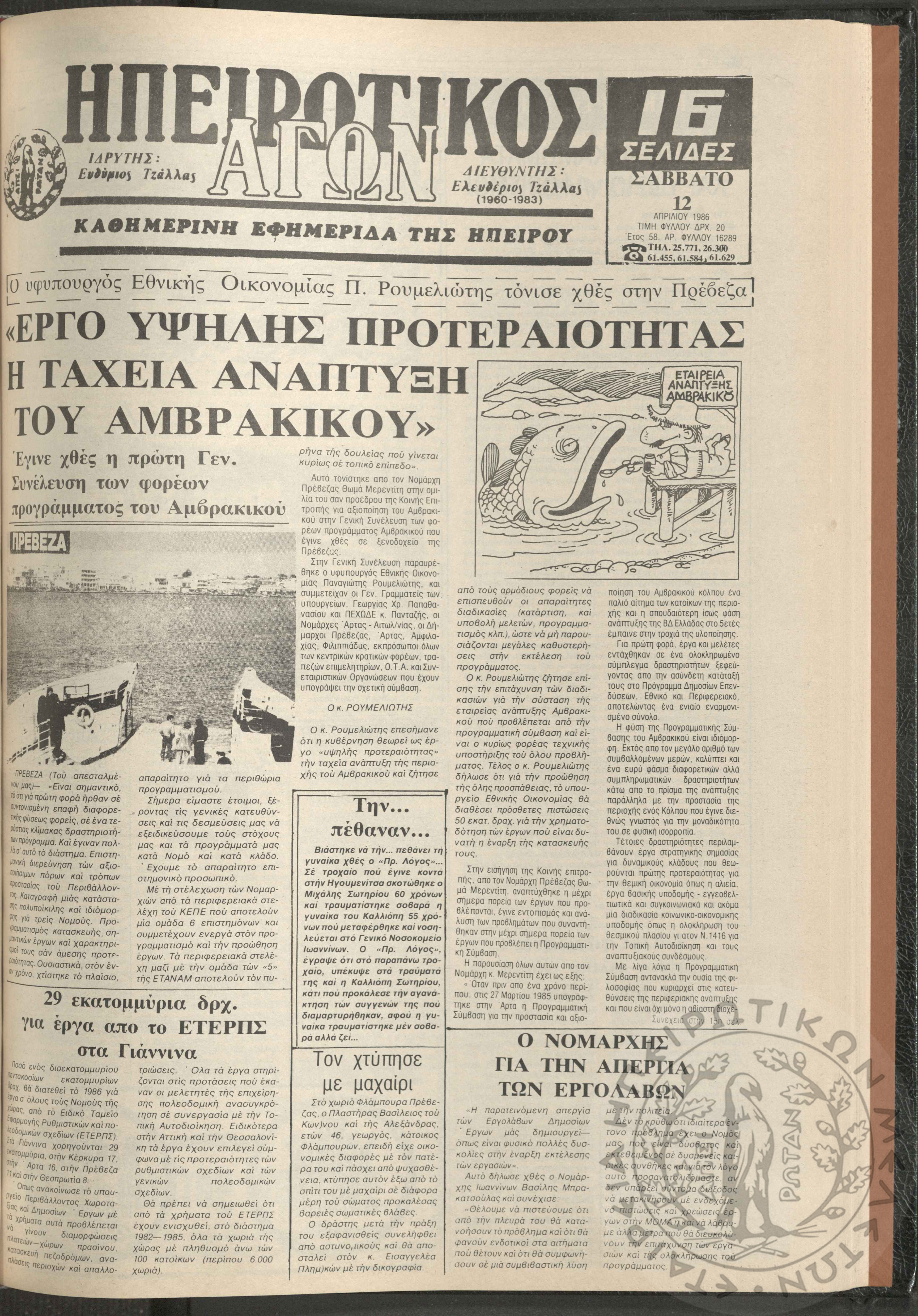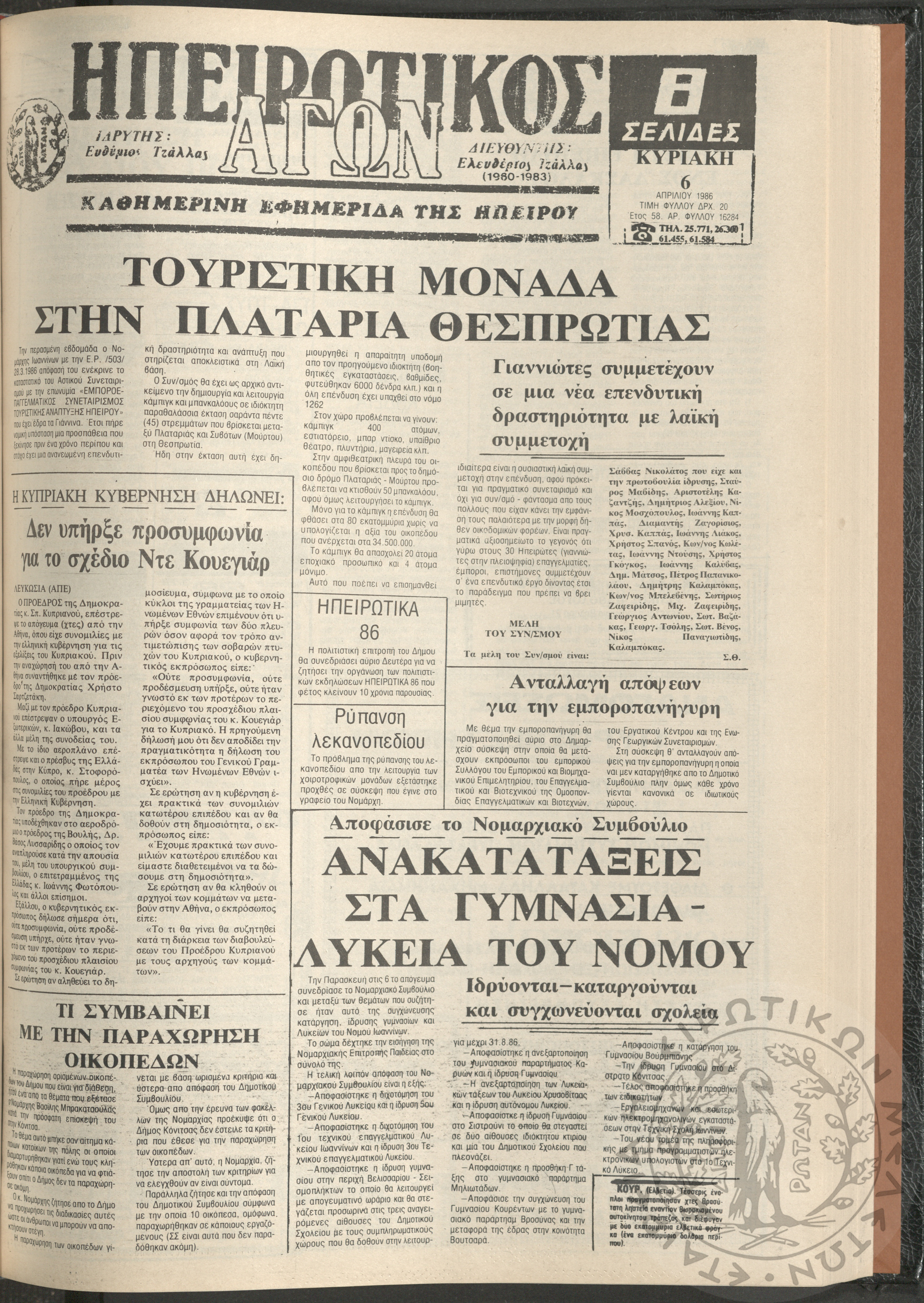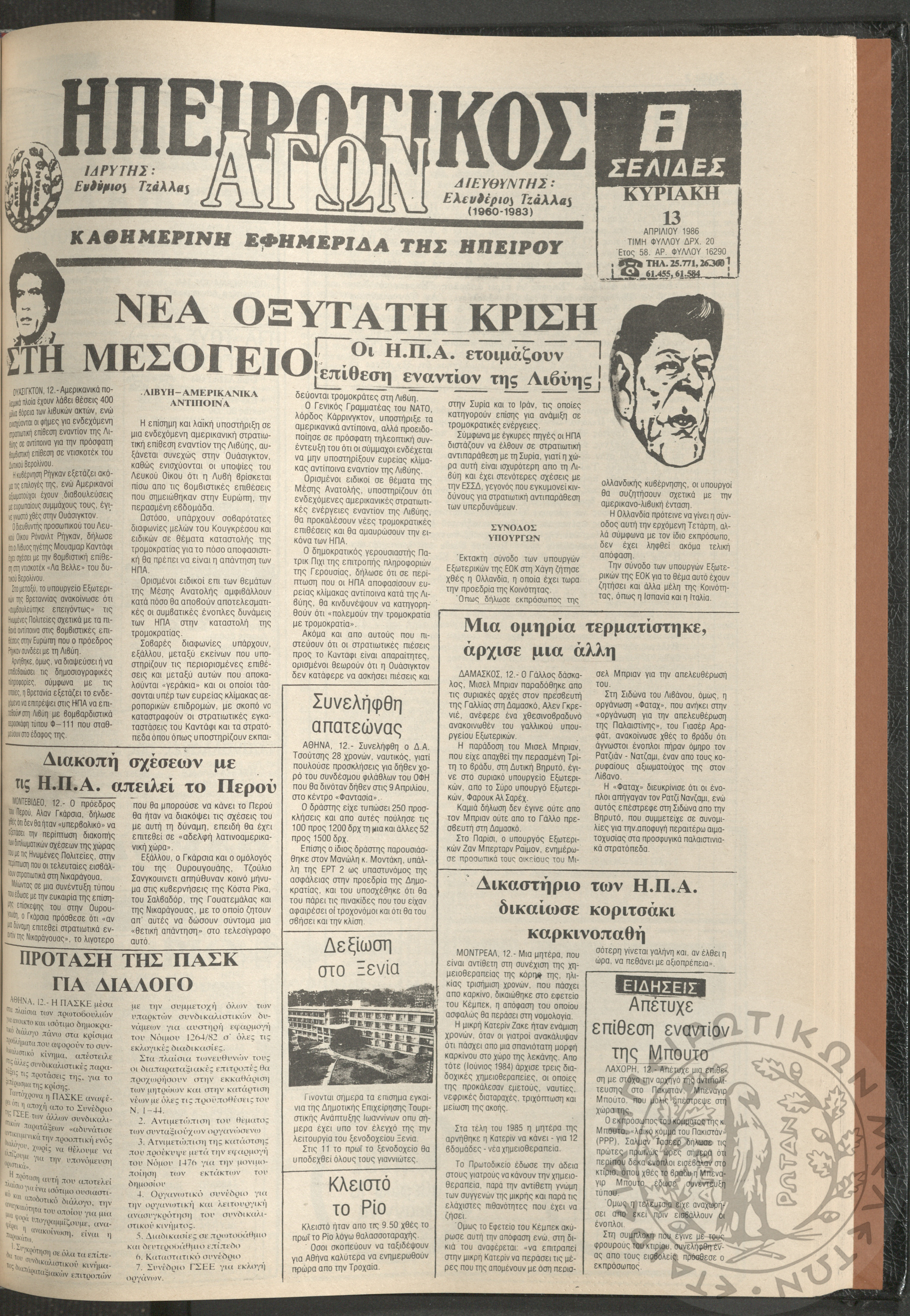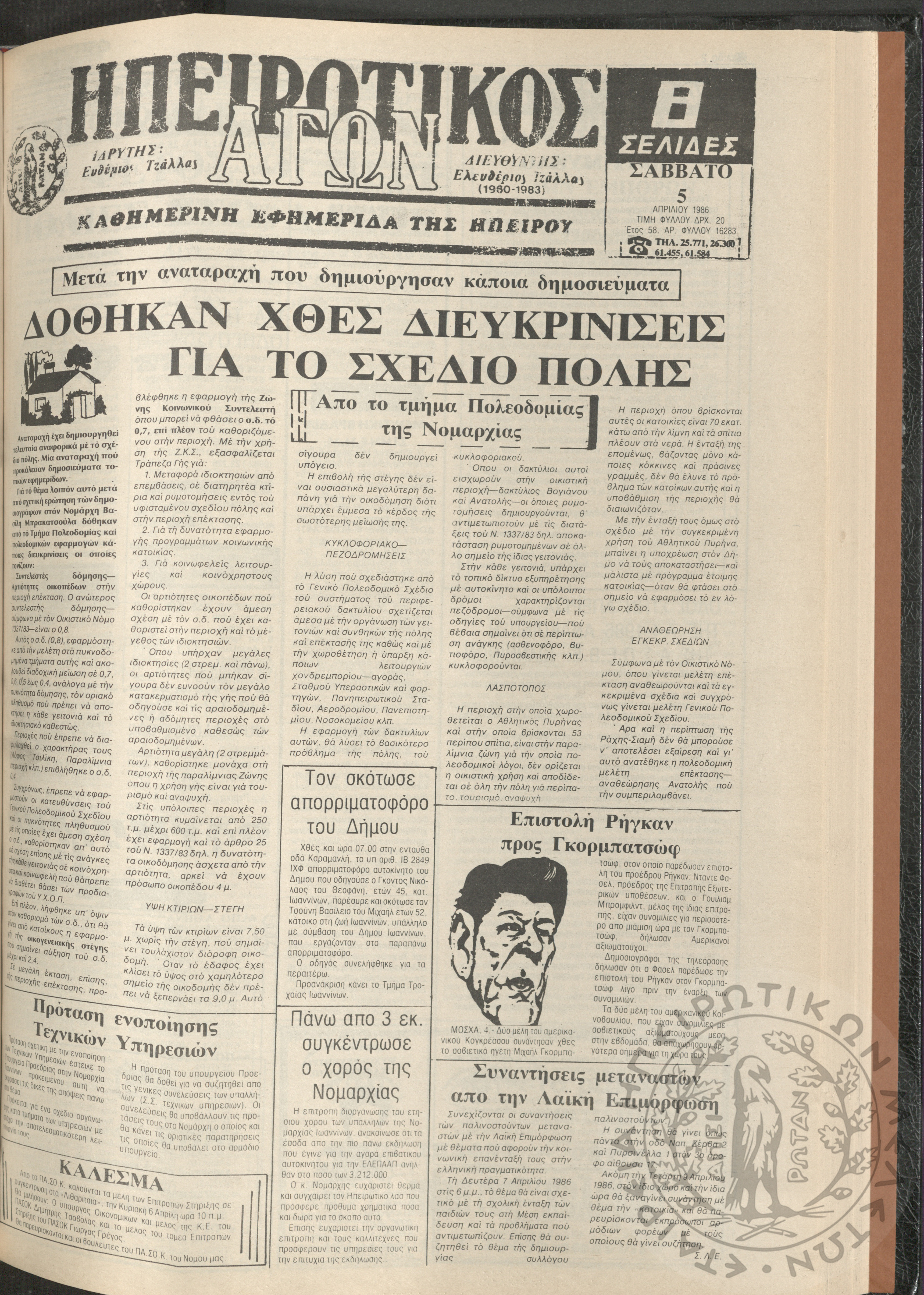 Ηπειρωτικός Αγών: η μεγαλυτέρα Ηπειρωτική εφημερίς εκδιδόμενη καθημερινώς εν Ιωαννίνοις, 1980, φ. 14586Έτος 54, φ. 14586...