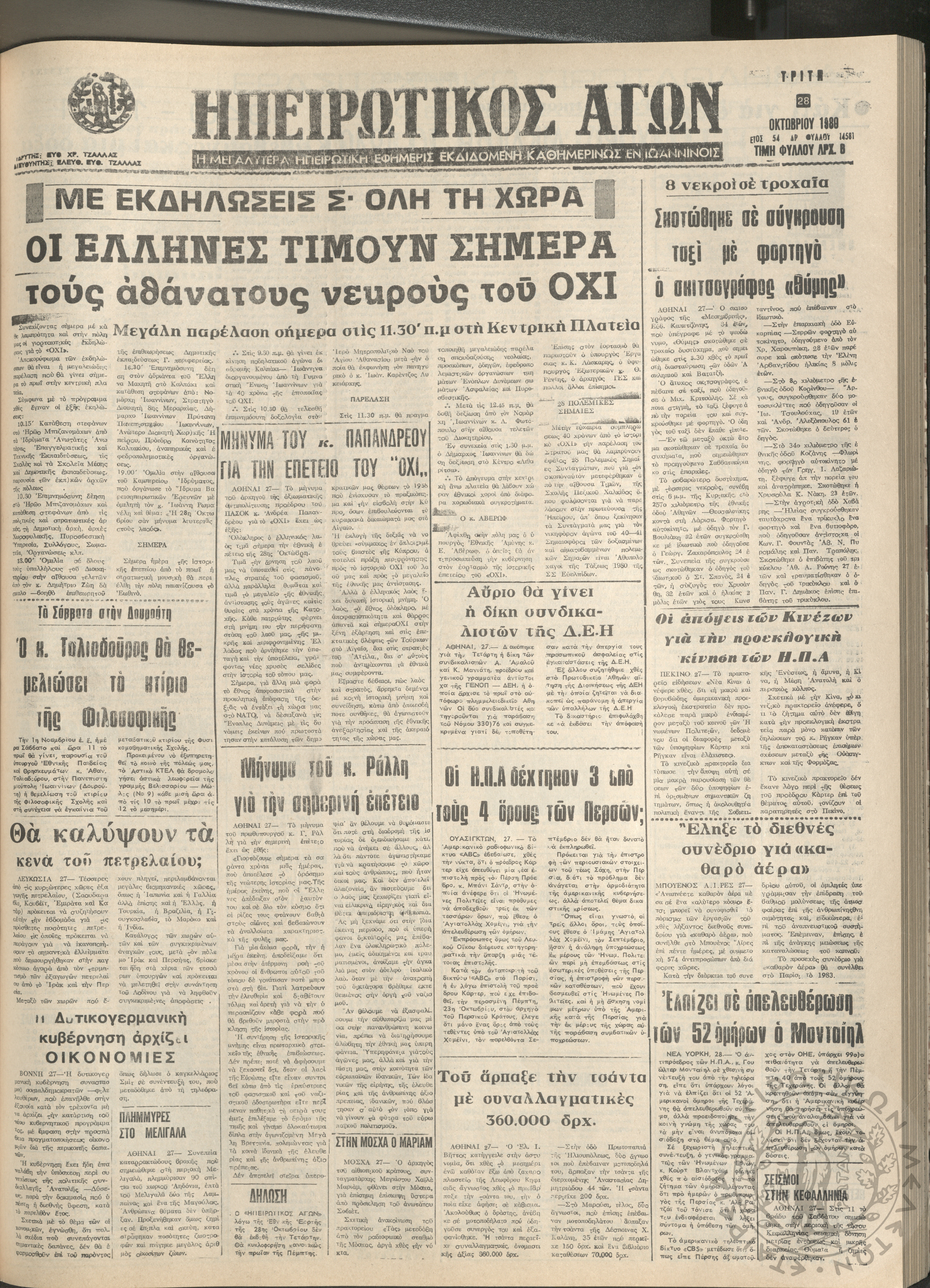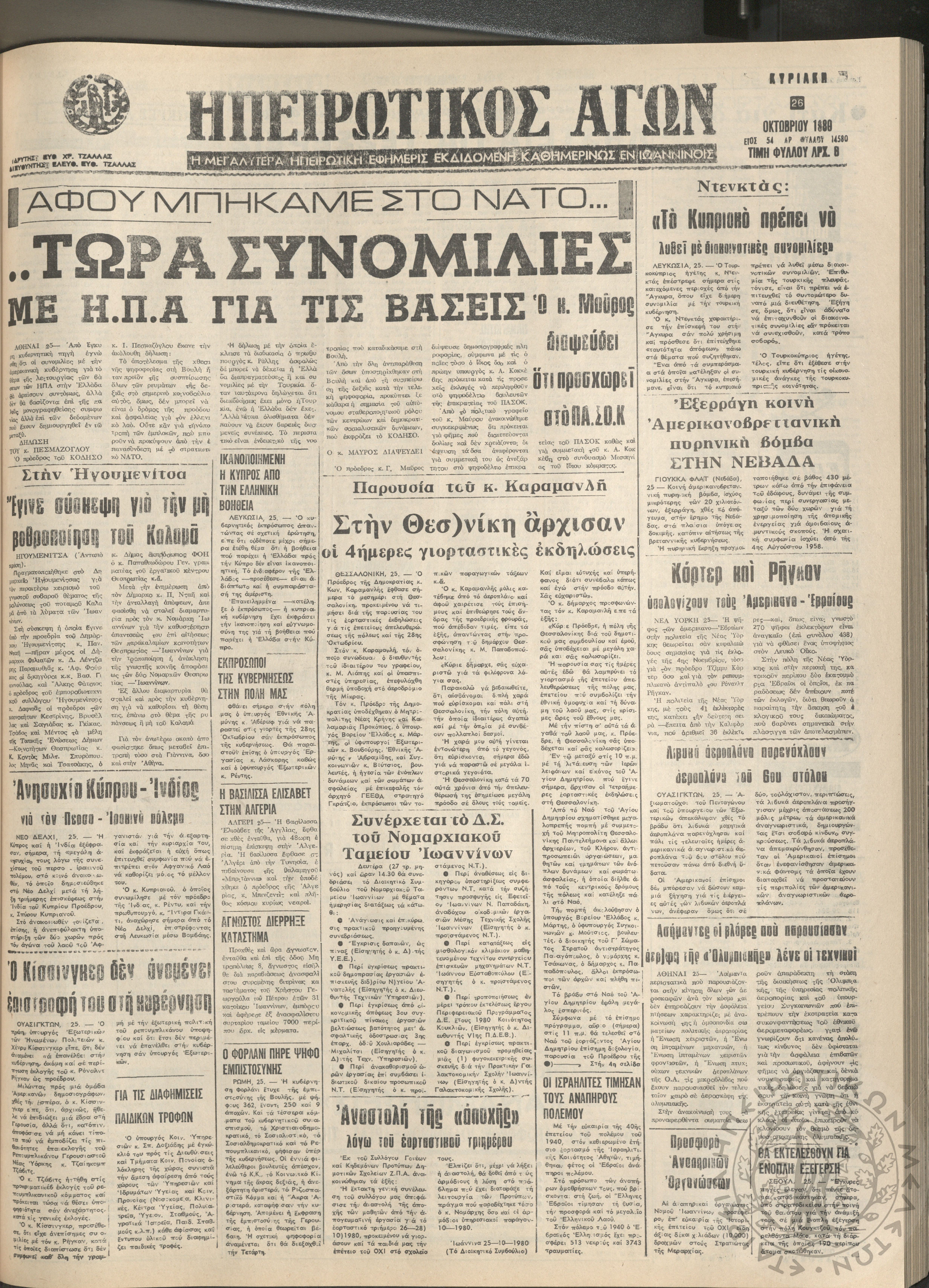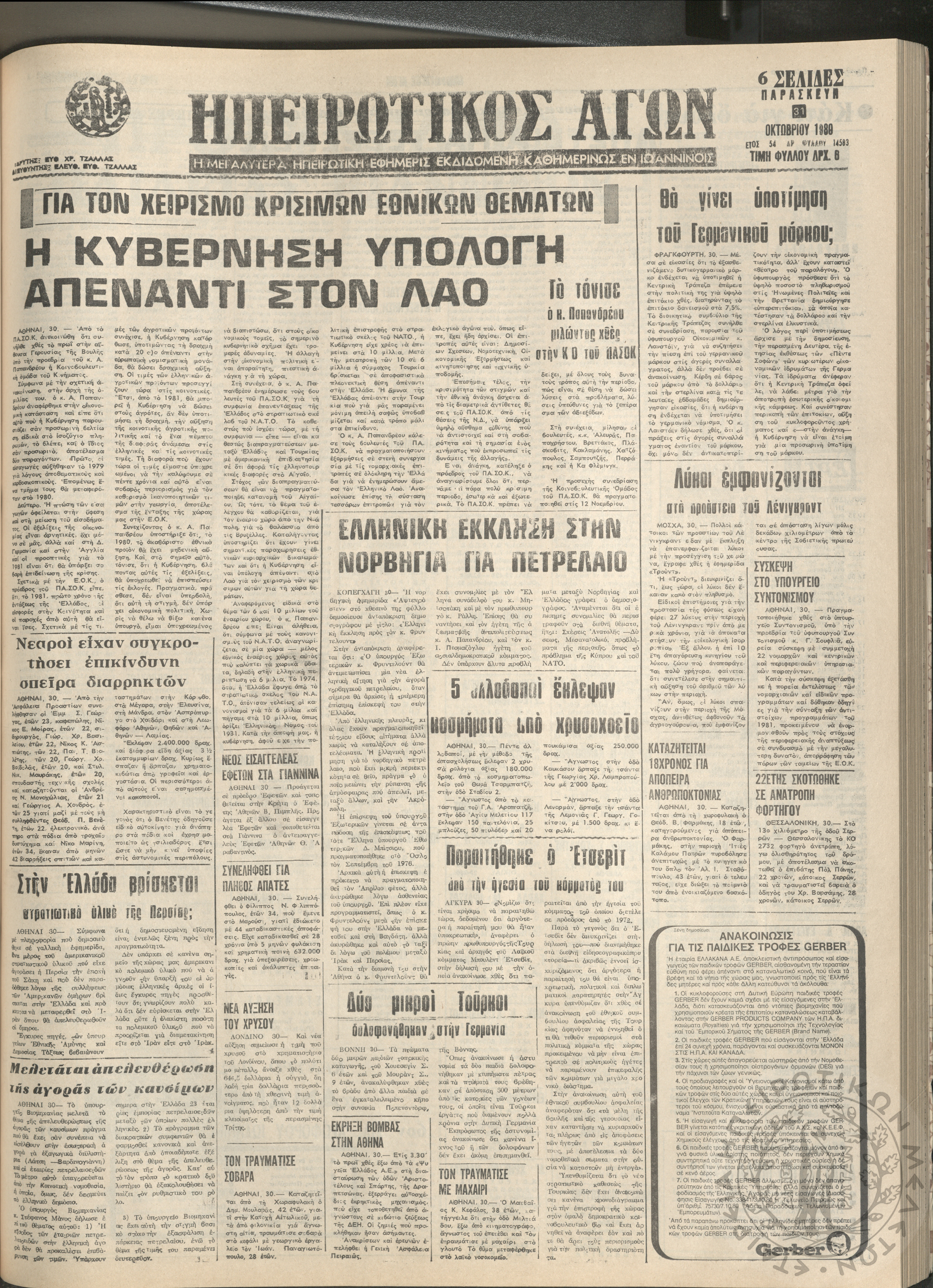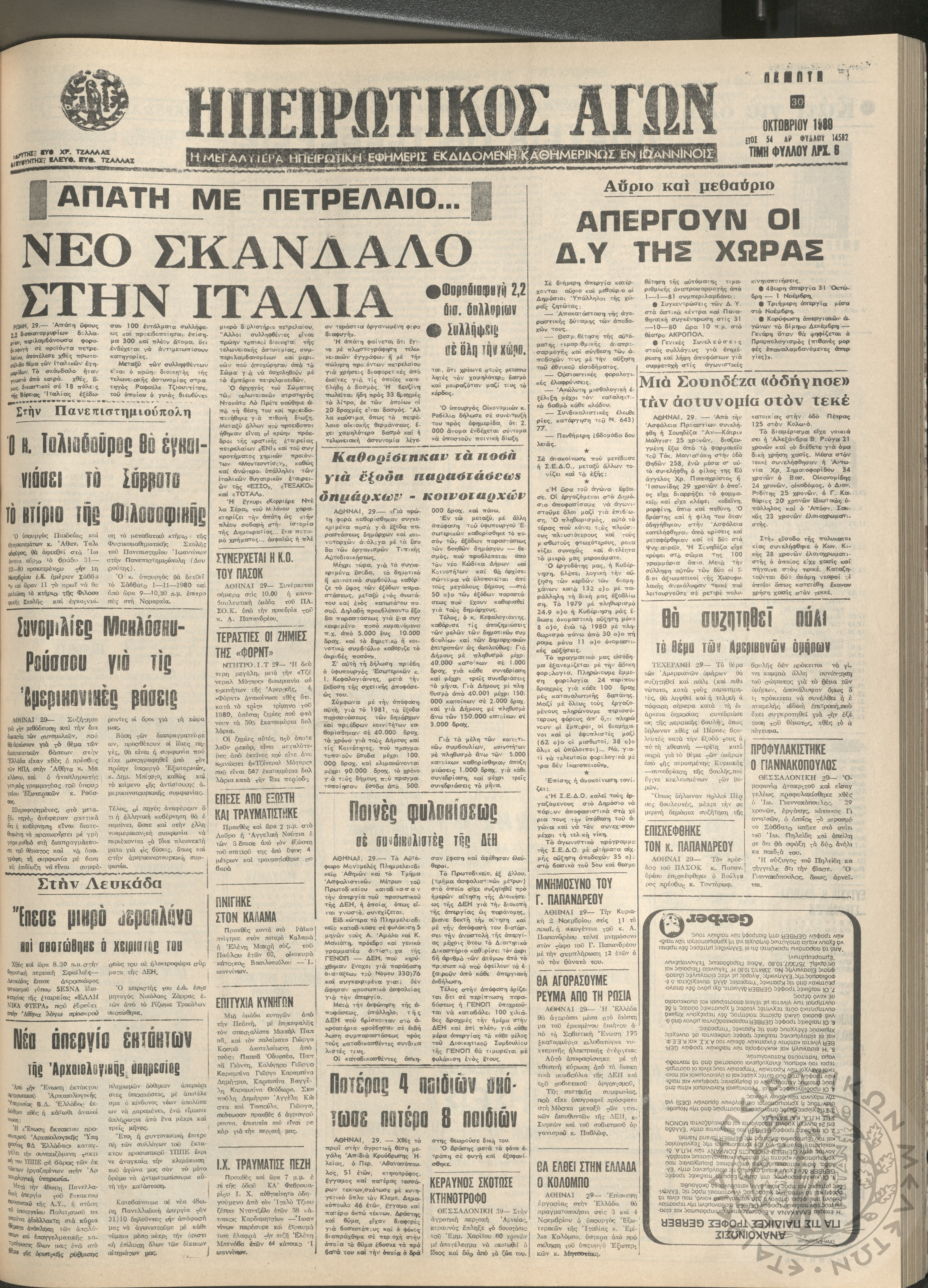 Ηπειρωτικός Αγών: η μεγαλυτέρα Ηπειρωτική εφημερίς εκδιδόμενη καθημερινώς εν Ιωαννίνοις, 1980, φ. 14580Έτος 54, φ. 14580...