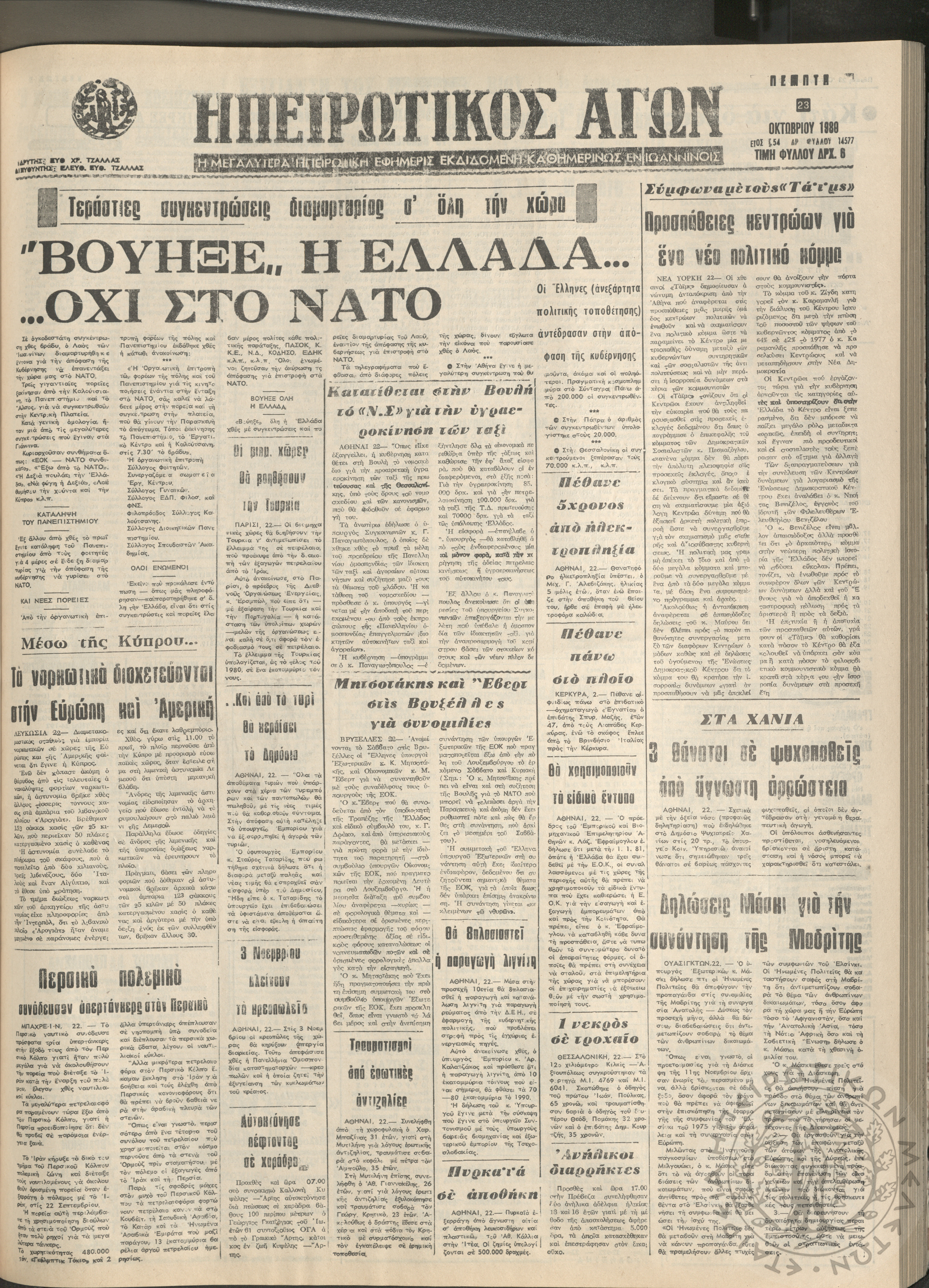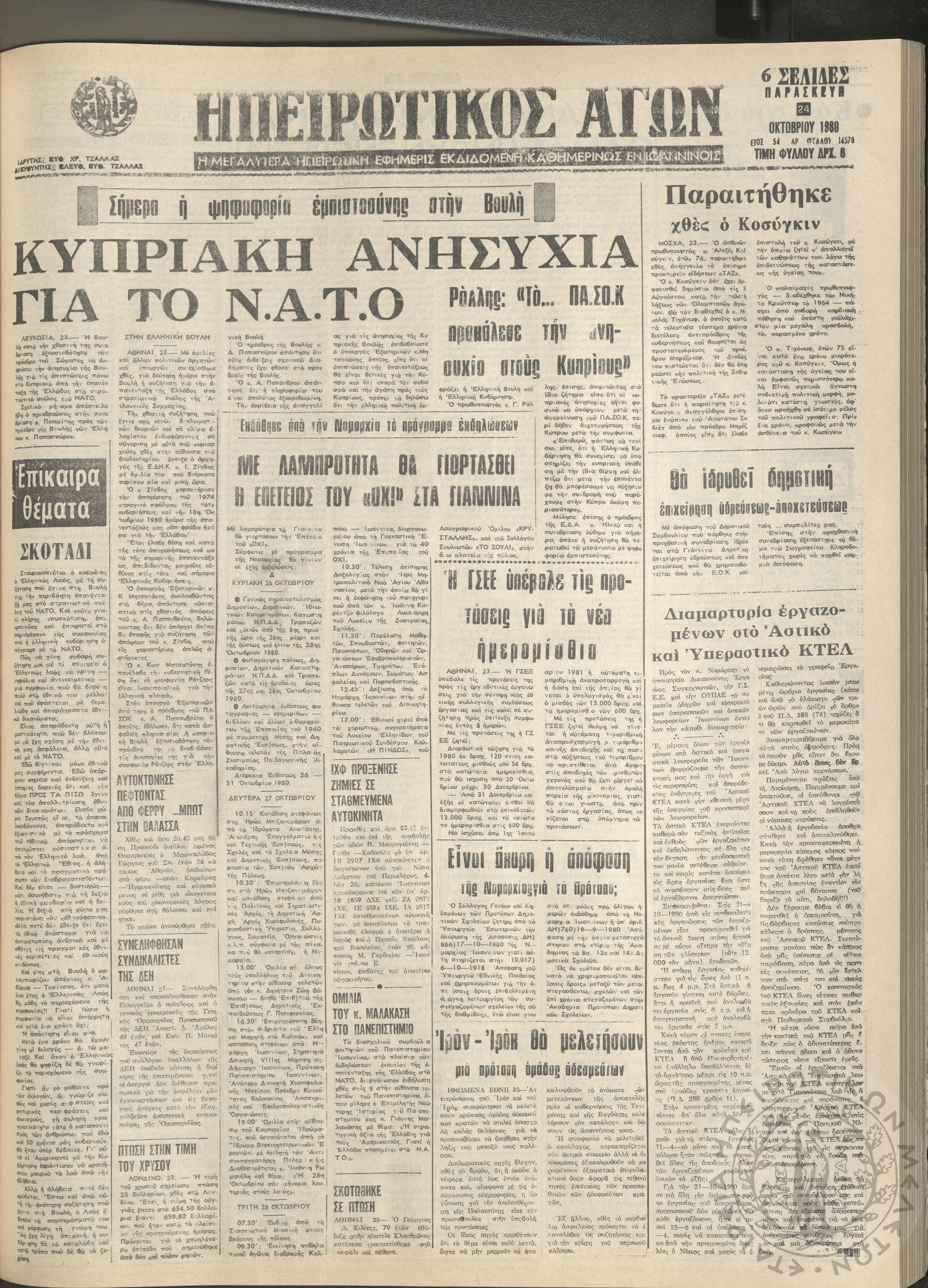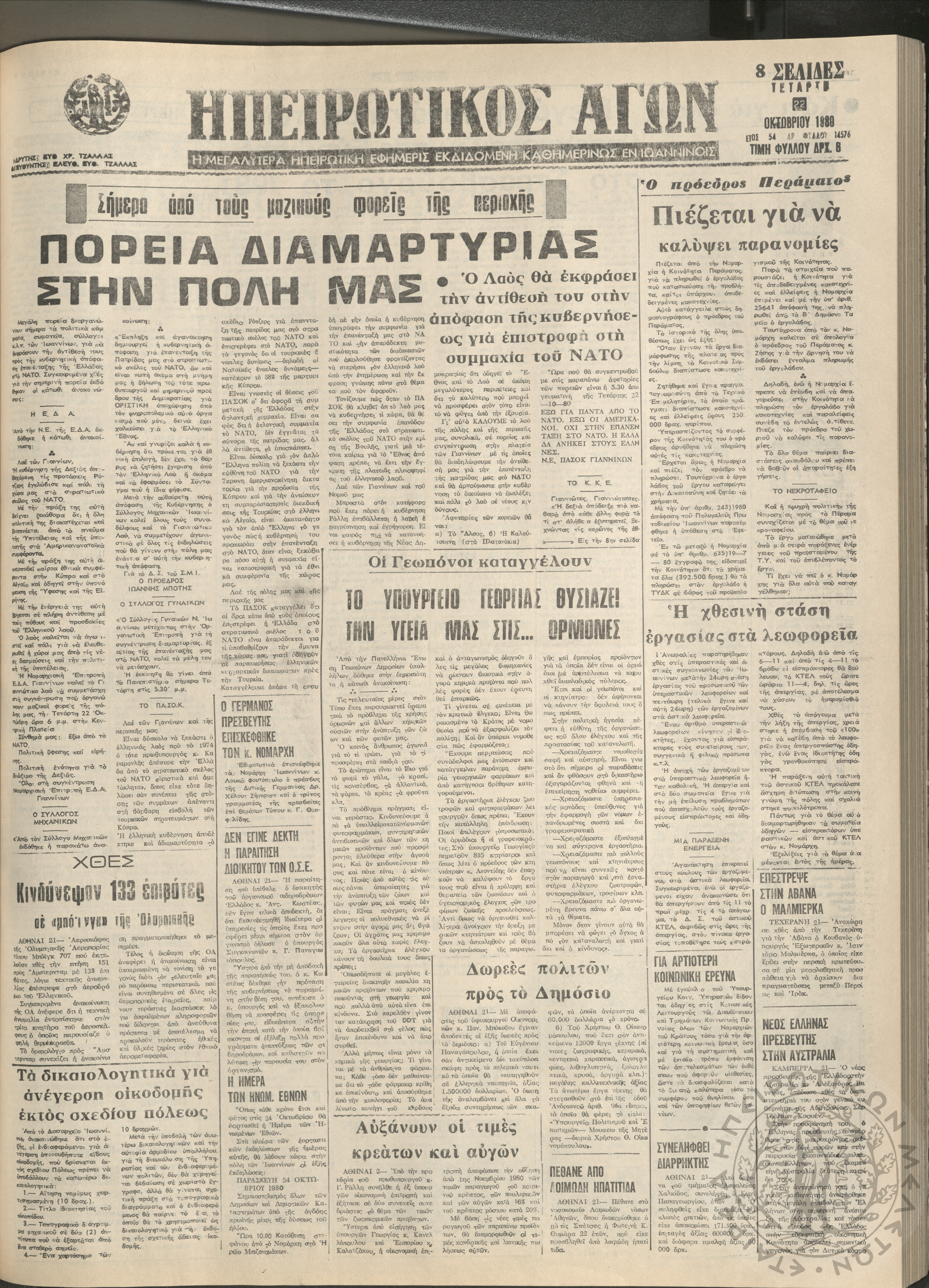 Ηπειρωτικός Αγών: η μεγαλυτέρα Ηπειρωτική εφημερίς εκδιδόμενη καθημερινώς εν Ιωαννίνοις, 1980, φ. 14574Έτος 54, φ. 14574...