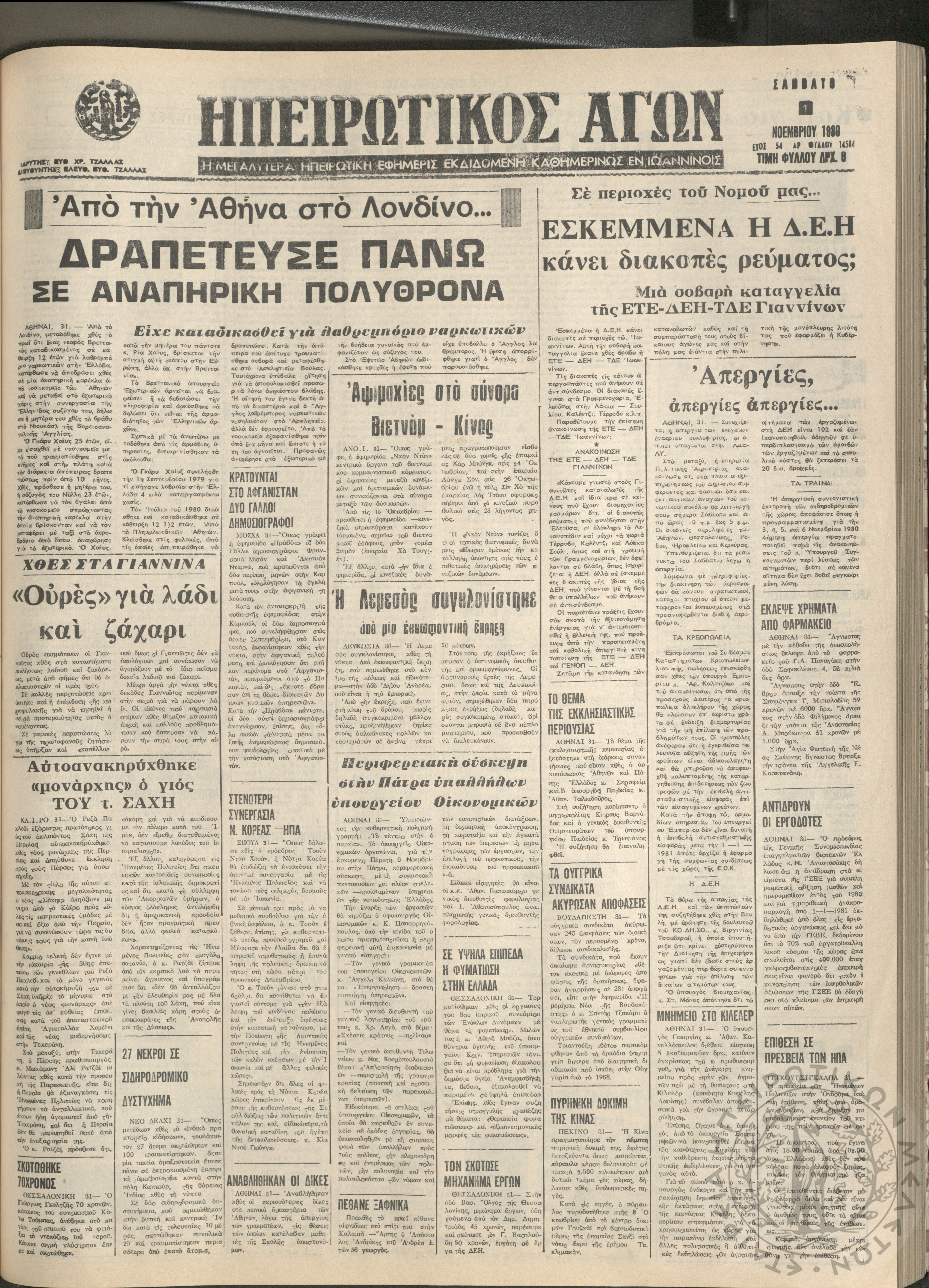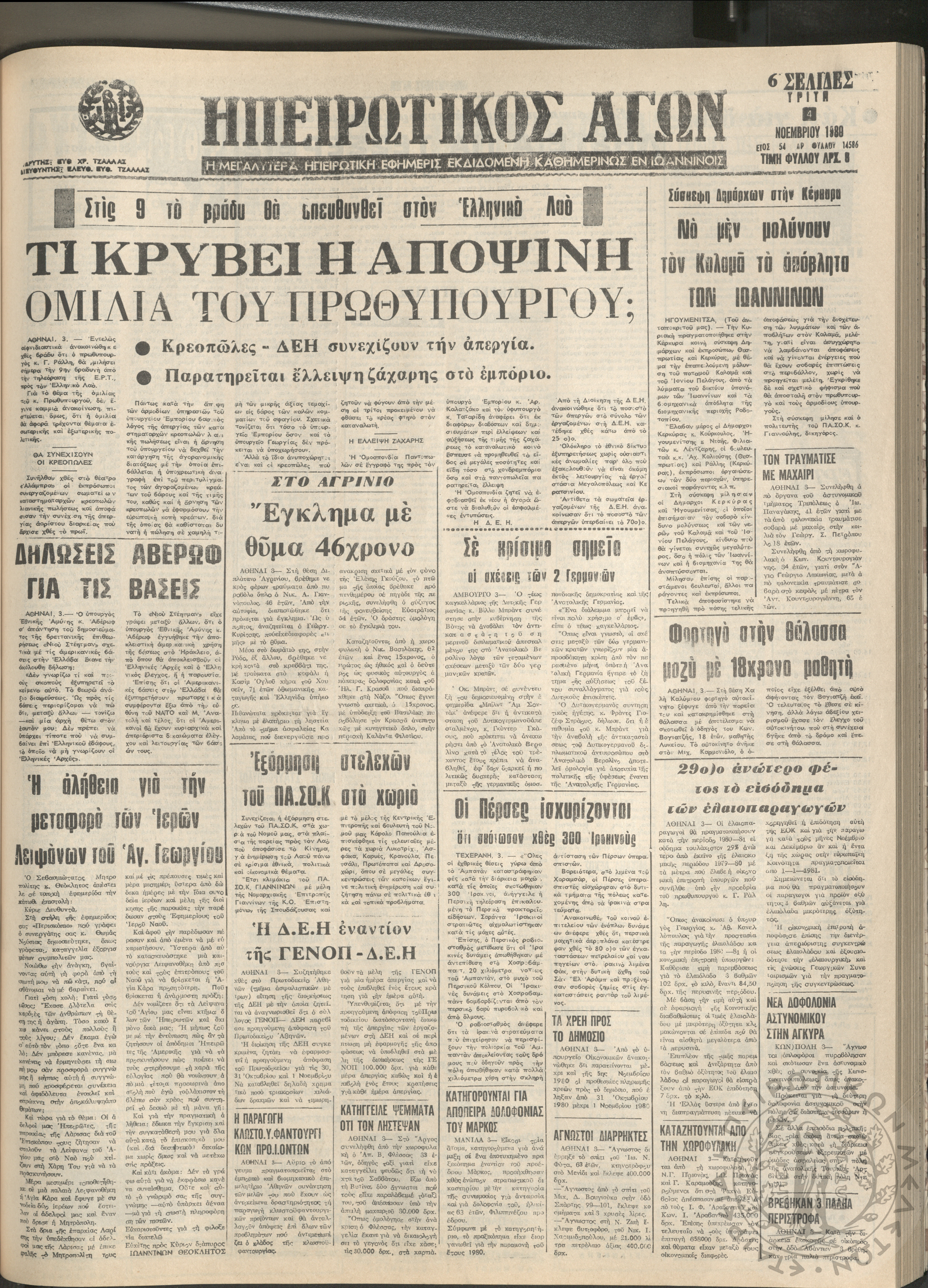 Ηπειρωτικός Αγών: η μεγαλυτέρα Ηπειρωτική εφημερίς εκδιδόμενη καθημερινώς εν Ιωαννίνοις, 1980, φ. 14568Έτος 54, φ. 14568...
