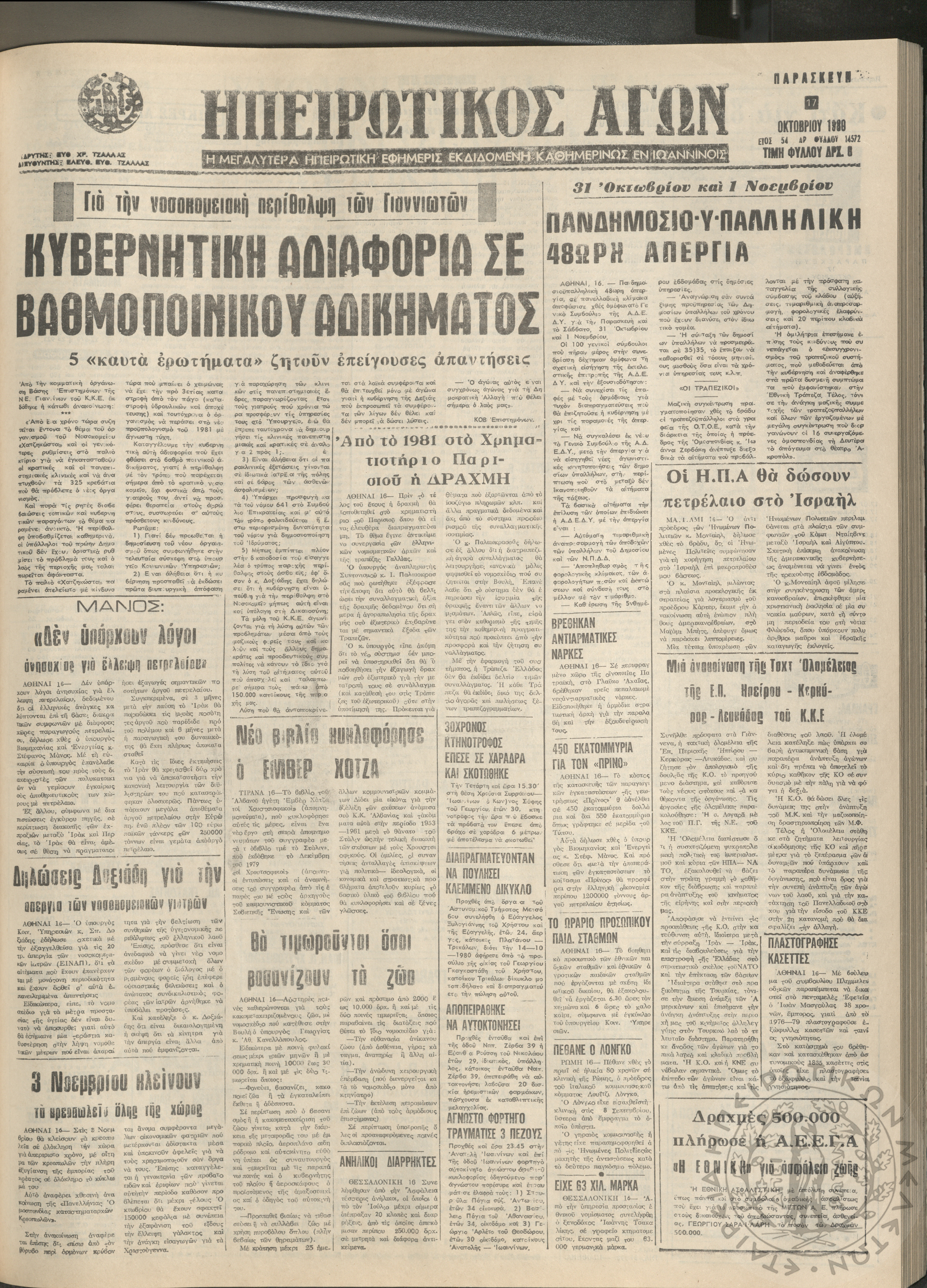 Ηπειρωτικός Αγών: η μεγαλυτέρα Ηπειρωτική εφημερίς εκδιδόμενη καθημερινώς εν Ιωαννίνοις, 1980, φ. 14579Έτος 54, φ. 14579...
