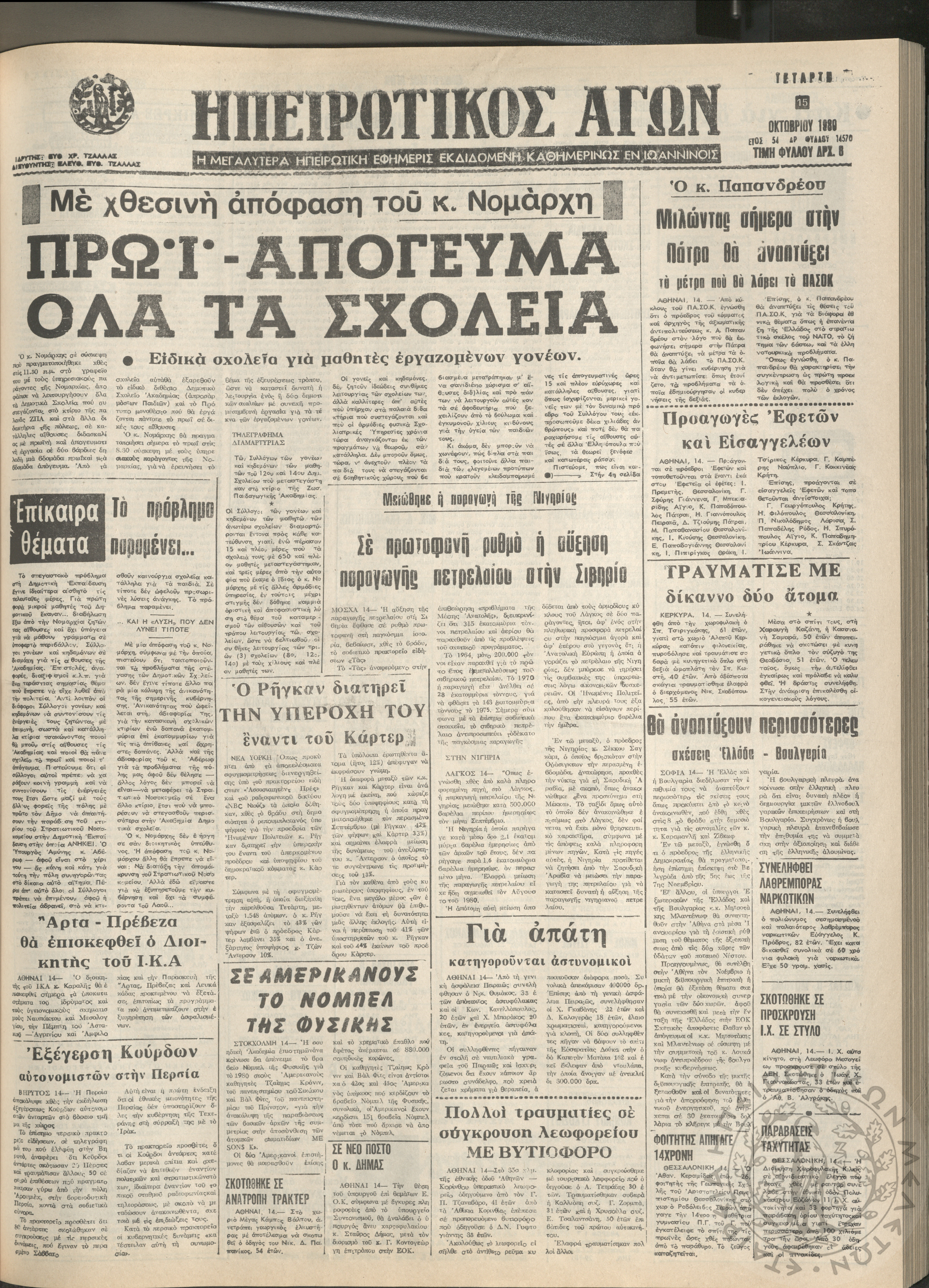 Ηπειρωτικός Αγών: η μεγαλυτέρα Ηπειρωτική εφημερίς εκδιδόμενη καθημερινώς εν Ιωαννίνοις, 1980, φ. 14583Έτος 54, φ. 14583...