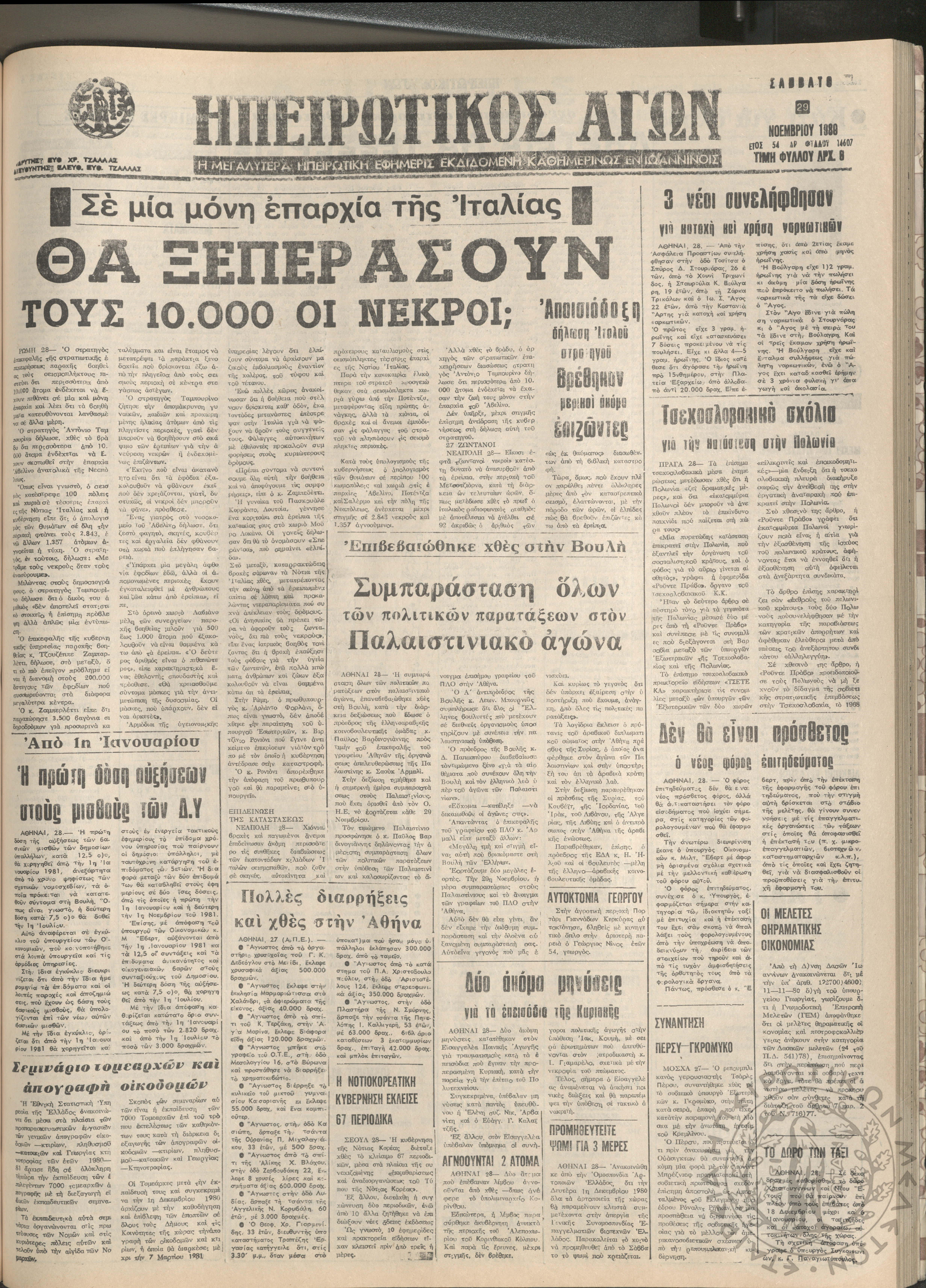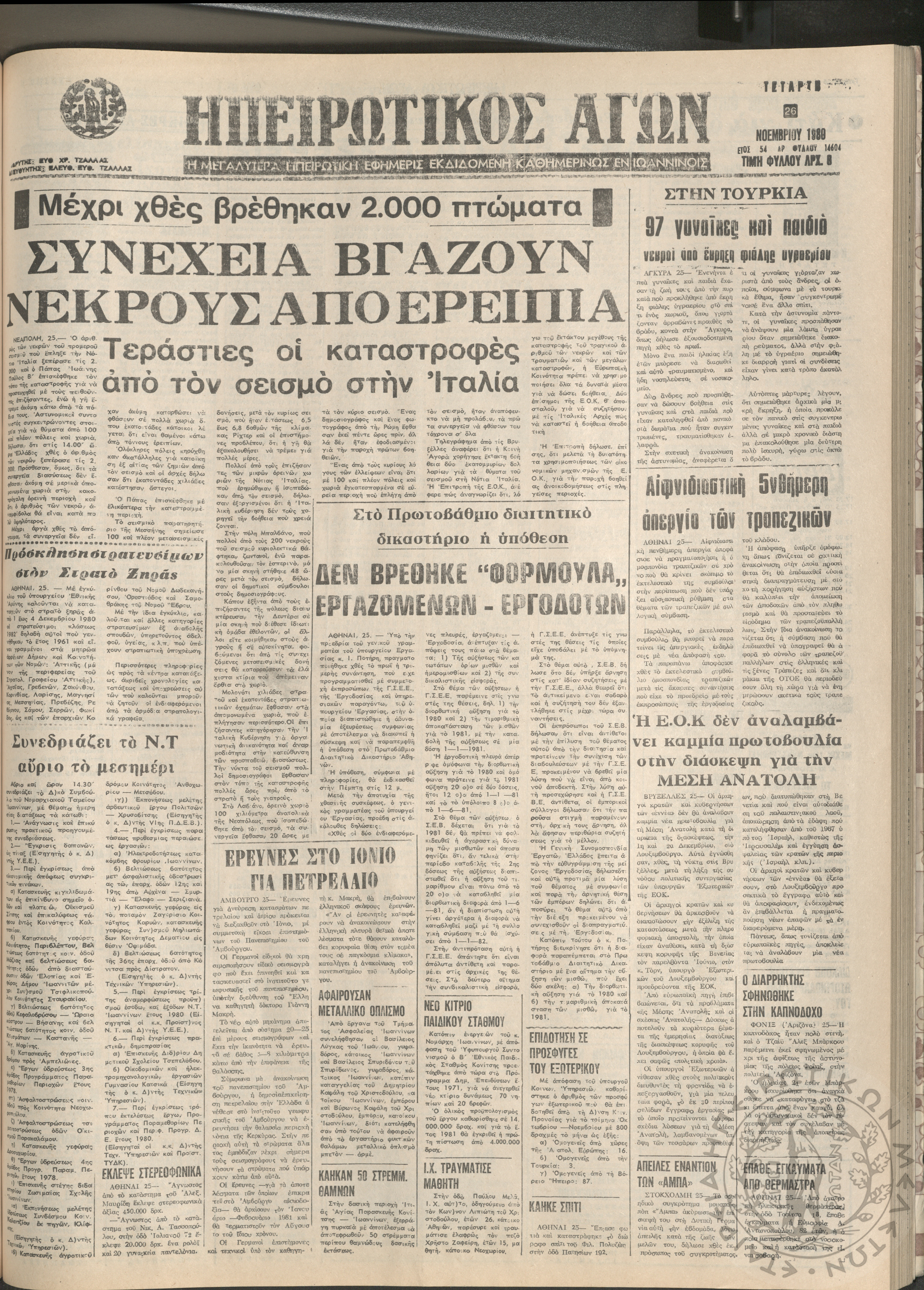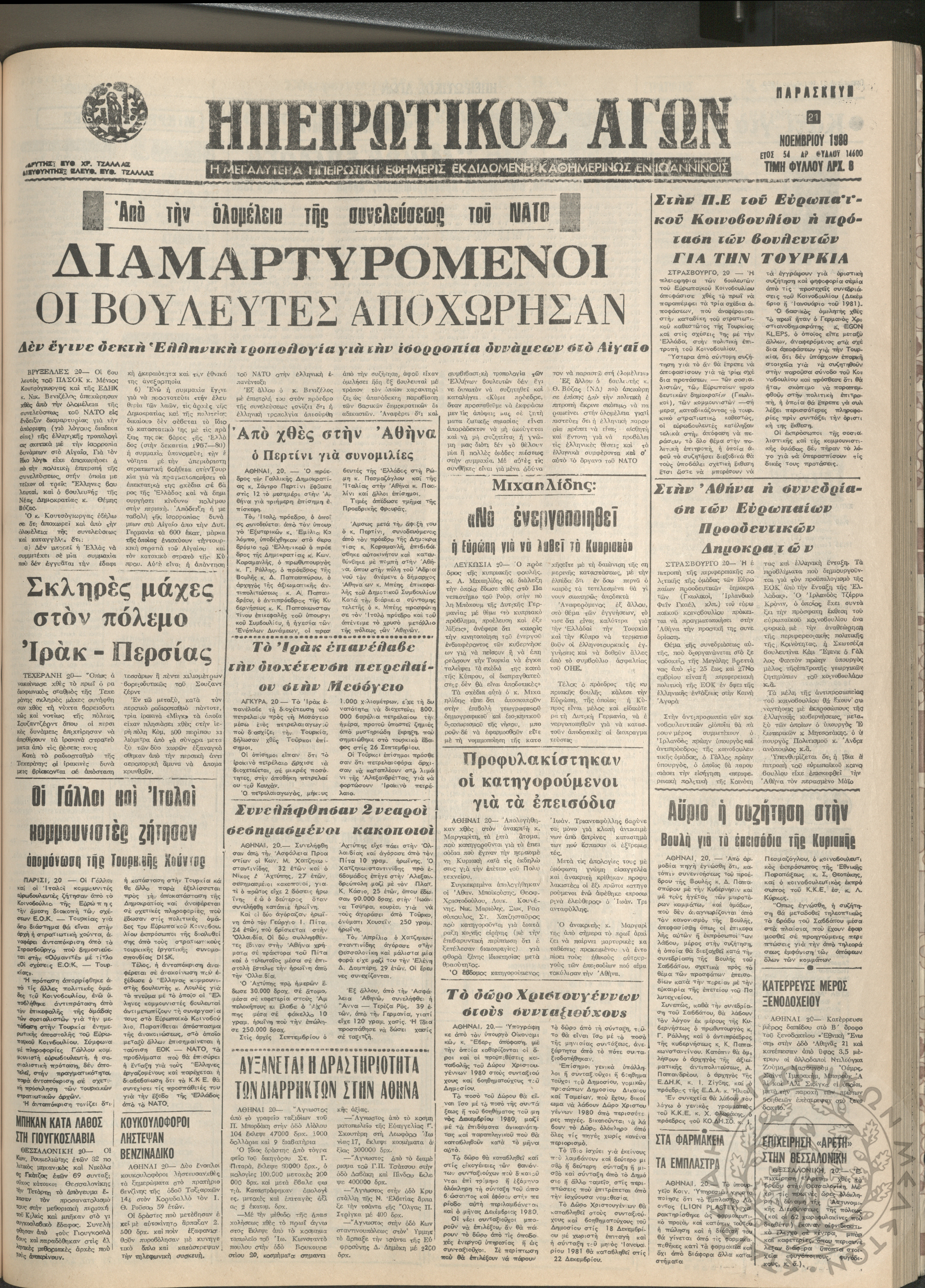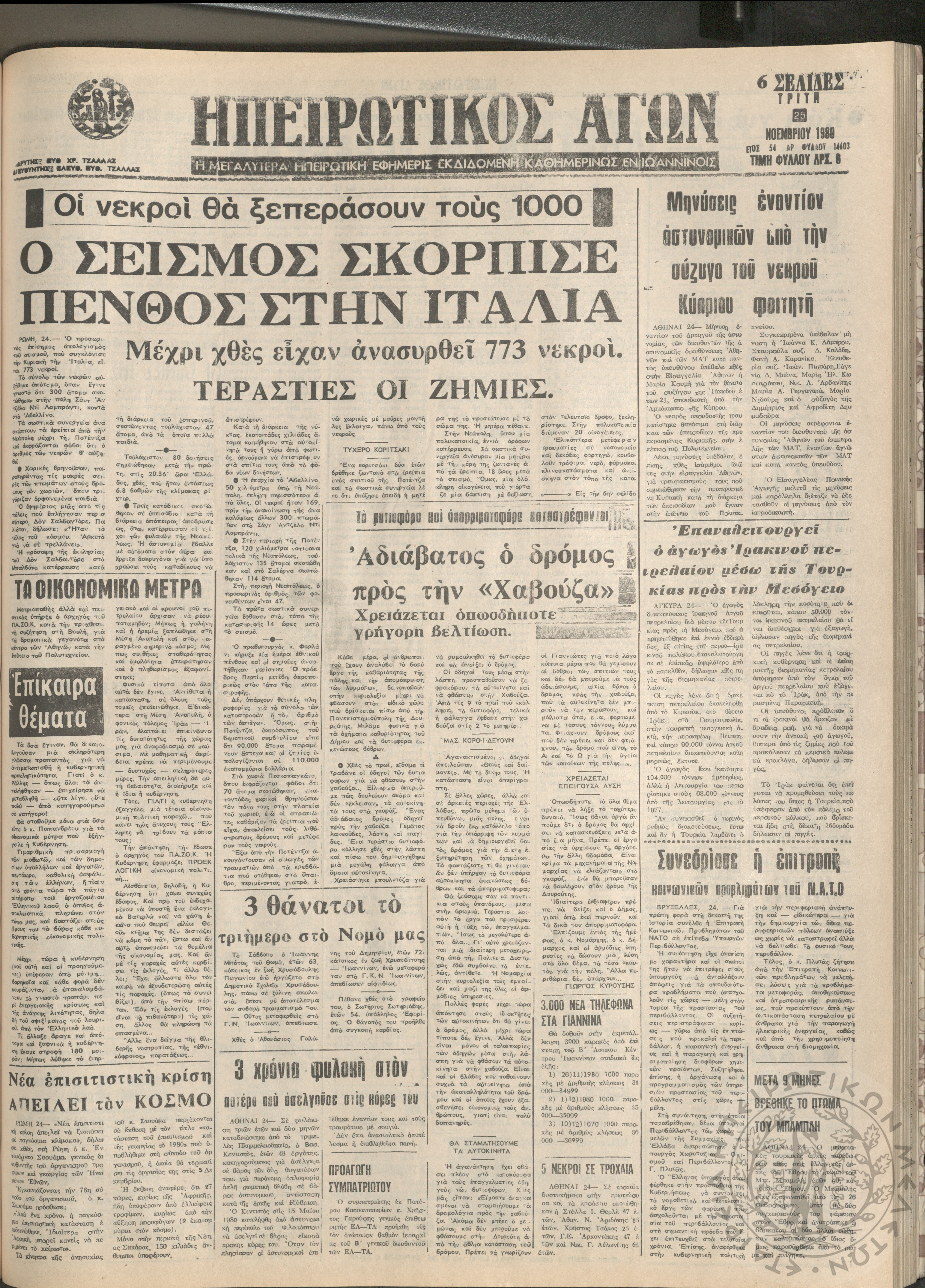 Ηπειρωτικός Αγών: η μεγαλυτέρα Ηπειρωτική εφημερίς εκδιδόμενη καθημερινώς εν Ιωαννίνοις, 1980, φ. 14608Έτος 54, φ. 14608...