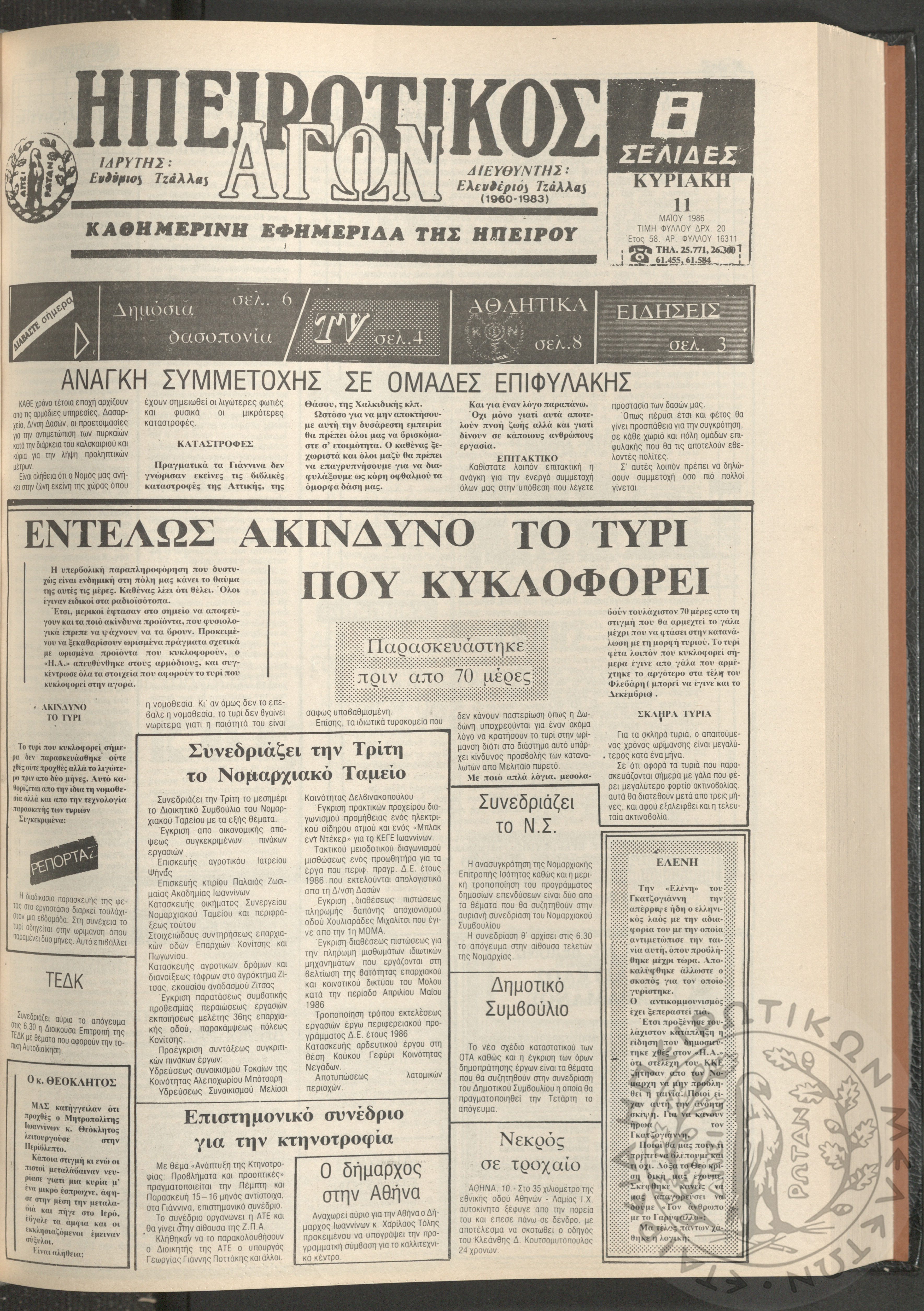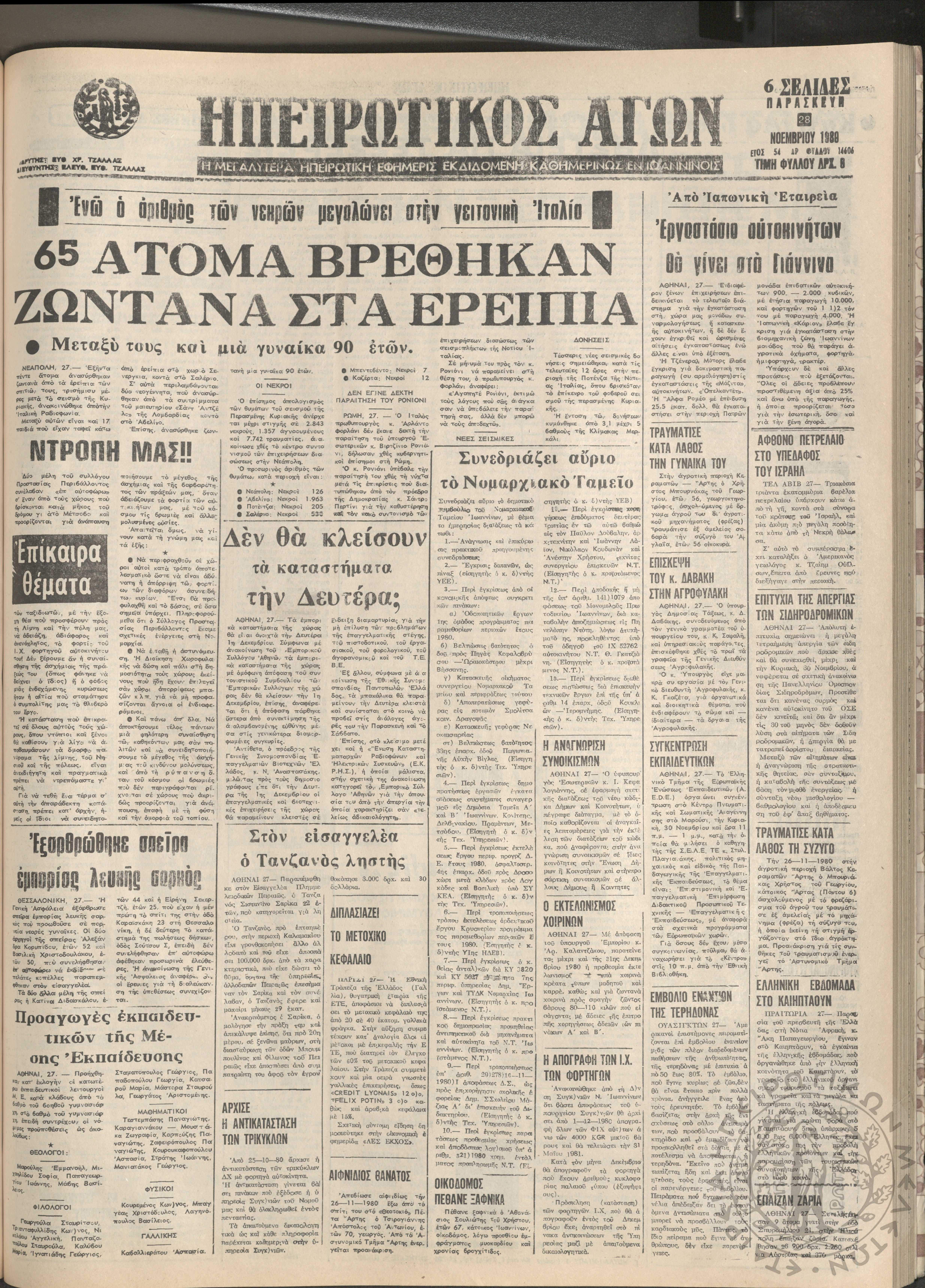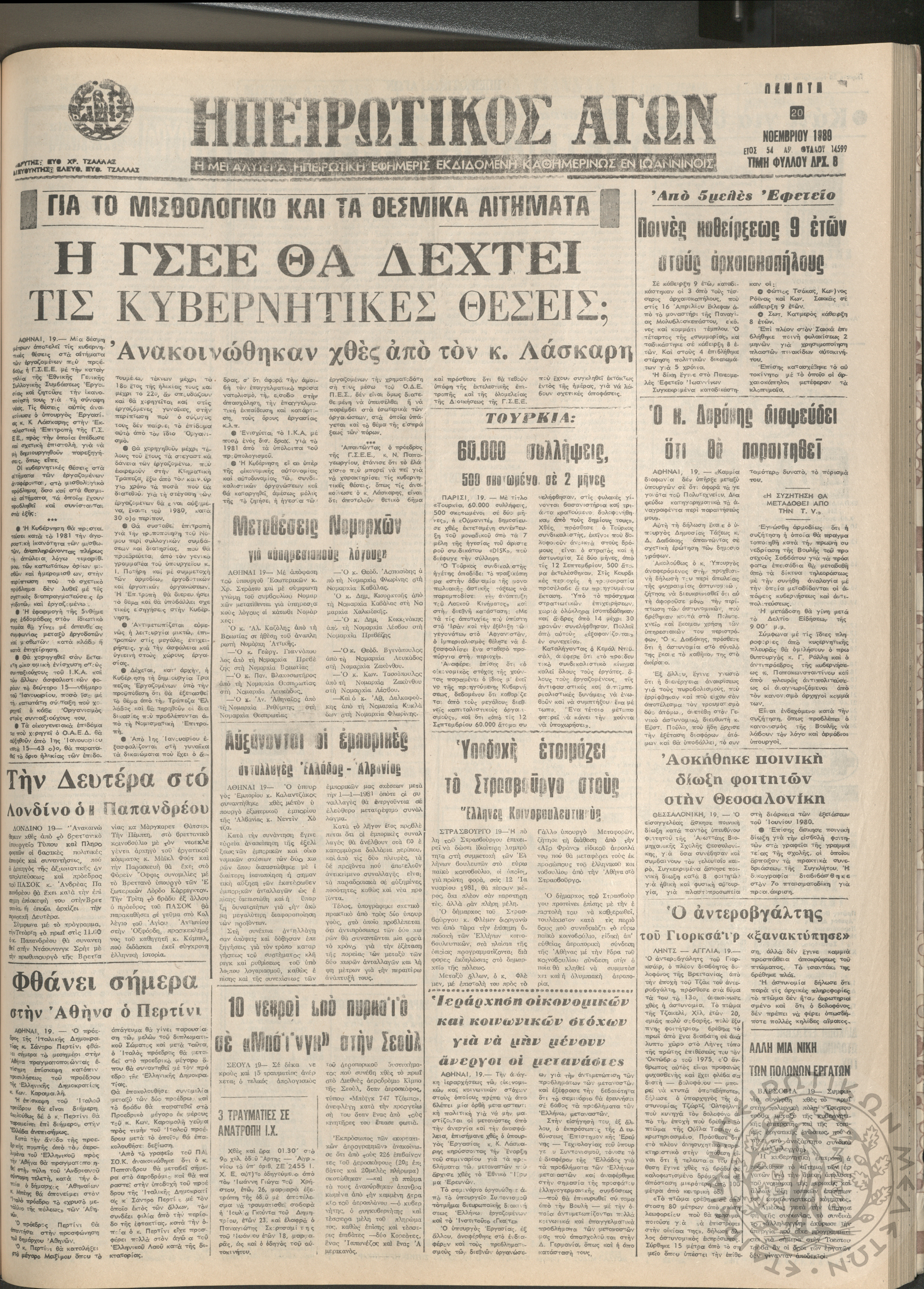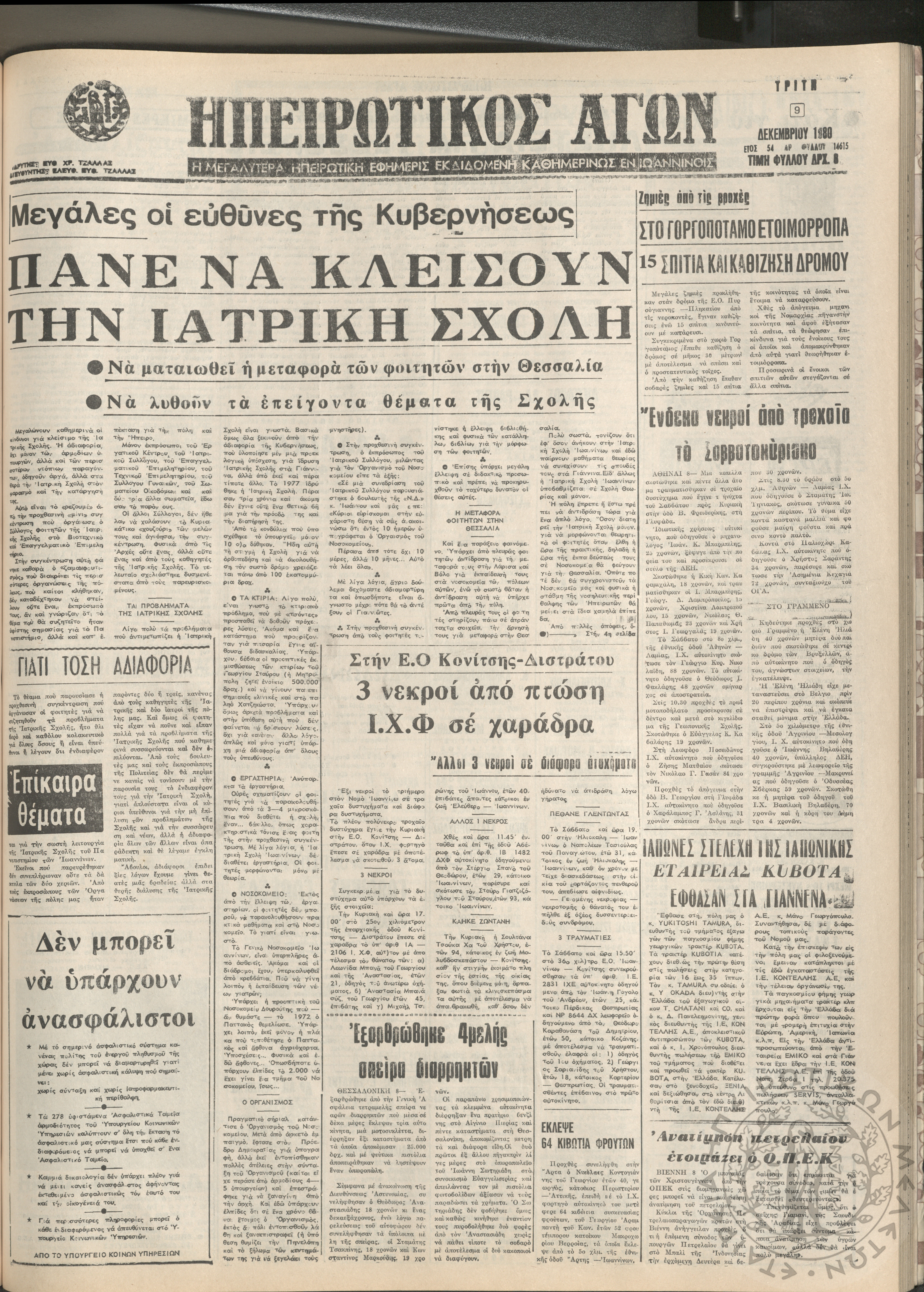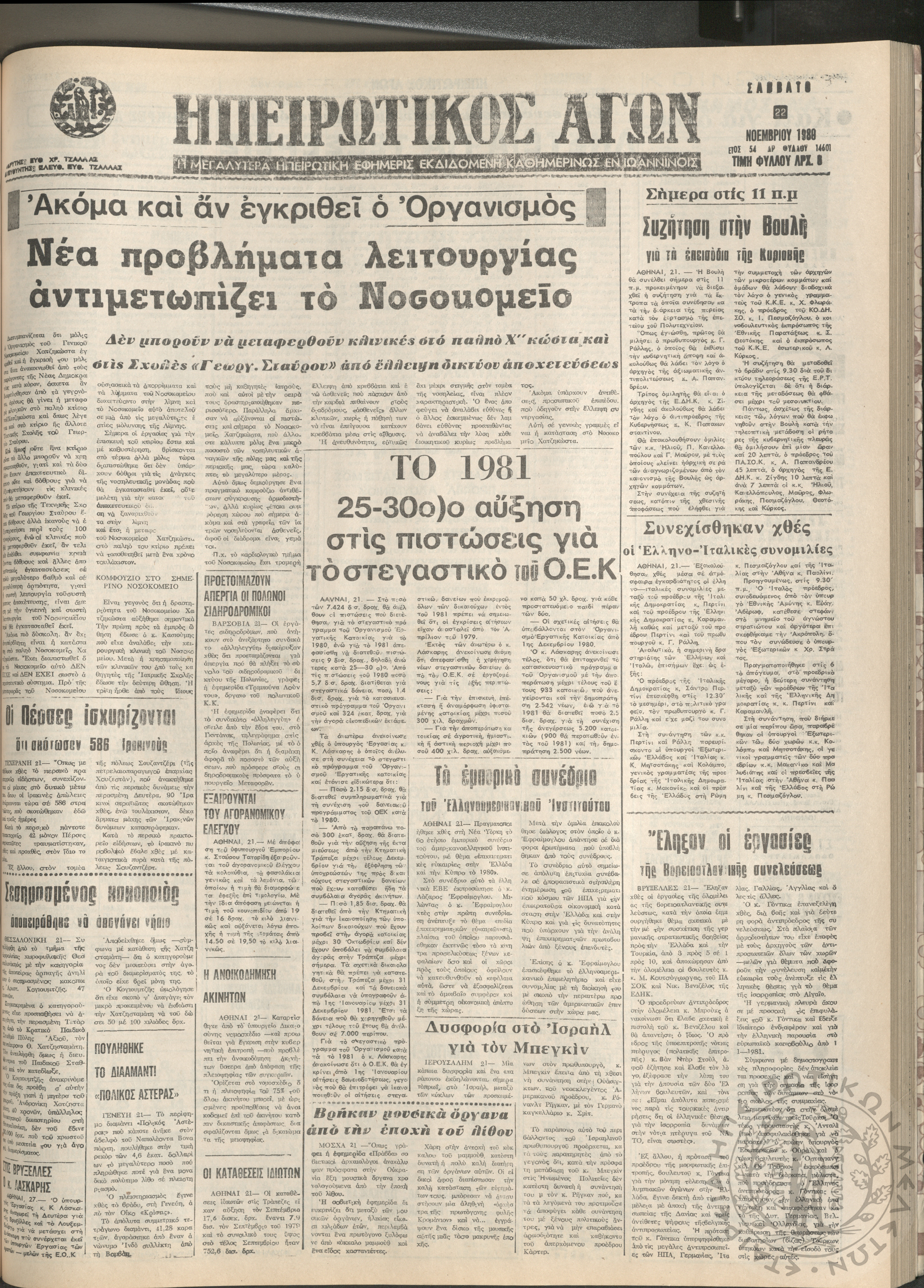 Ηπειρωτικός Αγών: η μεγαλυτέρα Ηπειρωτική εφημερίς εκδιδόμενη καθημερινώς εν Ιωαννίνοις, 1980, φ. 14608Έτος 54, φ. 14608...