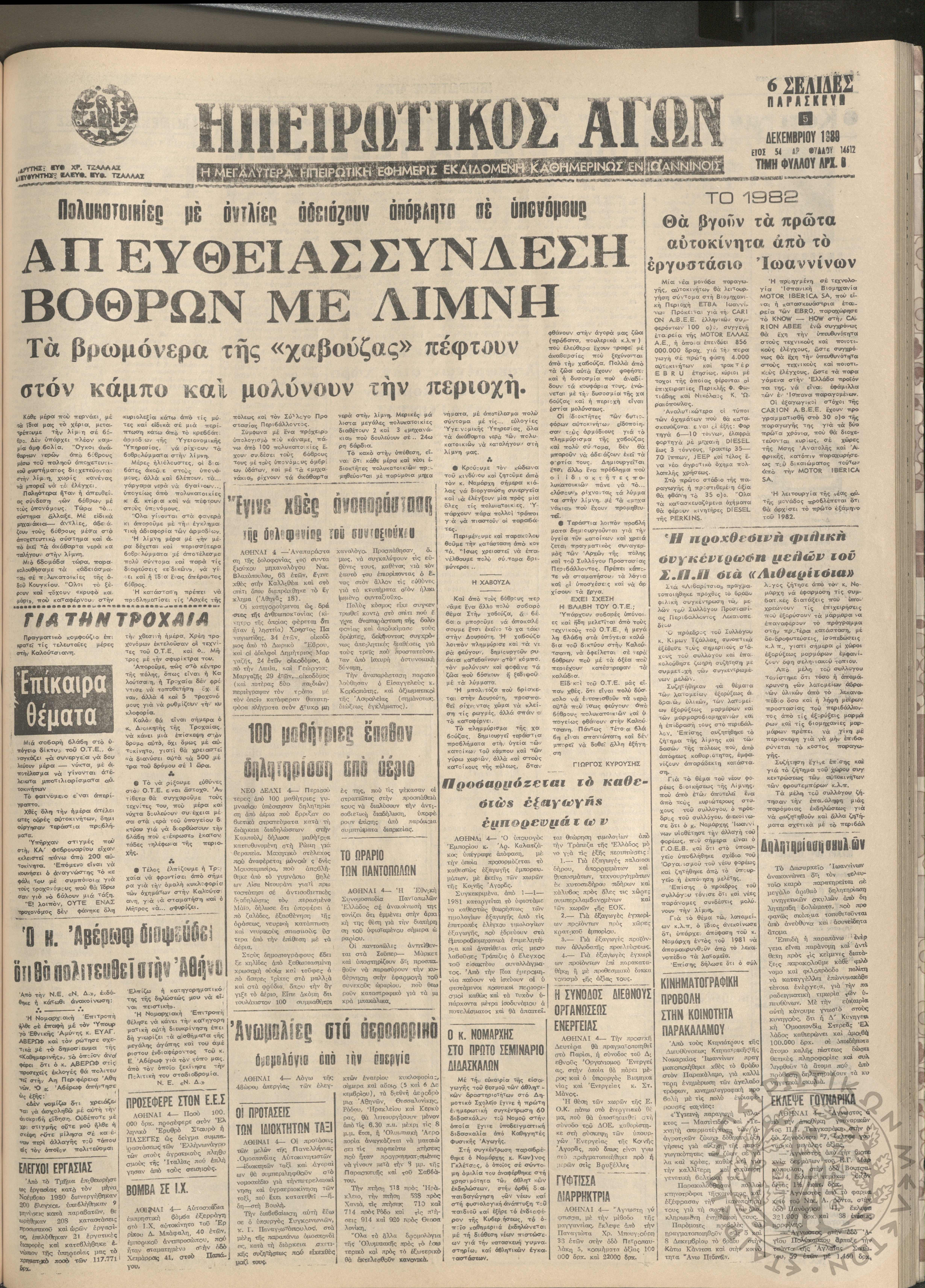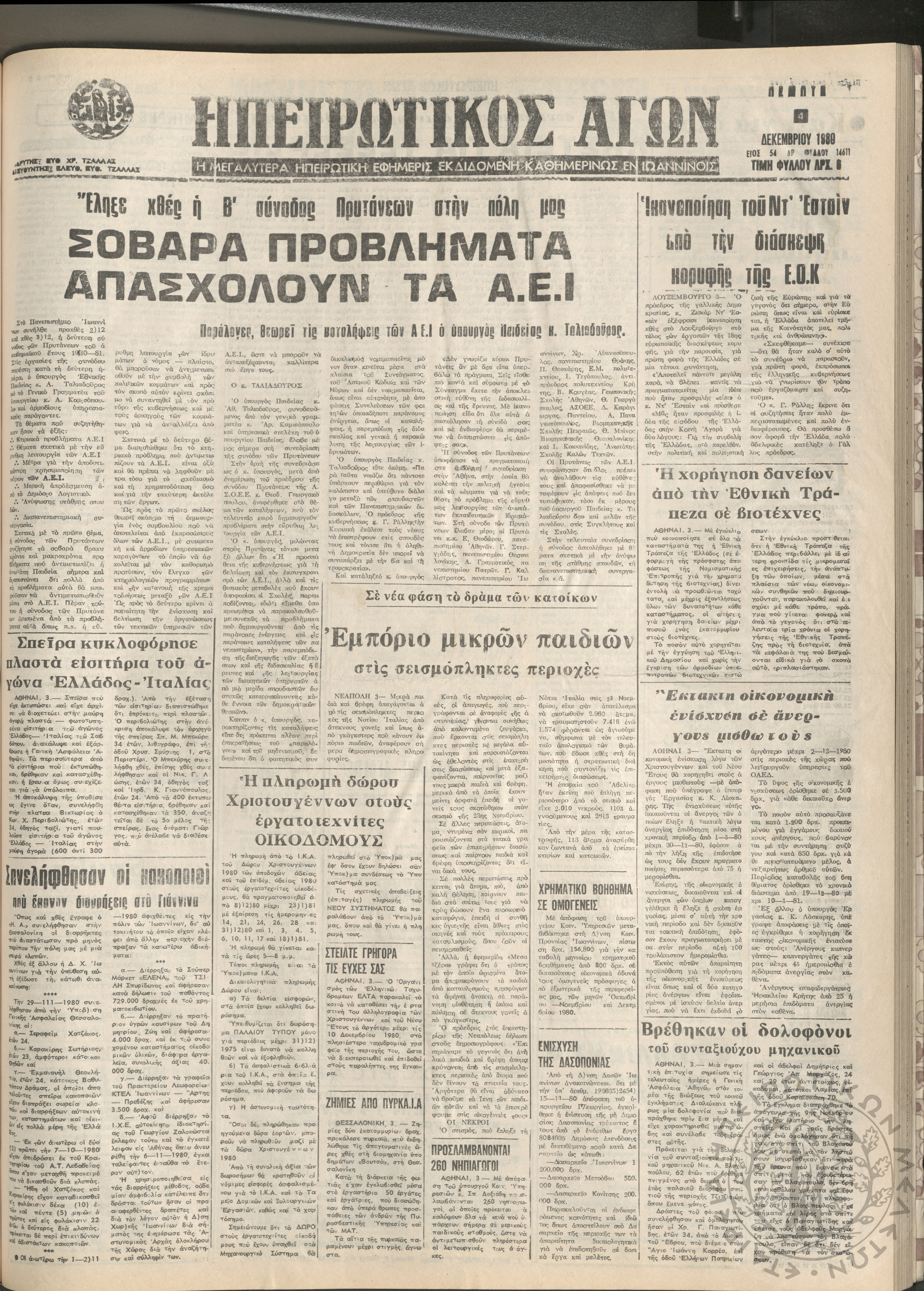 Ηπειρωτικός Αγών: η μεγαλυτέρα Ηπειρωτική εφημερίς εκδιδόμενη καθημερινώς εν Ιωαννίνοις, 1980, φ. 14612Έτος 54, φ. 14612...