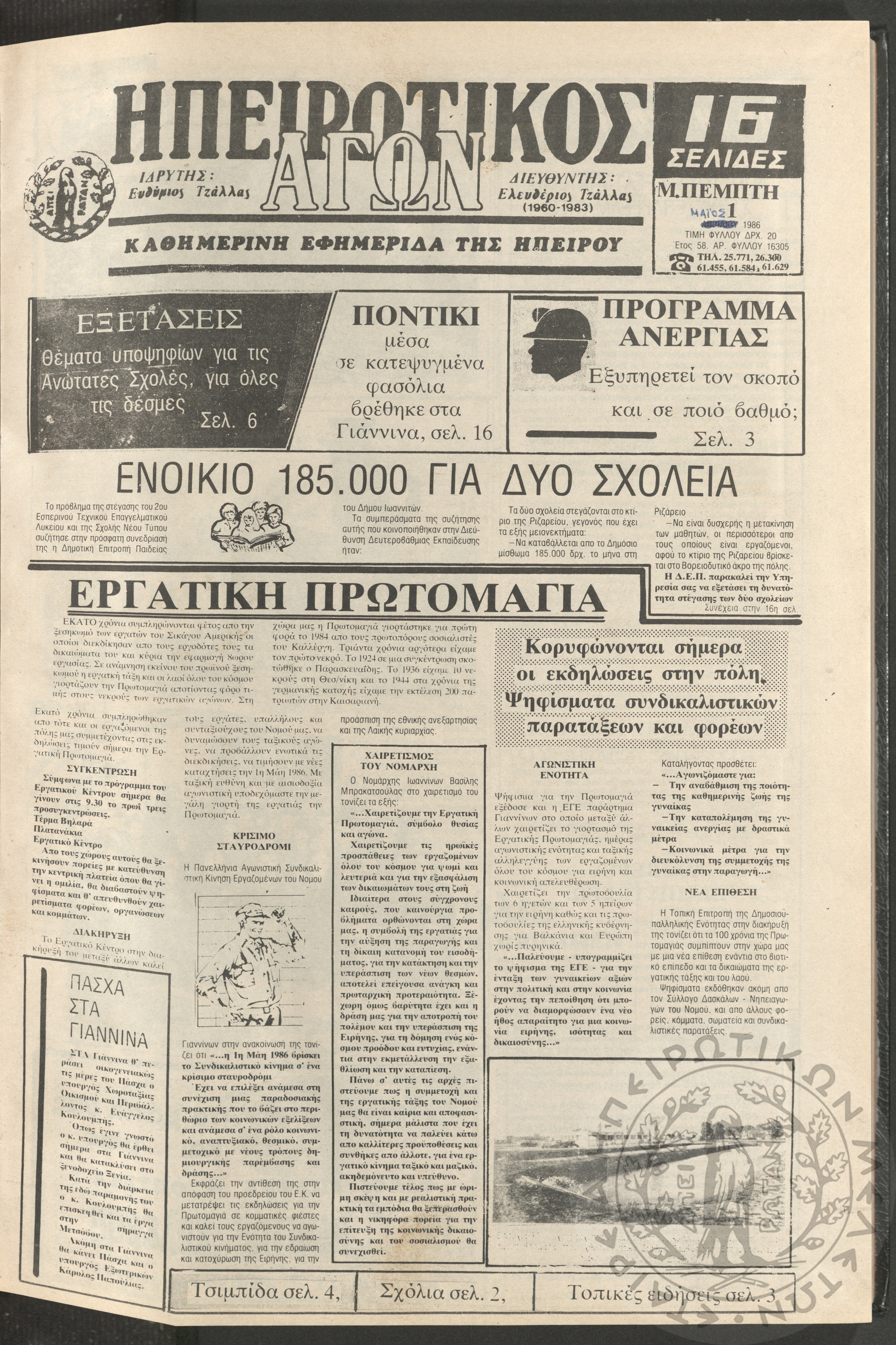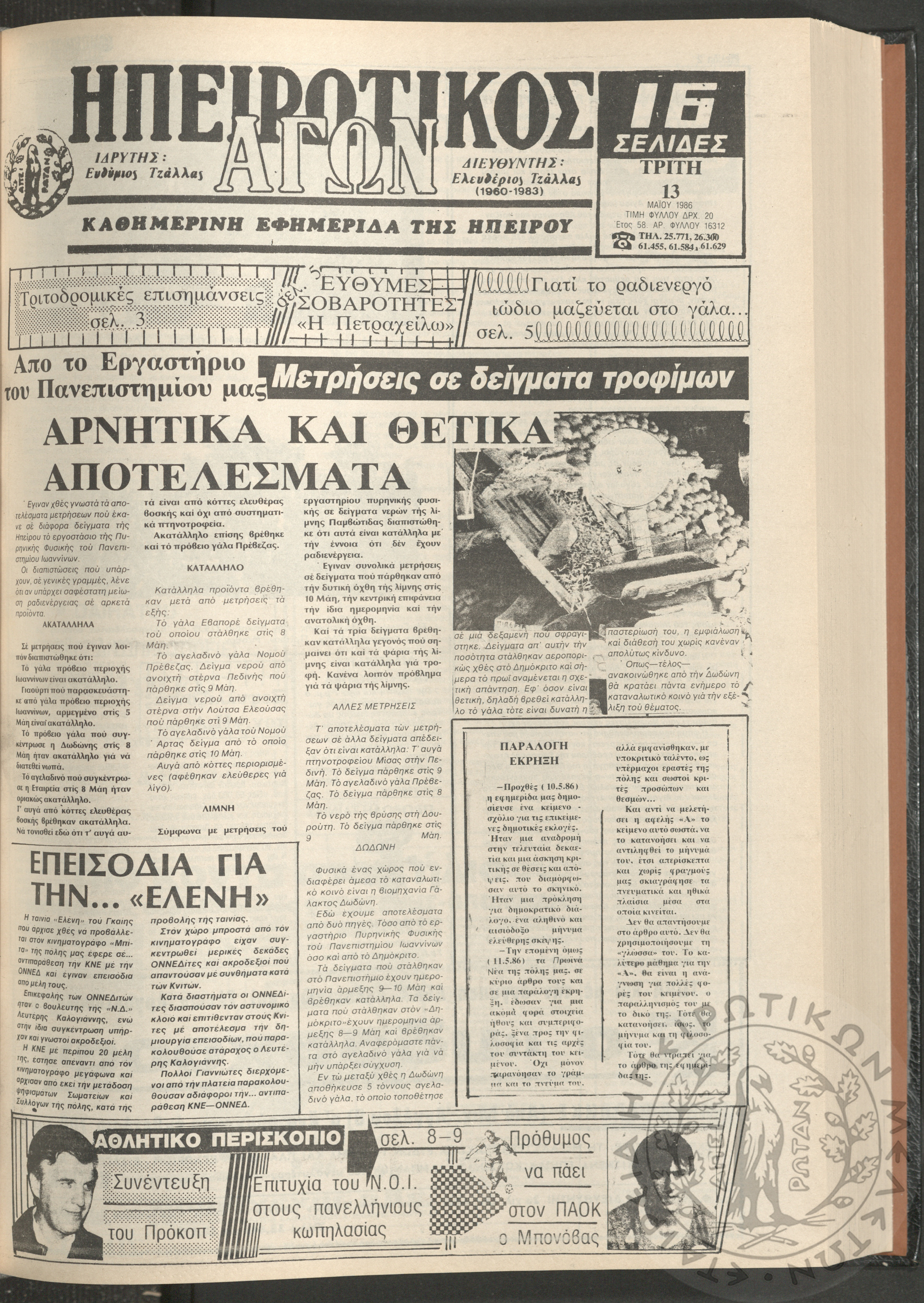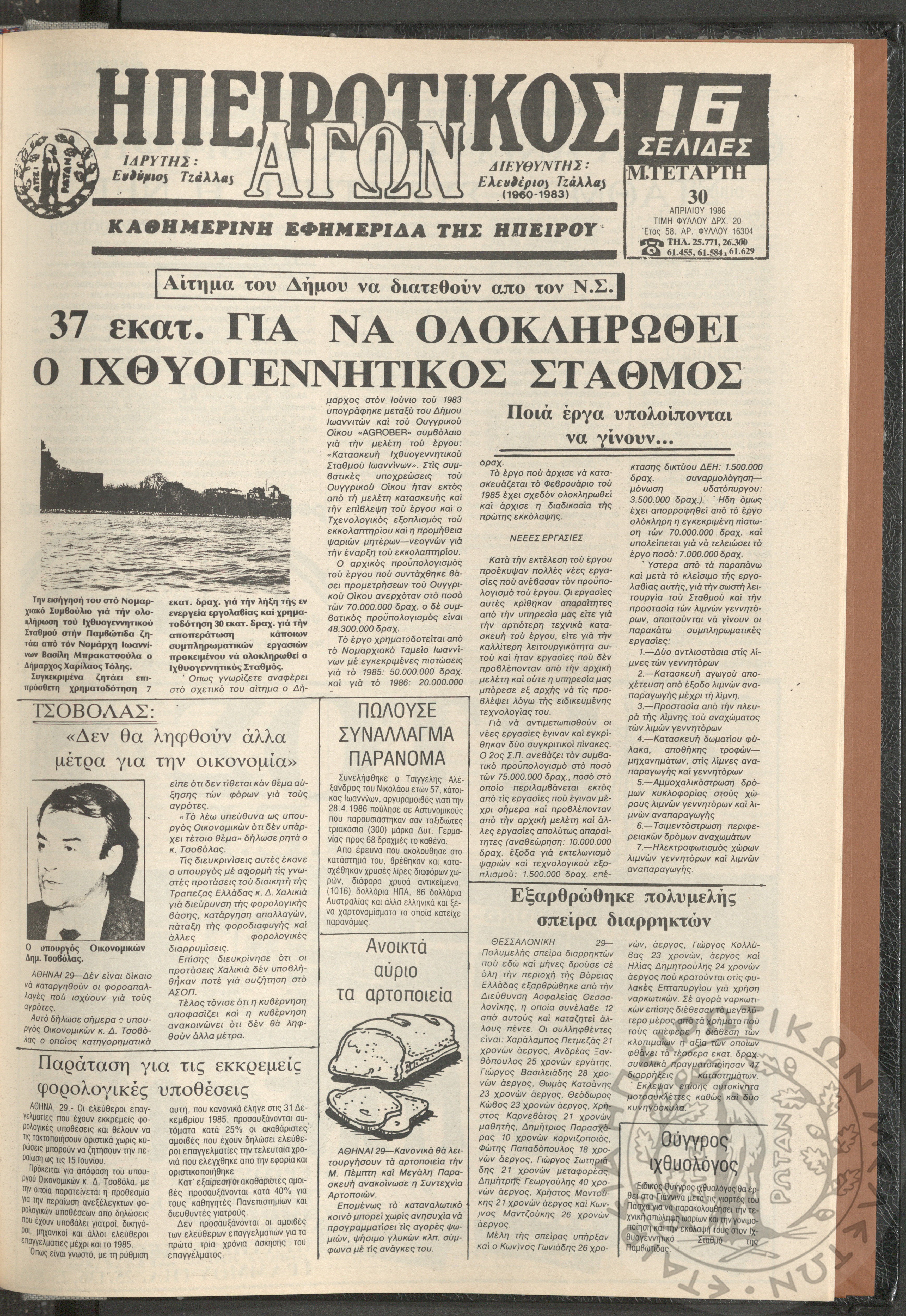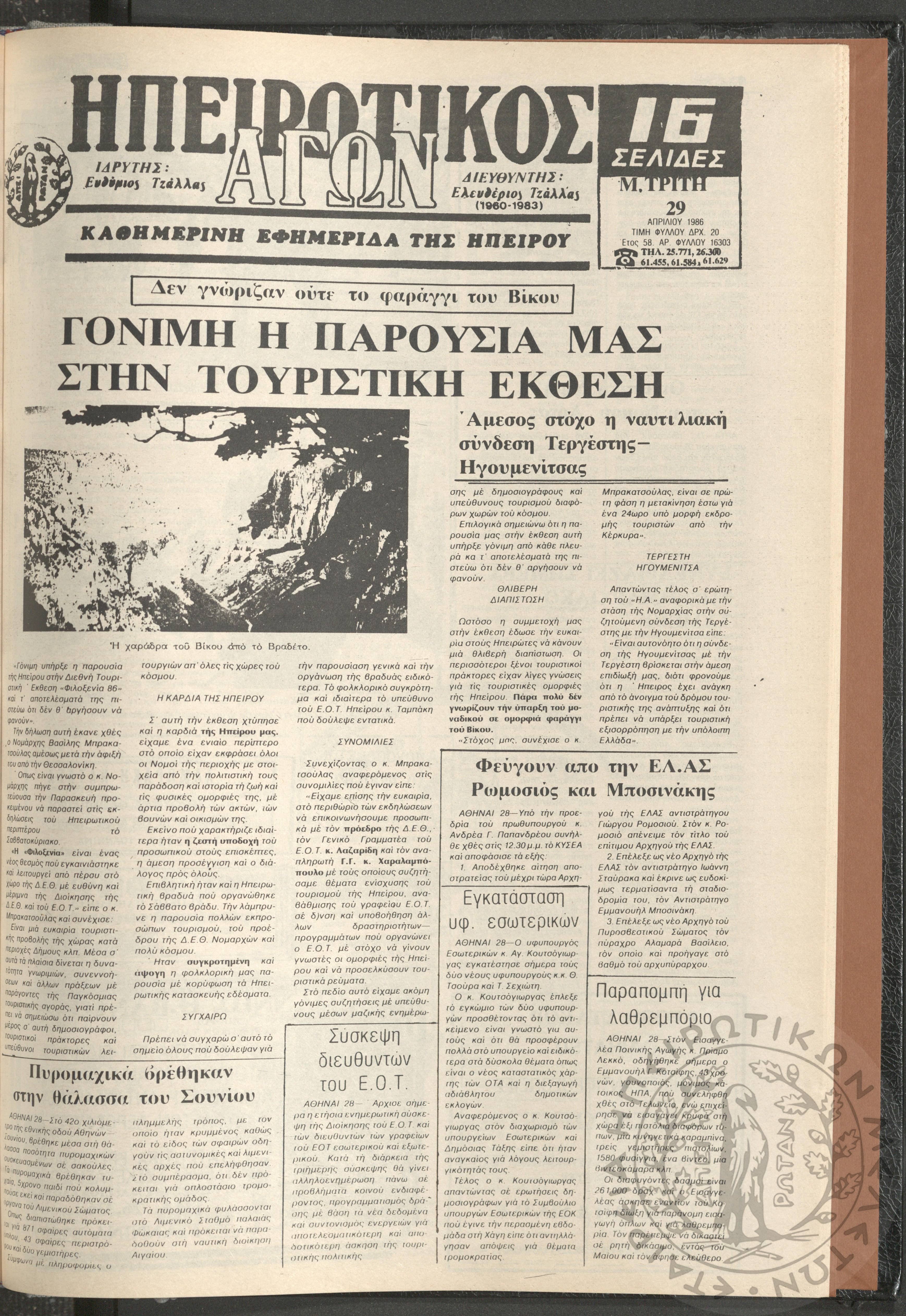 Ηπειρωτικός Αγών: η μεγαλυτέρα Ηπειρωτική εφημερίς εκδιδόμενη καθημερινώς εν Ιωαννίνοις, 1980, φ. 14613Έτος 54, φ. 14613...