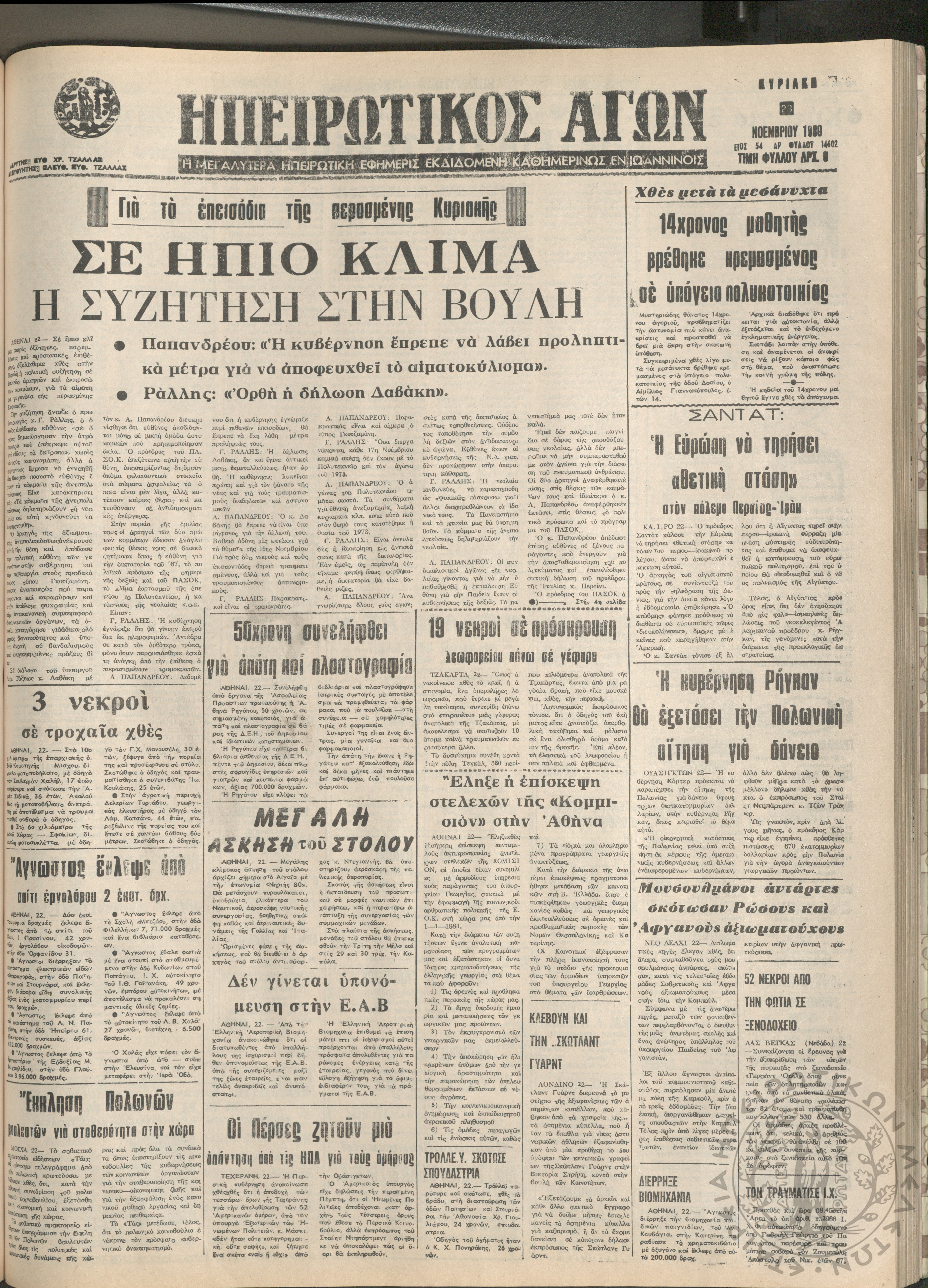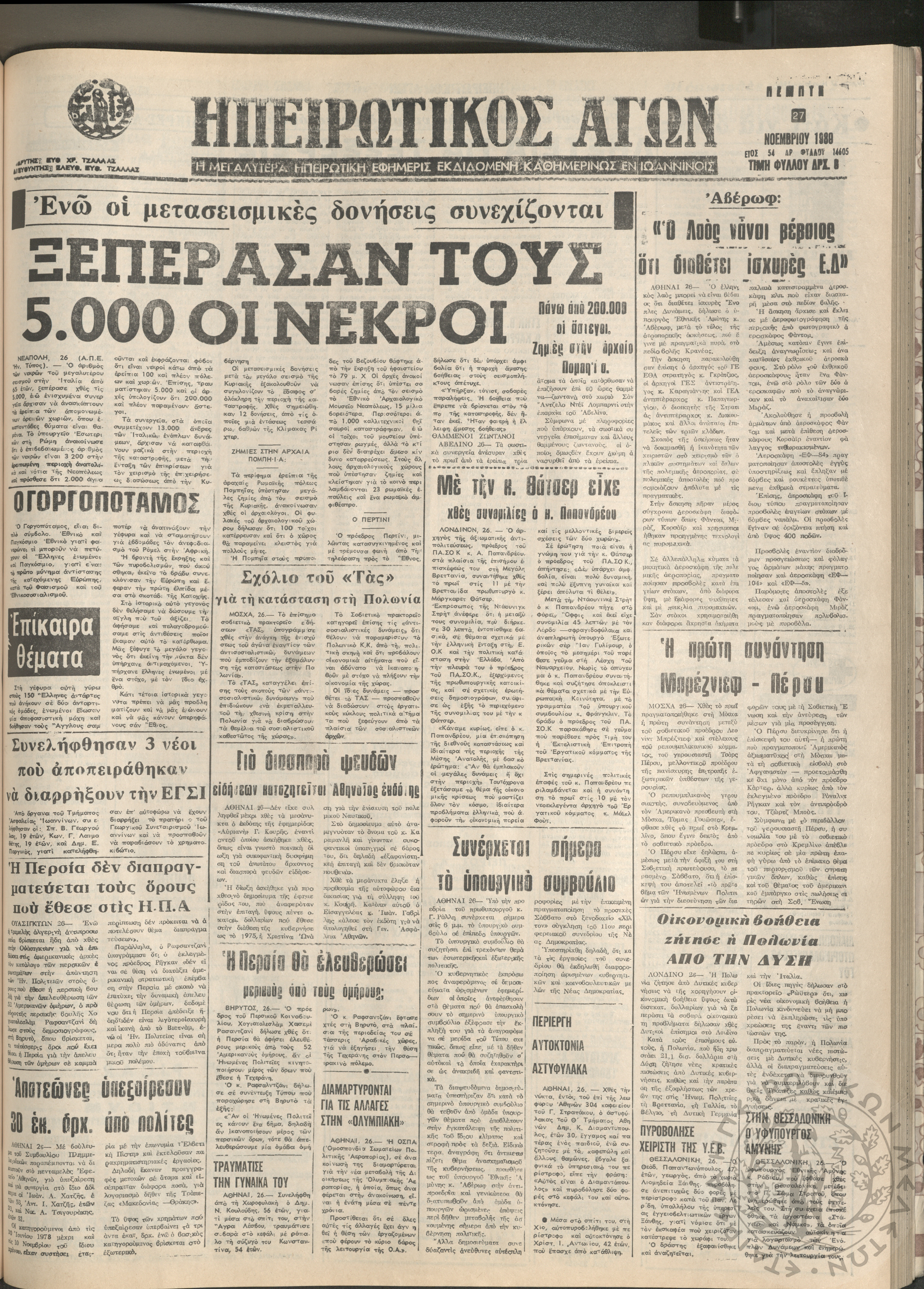 Ηπειρωτικός Αγών: η μεγαλυτέρα Ηπειρωτική εφημερίς εκδιδόμενη καθημερινώς εν Ιωαννίνοις, 1980, φ. 14603Έτος 54, φ. 14603...