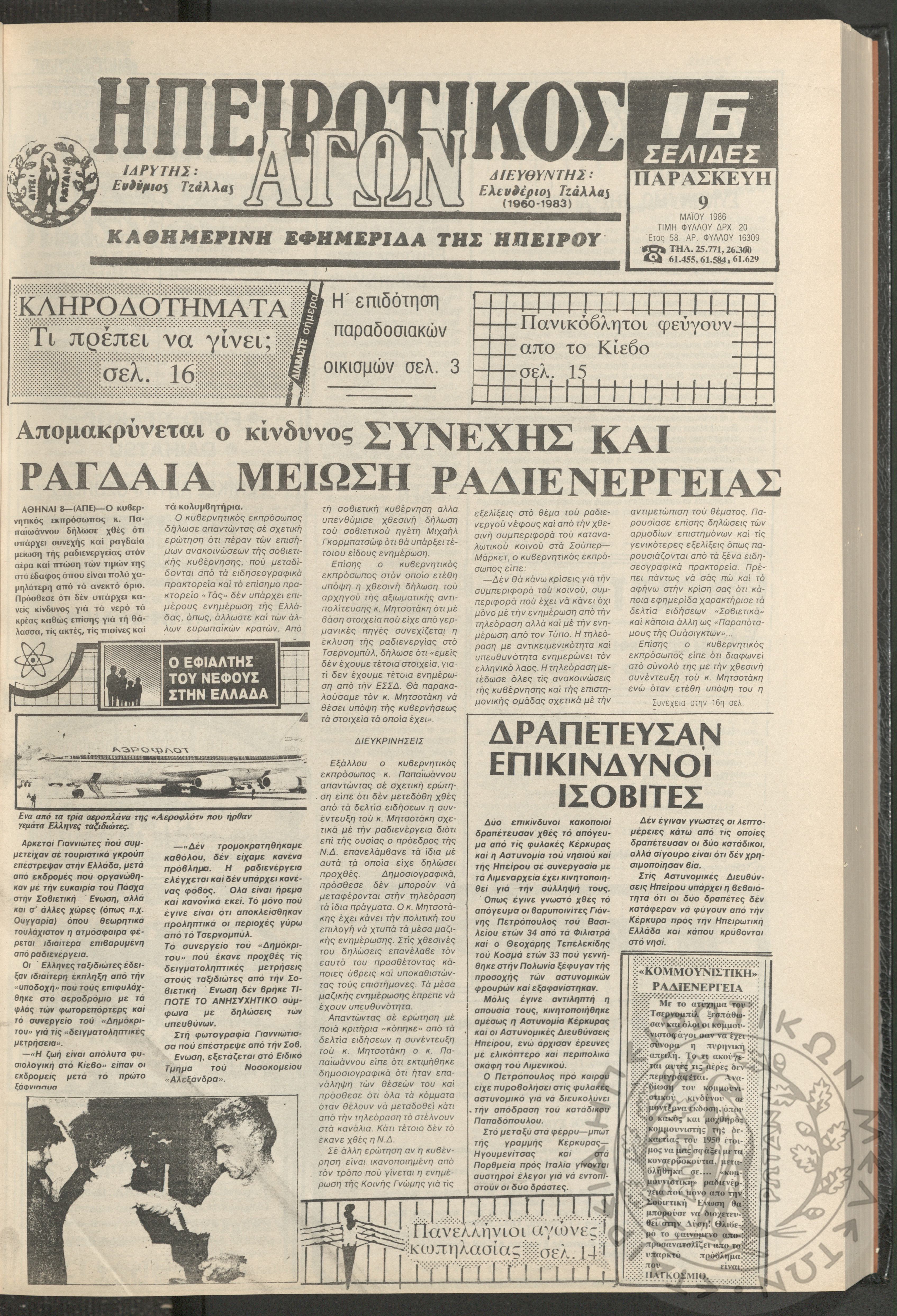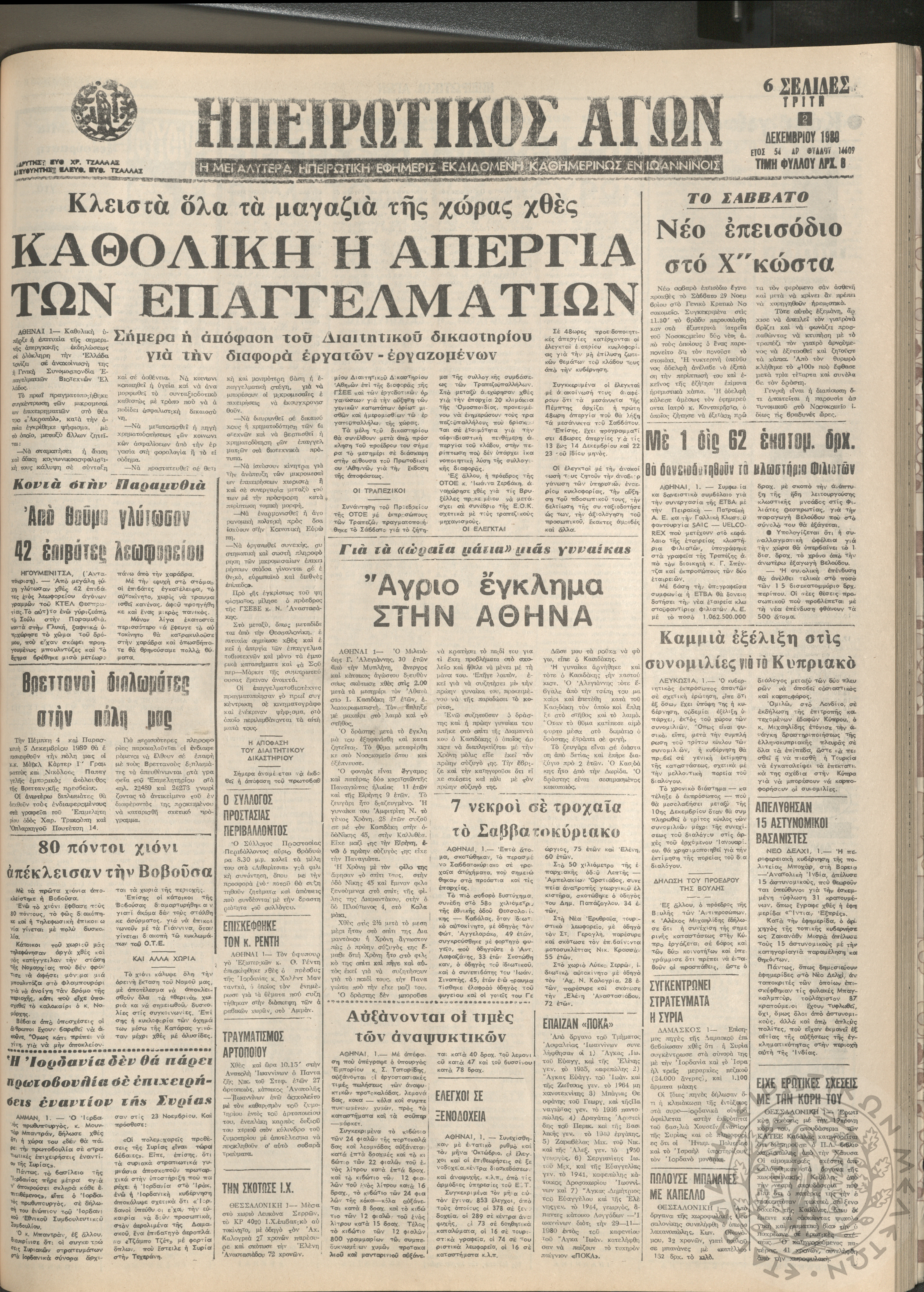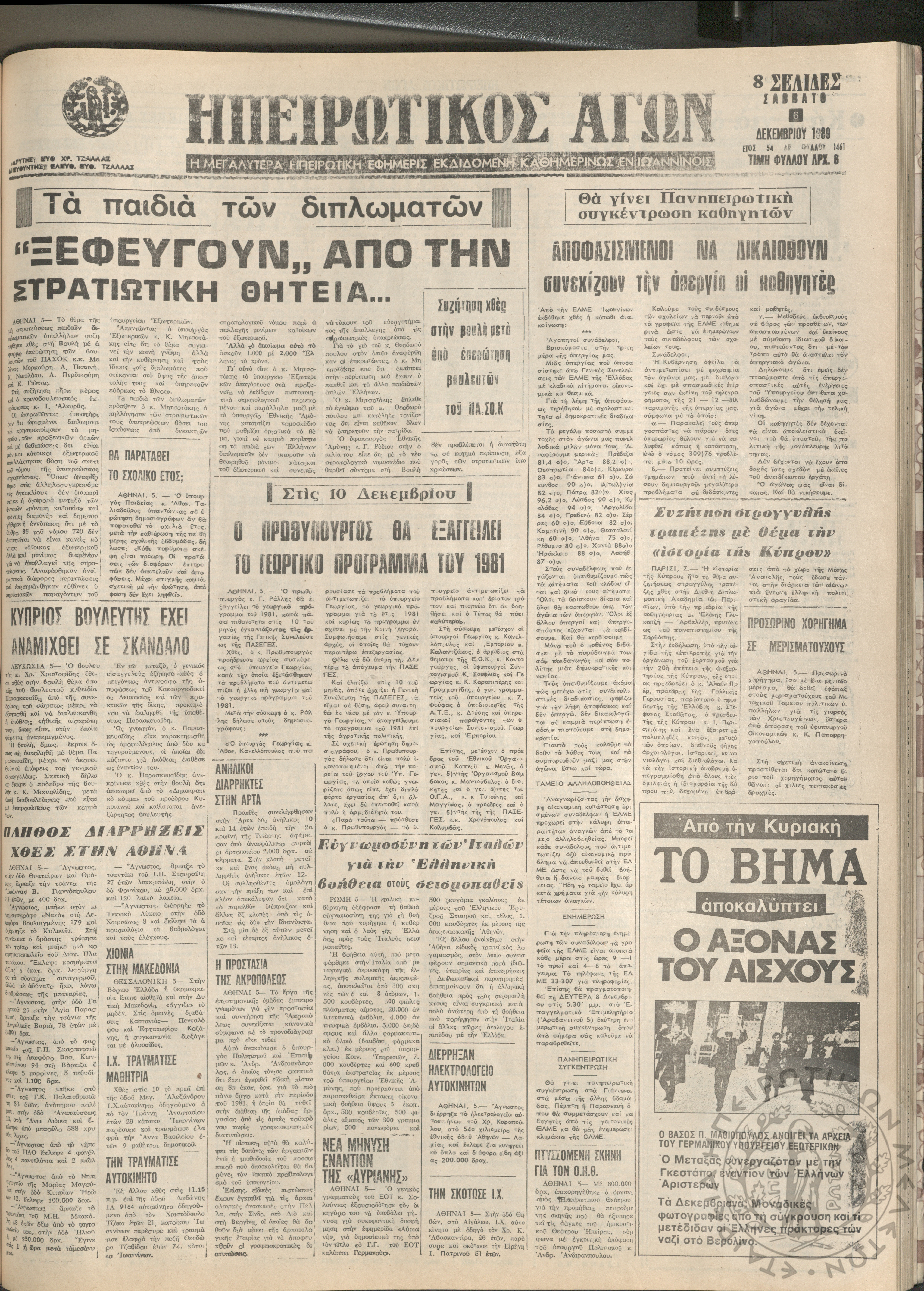Ηπειρωτικός Αγών: η μεγαλυτέρα Ηπειρωτική εφημερίς εκδιδόμενη καθημερινώς εν Ιωαννίνοις, 1980, φ. 14610Έτος 54, φ. 14610...