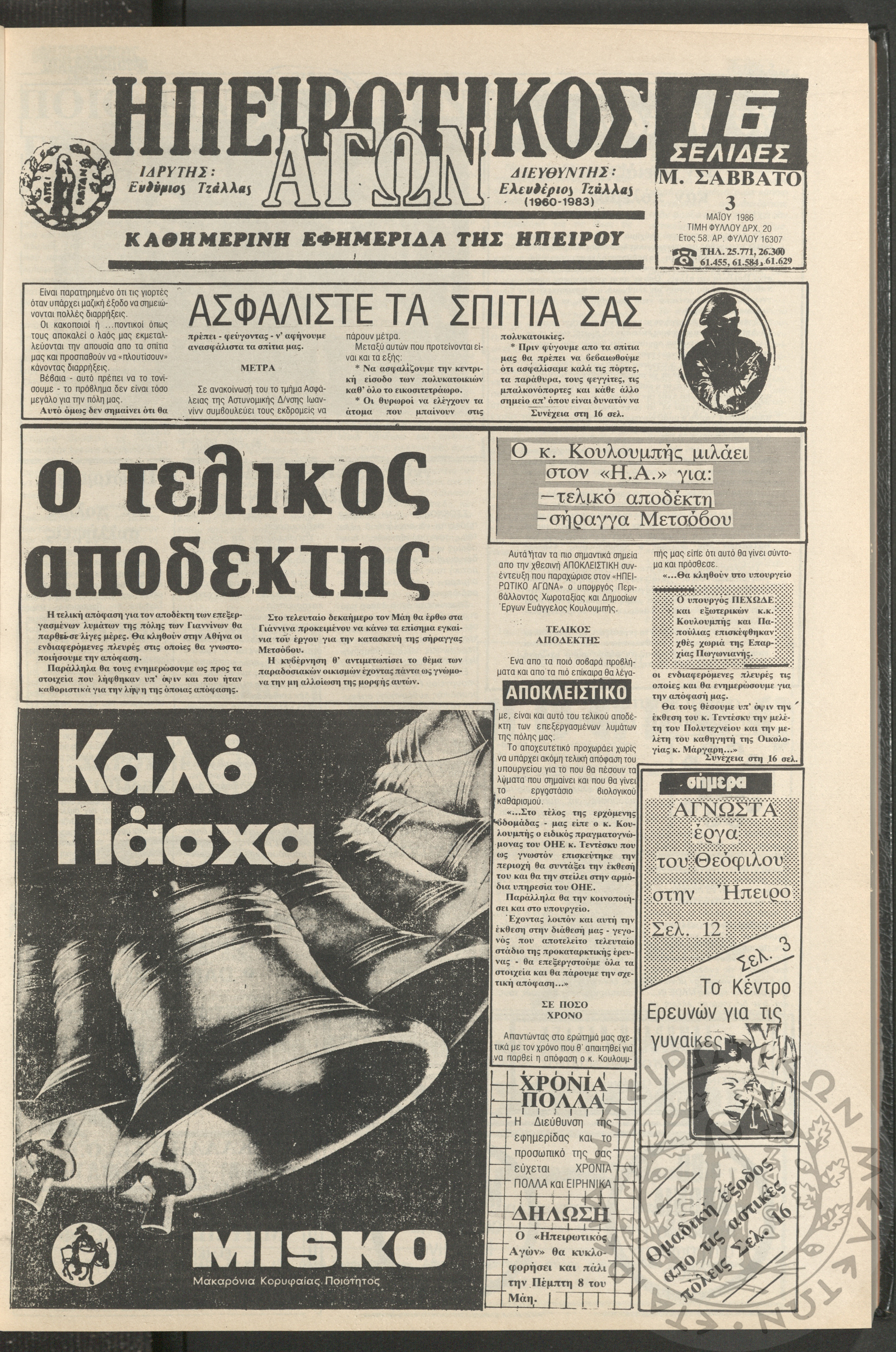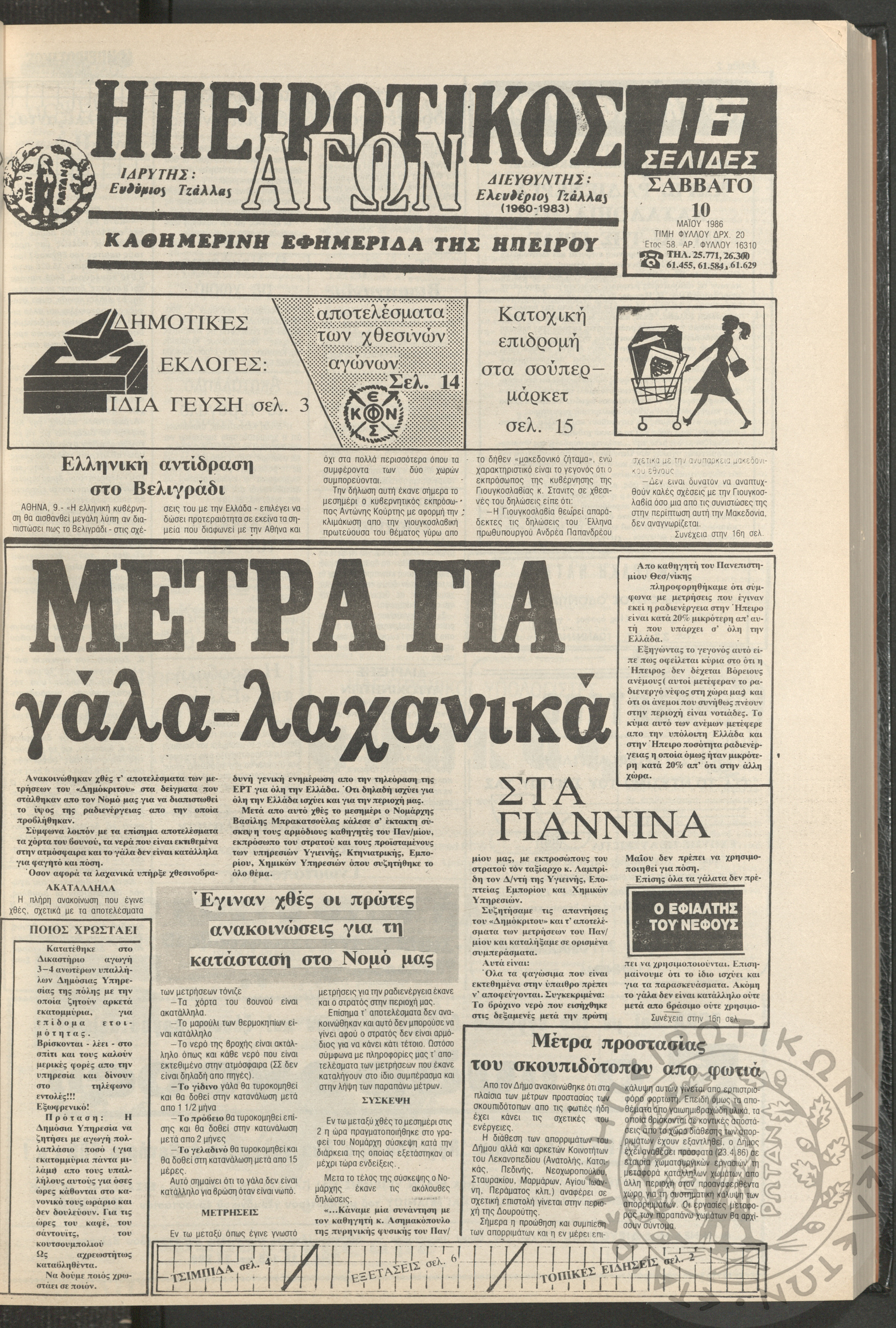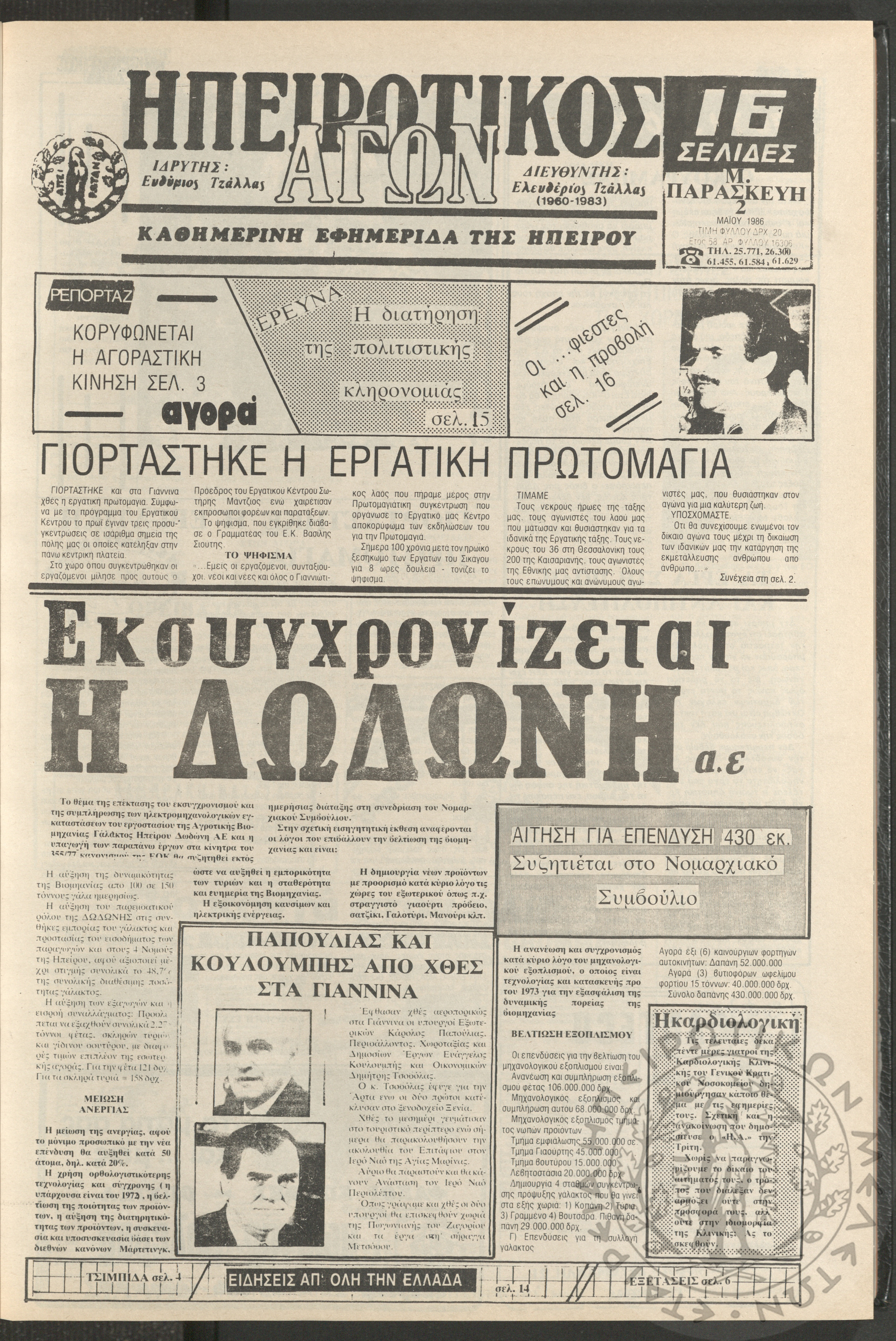Ηπειρωτικός Αγών: η μεγαλυτέρα Ηπειρωτική εφημερίς εκδιδόμενη καθημερινώς εν Ιωαννίνοις, 1980, φ. 14610Έτος 54, φ. 14610...