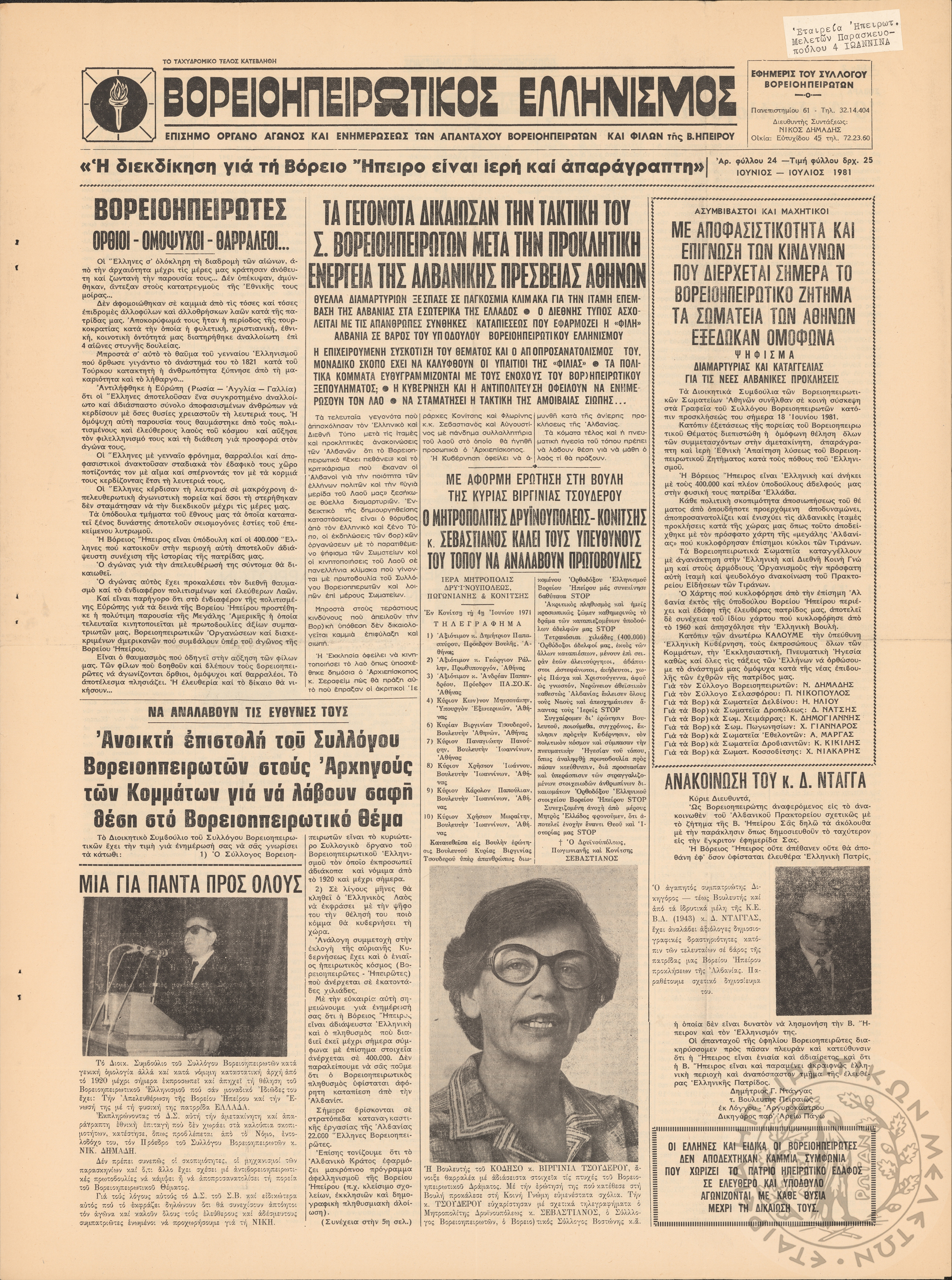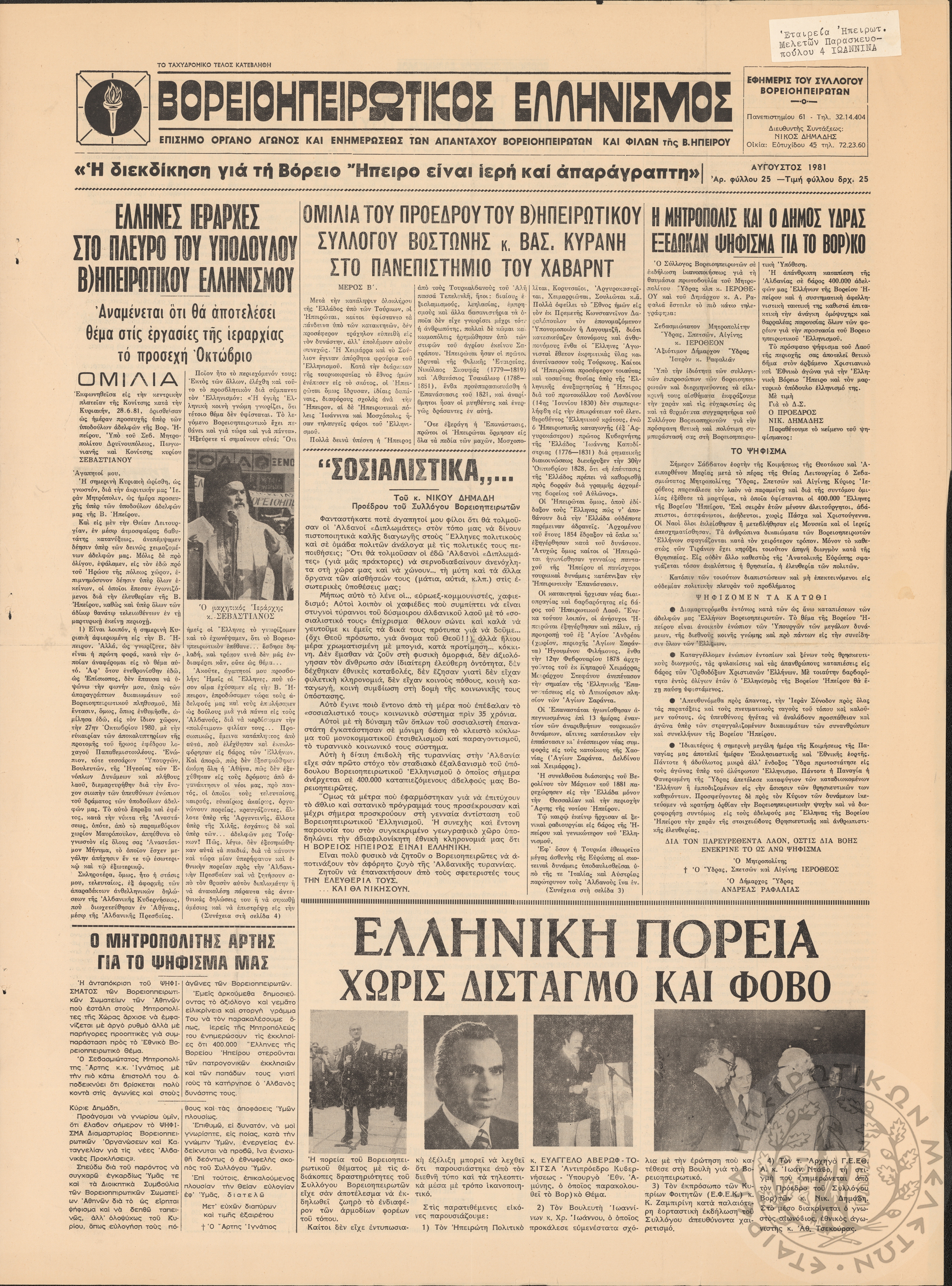 Βορειοηπειρωτικός Ελληνισμός: επίσημο όργανο αγώνος και αντιστάσεως των απανταχού Βορειοηπειρωτών και φίλων της Β. Ηπείρου, 1981, φ. 25...