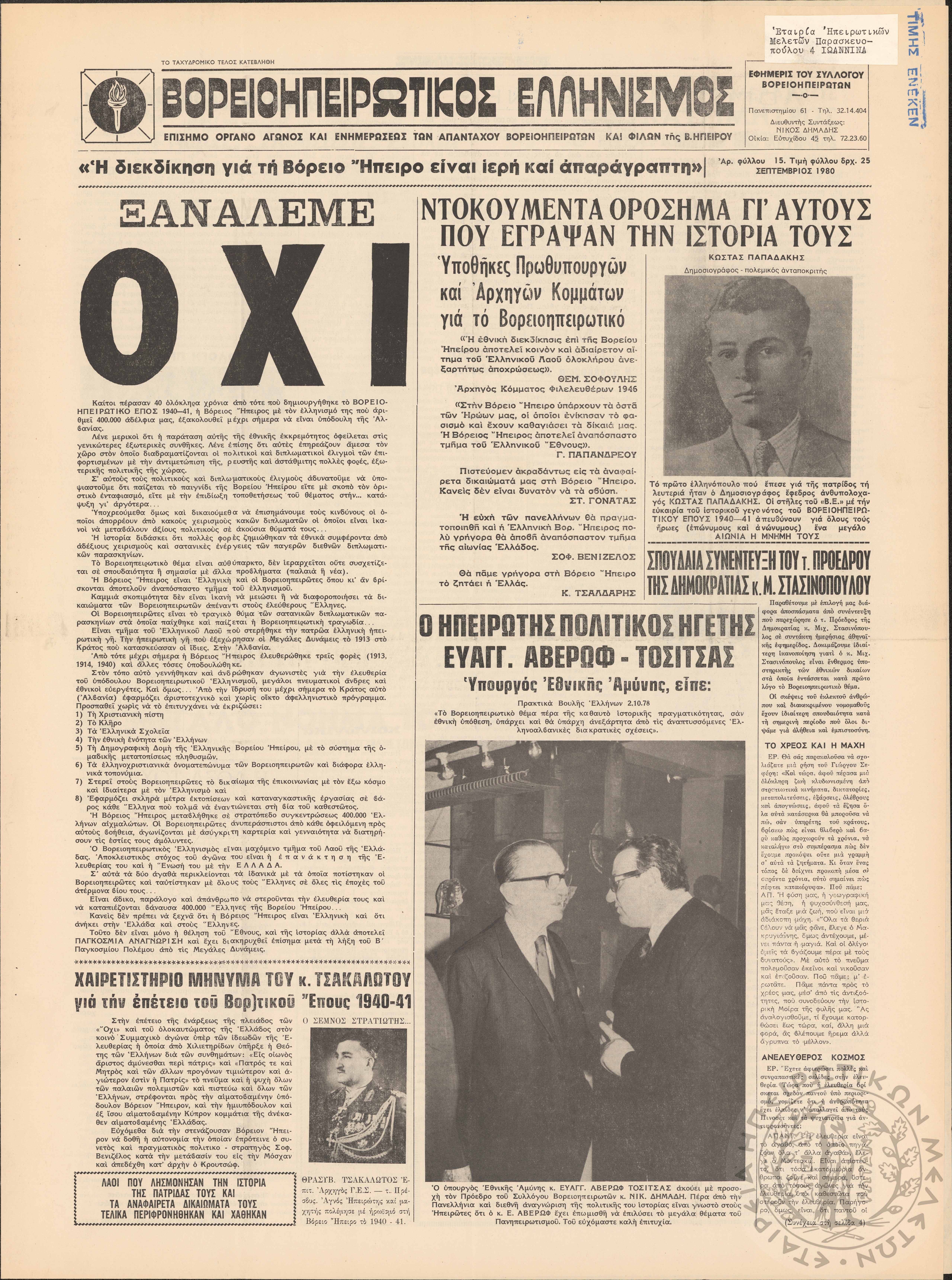 Βορειοηπειρωτικός Ελληνισμός: επίσημο όργανο αγώνος και αντιστάσεως των απανταχού Βορειοηπειρωτών και φίλων της Β. Ηπείρου, 1980, φ. 15...