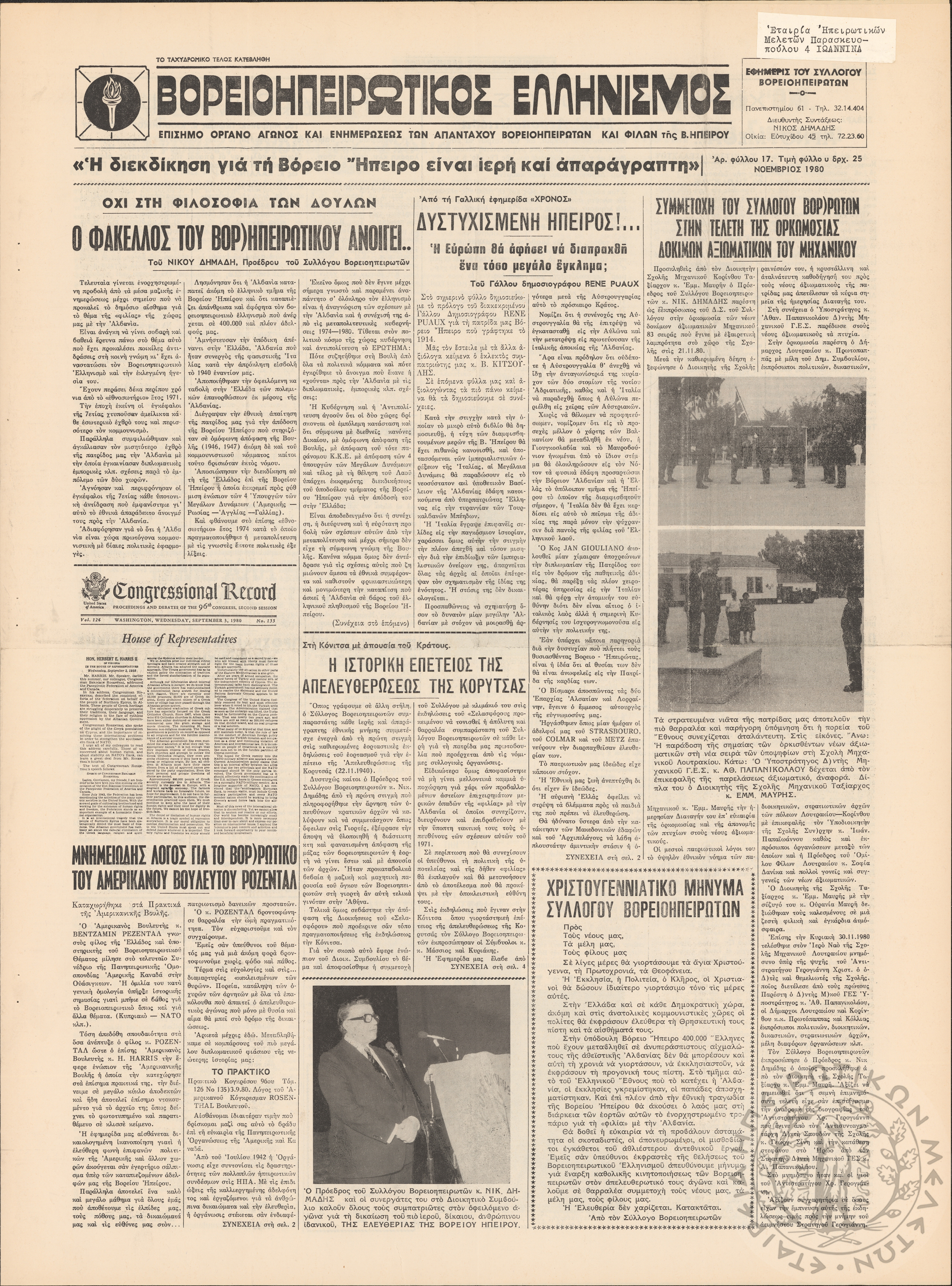 Βορειοηπειρωτικός Ελληνισμός: επίσημο όργανο αγώνος και αντιστάσεως των απανταχού Βορειοηπειρωτών και φίλων της Β. Ηπείρου, 1980, φ. 17...