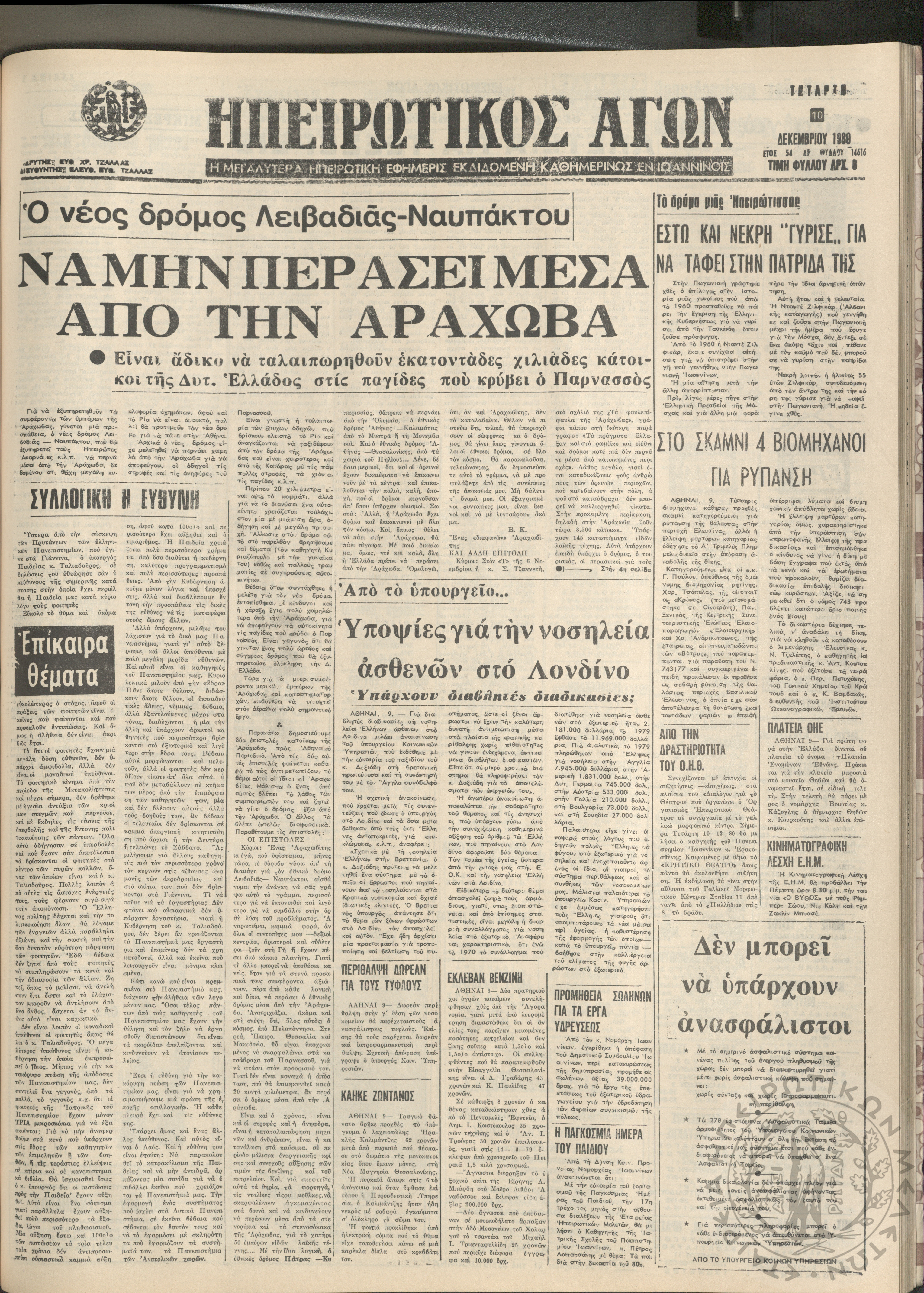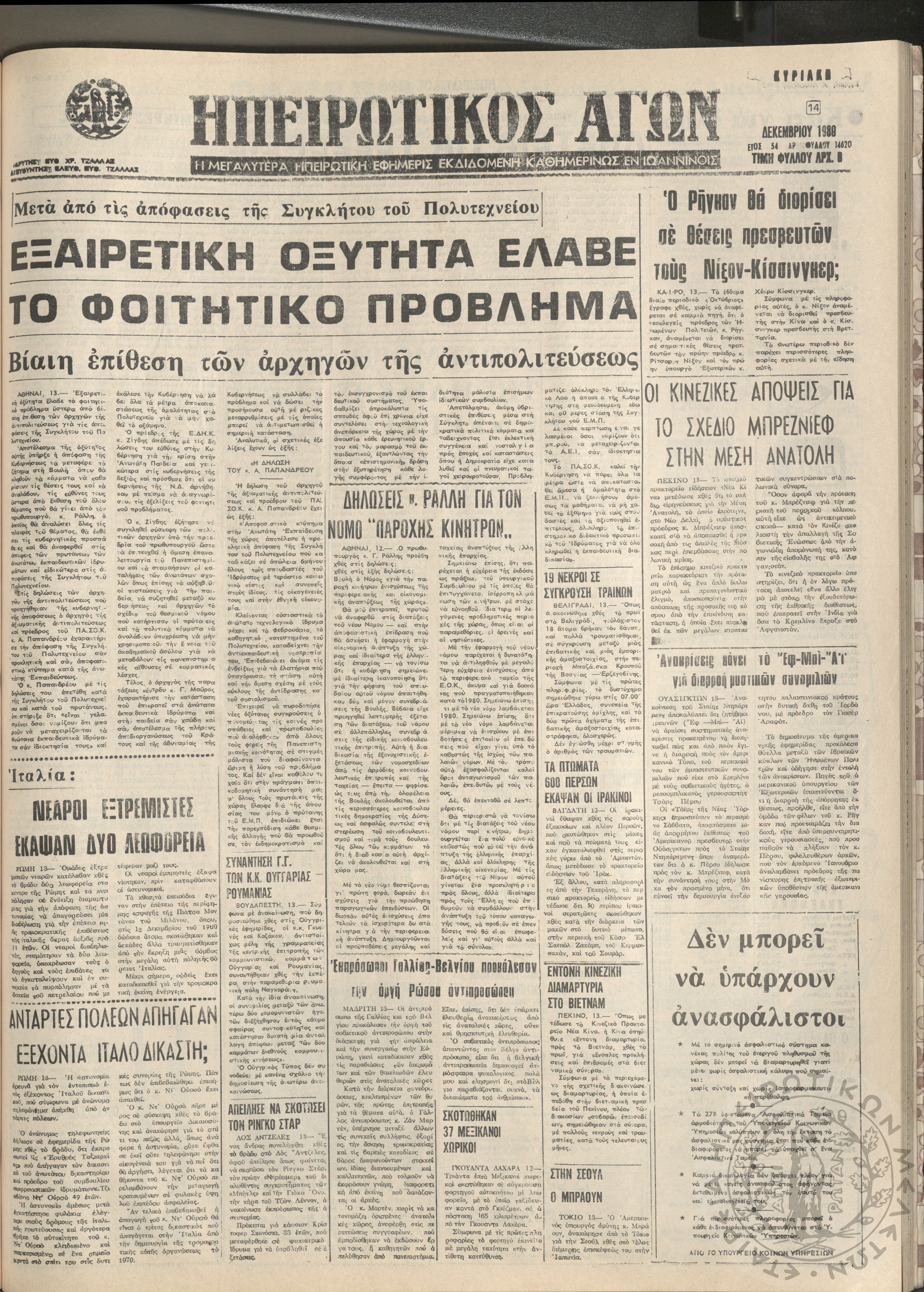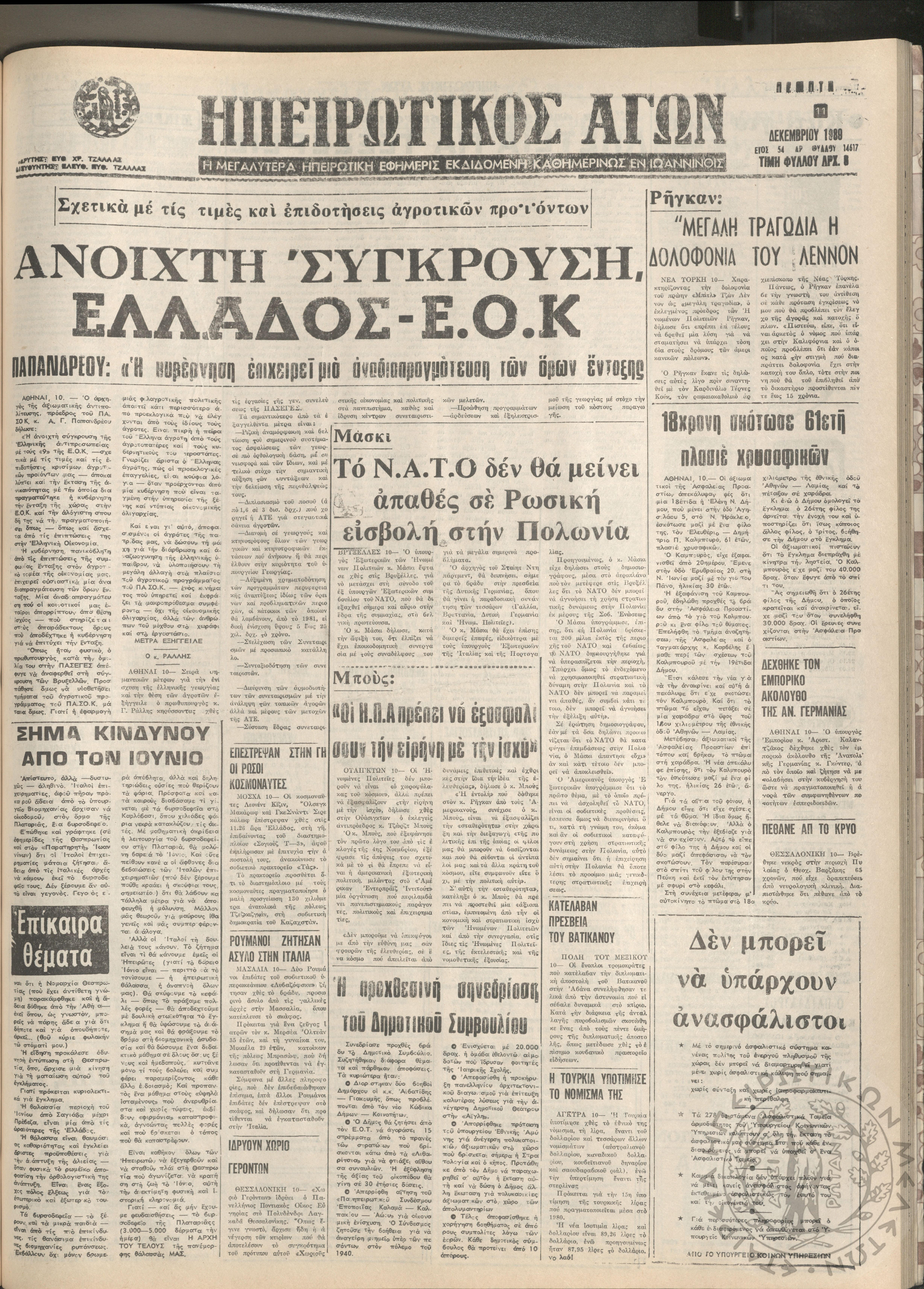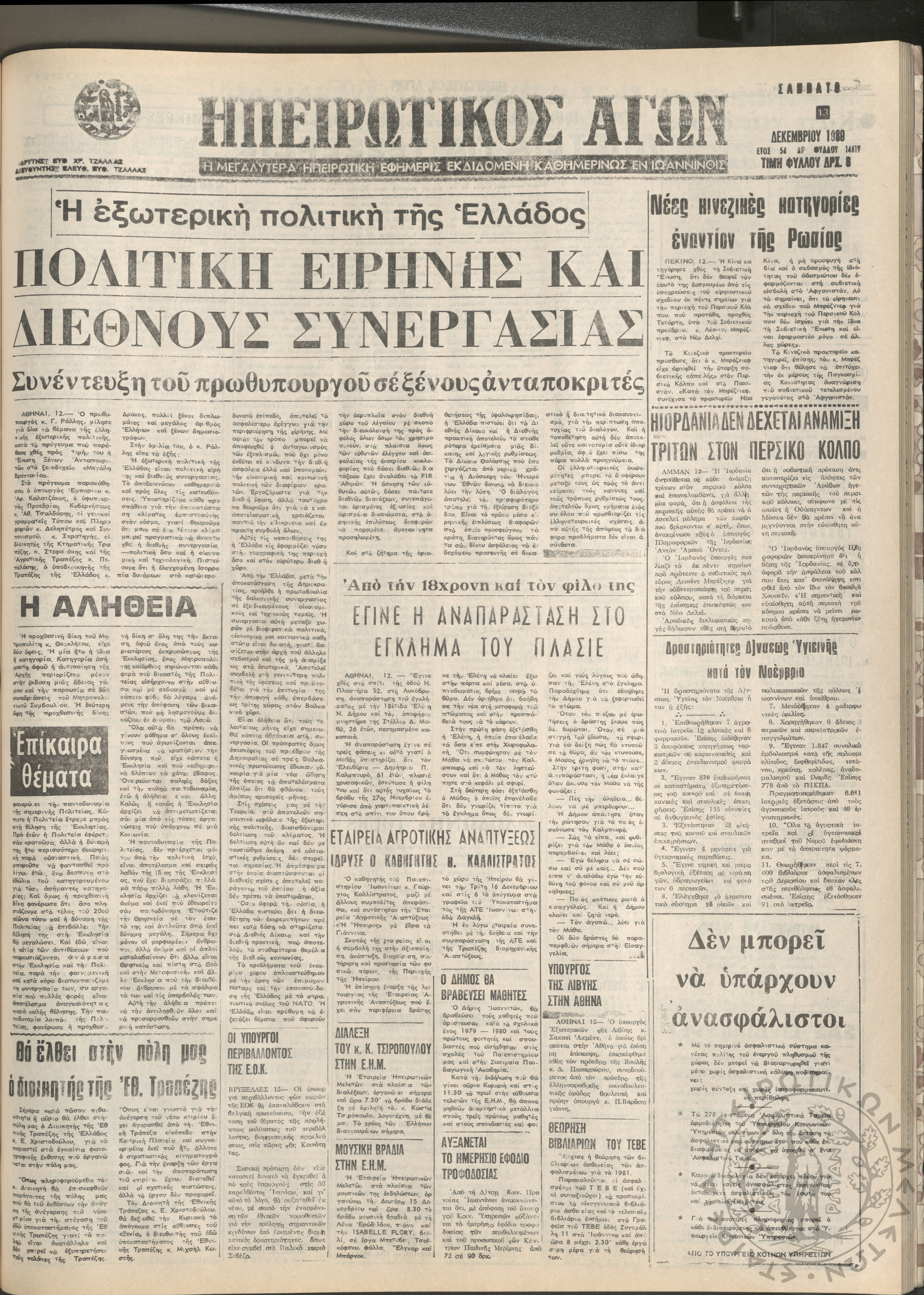Ηπειρωτικός Αγών: η μεγαλυτέρα Ηπειρωτική εφημερίς εκδιδόμενη καθημερινώς εν Ιωαννίνοις, 1980, φ. 14619Έτος 54, φ. 14619...