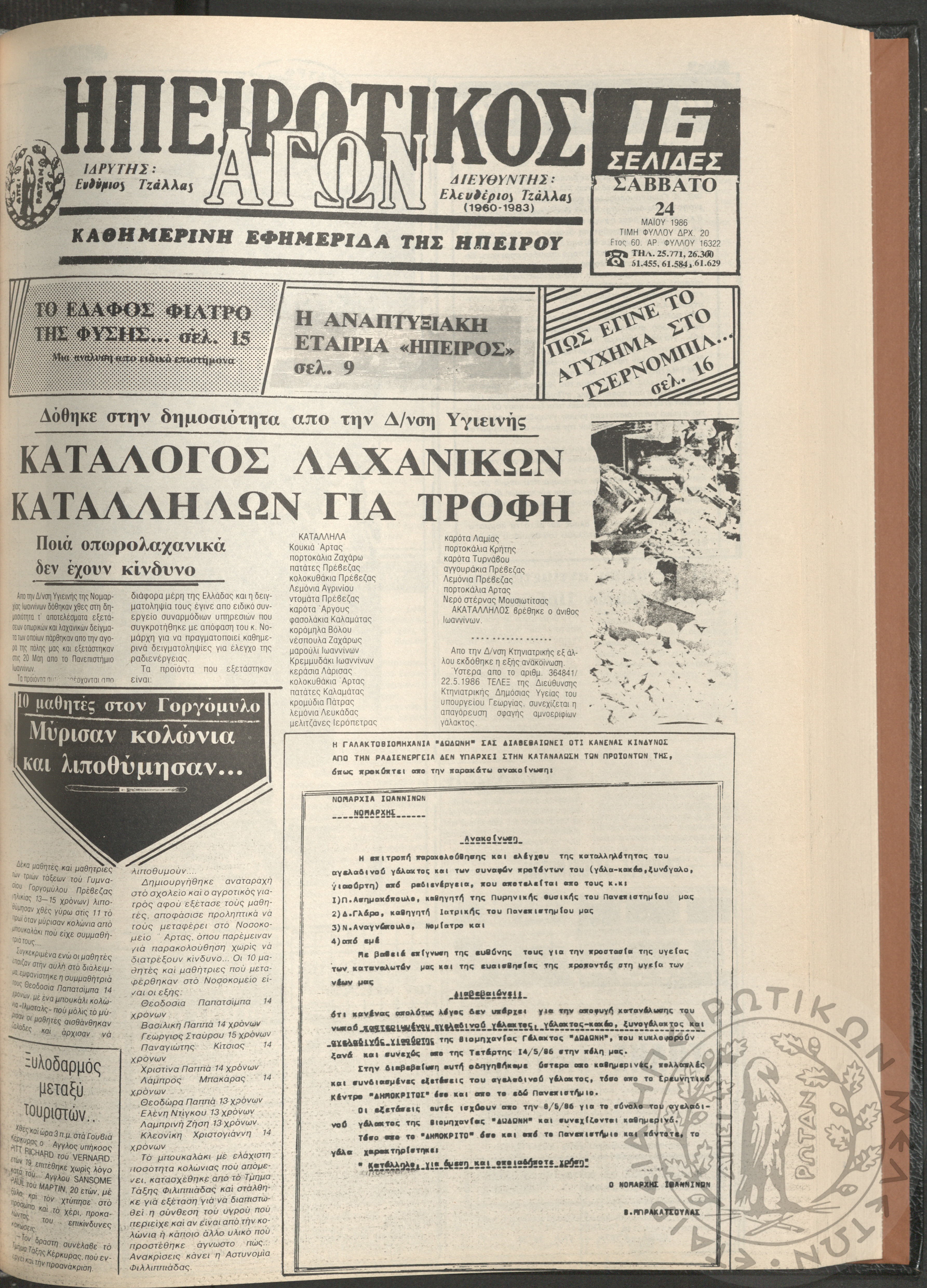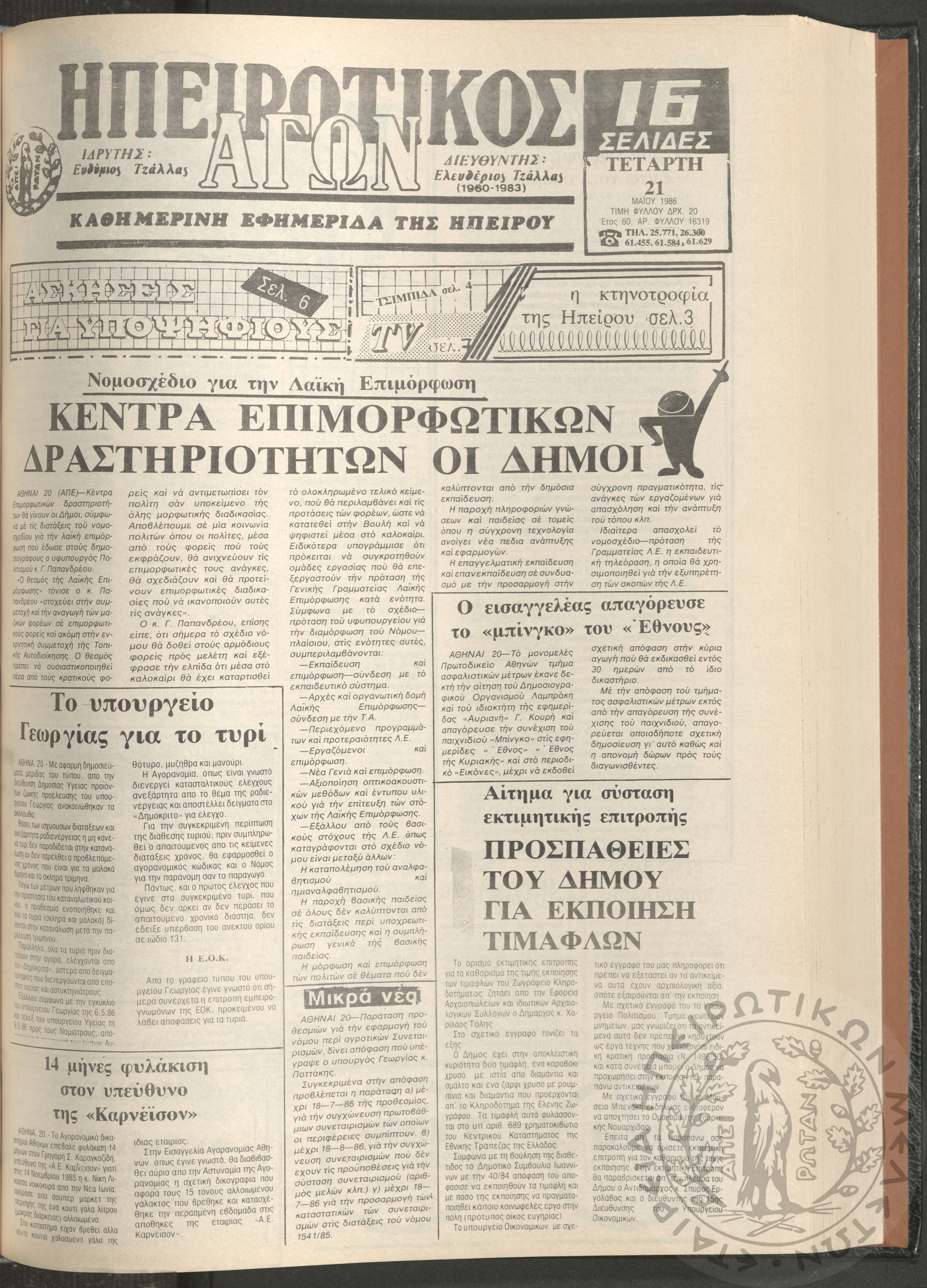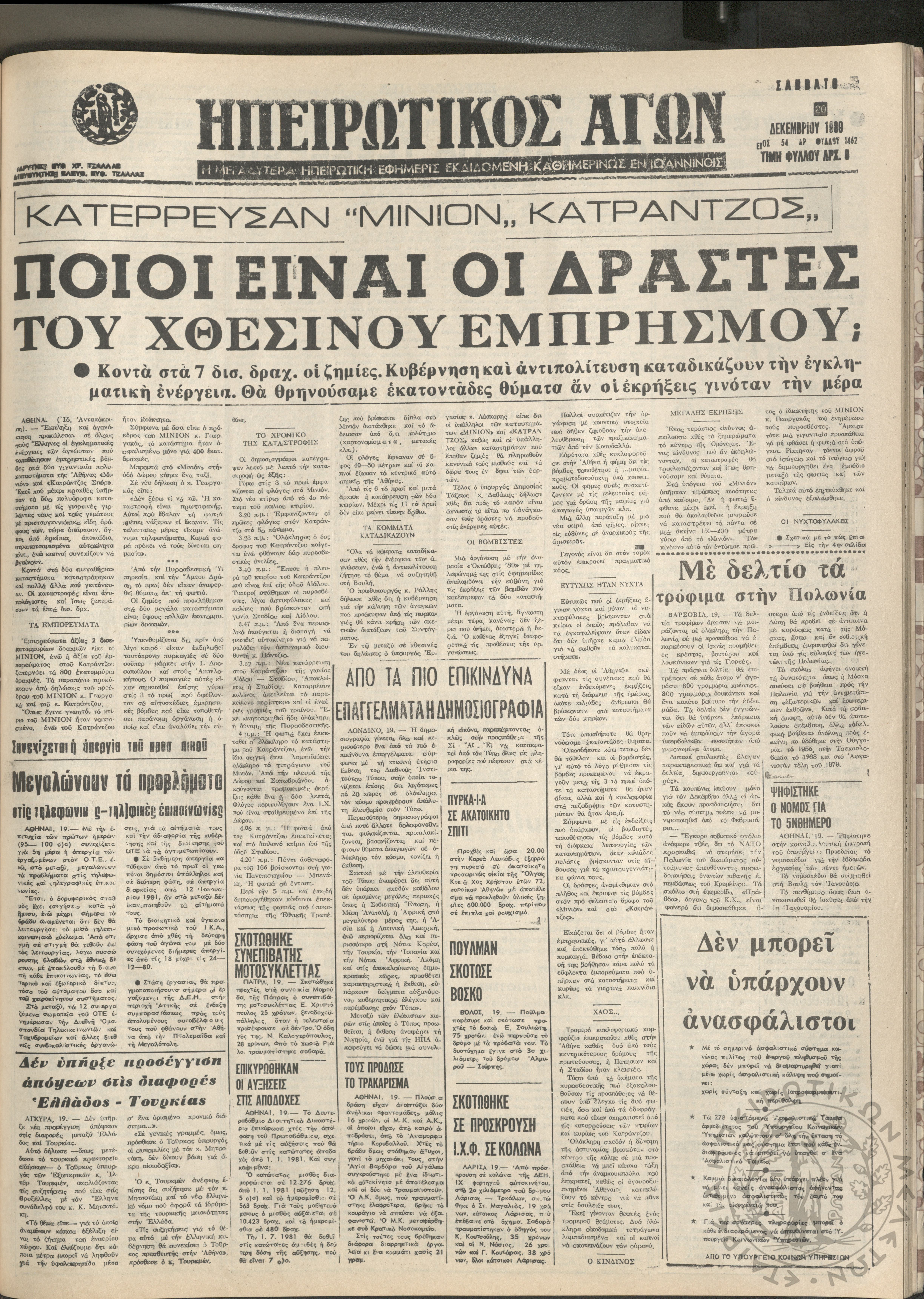 Ηπειρωτικός Αγών: η μεγαλυτέρα Ηπειρωτική εφημερίς εκδιδόμενη καθημερινώς εν Ιωαννίνοις, 1980, φ. 14620Έτος 54, φ. 14620...