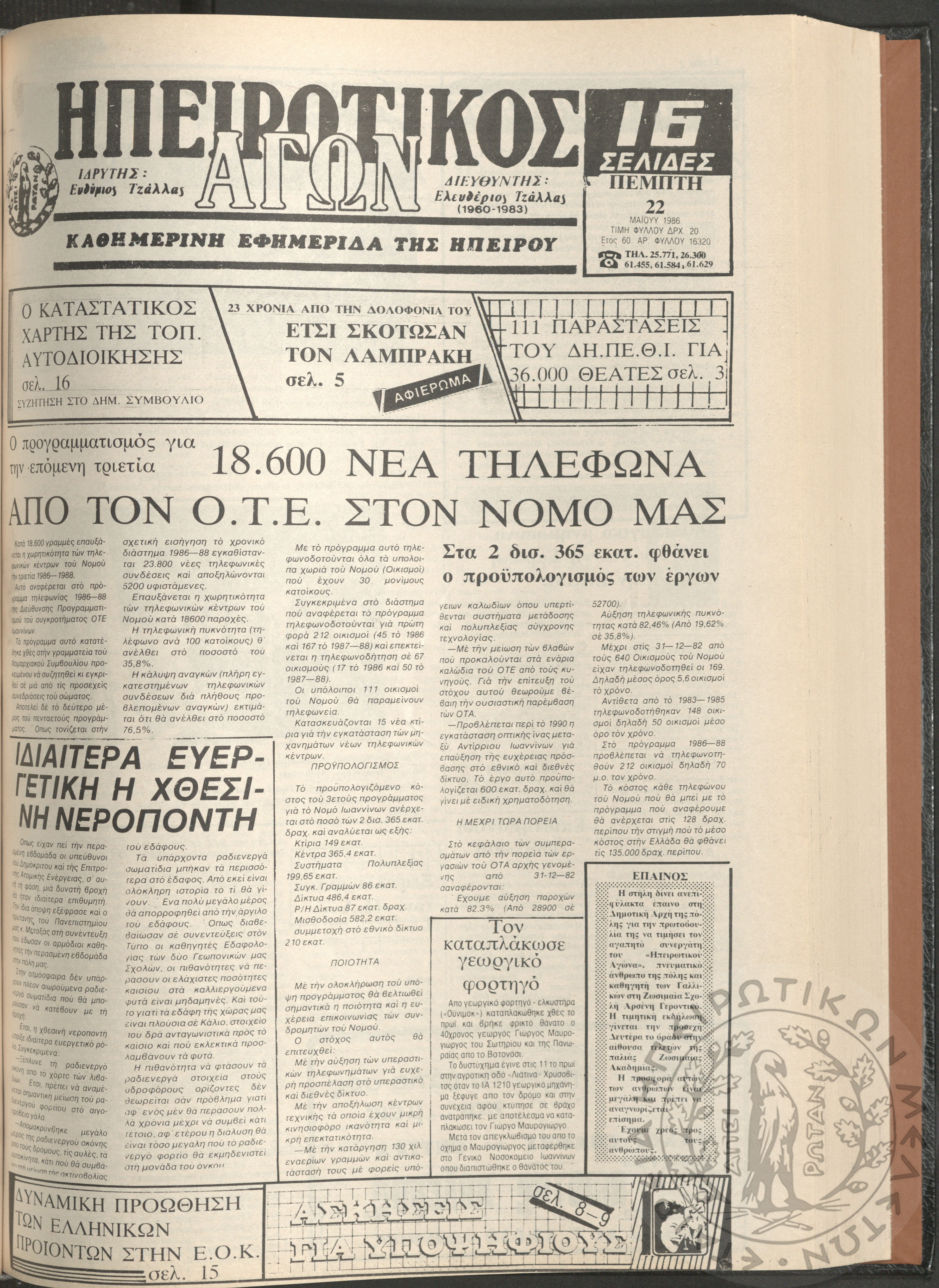 Ηπειρωτικός Αγών: η μεγαλυτέρα Ηπειρωτική εφημερίς εκδιδόμενη καθημερινώς εν Ιωαννίνοις, 1980, φ. 14622Έτος 54, φ. 14622...