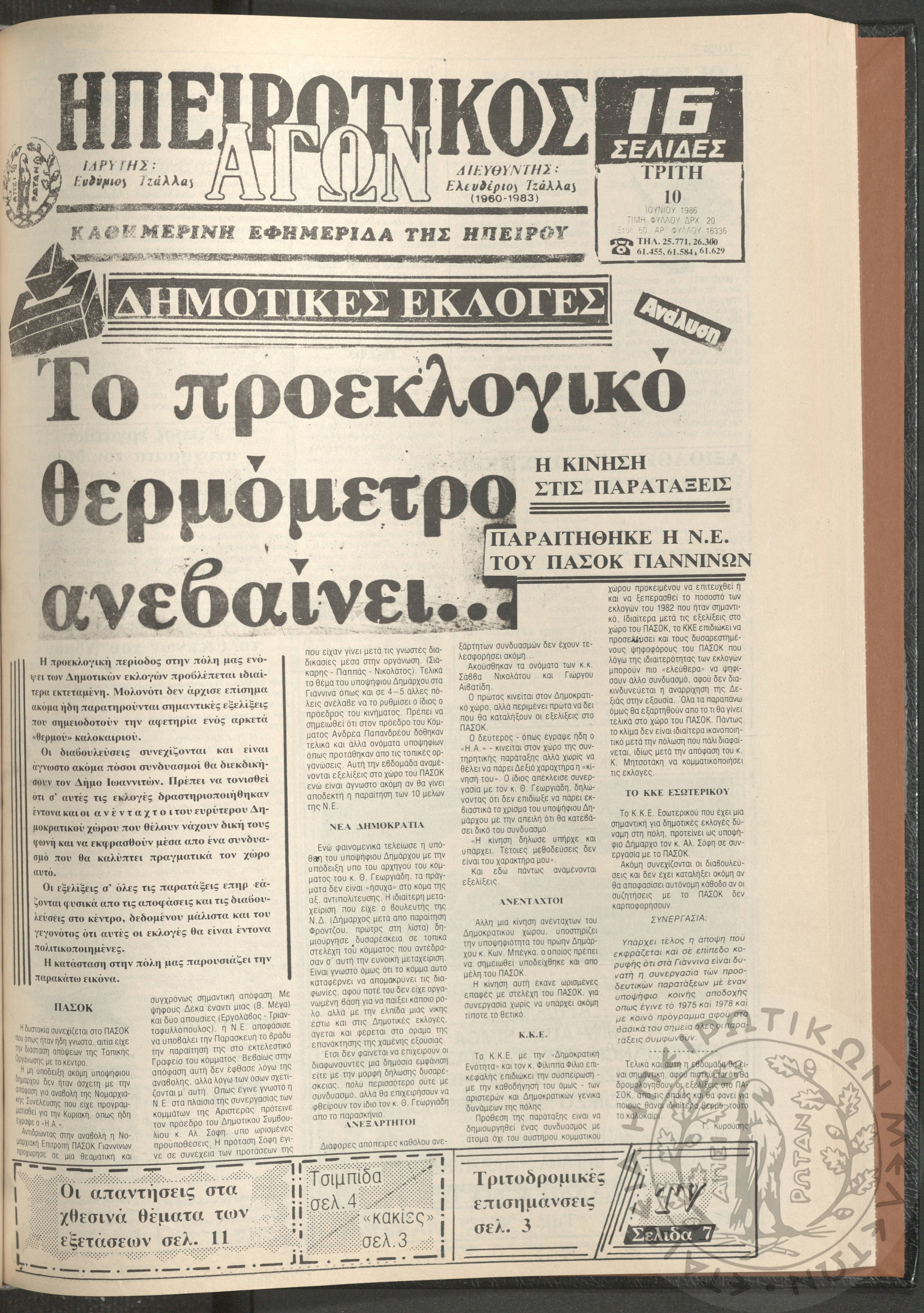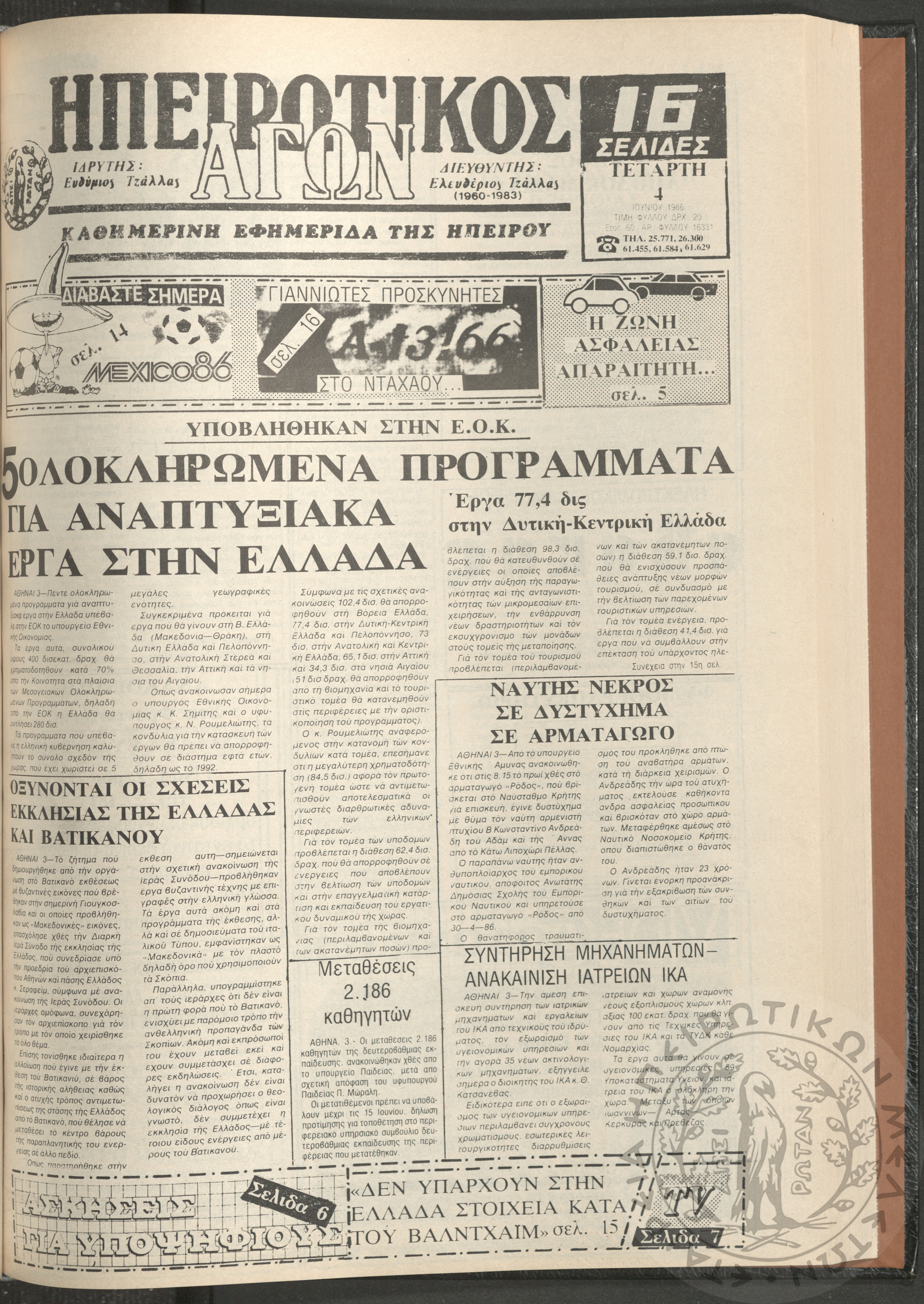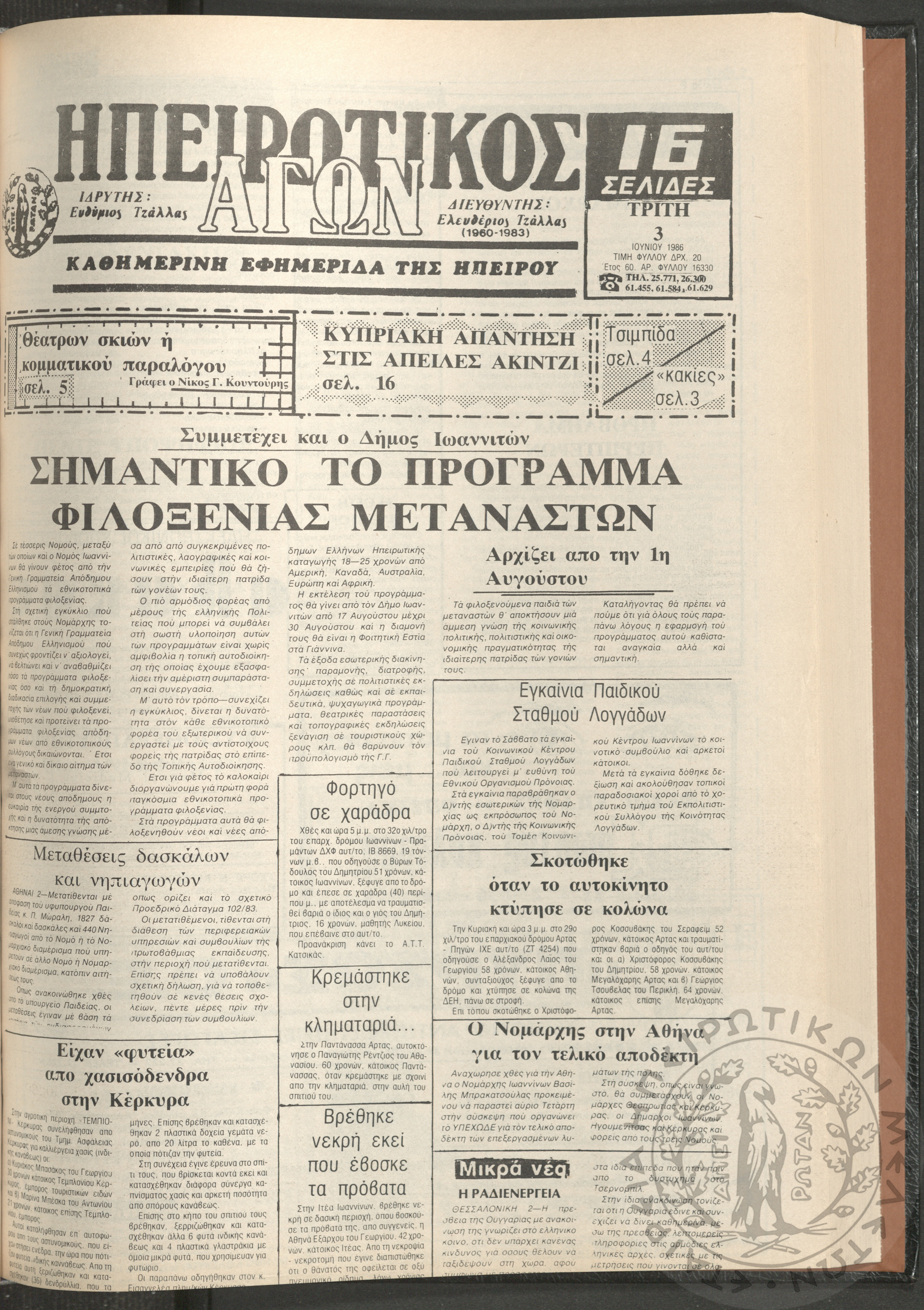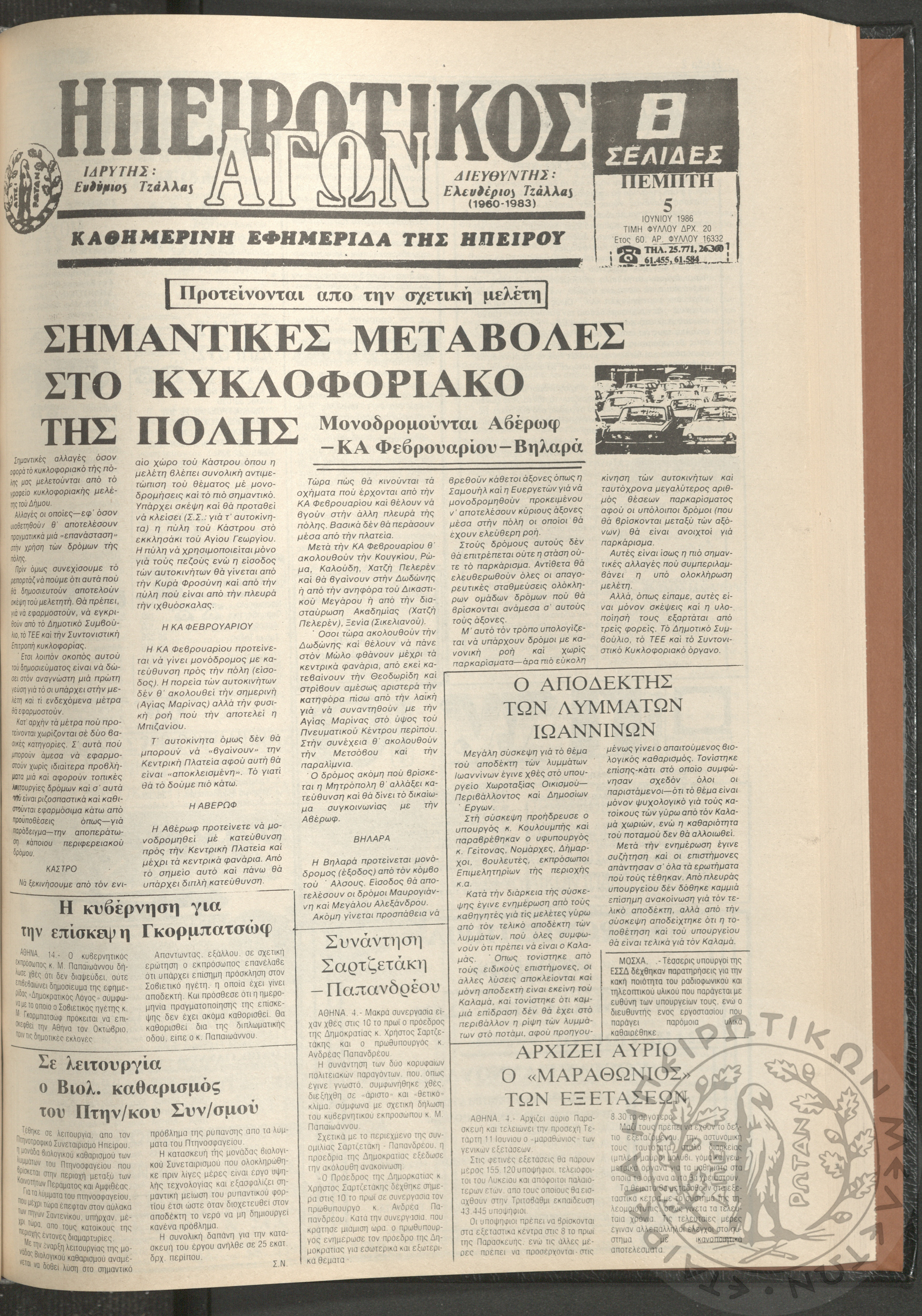 Ηπειρωτικός Αγών: καθημερινή εφημερίδα της Ηπείρου, 1986, φ. 16330