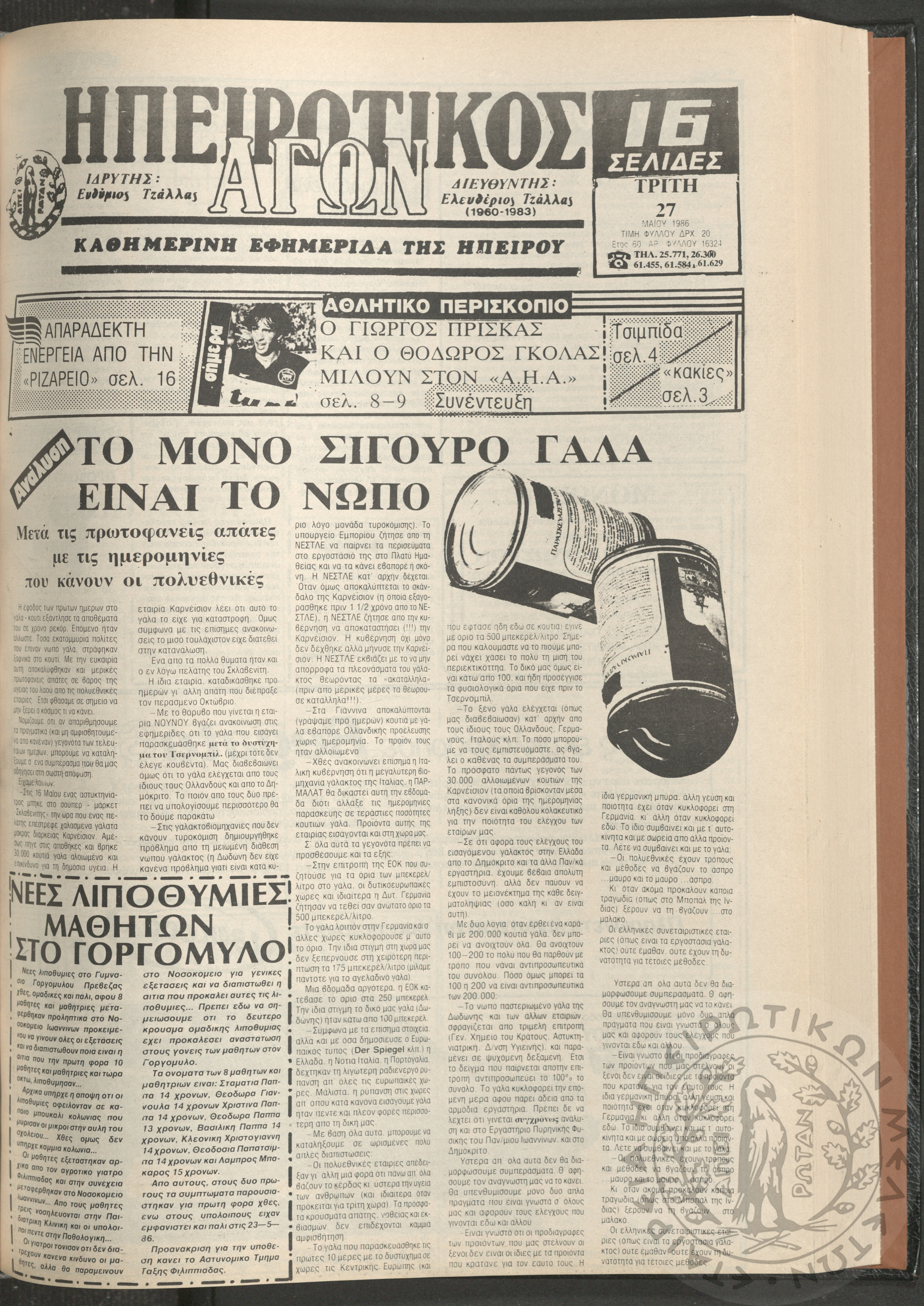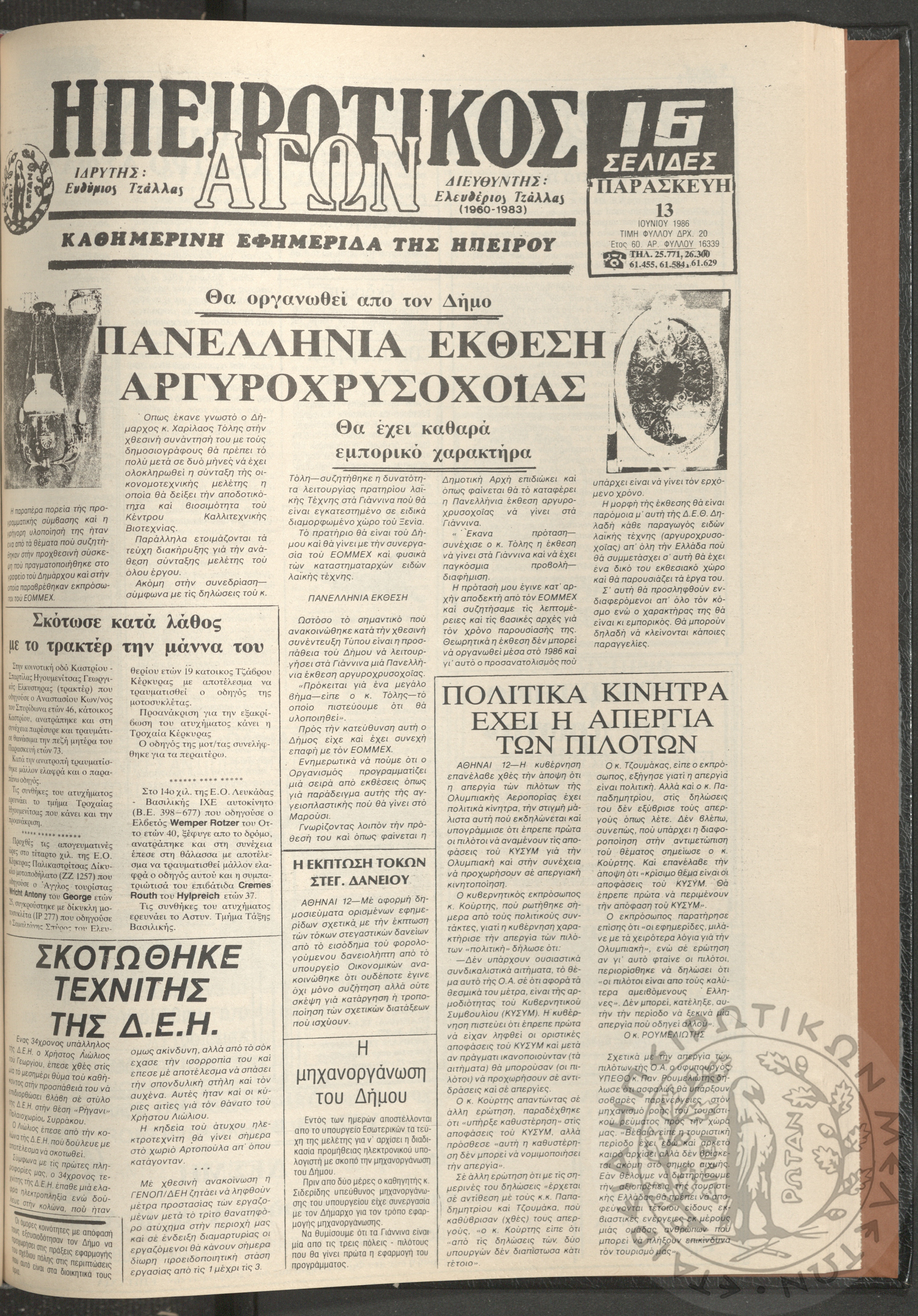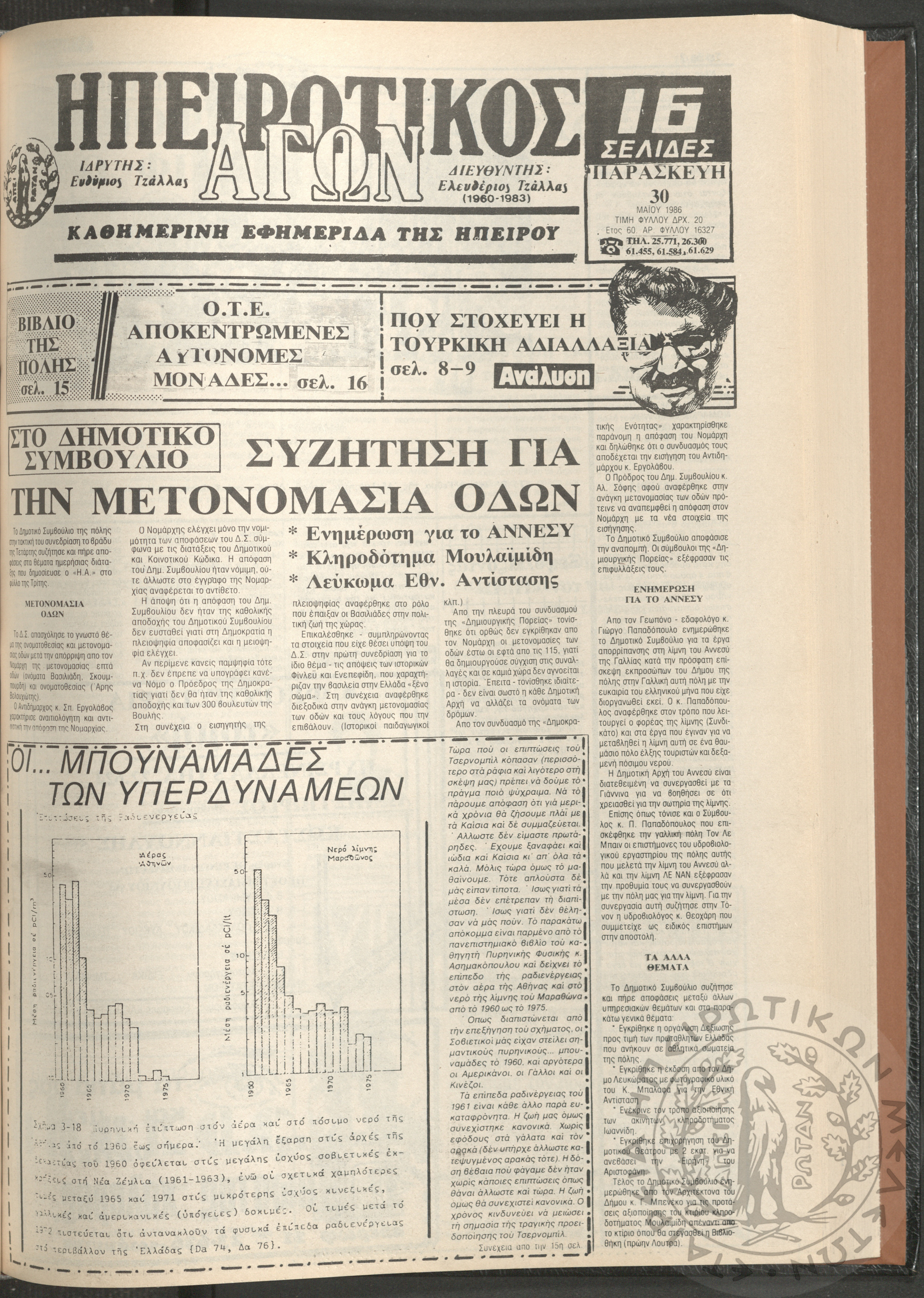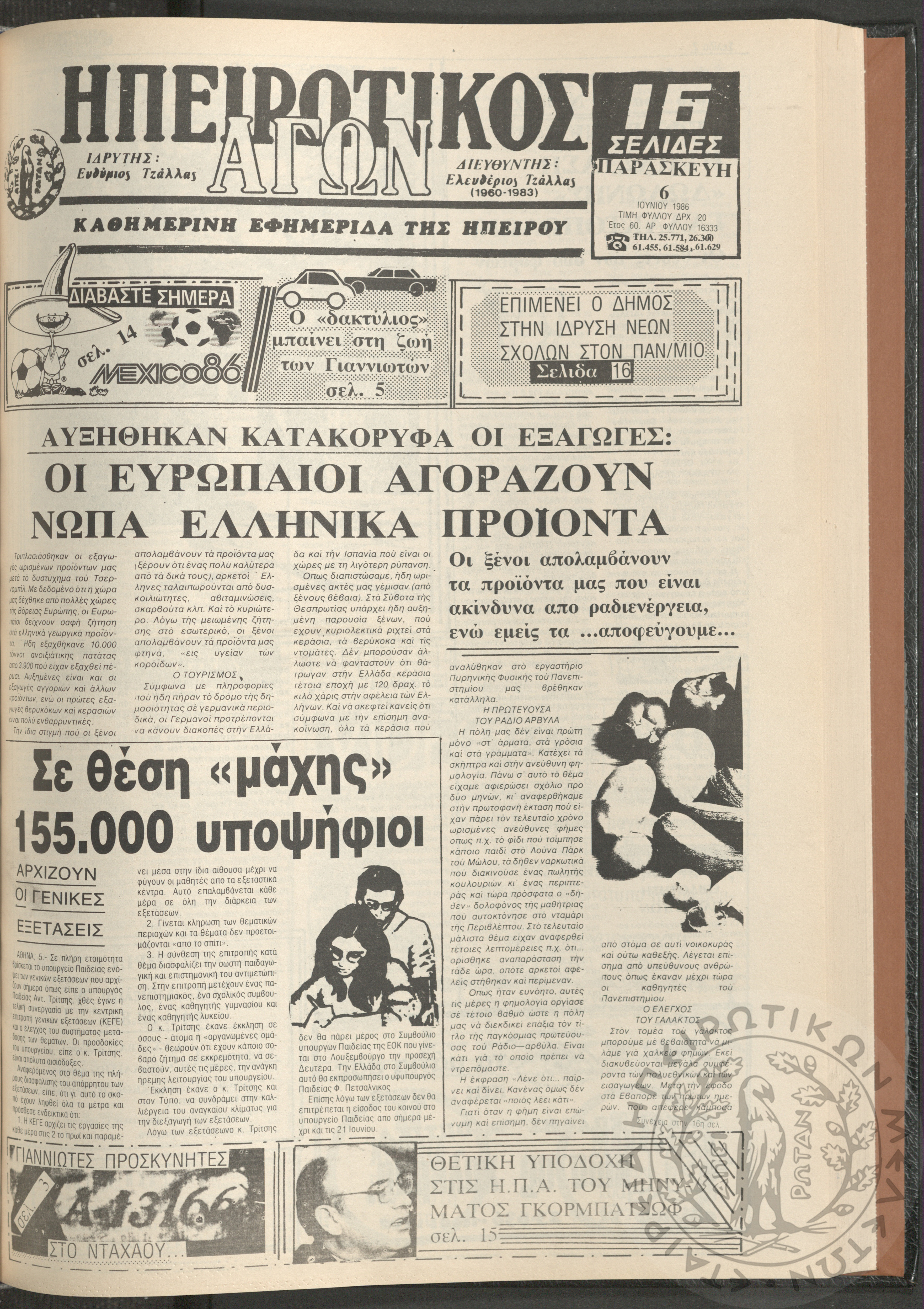 Ηπειρωτικός Αγών: καθημερινή εφημερίδα της Ηπείρου, 1986, φ. 16330