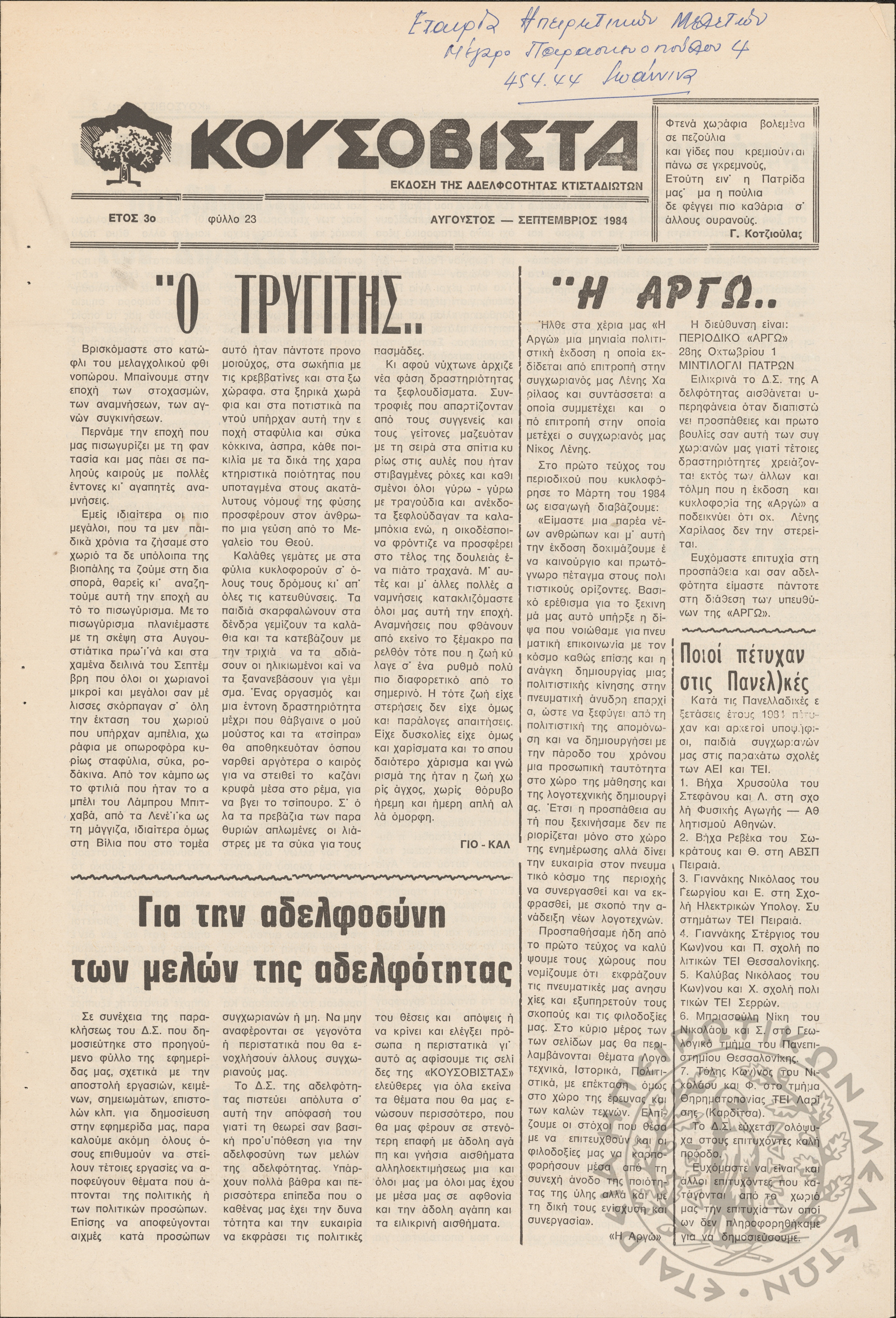 Κουσοβίστα: έκδοση της Αδελφότητας Κτισταδιωτών, 1984, φ. 23