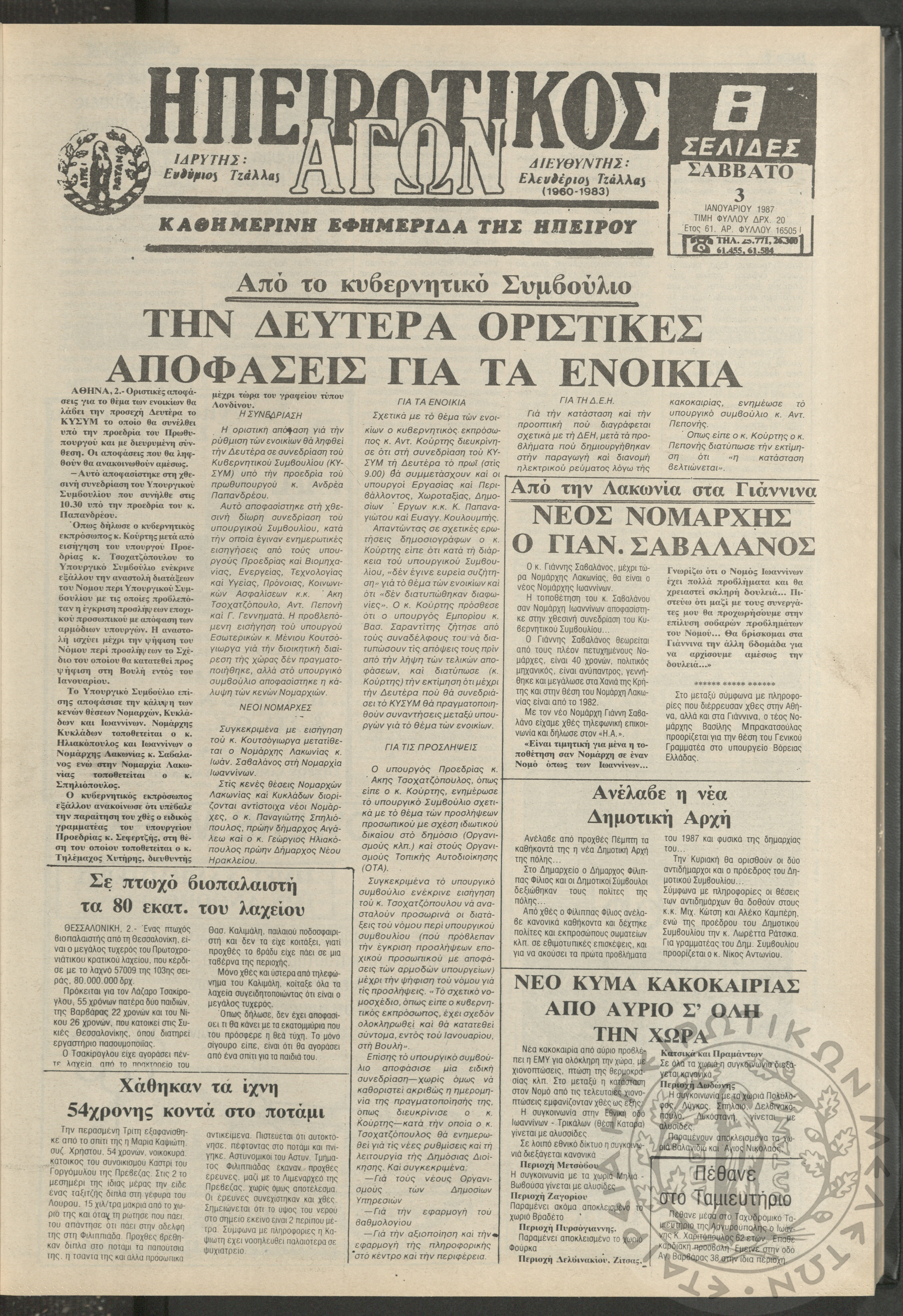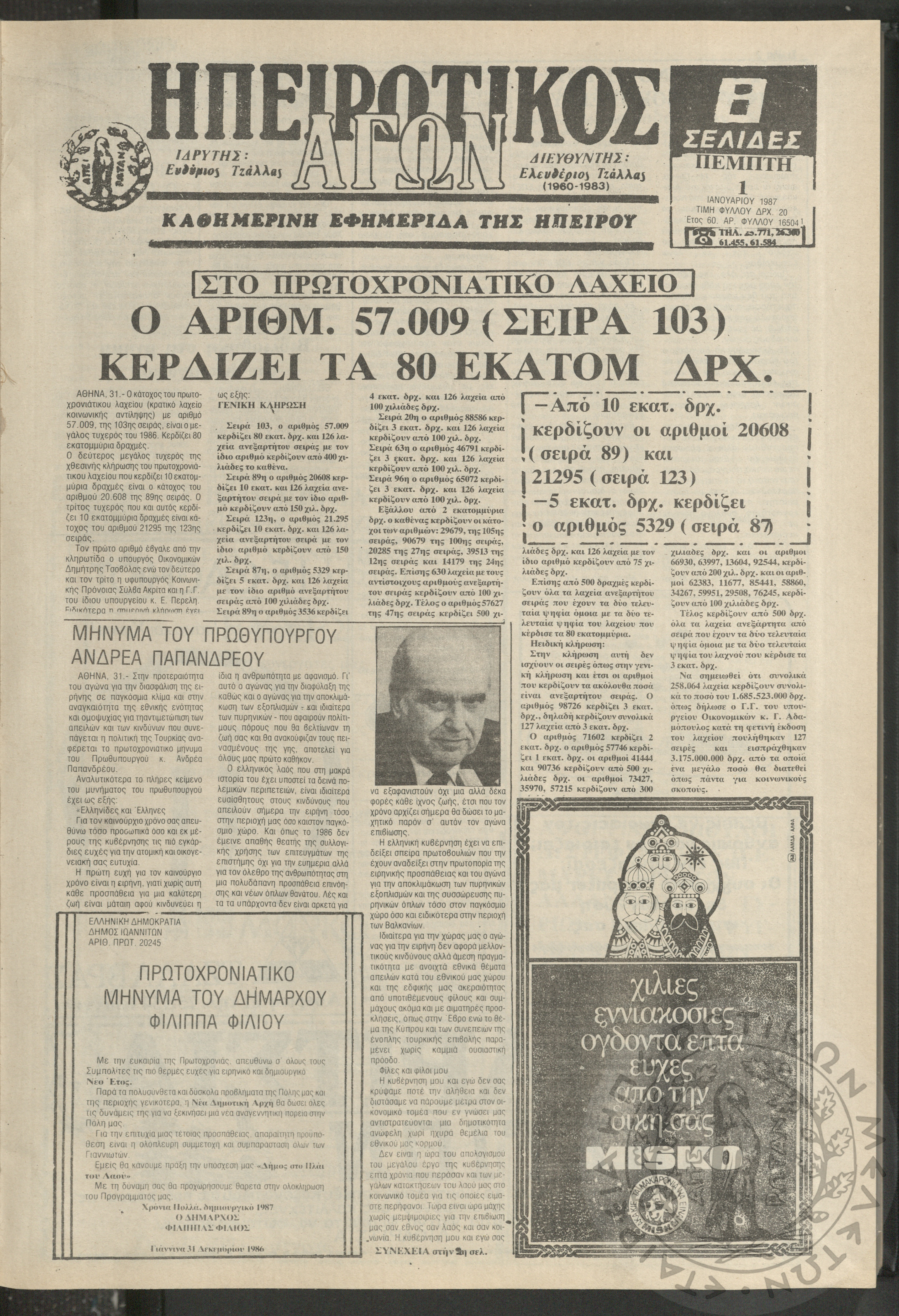 Ηπειρωτικός Αγών: καθημερινή εφημερίδα της Ηπείρου, 1987, φ. 16504