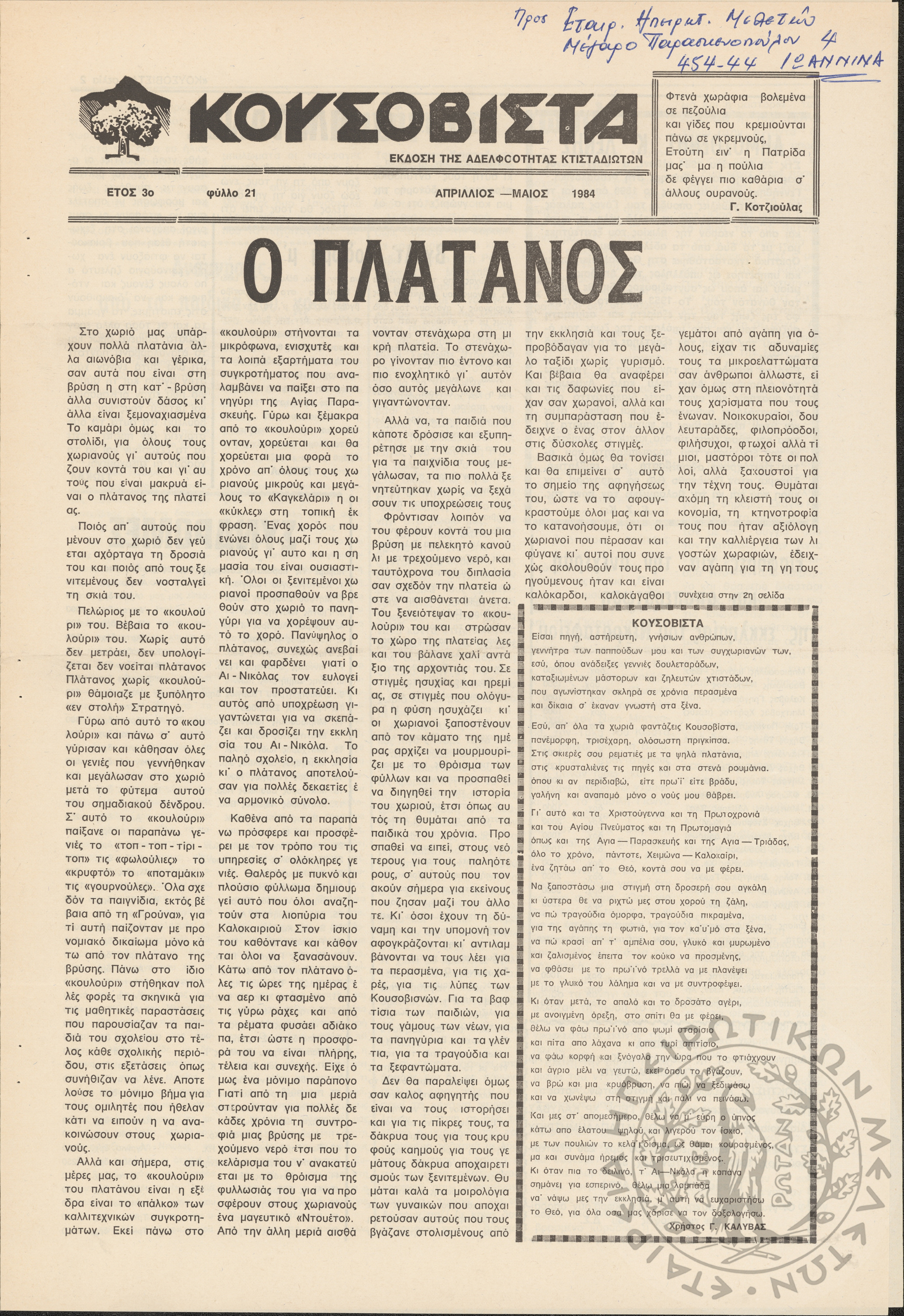 Κουσοβίστα: έκδοση της Αδελφότητας Κτισταδιωτών, 1984, φ. 21