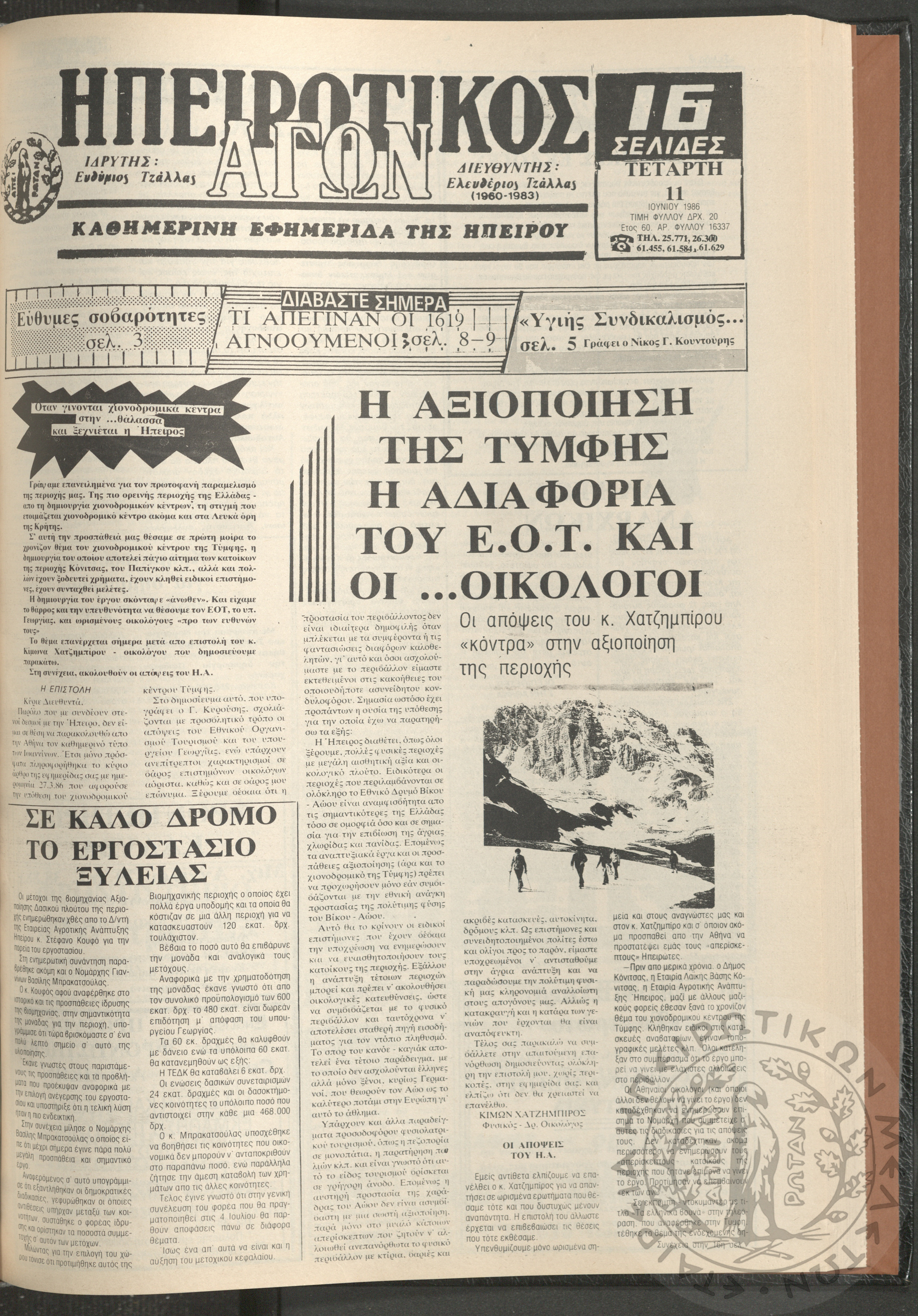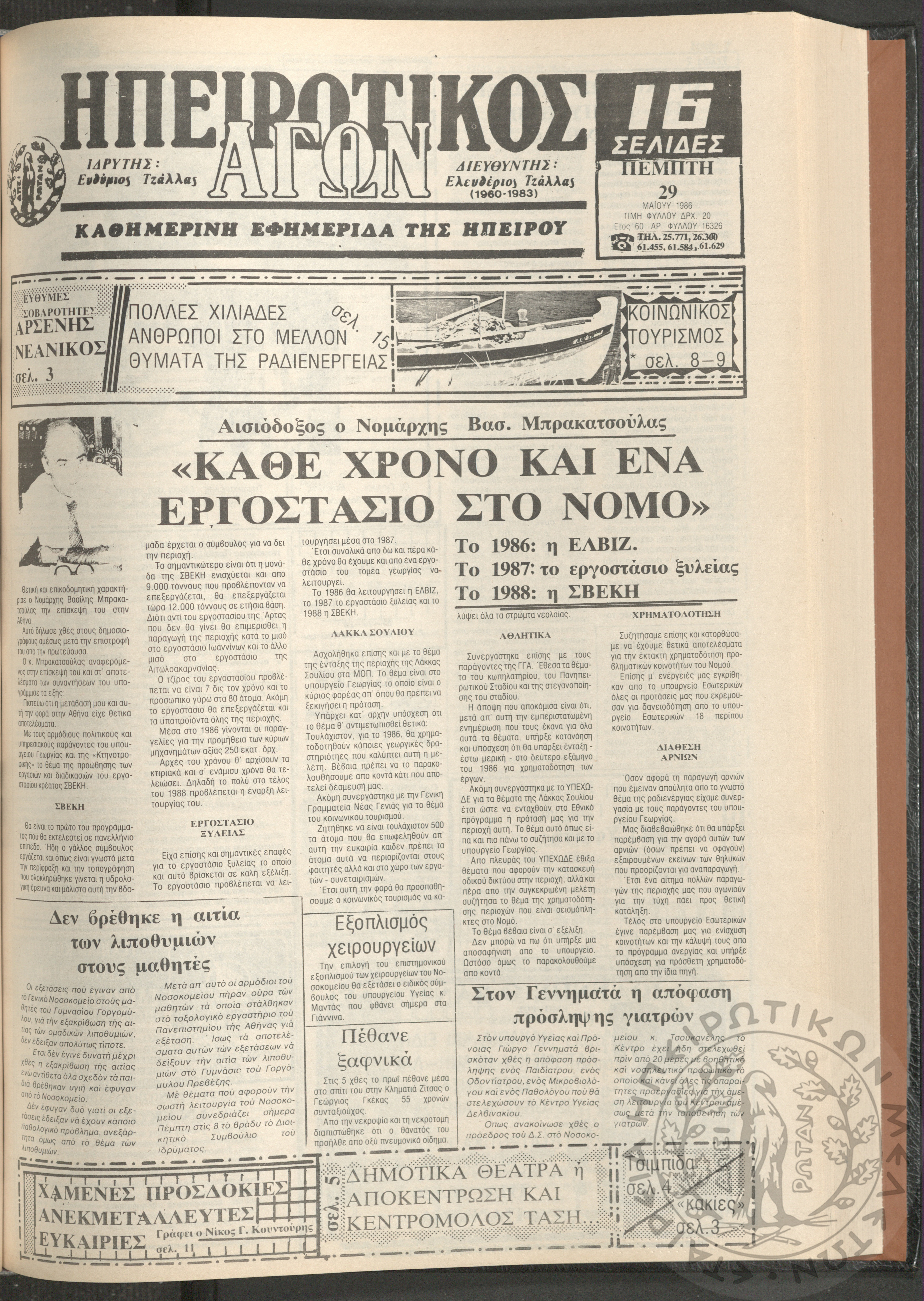 Ηπειρωτικός Αγών: καθημερινή εφημερίδα της Ηπείρου, 1986, φ. 16337