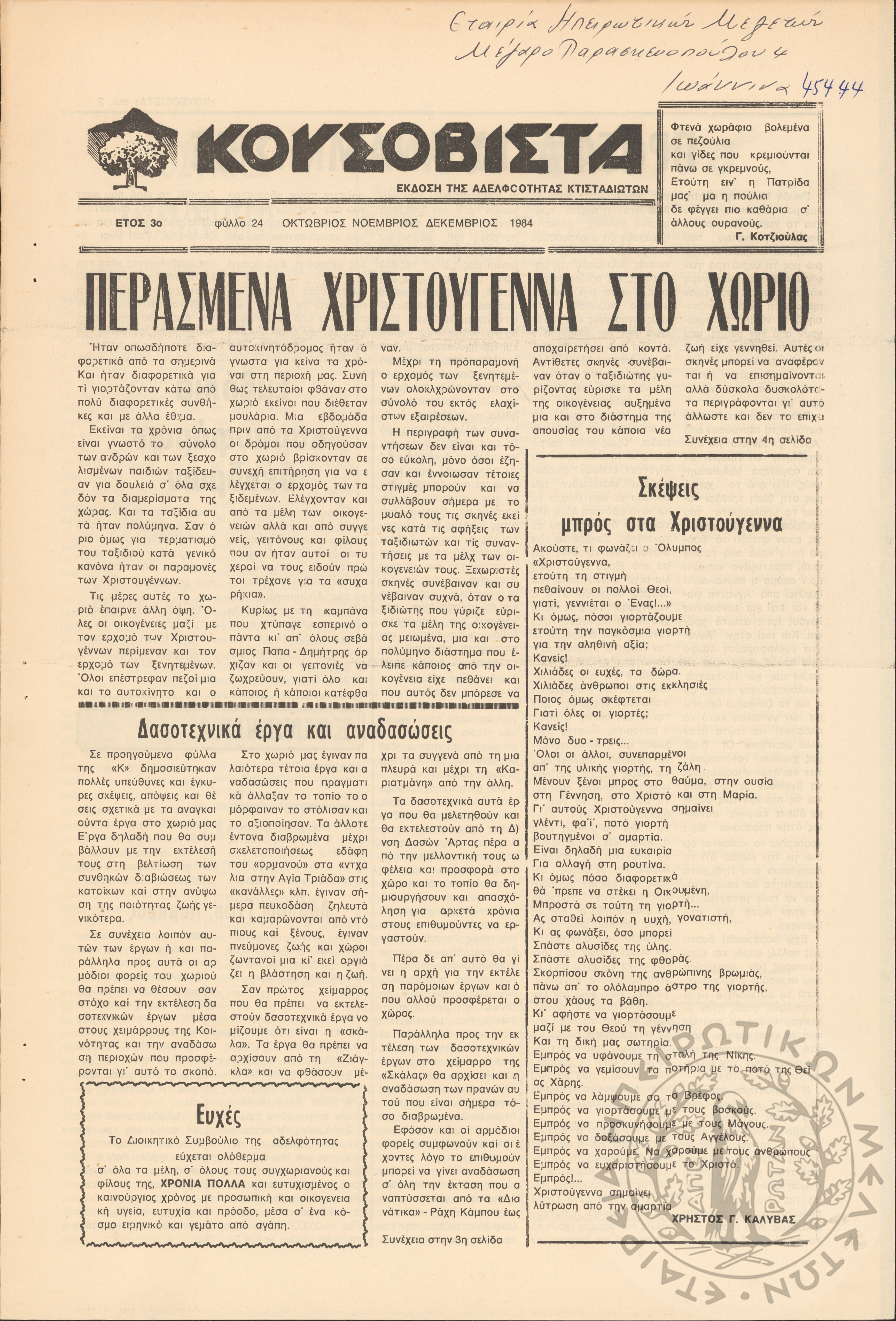 Κουσοβίστα: έκδοση της Αδελφότητας Κτισταδιωτών, 1984, φ. 24