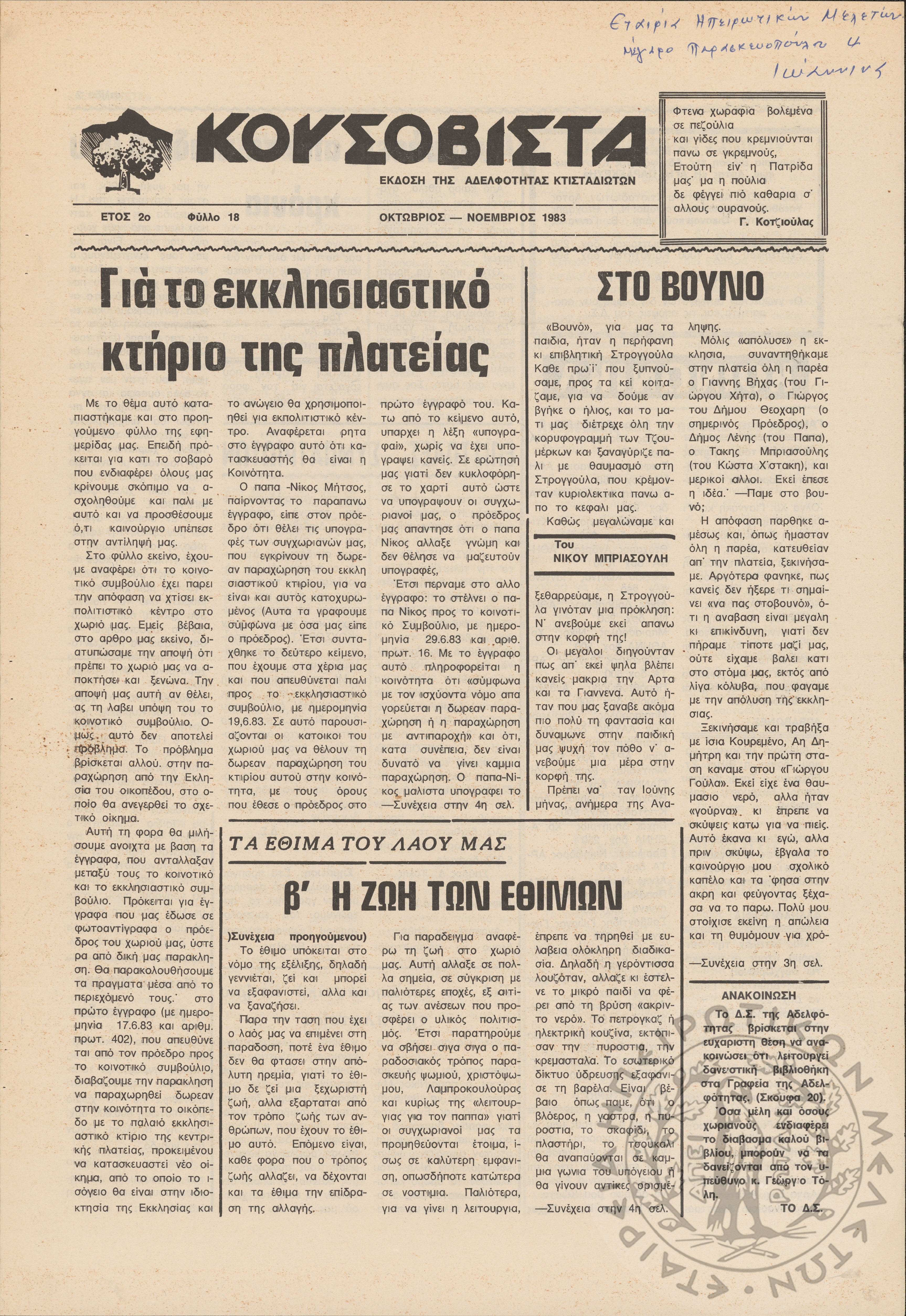 Κουσοβίστα: έκδοση της Αδελφότητας Κτισταδιωτών, 1983, φ. 18