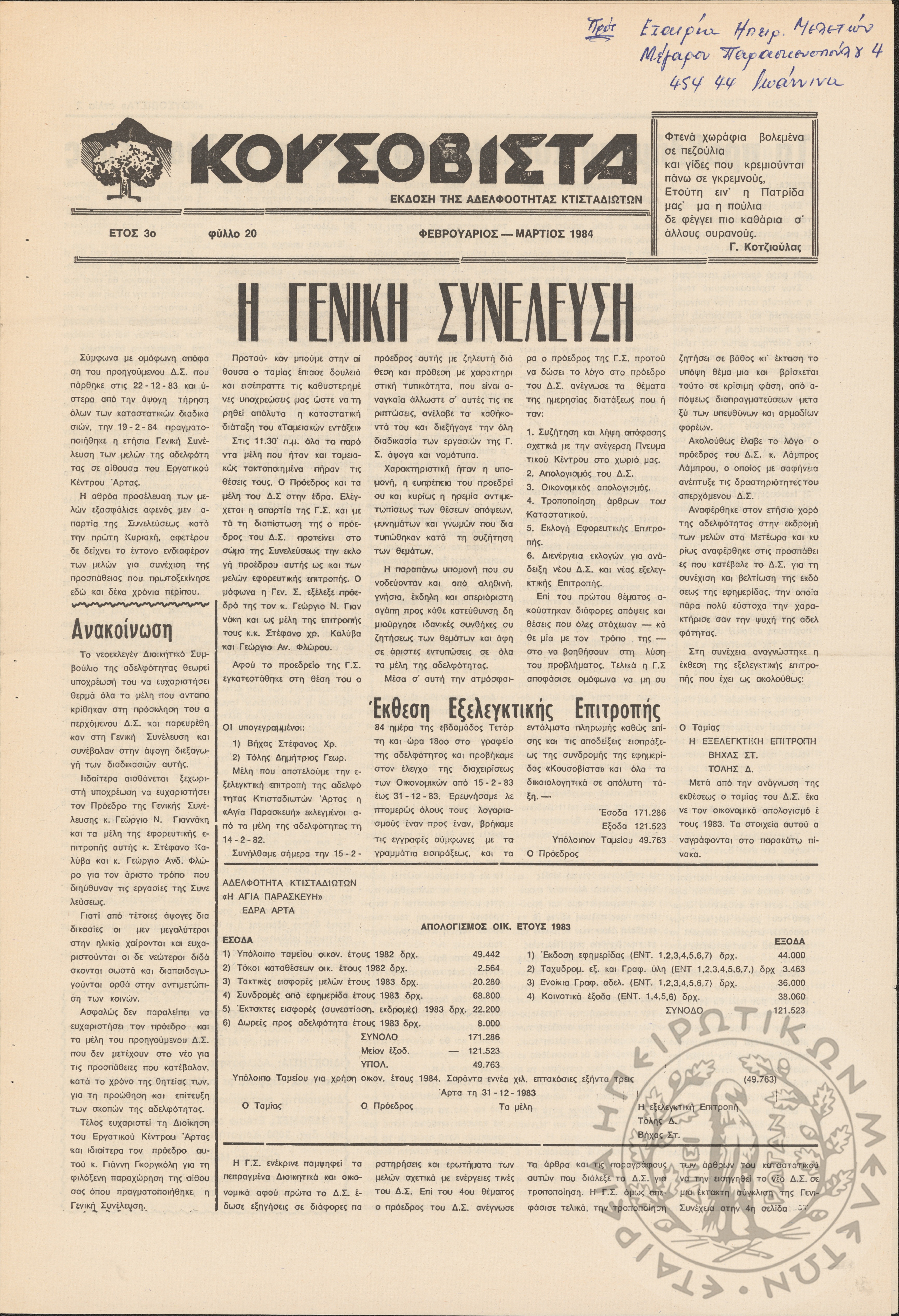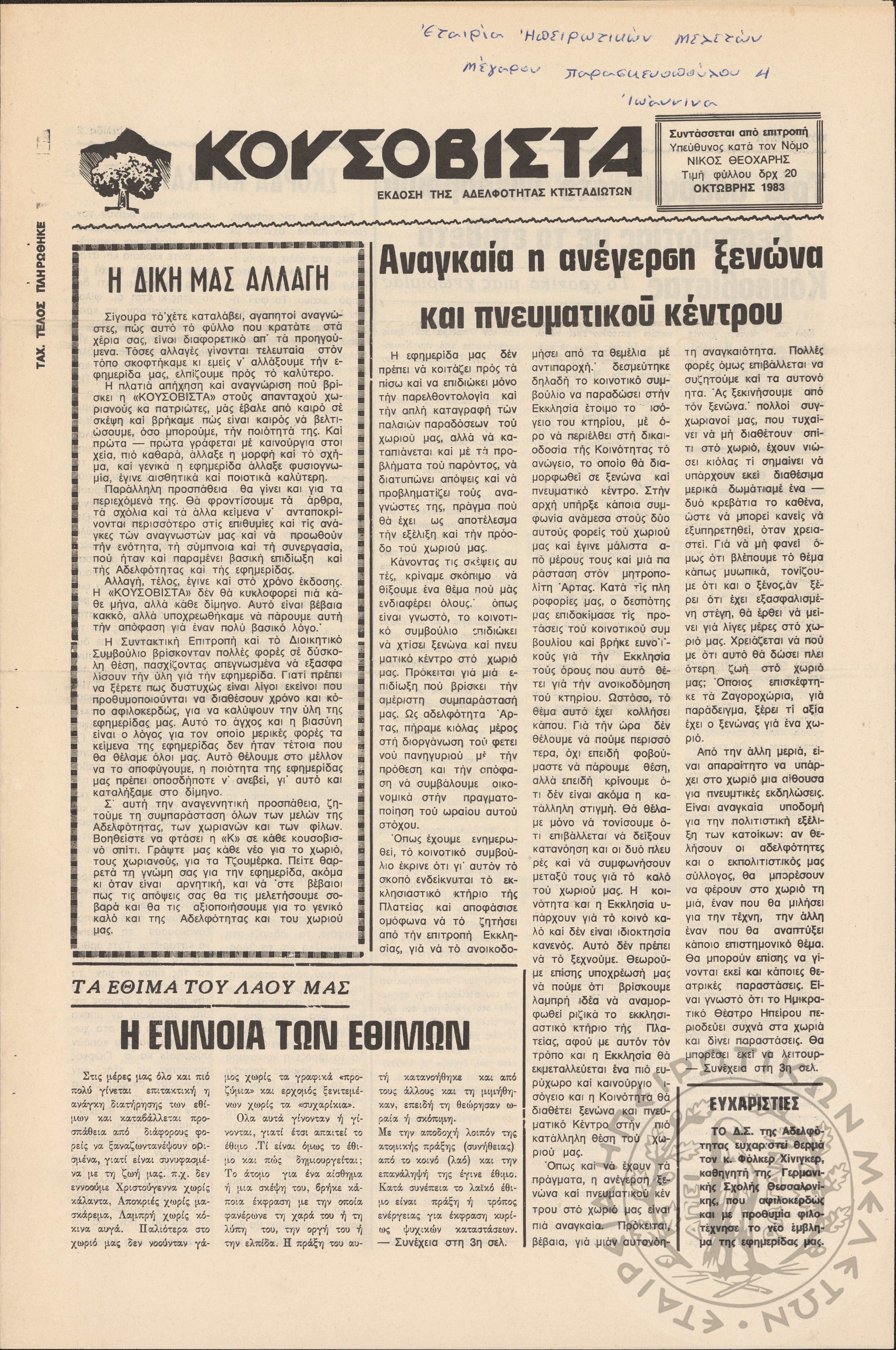 Κουσοβίστα: έκδοση της Αδελφότητας Κτισταδιωτών, 1984, φ. 20